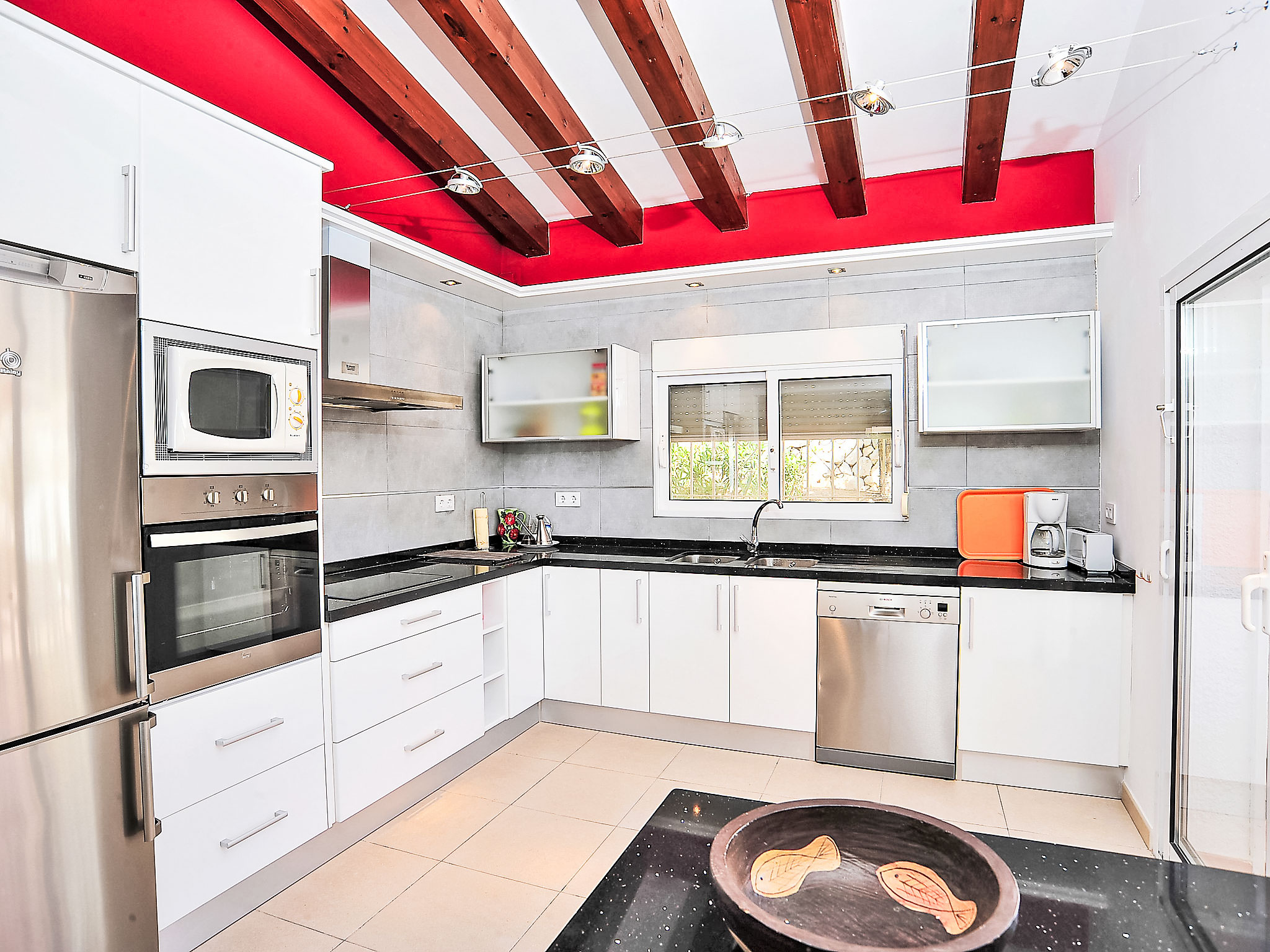 5-Zimmer-Haus auf 2 Stockwerken. Geräumig und hell, sehr komfortabel und geschmackvoll eingerichtet: Wohn-/Esszimmer mit Sat-TV. Ausgang zur Terrasse. 2 Doppelzimmer. 1 Zimmer mit 1 x 3 Etagenbetten. Grosse, offene Küche (Backofen, Geschirrspüler, X Glaskeramikherd Platten, Mikrowelle, Tiefkühler, elektrische Kaffeemaschine). Ausgang zur Terrasse, zum Schwimmbad. Bad/WC, Dusche/WC. Grosse Terrasse teilweise überdacht, grosse Terrasse. Terrassenmöbel, Gartengrill, Liegestühle. Herrliche Sicht auf das Meer und die Landschaft. Zur Verfügung: Waschmaschine. Internet (Wireless LAN, gratis). Parkplatz (eingezäunt). Geeignet für Familien. AT-440960-A