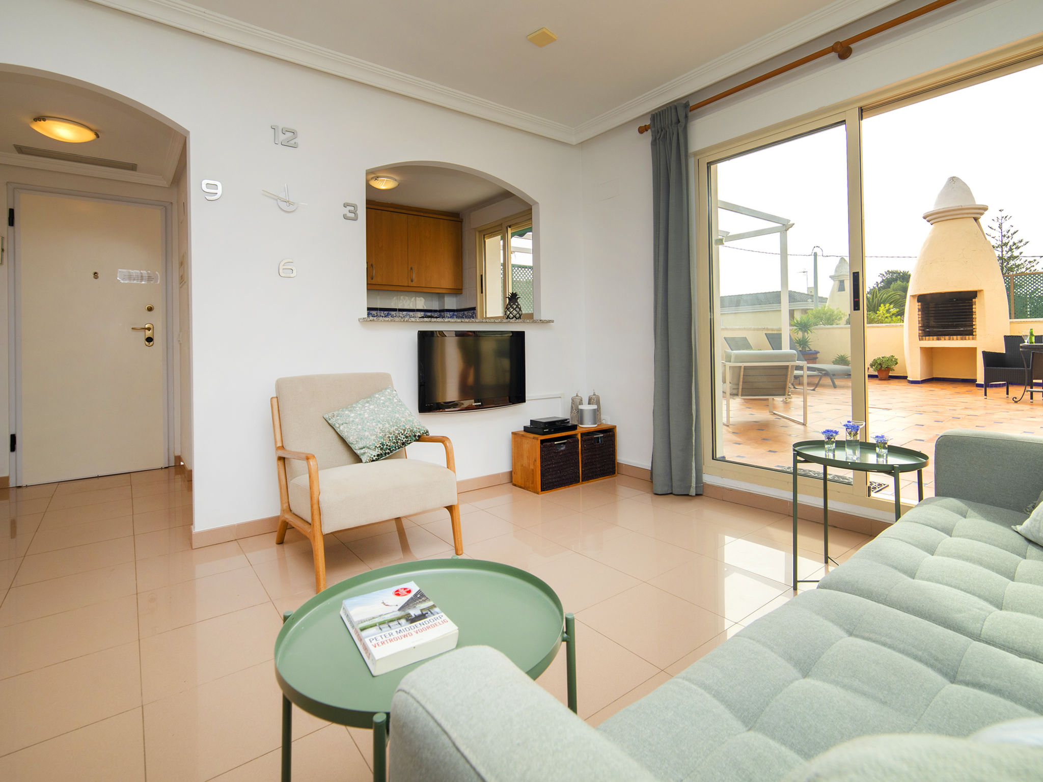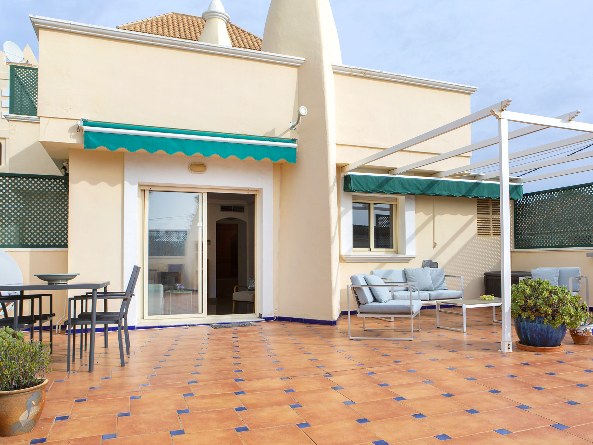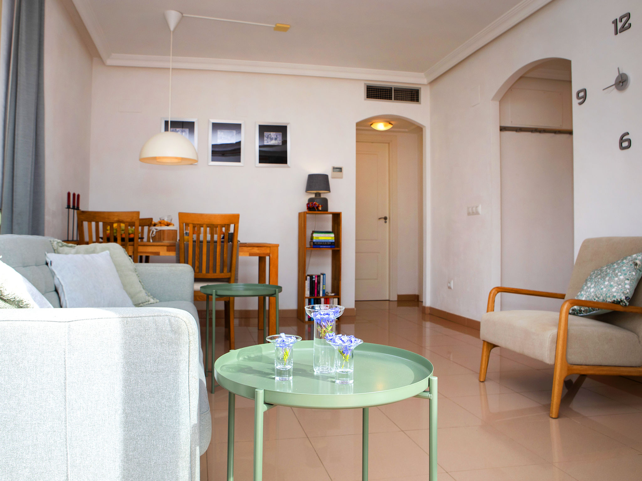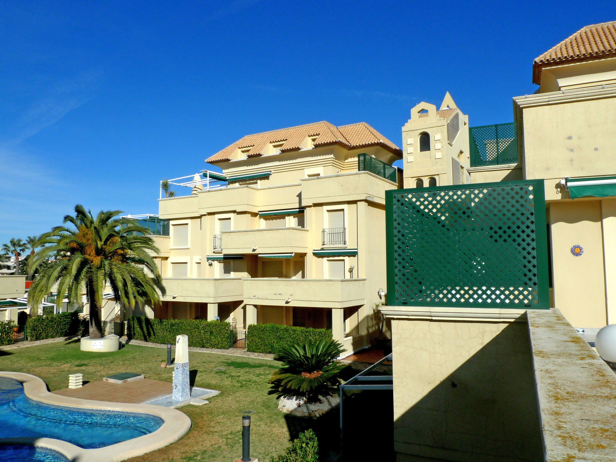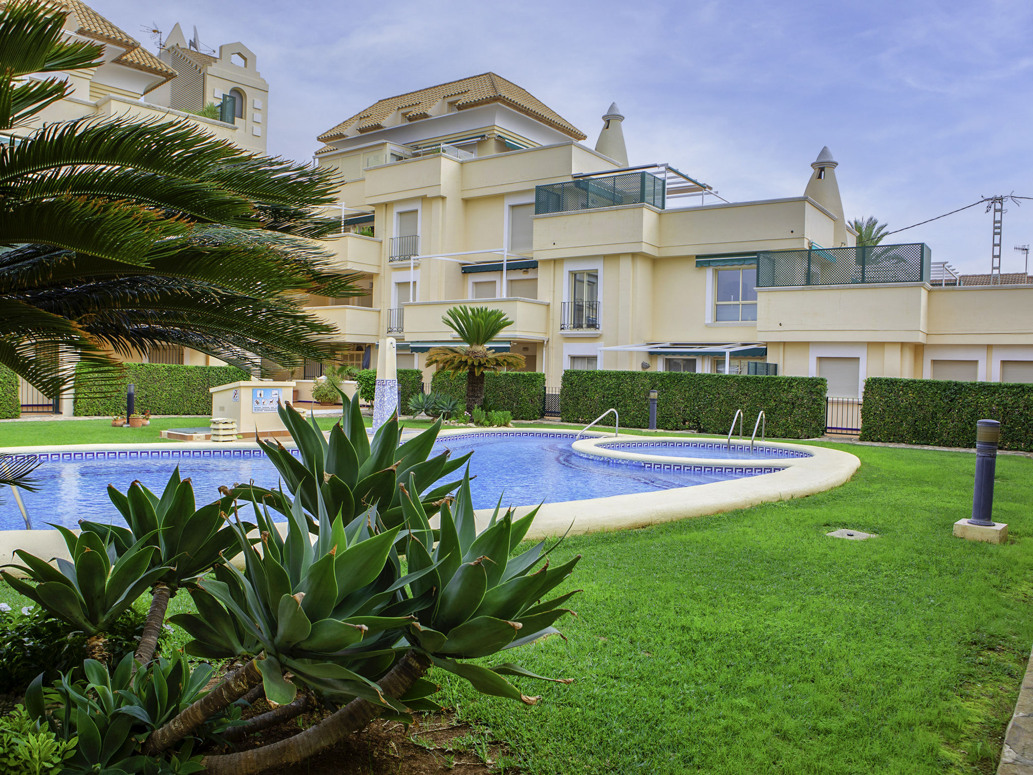 Gemütliches, komfortables Appartementhaus "Medina del Sol I". 4.5 km vom Zentrum von Denia, ruhige Lage, 230 m vom Meer, 230 m vom Strand. Zur Mitbenutzung: Garten (eingezäunt) mit Rasen und Blumen, Schwimmbad (15 x 7 m, 110 - 210 cm tief, saisonale Verfügbarkeit: 01.Jan.-31.Dez.) mit Innentreppe. Kinderbecken, Aussendusche, öffentliches Parkhaus. Supermarkt, Restaurant, Bar, Café, Bushaltestelle 150 m, Sandstrand 230 m. Sporthafen 4.5 km, Tennis 3 km. Der Besitzer akzeptiert keine Jugendgruppen.