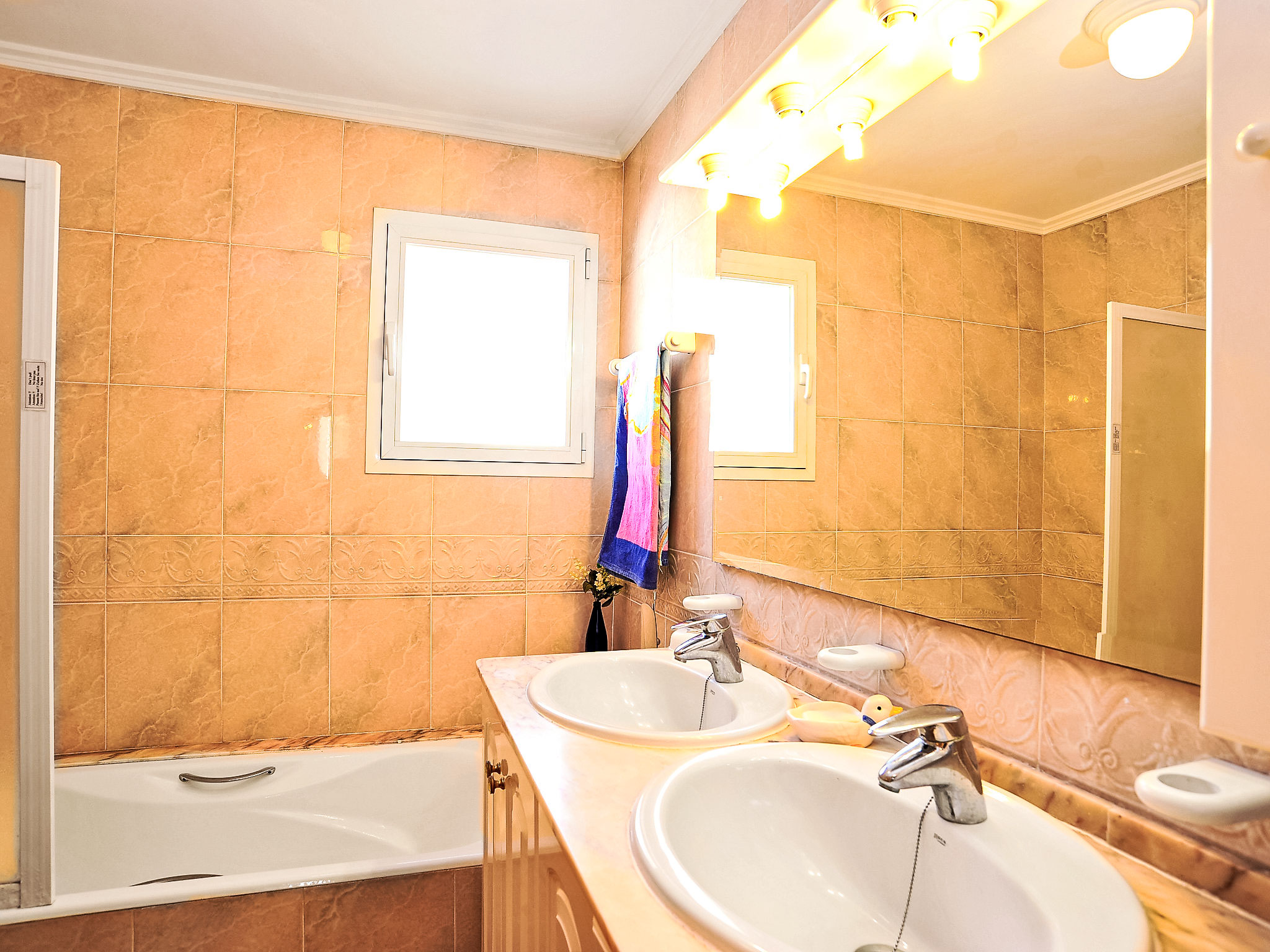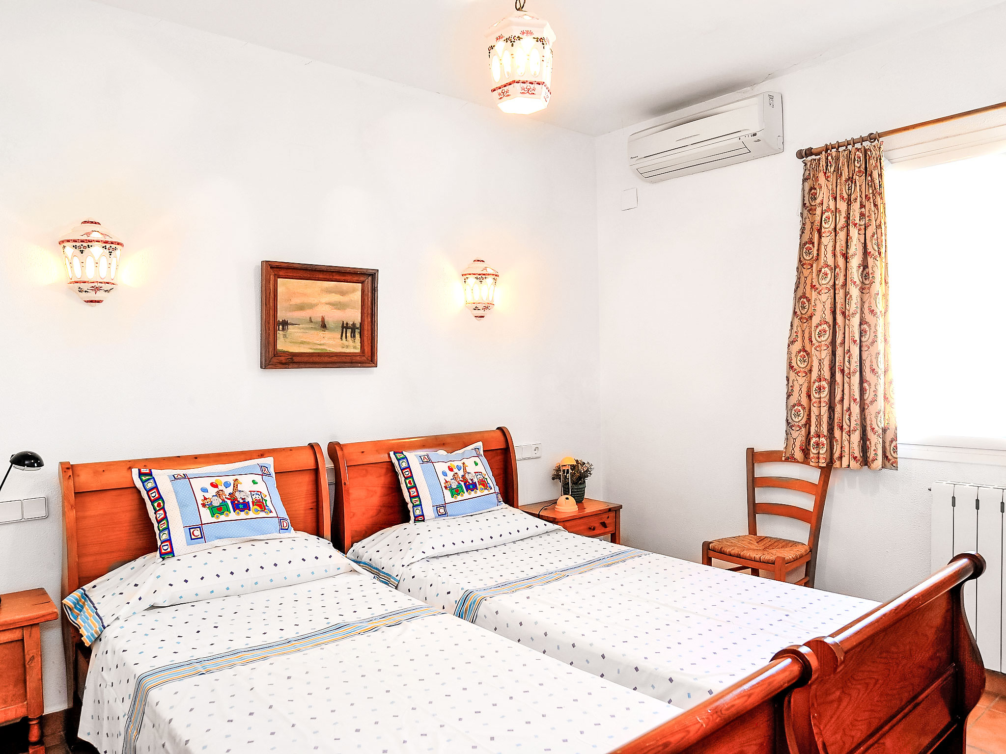 "El sueno de Jeanne-Marie", 3-Zimmer-Haus 100 m2. Schön und gemütlich eingerichtet: Wohn-/Esszimmer 24 m2 mit Sat-TV und Klimaanlage. Ausgang zur Terrasse, zur Veranda. 1 Zimmer mit 2 Betten und Klimaanlage. 1 Zimmer mit 1 franz. Bett und Klimaanlage. Küche (Backofen, Geschirrspüler, Mikrowelle, Tiefkühler). Ausgang zur Terrasse. Bad/Bidet/WC, Dusche/WC. Klimaanlage. Gartensitzplatz. Terrassenmöbel, Gartengrill, Liegestühle. Zur Verfügung: Waschmaschine. Internet (Wireless LAN, gratis). Parkplatz (2 Autos). Bitte beachten: geeignet für Familien. TV nur ES, DE, NL. AT-451757-A