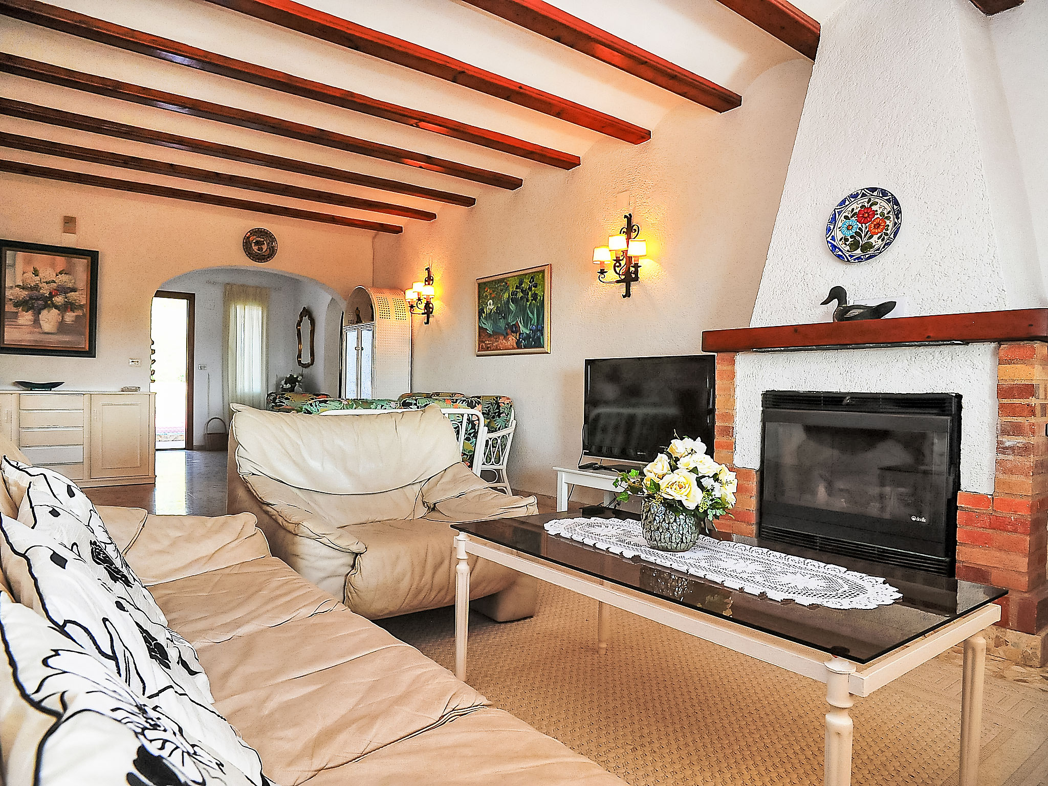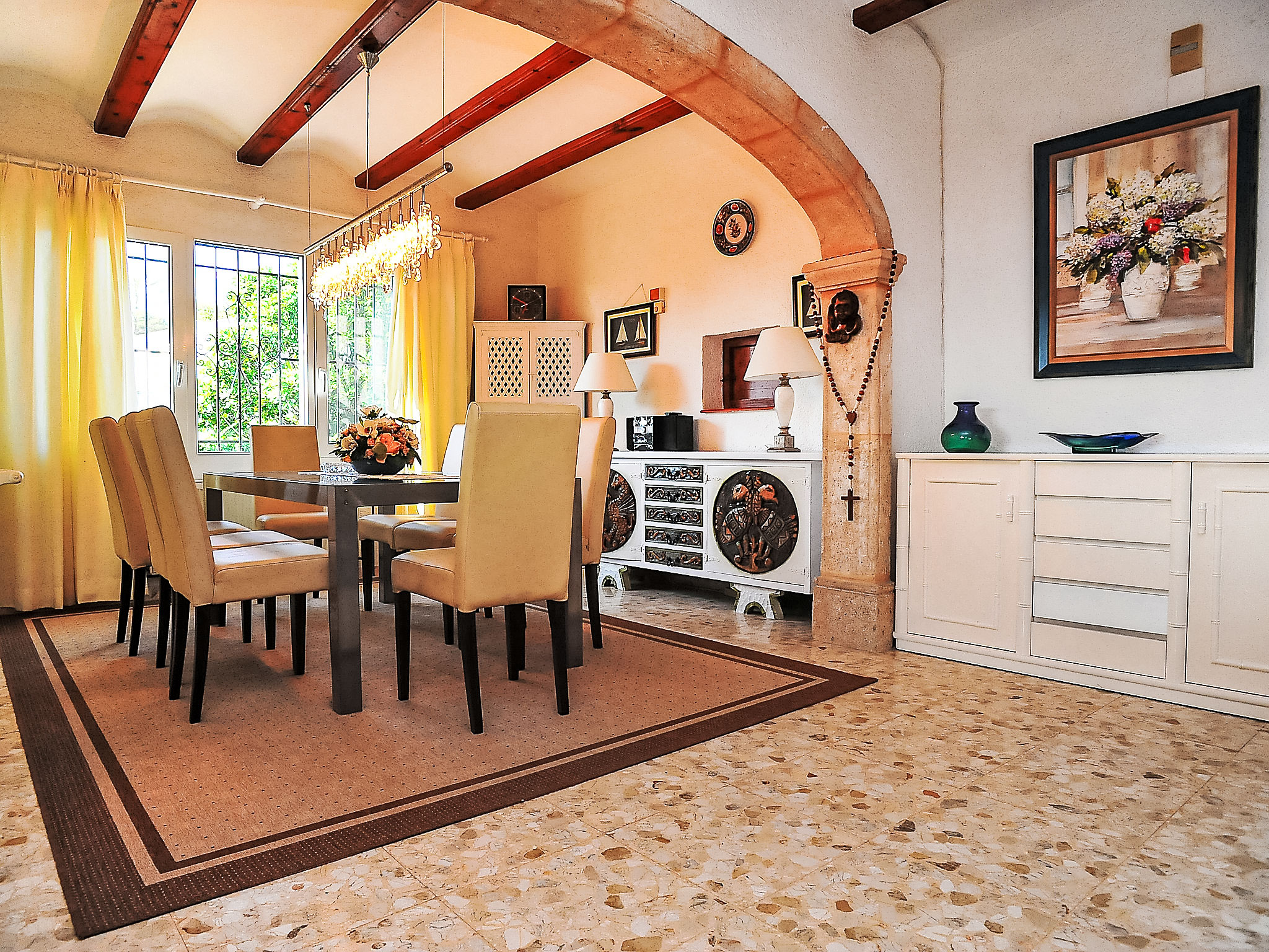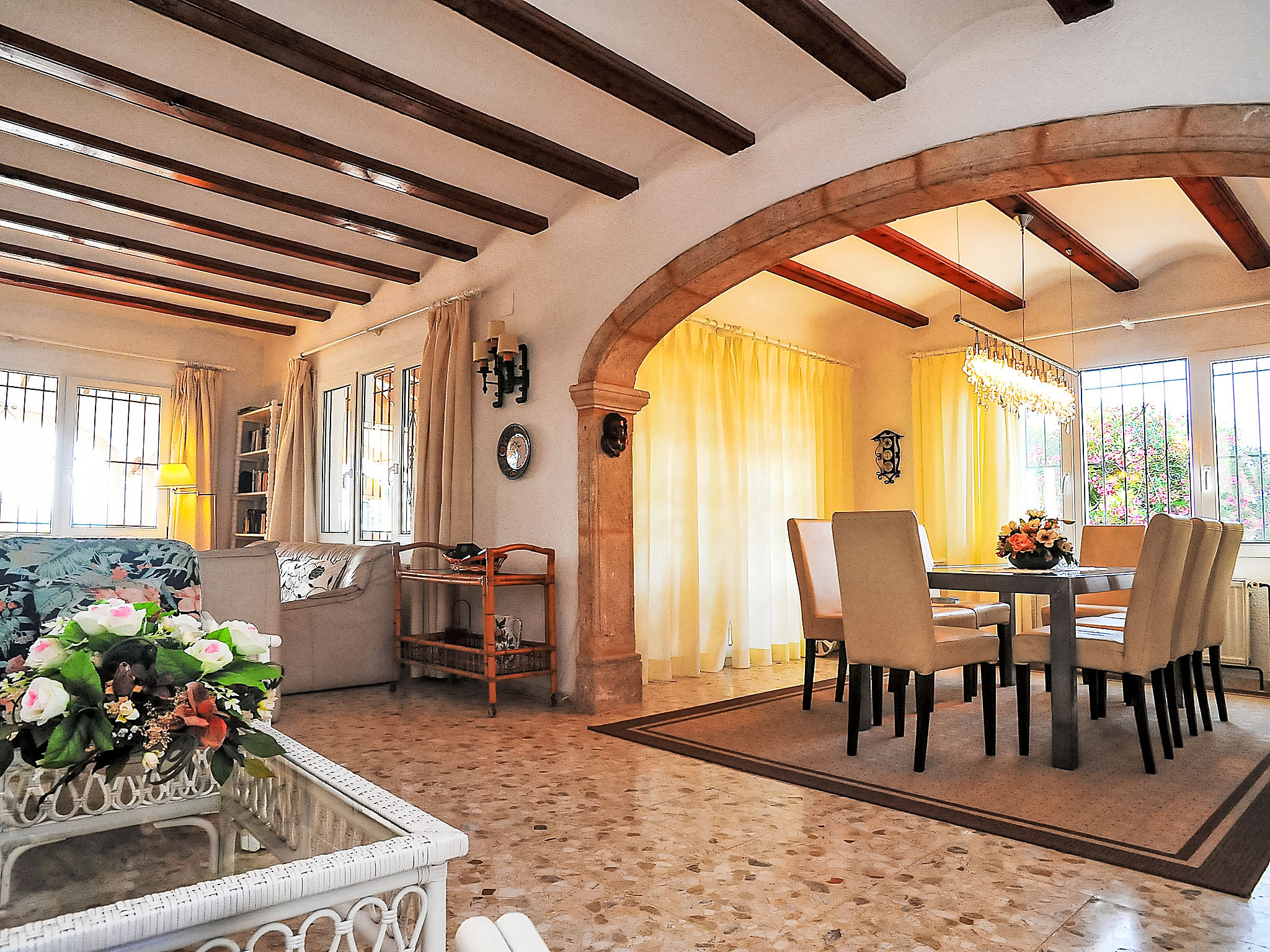 Schönes Haus "Portichol". Im Ortsteil Portichol, 4 km vom Meer. Zur Alleinbenutzung: grosser, schöner, gepflegter Garten 2'500 m2 (eingezäunt) mit Rasen und Pflanzen, Schwimmbad (5 x 10 m, 01.01.-31.12.). Tennis (1 x Hartbelag). Im Hause: Sonnenterrasse, Zentralheizung. Einkaufsgeschäft 4 km, Supermarkt 1.7 km, Restaurant 1.4 km, Sandstrand "Arenal" 4 km. Jugendgruppen nur auf Anfrage.