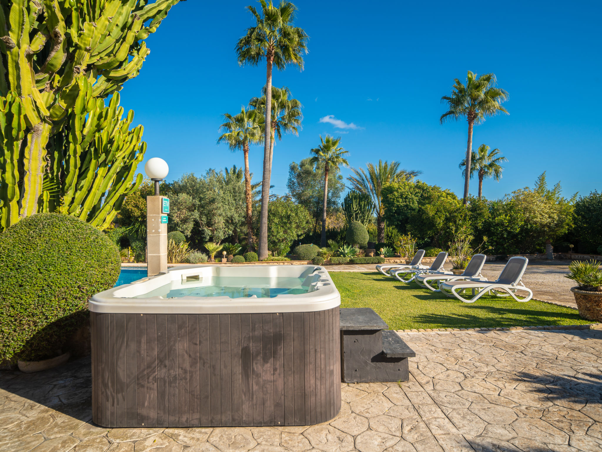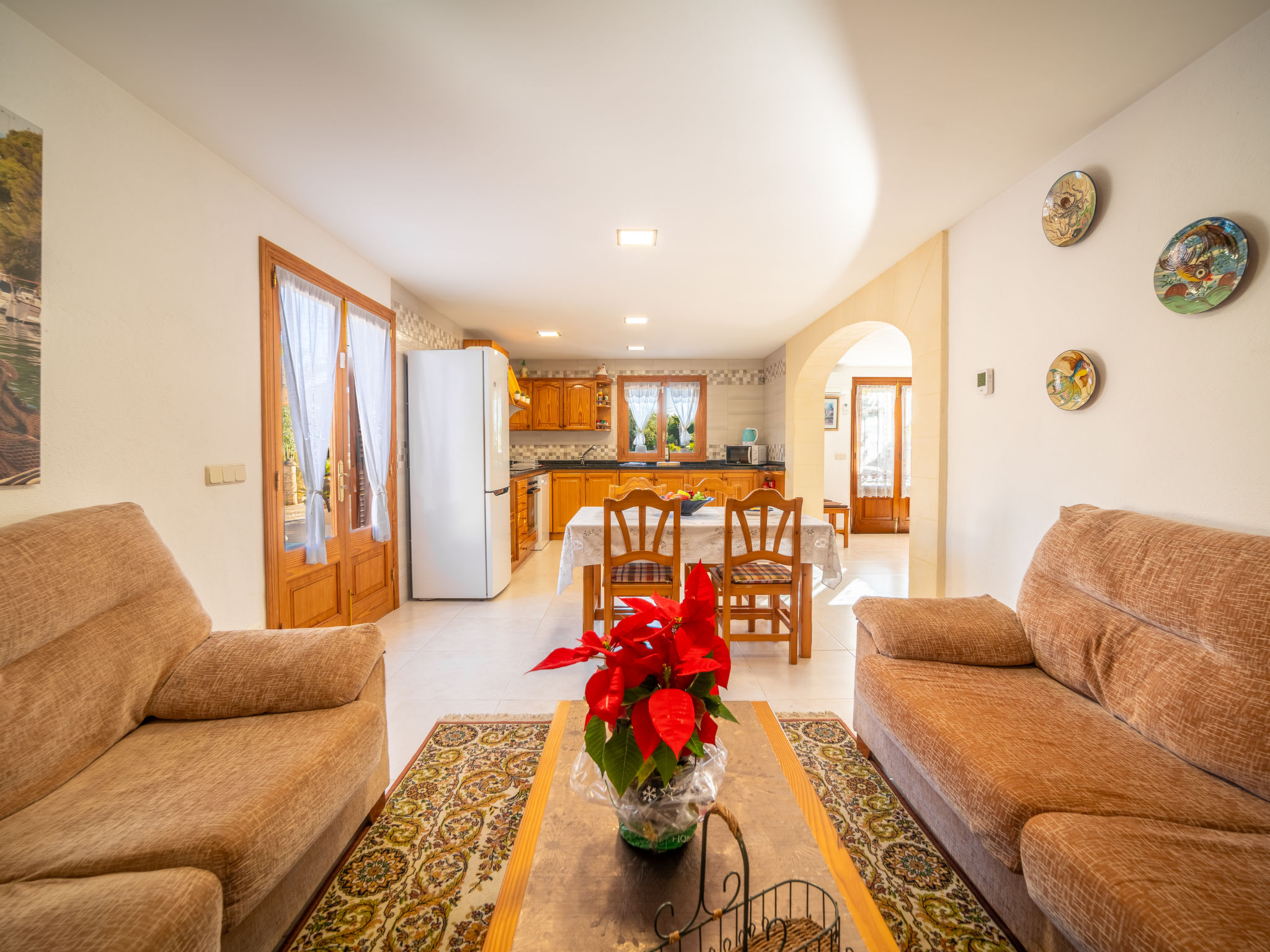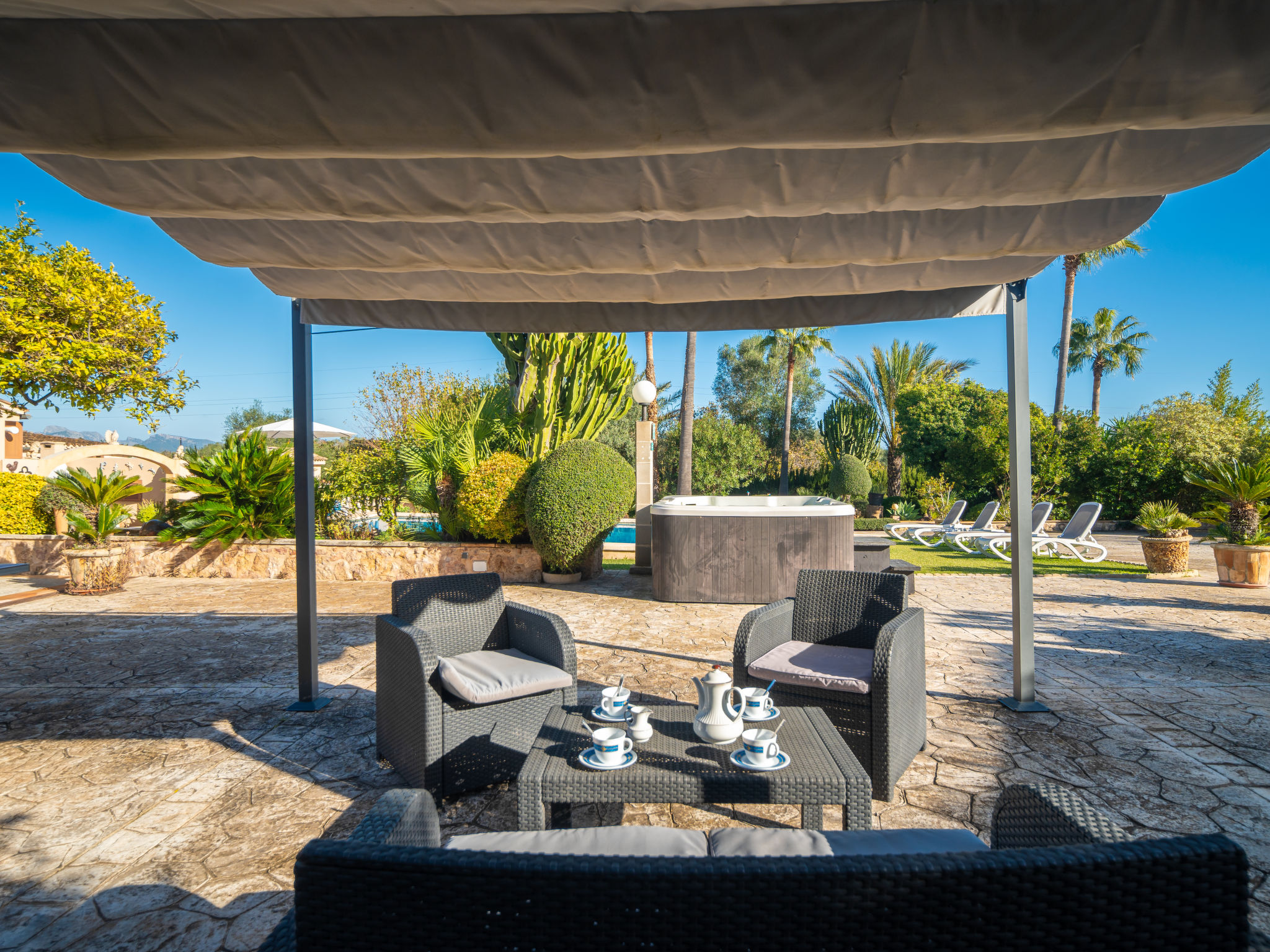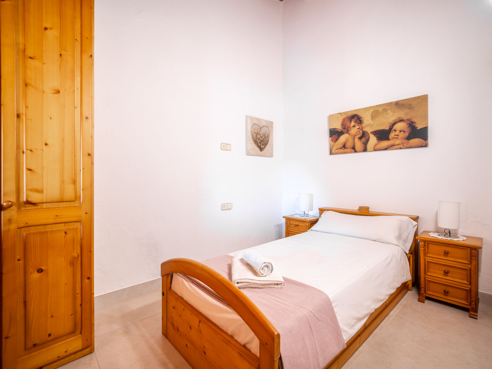 4 km von Alcúdia: Rustikaler, komfortabler Finca "Ca Na Guerrera", auf 2 Stockwerken, renoviert im Jahre 2018, umgeben von Bäumen und Feldern. Ausserhalb des Ortes, 4 km vom Zentrum von Alcudia, ruhige, sonnige Lage, 7 km vom Meer, an einer Strasse. Zur Alleinbenutzung: Grundstück 13'000 m2 (eingezäunt) mit Rasen und Pflanzen, Obstgarten (eingezäunt), wunderschöner Garten zum Entspannen, Schwimmbad eckig (9 x 4 m, 20.03.-07.11.). Dusche/WC im Poolbereich, Aussendusche, Sprudelbad, Sitzplatz (500 m2), Pergola (15 m2), Gartenmöbel, Grill (Schaukel). Im Hause: Internetzugang, Wireless LAN, Klimaanlage, Waschmaschine. Schmale Zufahrt. Parkplatz beim Haus auf dem Grundstück. Einkaufsgeschäft 6 km, Lebensmittelgeschäft 6 km, Restaurant 6 km, Bushaltestelle "Alcudia" 6 km, Bahnstation 10 km, Sandstrand "Bahia de Alcudia" 7 km, Kieselstrand 8 km, Felsstrand 8 km. Sporthafen 6 km, Jacht-Hafen 6 km, Golfplatz (18 Loch) 6 km, Tennis 8 km, Reitstall 5 km. Bitte beachten: Fahrzeug empfohlen. Geeignet für Familien, geeignet für Senioren. Objekt geeignet für 7 Erwachsene Jugendgruppen nur auf Anfrage. Be- und Entladen am Ferienhaus möglich. Hinter dem Haus werden in einem Gehege mit direktem Zugang zum Garten 5 Ponies gehalten.