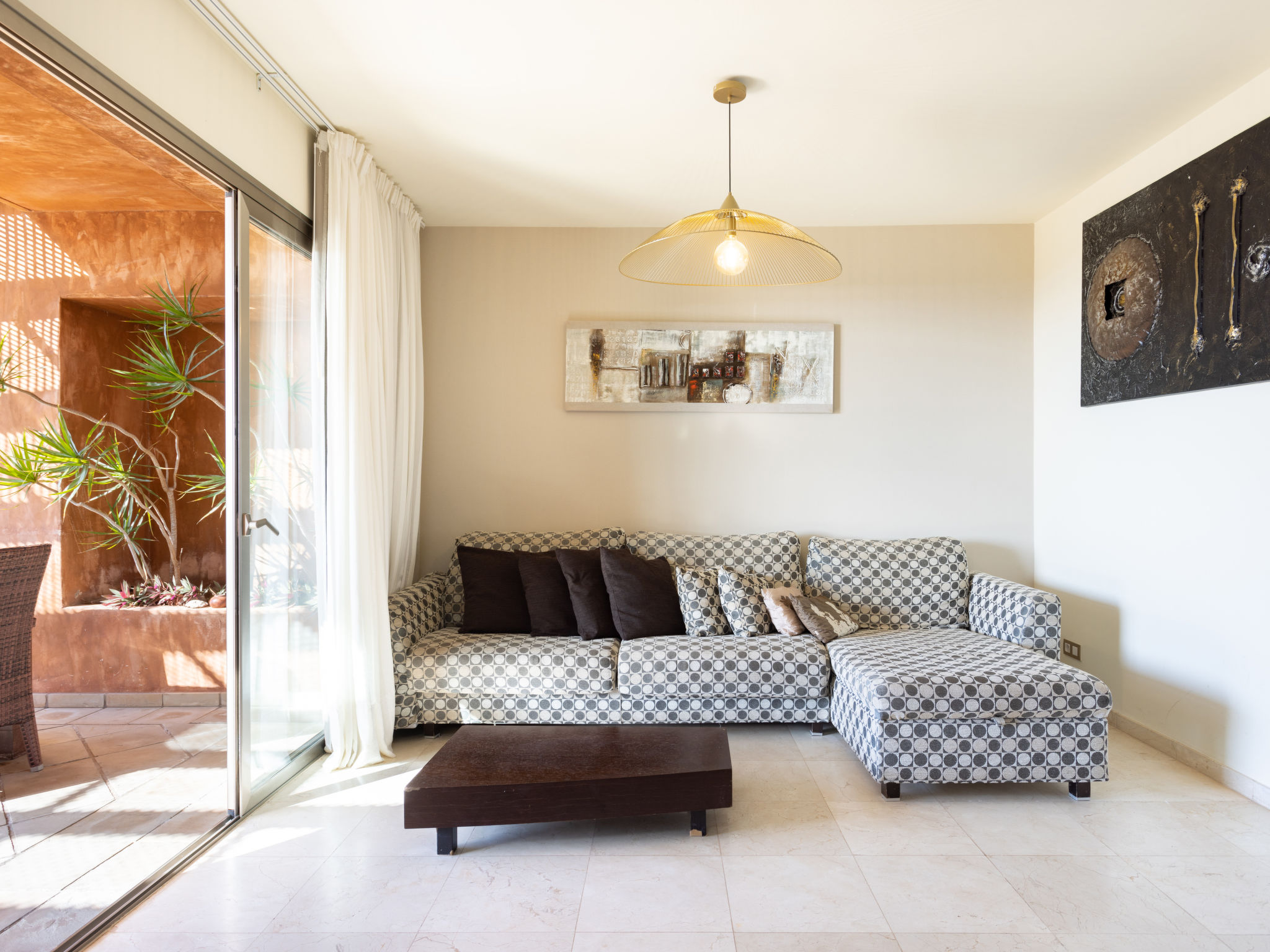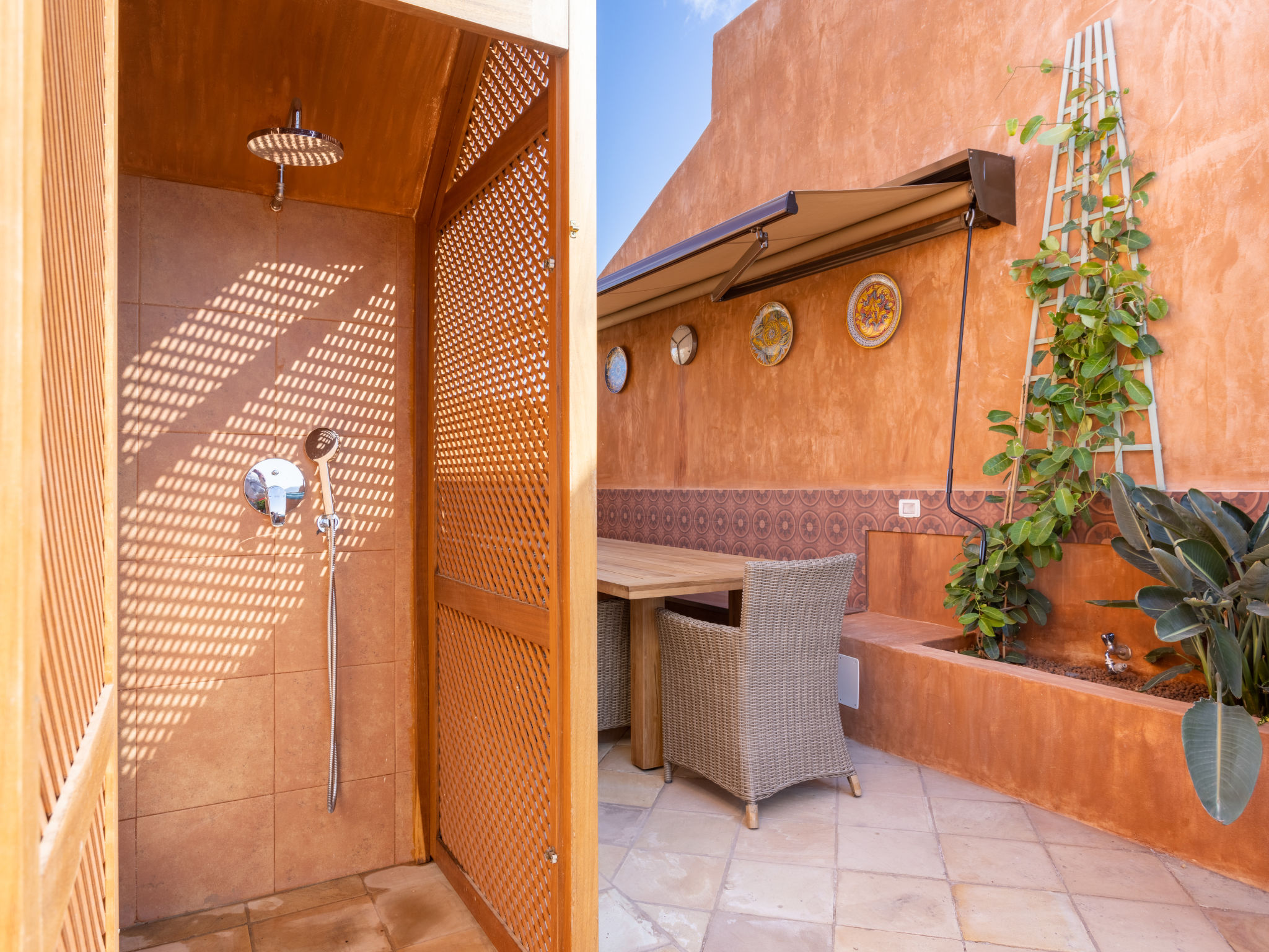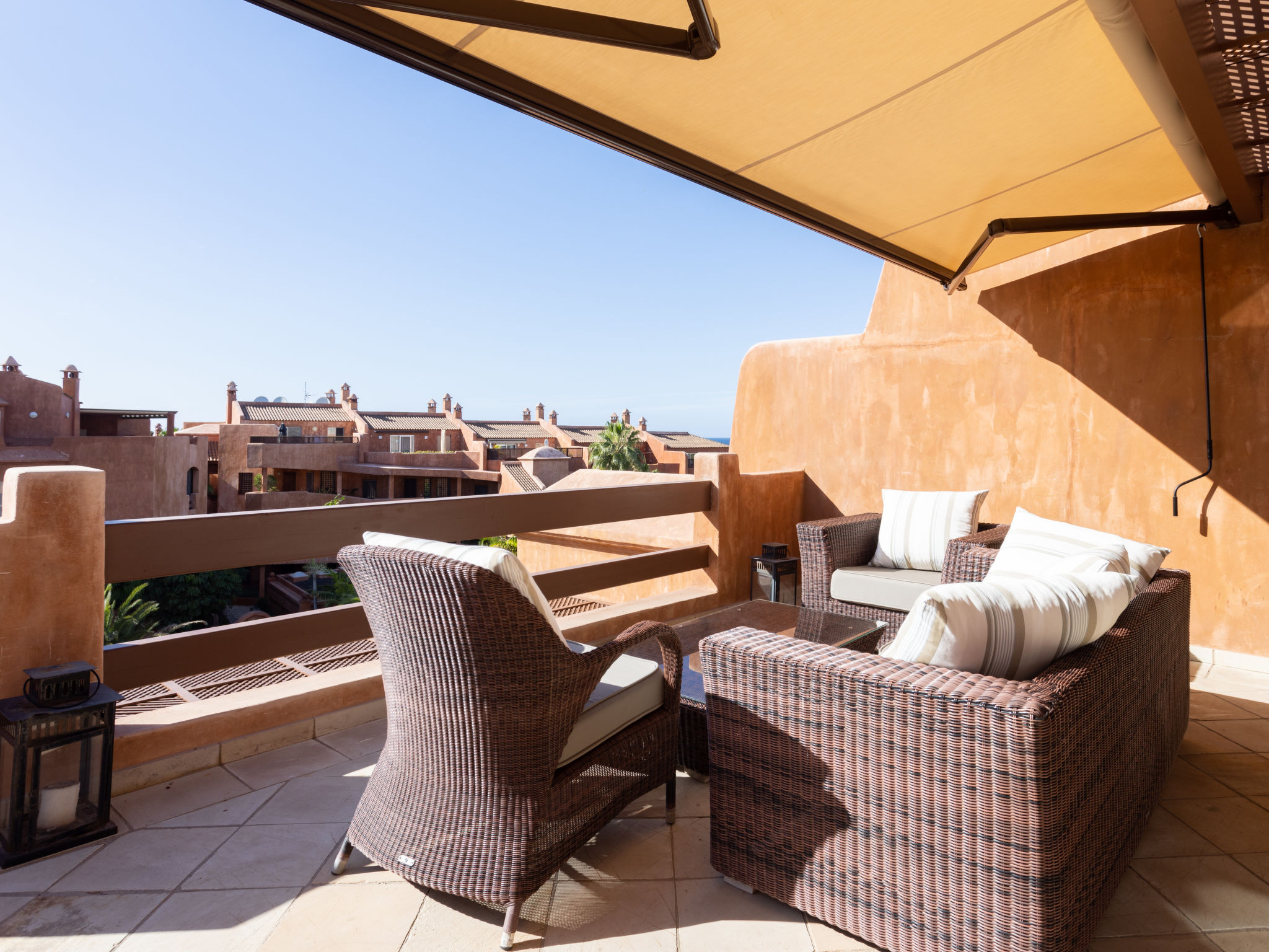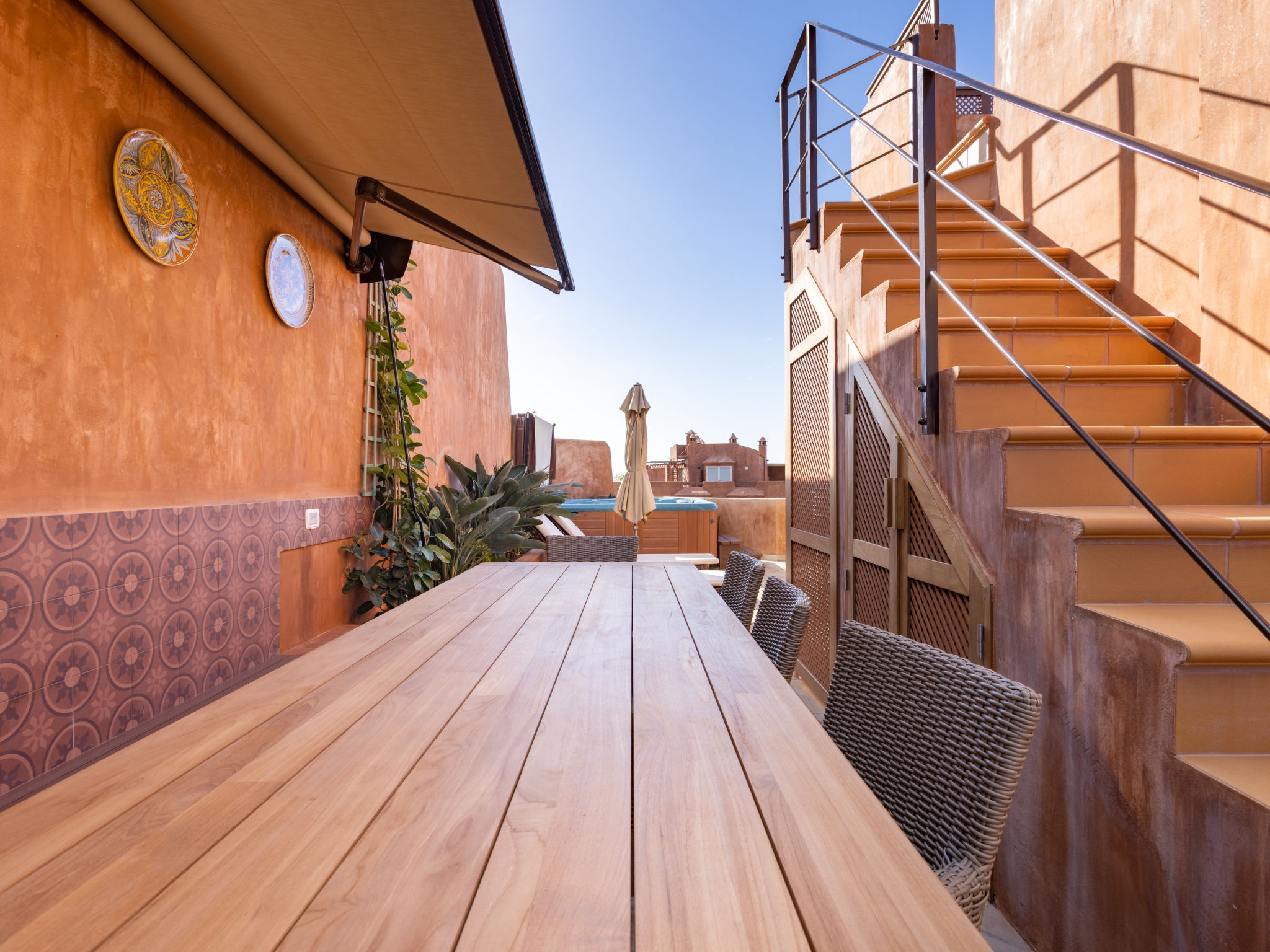 Modernes, gemütliches, komfortables Appartementhaus "Duplex Bencomo", auf 2 Stockwerken, Baujahr 2006. Im Ort, ruhige, sonnige Lage, 200 m vom Meer, 200 m vom Strand. Zur Mitbenutzung: schöner, gepflegter Terrassengarten, 3 Schwimmbäder beheizt (120 - 160 cm tief, saisonale Verfügbarkeit: 01.Jan.-31.Dez.). Dusche/WC im Poolbereich, Kinderbecken. Im Hause: Fahrstuhl. Parkplatz (für 2 Autos, überdacht). Supermarkt, Restaurant, Bushaltestelle 300 m, Steinstrand 200 m. Bewachte Residenz.
