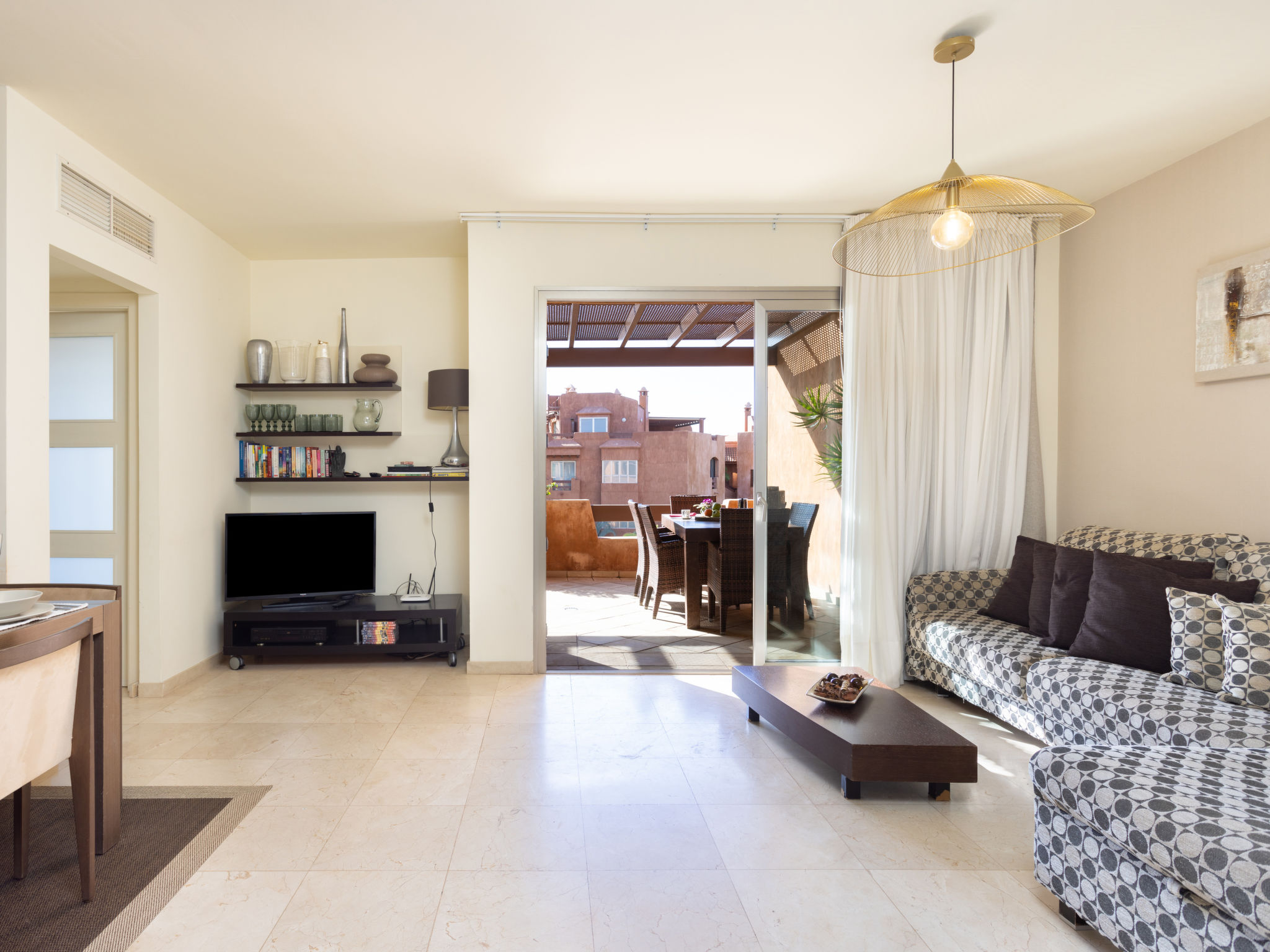 3-Zimmer-Maisonette-Wohnung 100 m2 auf 2 Stockwerken, im Dachgeschoss. Hell, modern und luxuriös eingerichtet: Wohn-/Esszimmer mit 1 Doppeldiwanbett und Sat-TV (Flachbildschirm). Ausgang zur Terrasse. 1 Doppelzimmer mit 1 franz. Bett (160 cm, Länge 200 cm), Bad/Dusche/WC und Sprudelbad. Ausgang zur Terrasse. Küche (Backofen, Geschirrspüler, 4 Glaskeramikherd Platten, Mikrowelle, Tiefkühler). Sep. WC. Obergeschoss: 1 Doppelzimmer mit 1 franz. Bett (180 cm, Länge 200 cm), Bad/Dusche/WC. Kleine Terrasse 22 m2, grosse Terrasse 60 m2. Terrassenmöbel, Liegestühle. Sicht auf das Meer, die Landschaft und die Ortschaft. Zur Verfügung: Waschmaschine, Bügeleisen, Haartrockner. Internet (Wireless LAN, gratis). Geeignet für Familien. VV-38-4-0091219