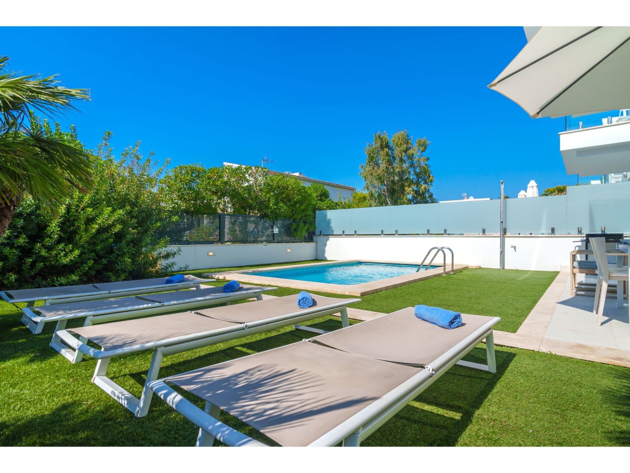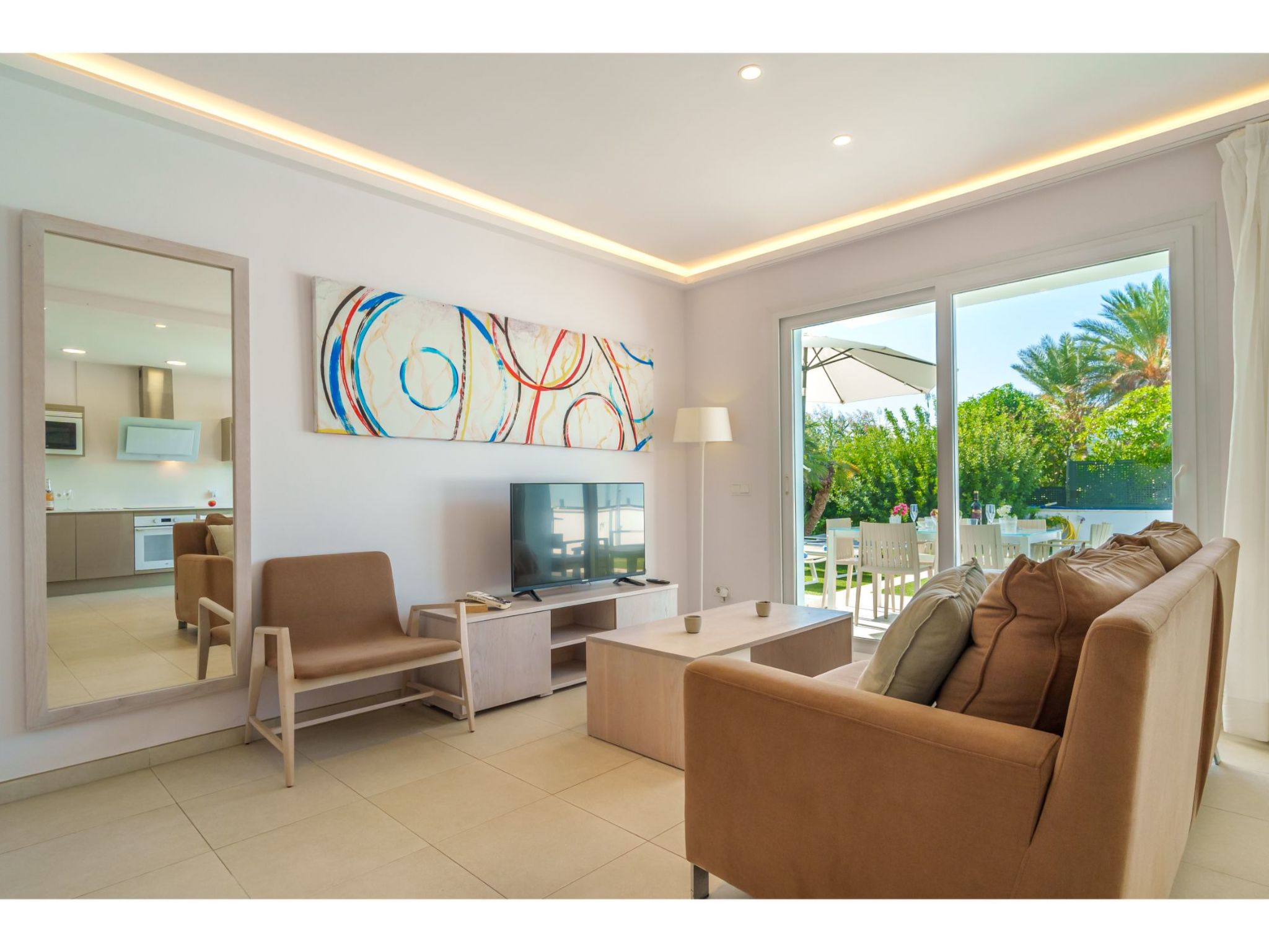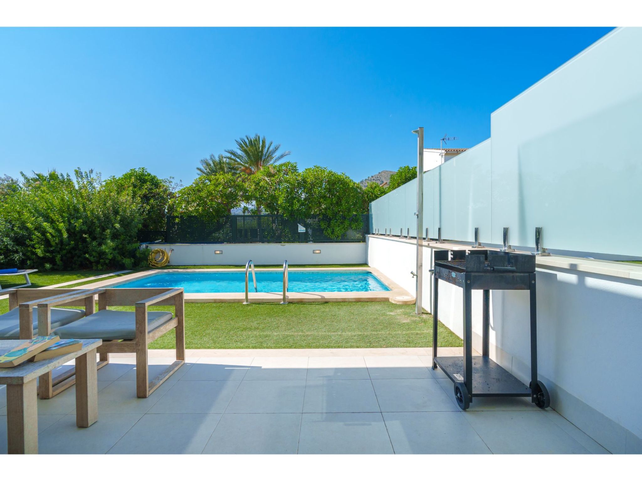 Port d'alcúdia: Das Haus kann vorübergehend gemietet werden, gesetzlich geregelt 29/ 24. November 1994, städtische Mieten. In diesem Haus werden keine touristischen Dienstleistungen angeboten. Sehr modernes, schönes Doppelhaus "Villa del Lago 4", auf 2 Stockwerken, einseitig angebaut, Baujahr 2017. 4 Häuser im Ferienresort. Im Ort, ruhige, sonnige Lage, 900 m vom Waldrand, 100 m vom Meer, 3 m vom See, 120 m vom Strand, 1 m direkt am Kanal, direkter Zugang zur Lagune. Zur Alleinbenutzung: schöner Garten mit Rasen und Pflanzen, Schwimmbad eckig (6 x 4 m, 01.01.-31.12.). Aussendusche, Sitzplatz, Gartenmöbel. Im Hause: Wireless LAN, Zentralheizung, Klimaanlage, Waschmaschine, Wäschetrockner. Einkaufsgeschäft, Lebensmittelgeschäft, Supermarkt, Restaurant, Bar 300 m, Zentrum zu Fuss in 15 Minuten erreichbar, Bushaltestelle 200 m, Sandstrand 120 m, Felsstrand 3 km, Badesee 3 m. Sporthafen 4.5 km, Jacht-Hafen 4.5 km, Golfplatz (18 Loch) 7 km, Tennis 1 km, Reitstall 2 km. Bitte beachten: geeignet für Familien, geeignet für Senioren. Objekt geeignet für 6 Erwachsene Jugendgruppen nur auf Anfrage. Flugplatz 50 km vom Haus. In dieser Anlage zusätzlich mietbar: 4 Häuser.