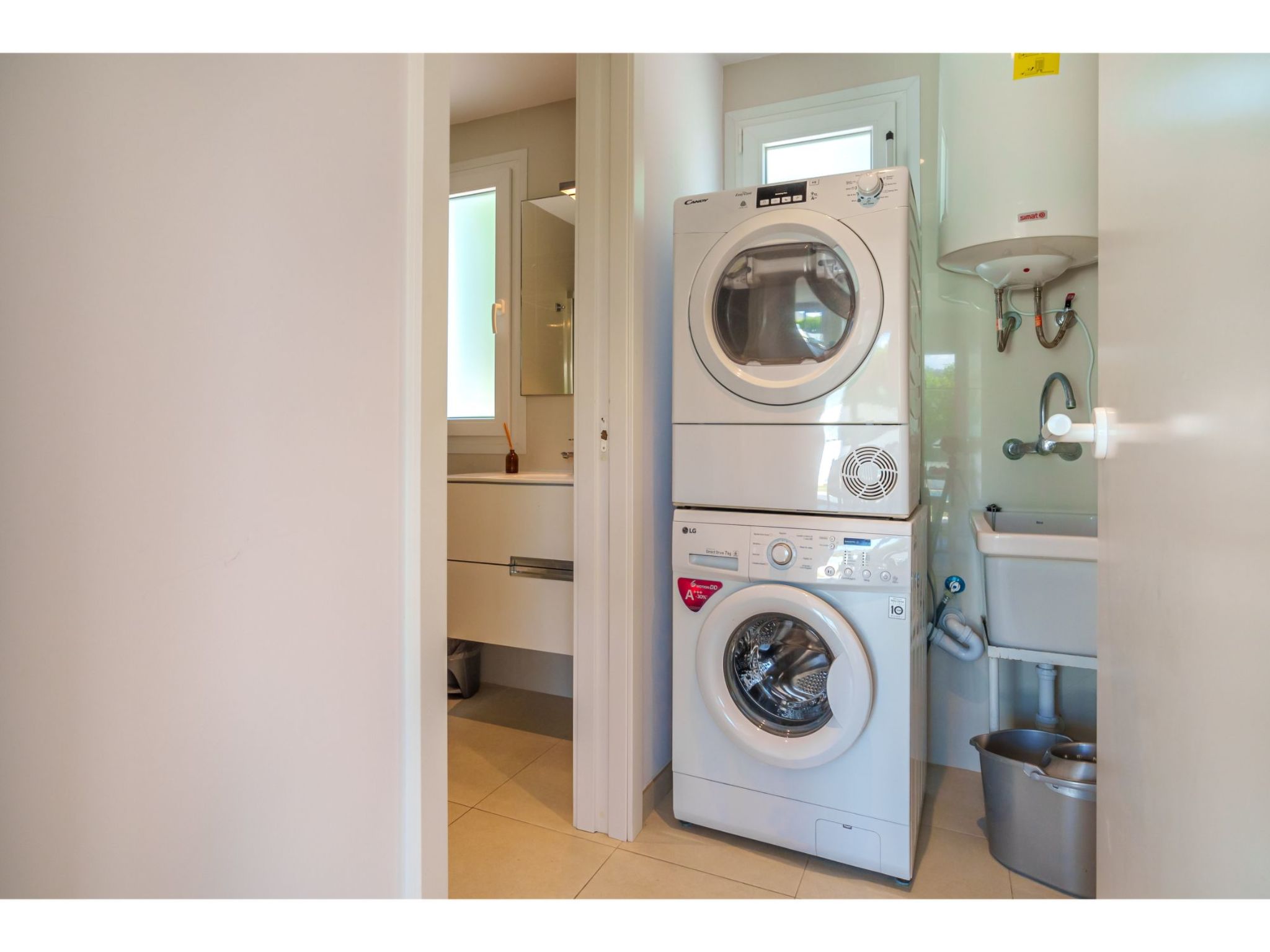 "Villa del Lago 4", 4-Zimmer-Doppelhaushälfte 110 m2 auf 2 Stockwerken. Objekt geeignet für 6 Erwachsene. Sehr komfortabel und stilvoll eingerichtet: offenes Wohn-/Esszimmer mit Schiebetür, Panoramafenster mit Esstisch, Digital-TV, Flachbildschirm, Klimaanlage und Warmluftheizung. Ausgang zum Gartensitzplatz, zum Schwimmbad. Offene Küche (Backofen, Geschirrspüler, 3 Glaskeramikherd Platten, Toaster, Wasserkocher, Mikrowelle, Tiefkühler, elektrische Kaffeemaschine) mit Esstisch, Klimaanlage und Warmluftheizung. Ausgang zum Gartensitzplatz, zum Schwimmbad. Bad/Dusche/WC. Obergeschoss: 2 grosse Doppelzimmer mit Schiebetür, Panoramafenster, jedes Zimmer mit 1 franz. Bett, Klimaanlage und Warmluftheizung. Ausgang zum Balkon. 1 Zimmer mit Panoramafenster mit 1 Ausziehbett (2 x 90 cm), TV, Klimaanlage und Warmluftheizung. Bad/Dusche/WC. Grosser Balkon, Gartensitzplatz, Rasen, Laube. Terrassenmöbel, Balkonmöbel, Liegestühle. Schöne Sicht auf den See, die Berge und den Kanal. ETV14345