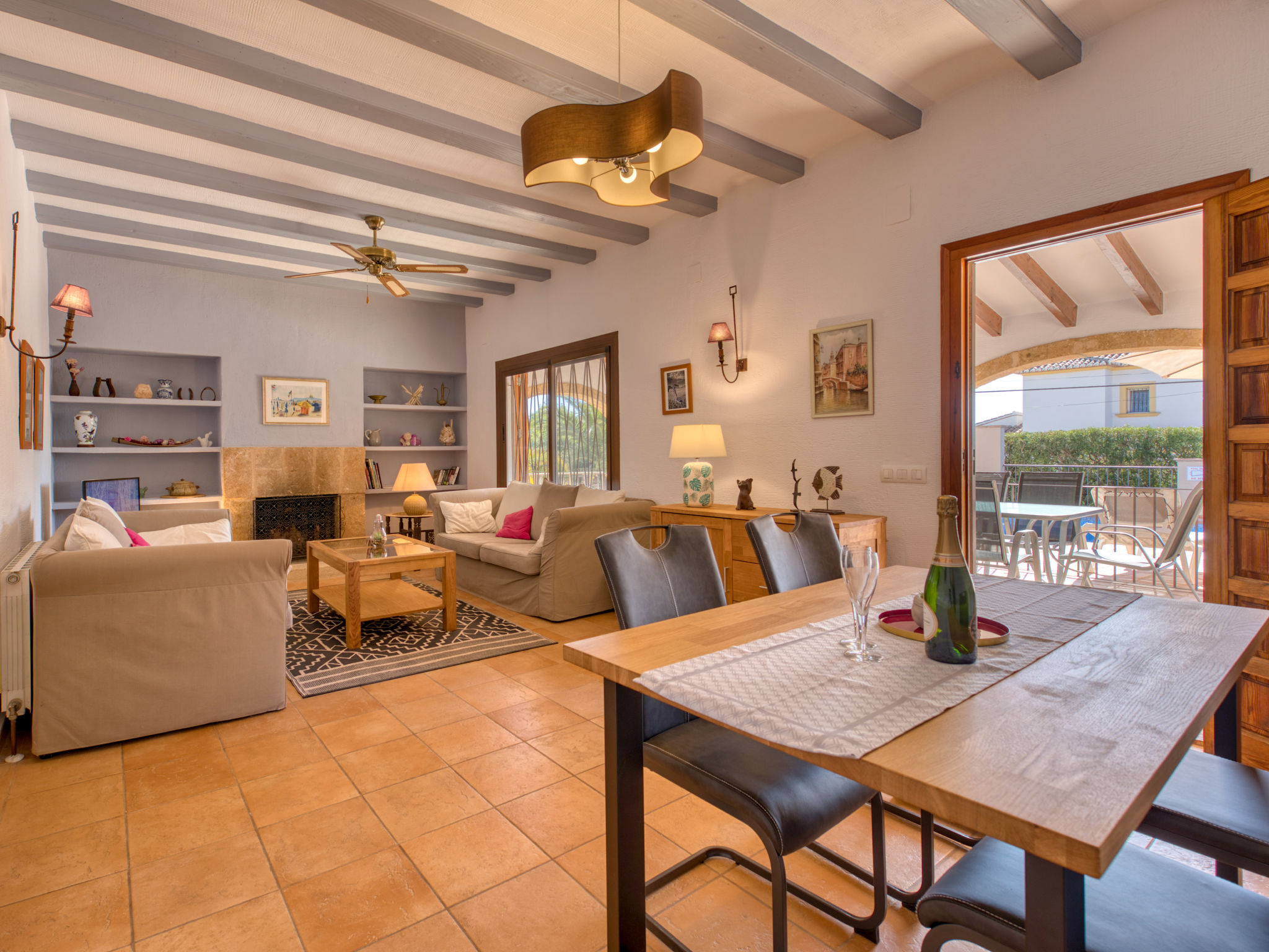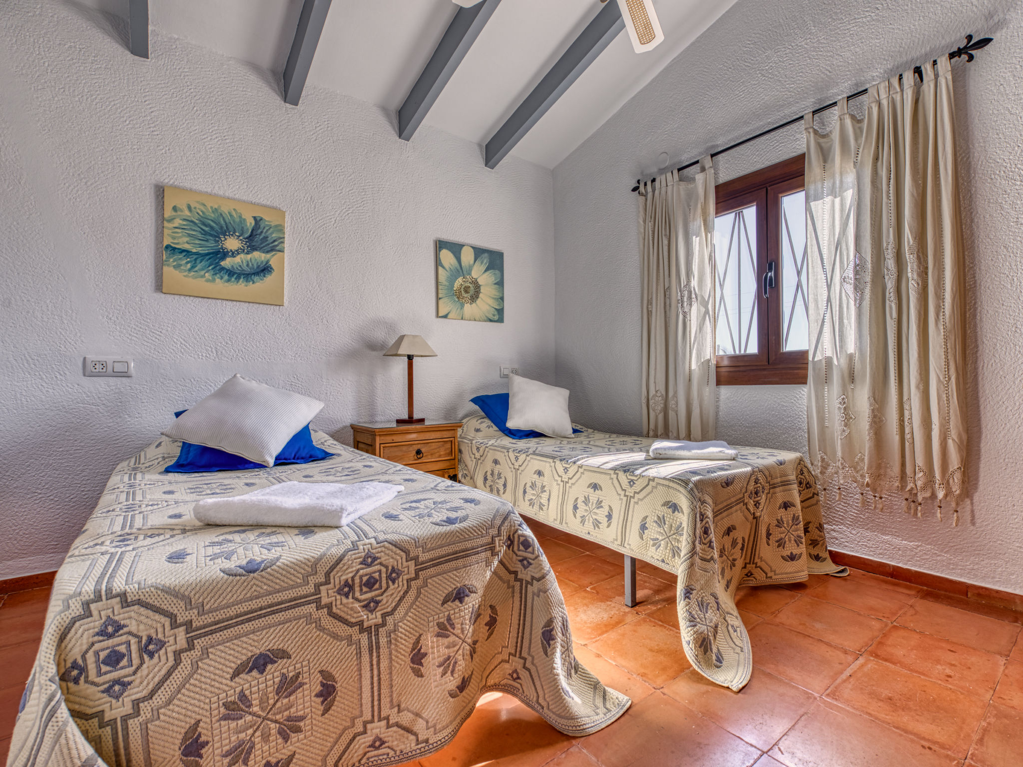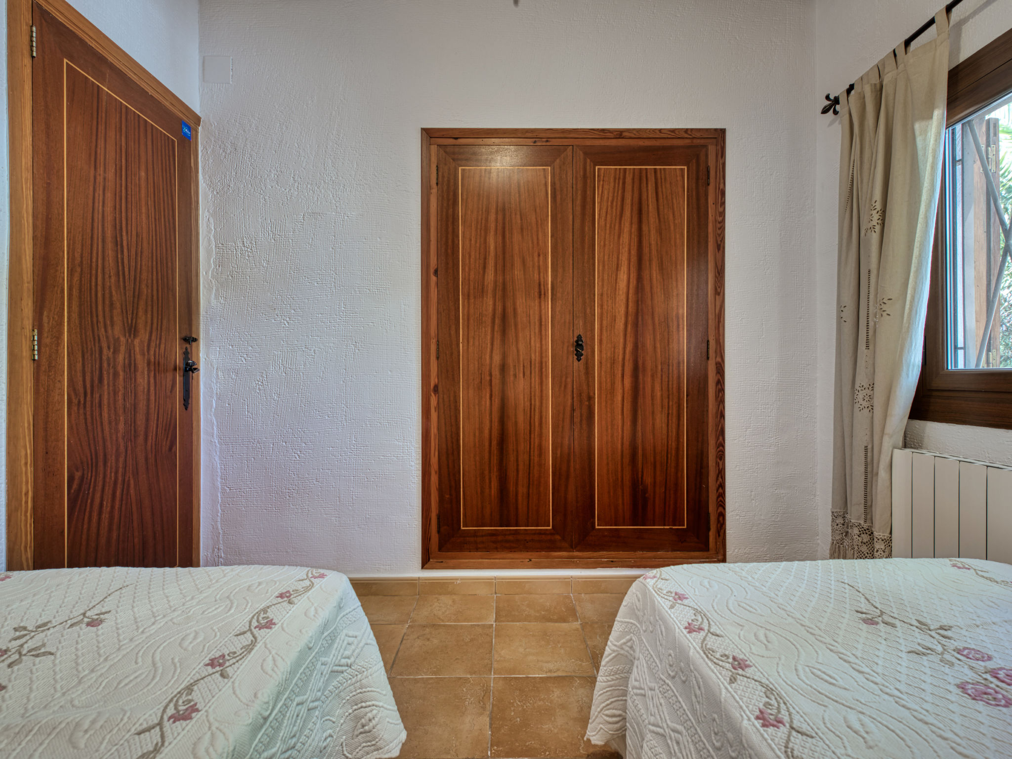 5-Zimmer-Haus 180 m2. Zweckmässig eingerichtet: Wohn-/Esszimmer mit offenem Kamin, Sat-TV und Digital-TV (Flachbildschirm), Ventilator. Ausgang zur Terrasse. 1 Zimmer mit 1 franz. Bett, Bad/Dusche/WC, Doppelwaschbecken und Ventilator. 1 Zimmer mit 2 Betten und Ventilator. Grosse Küche (Backofen, Geschirrspüler, Mikrowelle, Tiefkühler, elektrische Kaffeemaschine). Dusche/WC. Obergeschoss: 1 Zimmer mit 1 franz. Bett und Ventilator. 1 Zimmer mit 2 Betten und Ventilator. Dusche/WC. Terrassenmöbel, Gartengrill, Liegestühle (8). Sicht auf die Landschaft. Zur Verfügung: Waschmaschine, Kinderhochstuhl, Babybett bis 2 Jahre. Internet (Wireless LAN, gratis). Parkplatz (eingezäunt, 2 Autos) beim Haus. Bitte beachten: Nichtraucher-Unterkunft. 1 Haustier/Hund erlaubt. TV nur ES. AT-438544-A