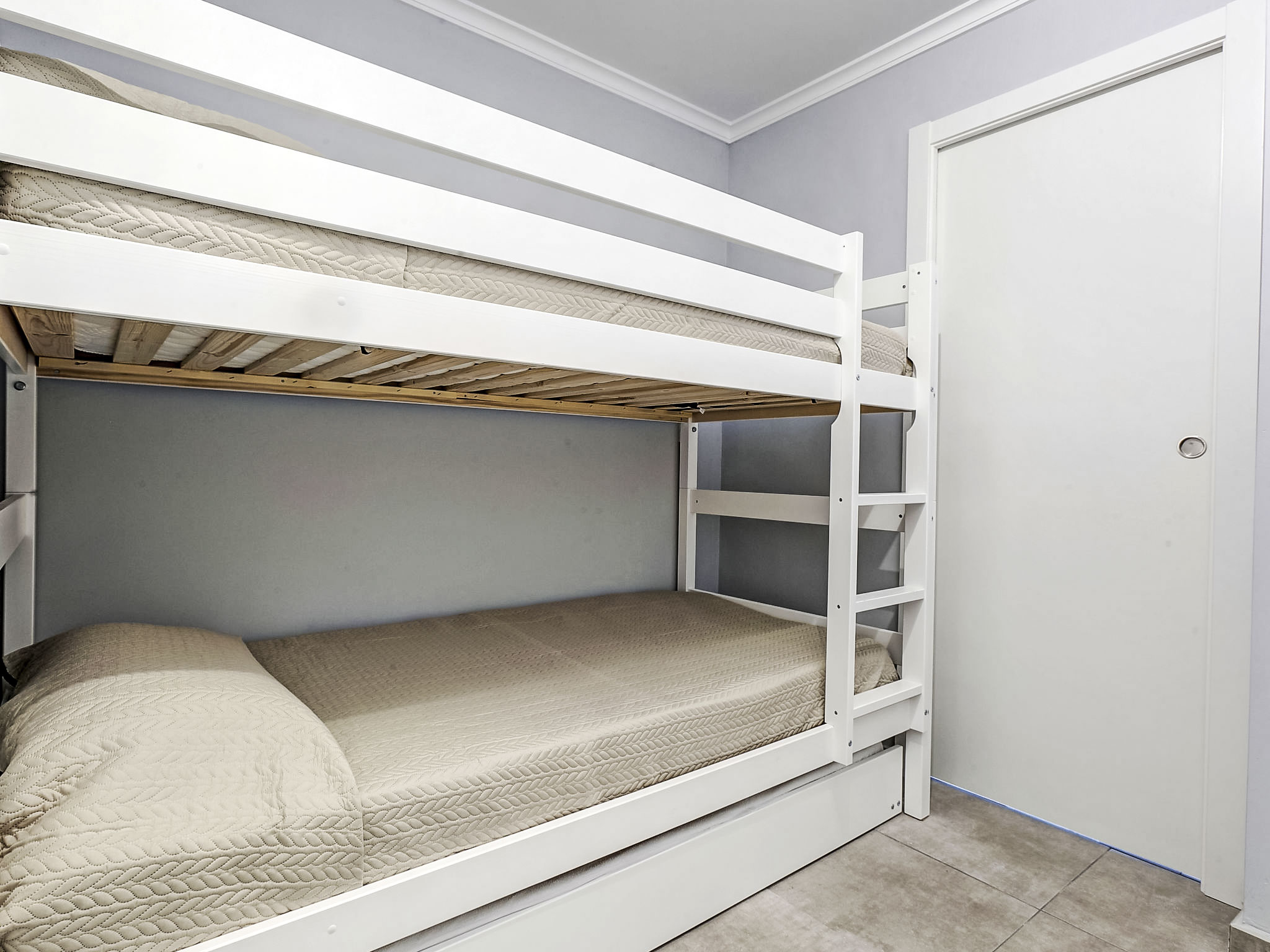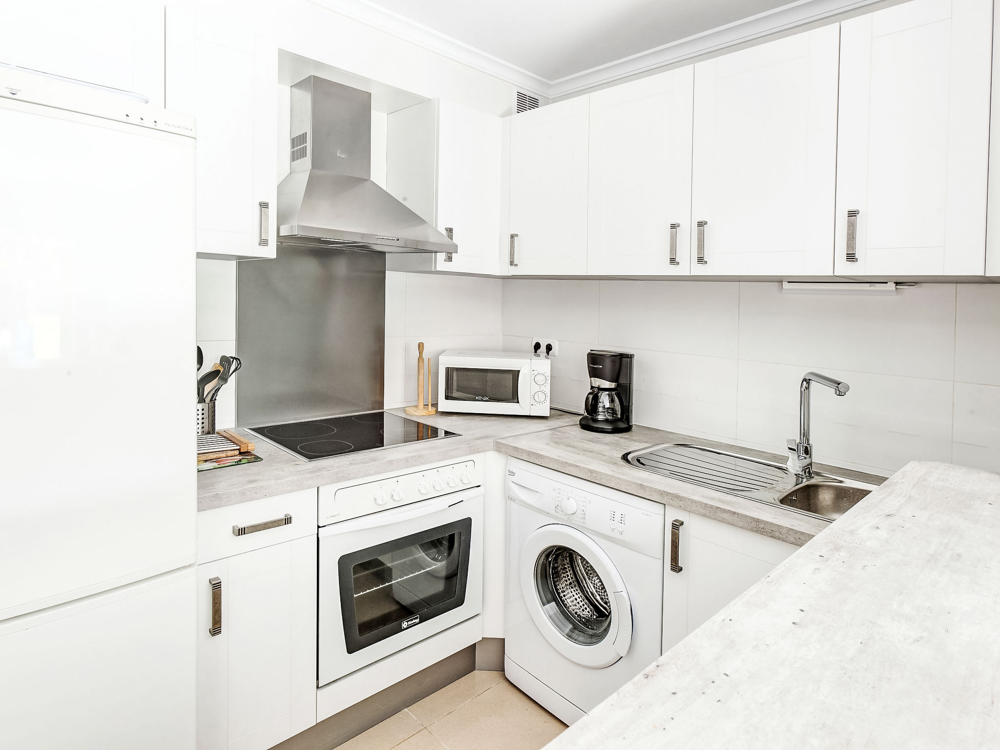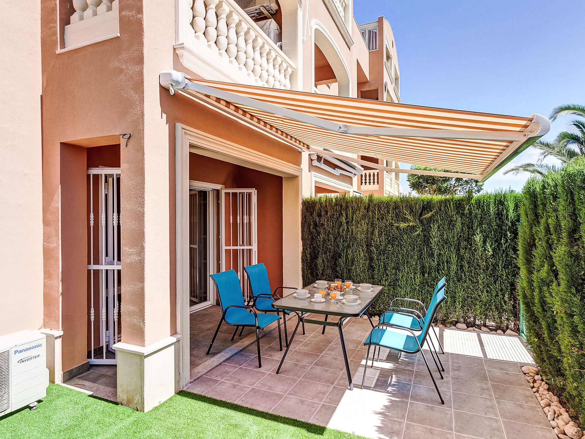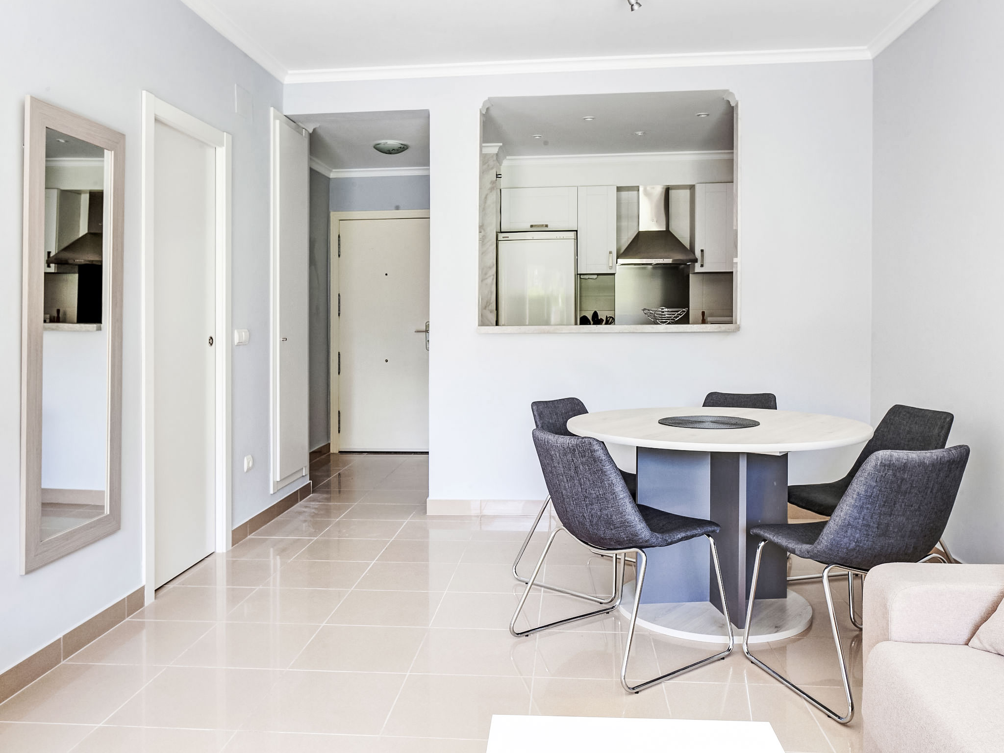 "Rincón del Mediterráneo", 3-Zimmer-Wohnung 47 m2, im Erdgeschoss. Komfortabel und gemütlich eingerichtet: Wohn-/Esszimmer mit Digital-TV, Flachbildschirm, Klimaanlage und Warmluftheizung. Ausgang zur Terrasse, zum Schwimmbad. 1 Zimmer mit 1 franz. Bett (150 cm, Länge 190 cm), Klimaanlage und Warmluftheizung. 1 Zimmer mit 1 x 2 Etagenbetten (90 cm, Länge 200 cm), 1 Ausziehbett (1 Pers. 2 x 90 cm, Länge 200 cm). Offene Küche (Backofen, 4 Glaskeramikherd Platten, Mikrowelle, Tiefkühler, elektrische Kaffeemaschine) mit Klimaanlage und Warmluftheizung. Dusche/WC. Terrasse 15 m2. Terrassenmöbel. Sicht auf das Schwimmbad und den Garten. Zur Verfügung: Waschmaschine. Internet (Wireless LAN, gratis). Parkplatz Nr. 19 (überdacht). Bitte beachten: Nichtraucher-Haus. AT-458533-A