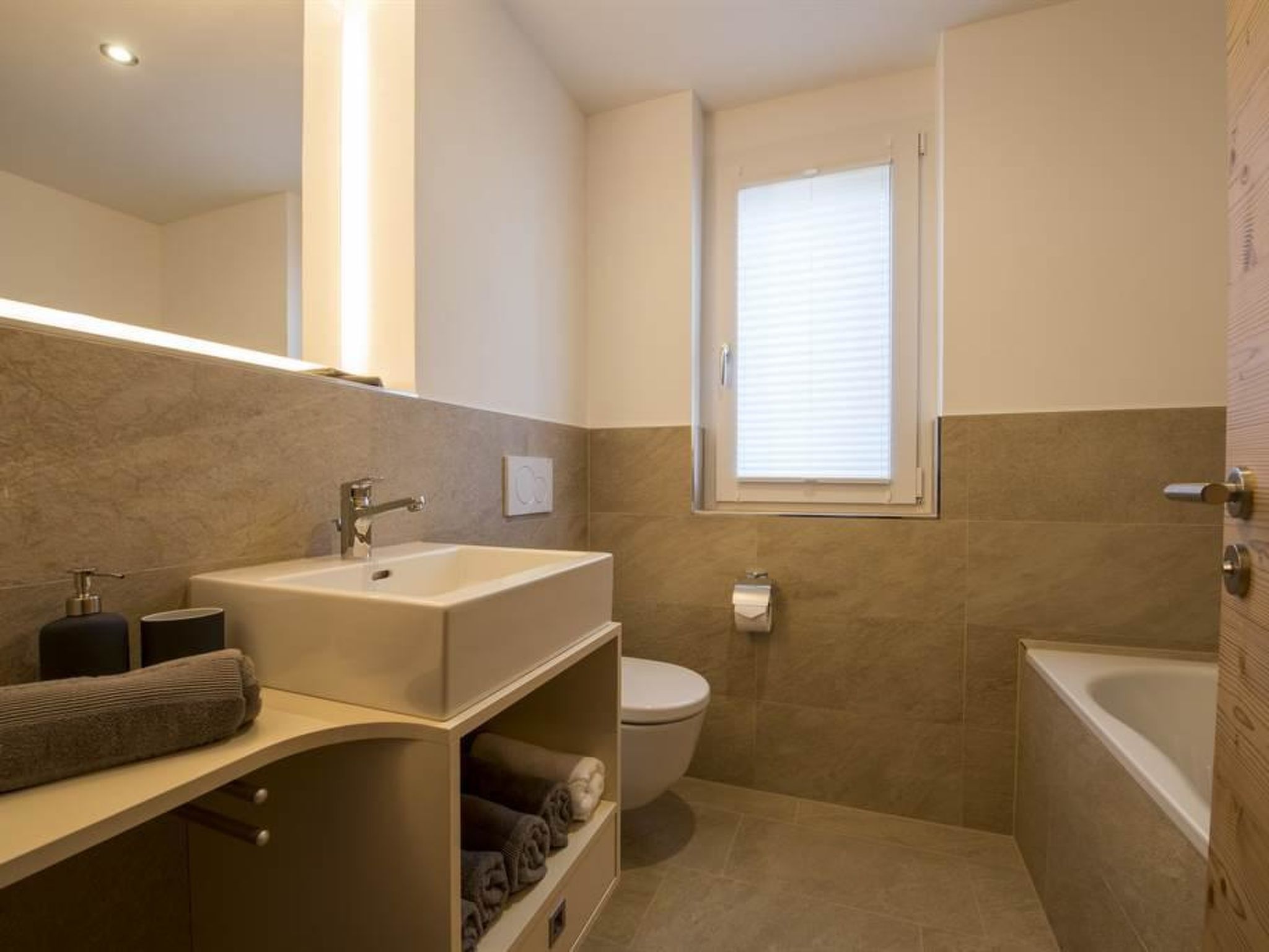 4 1/2 Zimmerwohnung mit 3 Schlafzimmern, zwei Zimmer mit jeweils 2 Betten, ein Zimmer mit einem Doppelbett, Dusche und WC, Badewanne und WC, offene Küche mit Geschirrspüler, grosser Süd-Balkon. Die Betten sind bei Ankunft bezogen. Bad- und Küchenwäsche sind ebenfalls vorhanden.