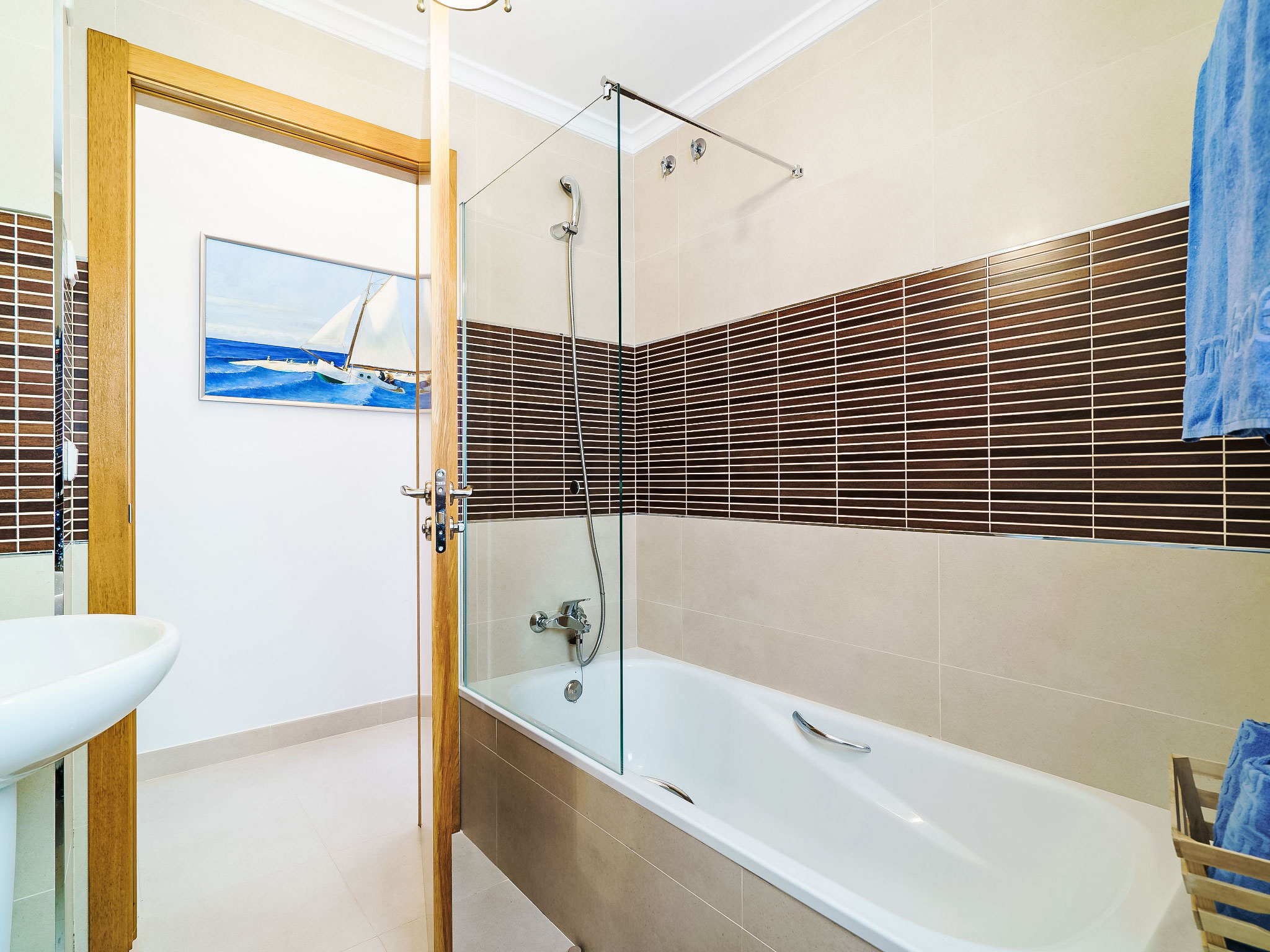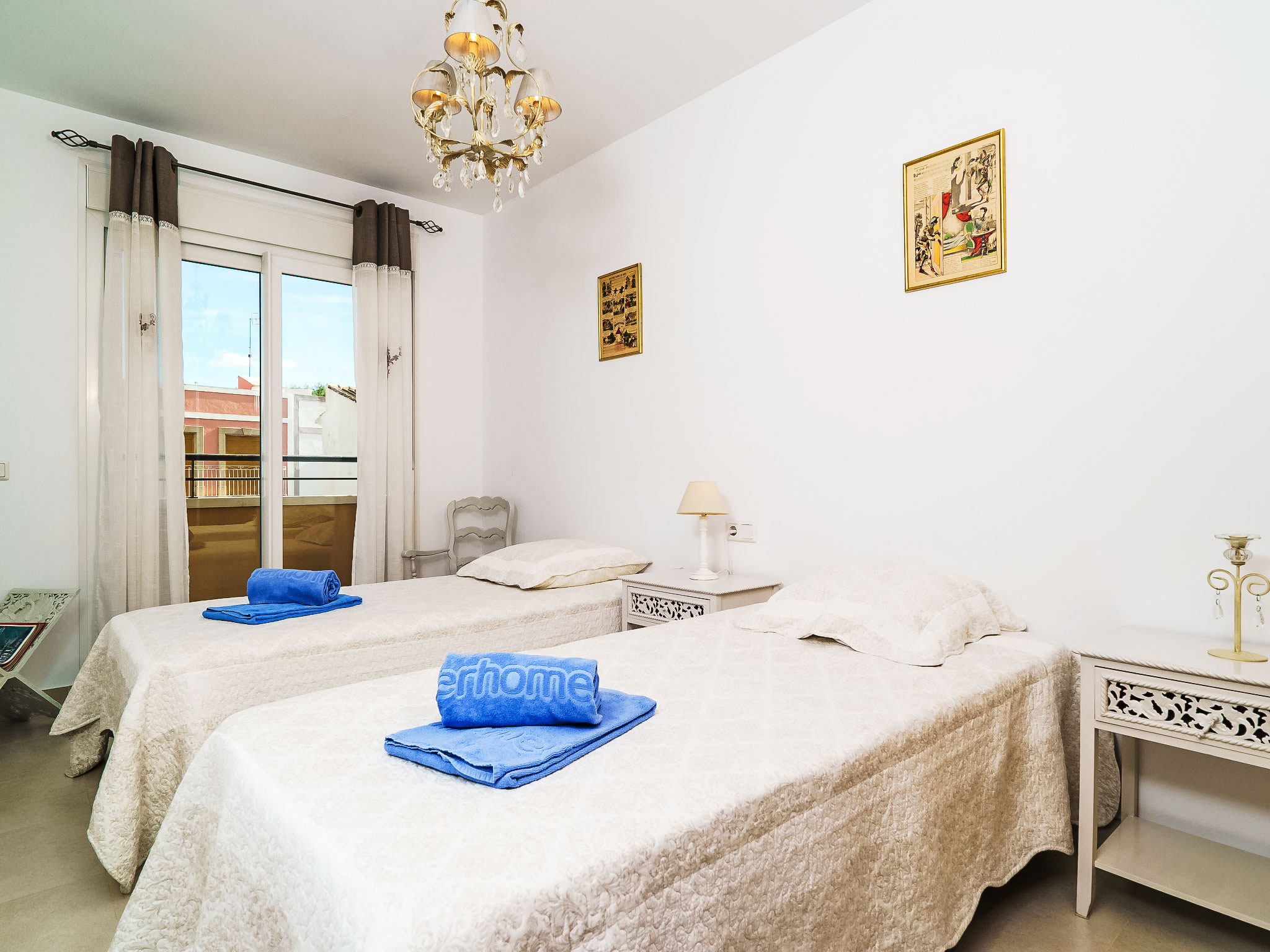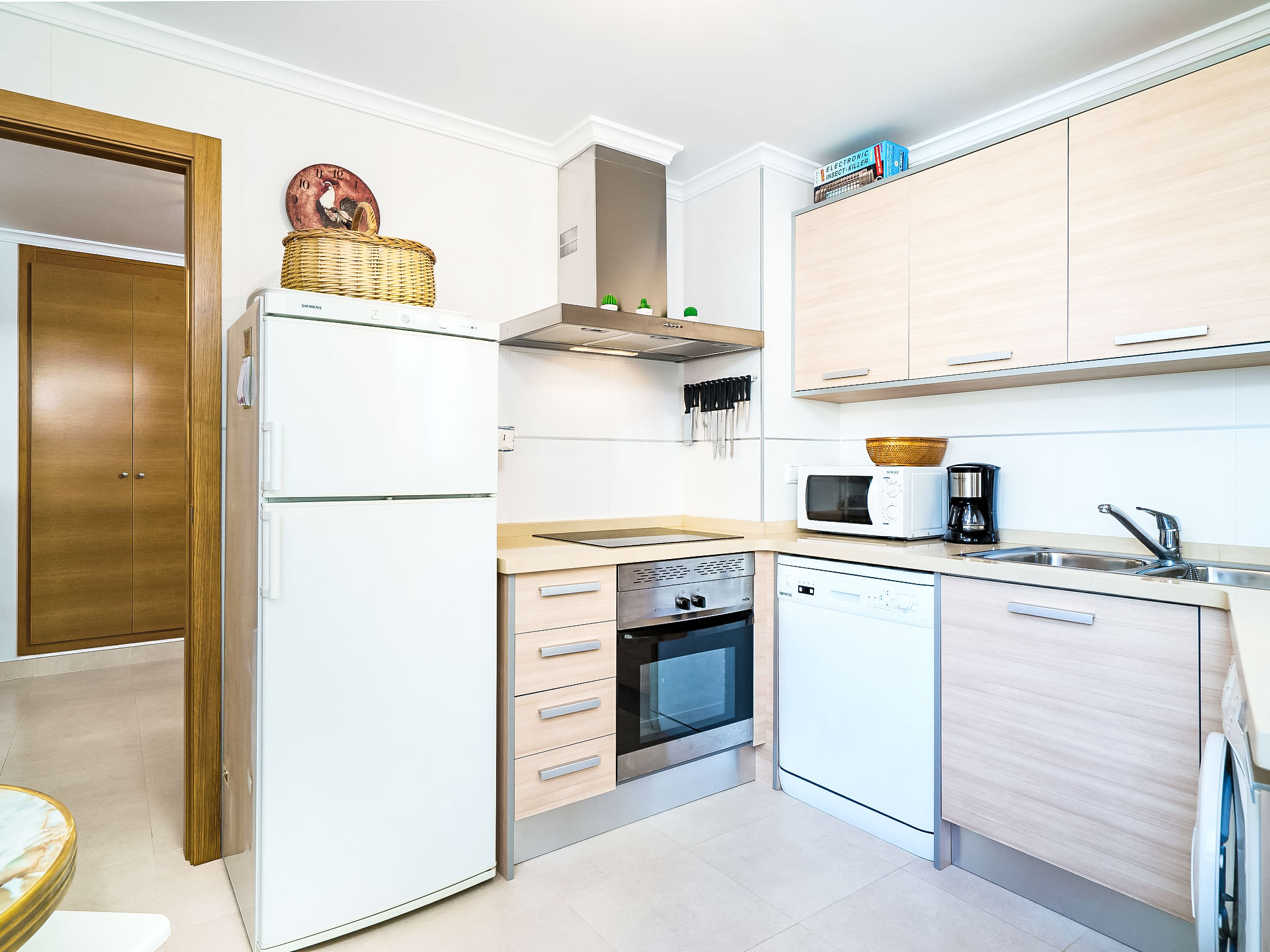 3-Zimmer-Wohnung 80 m2 im 1. Stock. Hell, komfortabel und geschmackvoll eingerichtet: Wohn-/Esszimmer mit Digital-TV und Klimaanlage. Ausgang zum Balkon. 1 Zimmer mit 2 Betten und Klimaanlage. Ausgang zum Balkon. 1 Zimmer mit 1 franz. Bett, Bad/Bidet/WC und Klimaanlage. Küche (Backofen, Geschirrspüler, 4 Glaskeramikherd Platten, Tiefkühler). Ausgang zum Balkon. Dusche/WC. Balkonmöbel. Sicht auf das Schwimmbad. Zur Verfügung: Waschmaschine. Bitte beachten: Nichtraucher-Unterkunft. AT459697A
