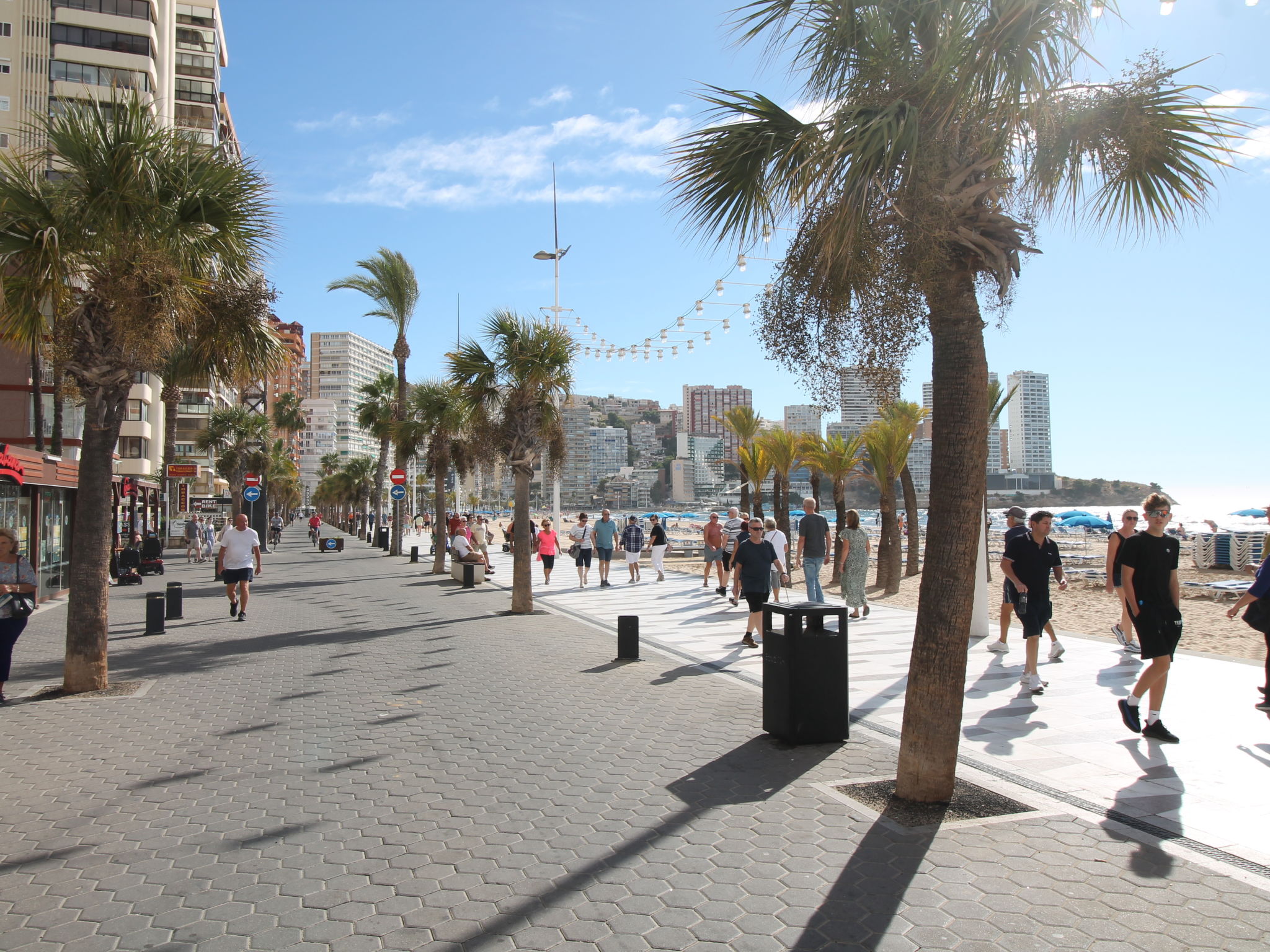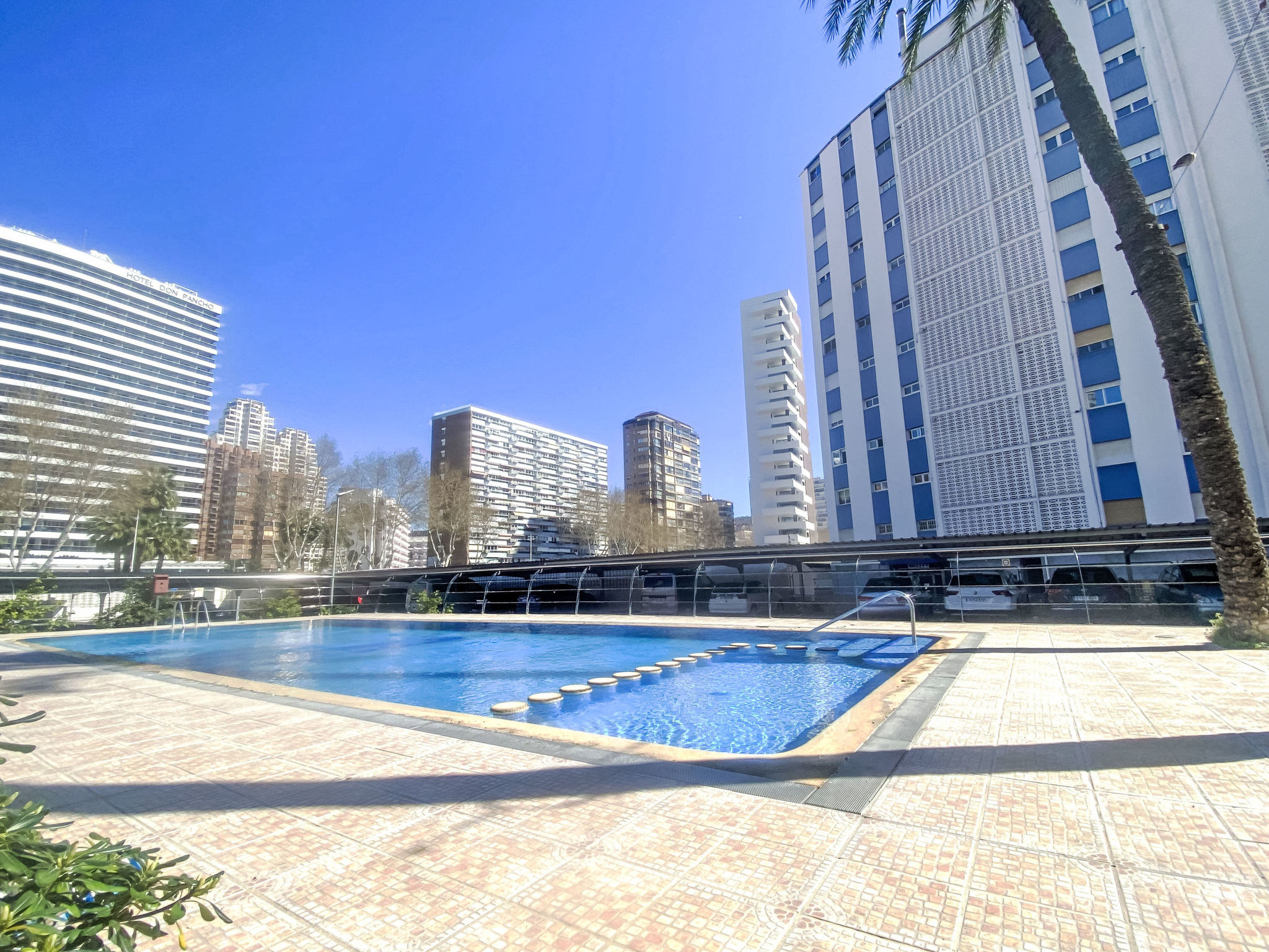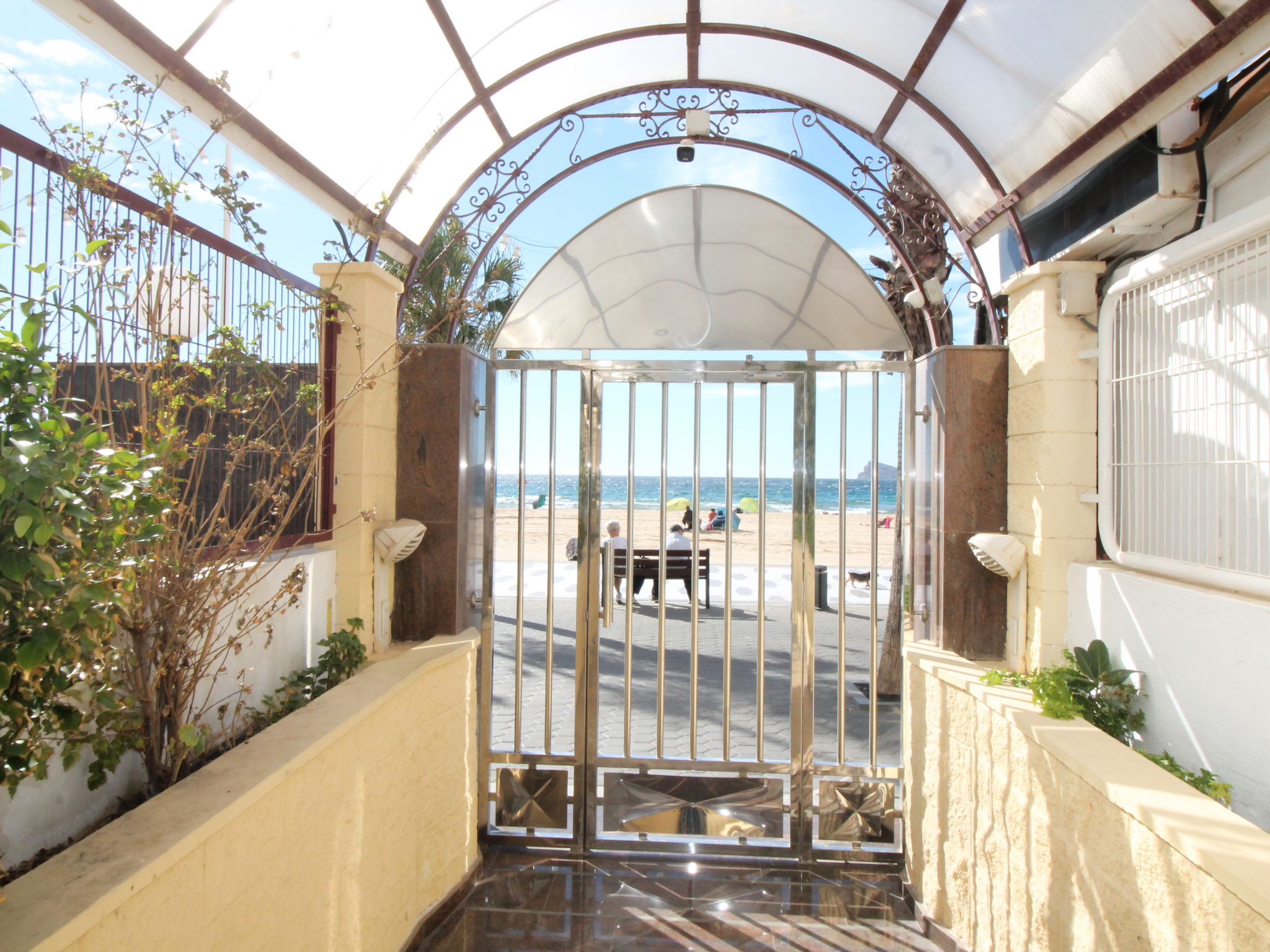 Playa Levante: Sehr grosses Appartementhaus "Las Damas Playa Levante", auf 27 Stockwerken. 200 m vom Zentrum von Benidorm, im Bezirk Playa de levante, zentrale, belebte, sonnige Lage, 20 m vom Meer, 20 m vom Strand, Strasse zu überqueren, Richtung Osten. Zur Mitbenutzung: Grundstück (eingezäunt), Schwimmbad geschützt, eingezäunt (5 x 10 m, saisonale Verfügbarkeit: 01.Jun.-30.Sep.) mit Innentreppe. Dusche/WC im Poolbereich. Im Hause: Fahrstuhl. Parkplatz. Supermarkt 200 m, Restaurant, Bar 50 m, Bushaltestelle "Benidorm" 100 m, Bahnstation "Benidorm" 3 km. Golfplatz (18 Loch) 3 km, Wanderwege ab Haus 400 m. Nahe gelegene Sehenswürdigkeiten: Terra Mitica 3 km, Terra Natura 3 km, Aqualandia 2 km, Mundomar 2 km, Alicante 40 km, Valencia 140 km. Bitte beachten: Babyausstattung auf Anfrage. Jugendgruppen nur auf Anfrage. Die Nachbarschaft ist sehr lärmempfindlich. Ruhe und gutes Benehmen wird erwartet.