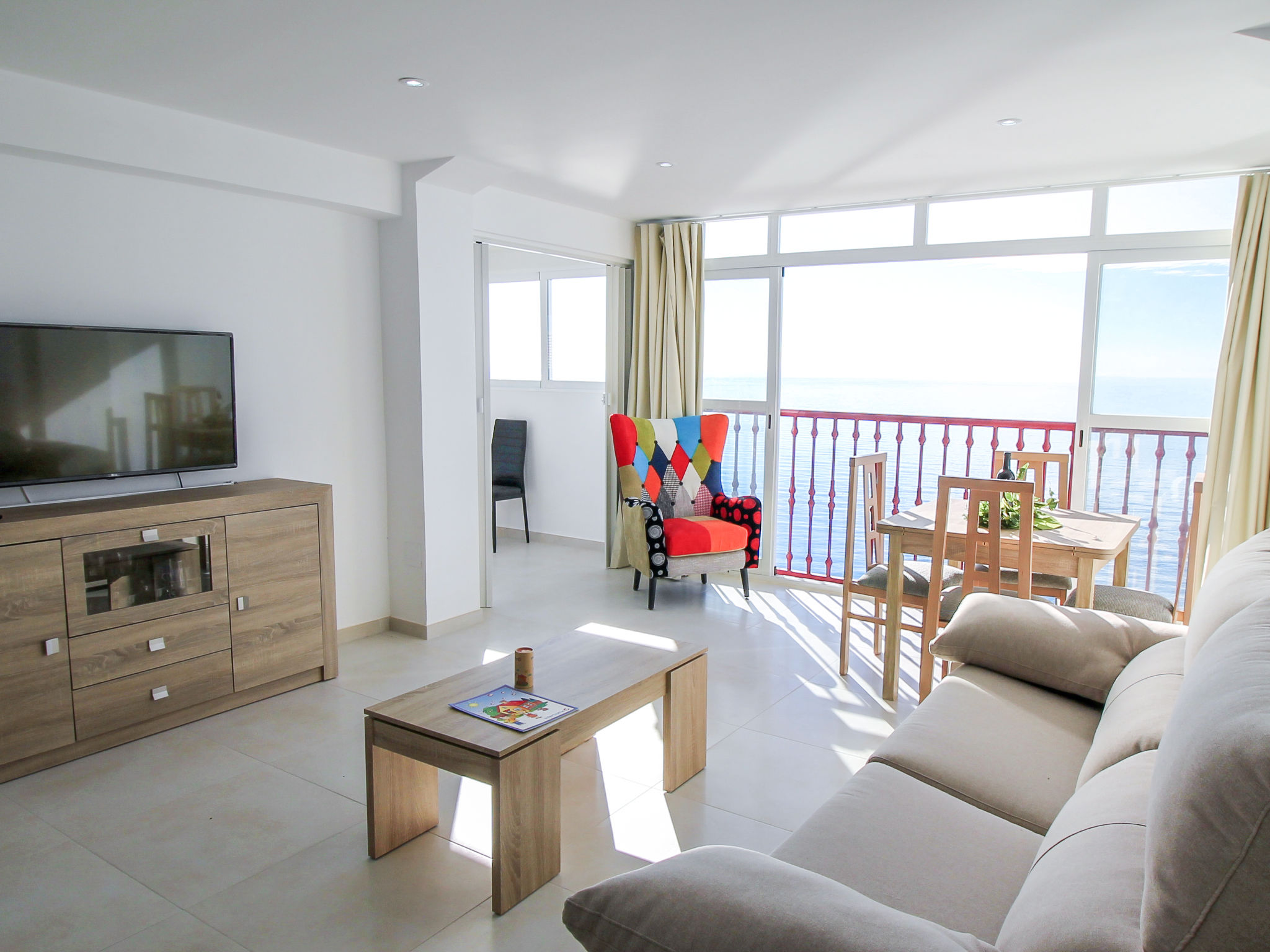 "Las Damas", 3-Zimmer-Wohnung 40 m2, Ostlage. Objekt geeignet für 3 Erwachsene. Geräumig und hell, vollständig renoviert im Jahre 2018, komfortabel und geschmackvoll eingerichtet: Wohn-/Esszimmer 15 m2 mit Digital-TV, Klimaanlage und Warmluftheizung. 1 Zimmer mit 1 Bett (90 cm, Länge 190 cm). 1 Zimmer mit 1 franz. Bett (150 cm, Länge 190 cm), Klimaanlage. Kochnische (Backofen, Geschirrspüler, 3 Glaskeramikherd Platten, Toaster, Wasserkocher, Mikrowelle, Tiefkühler, elektrische Kaffeemaschine). Dusche/WC. Panoramasicht auf das Meer und die Ortschaft. Zur Verfügung: Waschmaschine, Bügeleisen, Haartrockner. Parkplatz. AT322928BM