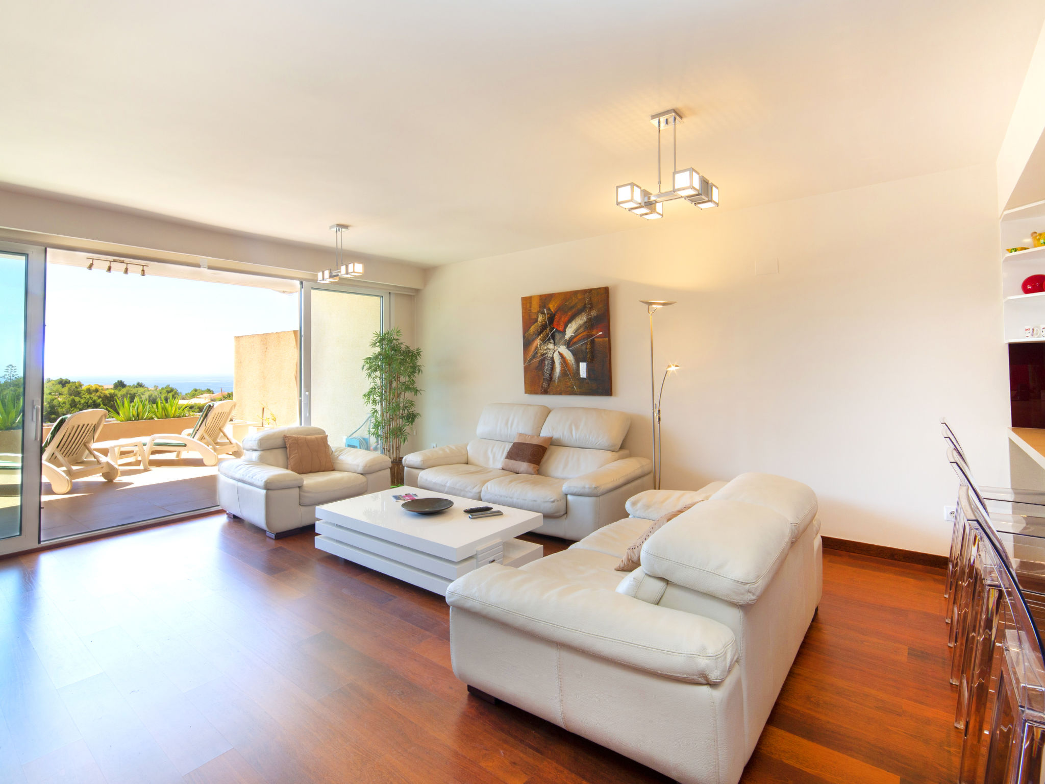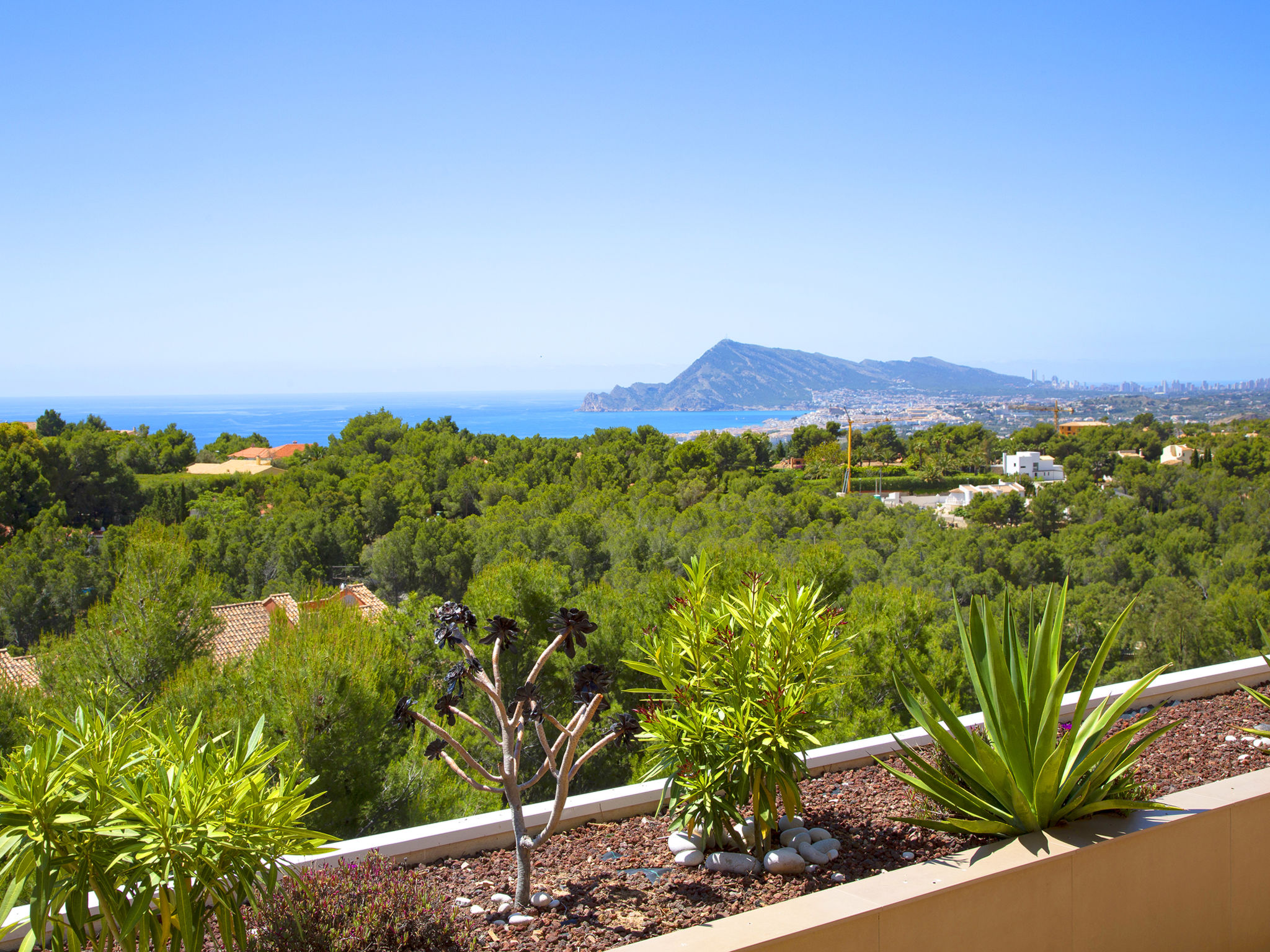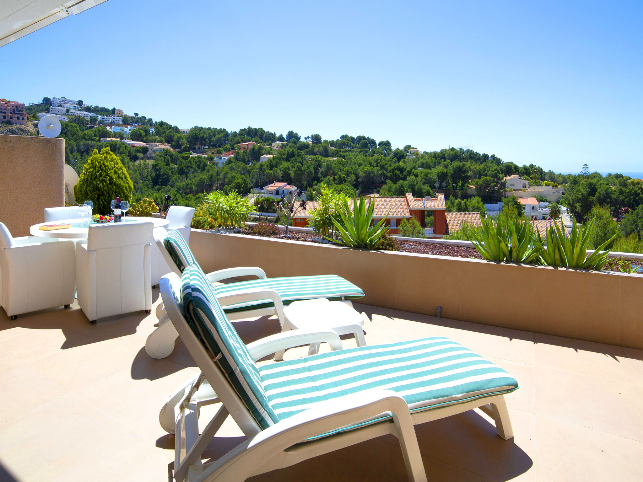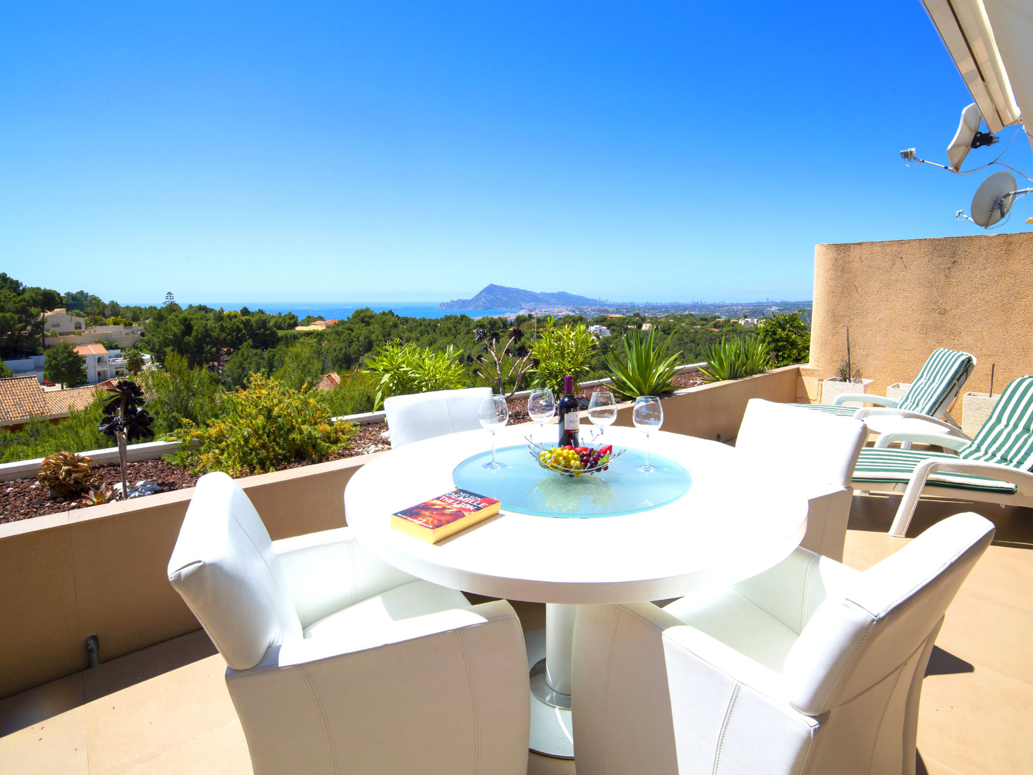 "Altea La Nova", 3-Zimmer-Wohnung 92 m2. Geräumig und hell, komfortabel und modern eingerichtet: Wohn-/Esszimmer mit Bar, Sat-TV, Digital-TV, Klimaanlage und Warmluftheizung. Ausgang zur Terrasse. 1 Zimmer mit 2 Betten (90 cm, Länge 190 cm), Klimaanlage und Warmluftheizung. 1 Zimmer mit 1 franz. Bett (180 cm, Länge 200 cm), Bad/WC, Klimaanlage und Warmluftheizung. Ausgang zur Terrasse. Offene Küche (Backofen, Geschirrspüler, 4 Induktionskochplatten, Mikrowelle, Tiefkühler, Grill, elektrische Kaffeemaschine) mit Bar. Bad/WC. E-Heizung. Heizung nur verfügbar von 01.11. bis 30.04. Terrasse 30 m2. Terrassenmöbel. Panoramasicht auf das Meer und die Landschaft. Zur Verfügung: Waschmaschine, Bügeleisen, Haartrockner. Internet (Wireless LAN, gratis). Parkplatz (überdacht, 2 Autos). Bitte beachten: geeignet für Familien. Nichtraucher-Unterkunft. AT-477679-A