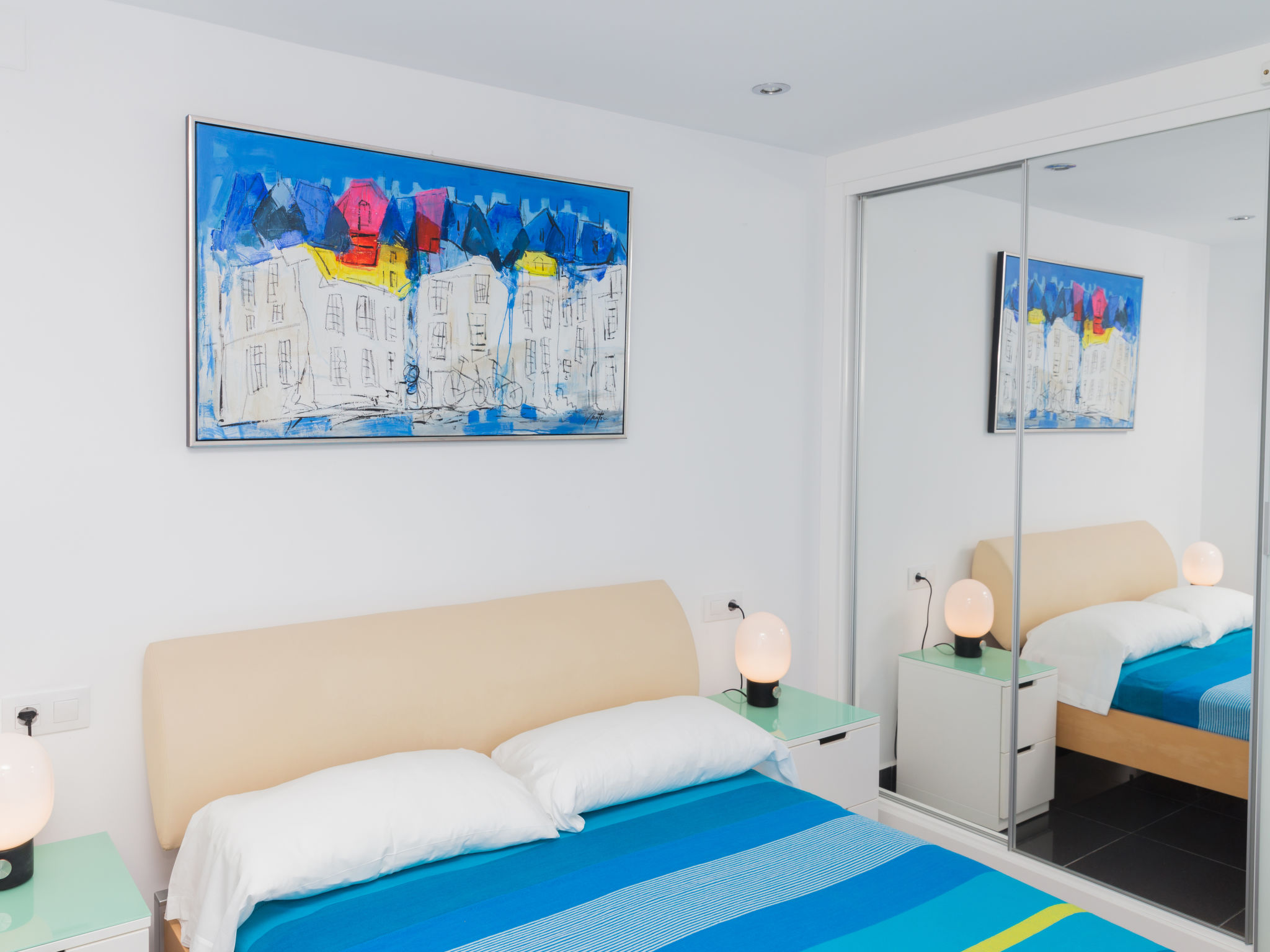 "Brisa al Mar", 3-Zimmer-Wohnung 75 m2 im 2. Stock. Hell, sehr schön und modern eingerichtet: Wohn-/Esszimmer 25 m2. Ausgang zur Terrasse. 1 Zimmer mit 2 Betten (90 cm, Länge 200 cm). 1 Zimmer mit 1 franz. Bett (150 cm, Länge 200 cm). Ausgang zur Terrasse. Küche (Backofen, Geschirrspüler, 4 Glaskeramikherd Platten, Tiefkühler). Dusche/Bidet/WC. E-Heizung. Terrassenmöbel. Herrliche Panoramasicht auf das Meer und die Landschaft. Zur Verfügung: Waschmaschine, Wäschetrockner, Bügeleisen. Internet (Wireless LAN, gratis). Parkplatz. Geeignet für Familien. AT-423941-A