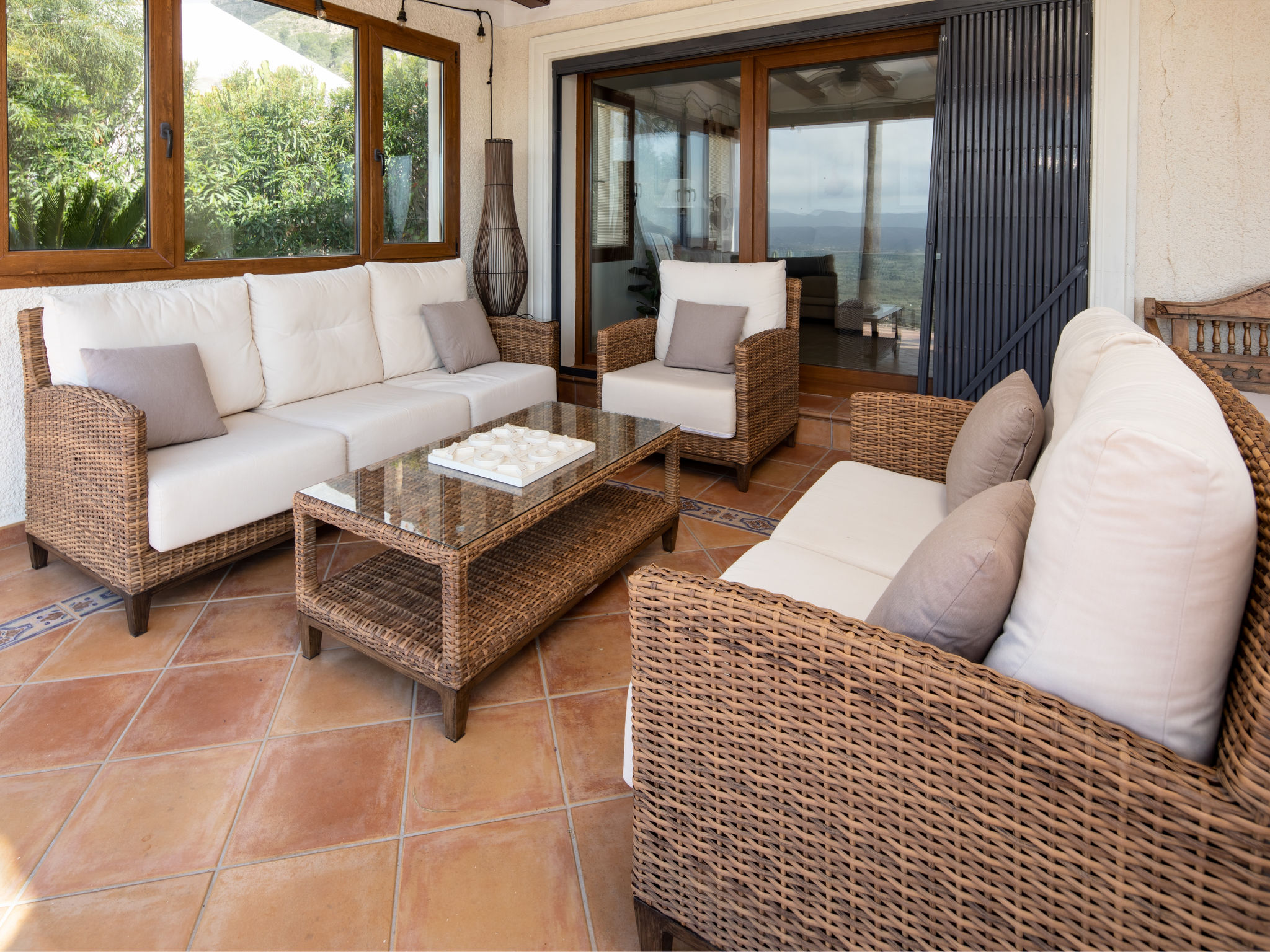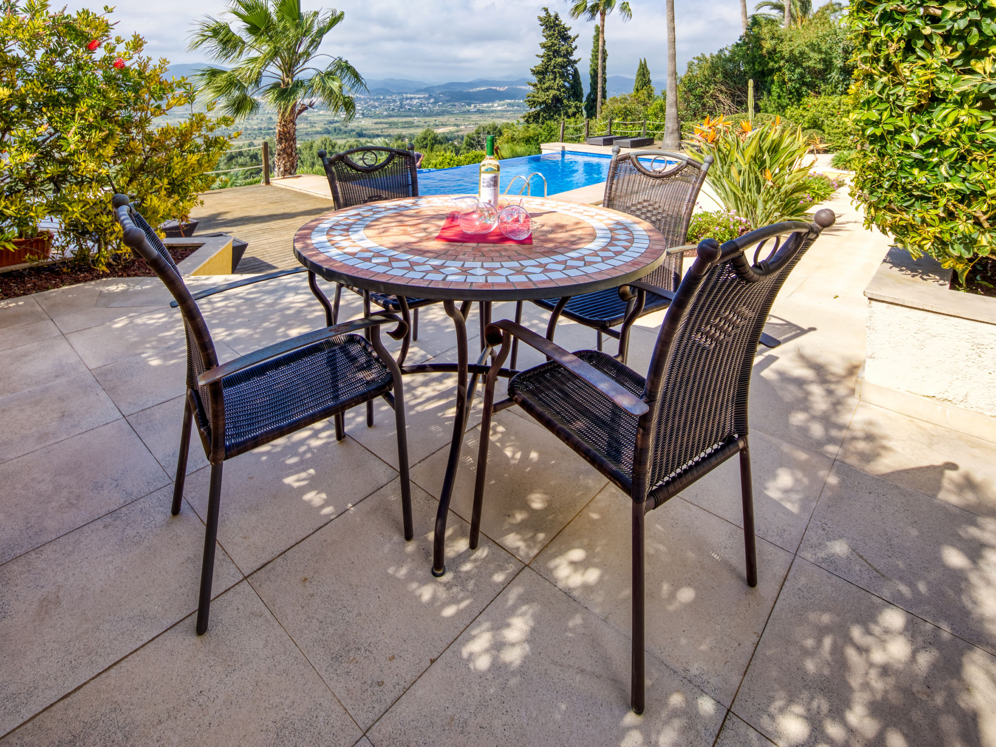 5-Zimmer-Villa 208 m2. Schön und geschmackvoll eingerichtet: grosses Wohn-/Esszimmer mit Schwedenofen, Sat-TV, Flachbildschirm, DVD und elektrischem Rollladen. Ausgang zur Terrasse. 1 Zimmer mit 2 Betten (90 cm, Länge 190 cm), Klimaanlage. 1 Zimmer mit 1 franz. Bett (160 cm, Länge 200 cm), Klimaanlage. Offene Küche (Backofen, Geschirrspüler, Mikrowelle, Tiefkühler, elektrische Kaffeemaschine). Bad/Bidet/WC, Dusche/WC. Bodenheizung. Obergeschoss: 1 Zimmer mit 1 franz. Bett (180 cm, Länge 190 cm), Dusche/Bidet/WC, Doppelwaschbecken, Klimaanlage und elektrischem Rollladen. Ausgang zur Terrasse. 1 Zimmer mit 1 franz. Bett (180 cm, Länge 200 cm), Klimaanlage und elektrischem Rollladen. Ausgang zur Terrasse. Dusche/Bidet/WC, Doppelwaschbecken. Bodenheizung. Grosse Terrasse 40 m2 teilweise überdacht Terrasse 26 m2, überdacht. Terrassenmöbel, Gartengrill (mobil), Liegestühle (8). Herrliche Panoramasicht auf die Landschaft. Zur Verfügung: Waschmaschine, Kinderhochstuhl, Babybett bis 2 Jahre. Internet (Wireless LAN, gratis). Parkplatz (eingezäunt, 2 Autos) beim Haus. Bitte beachten: Nichtraucher-Unterkunft. TV nur ES, EN. AT-437792-A