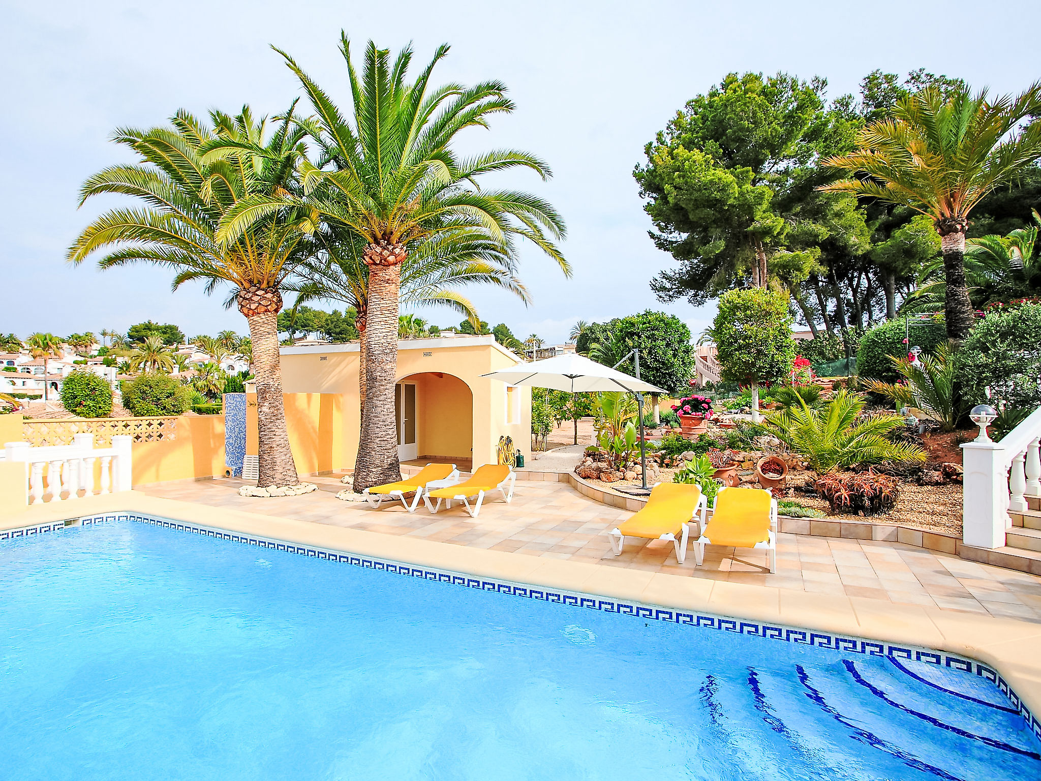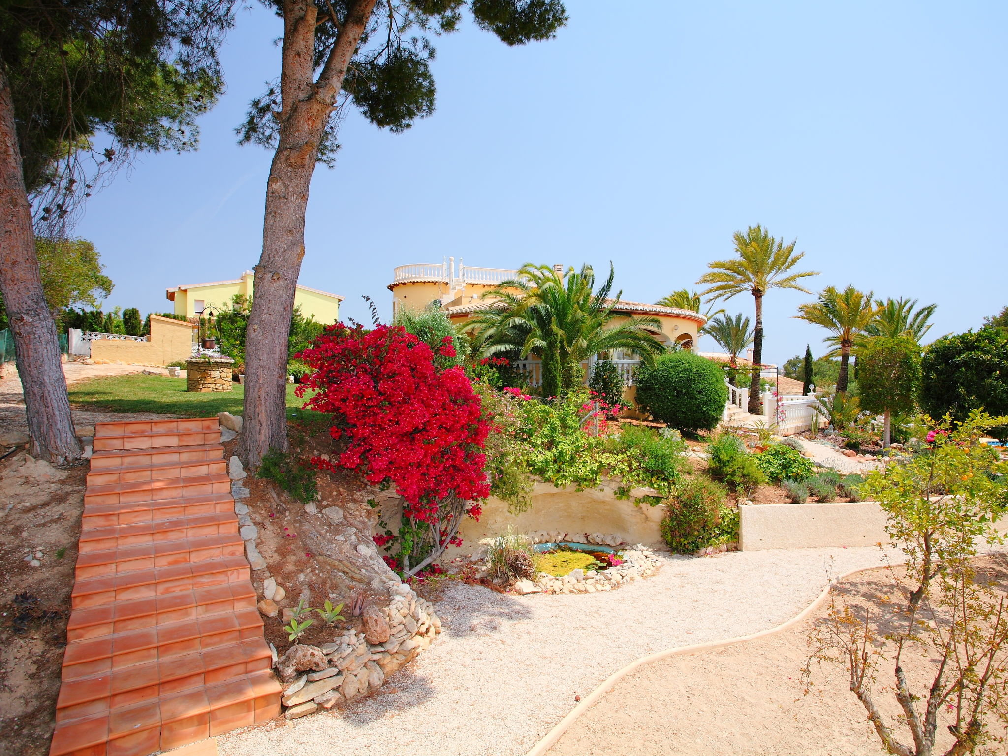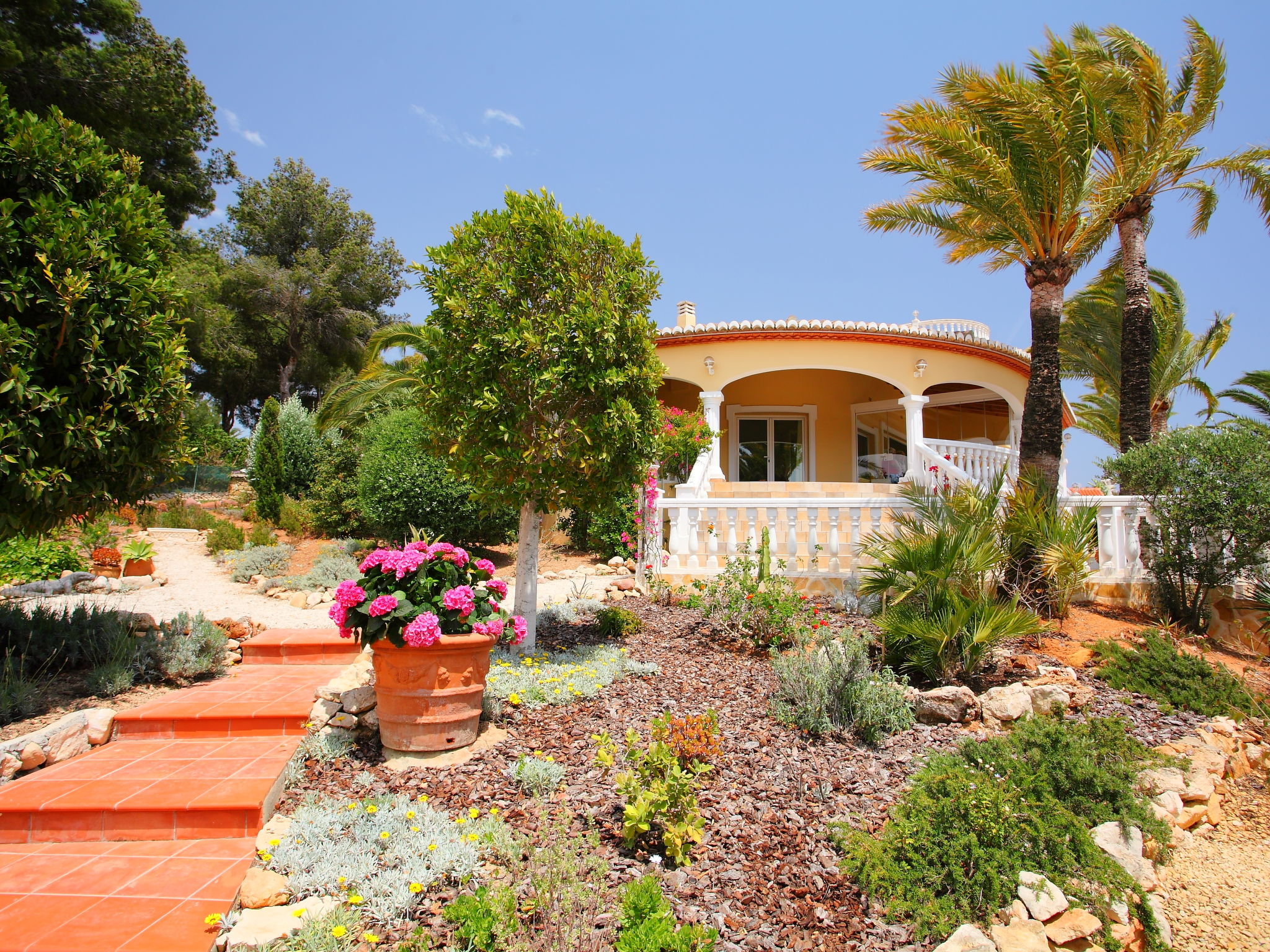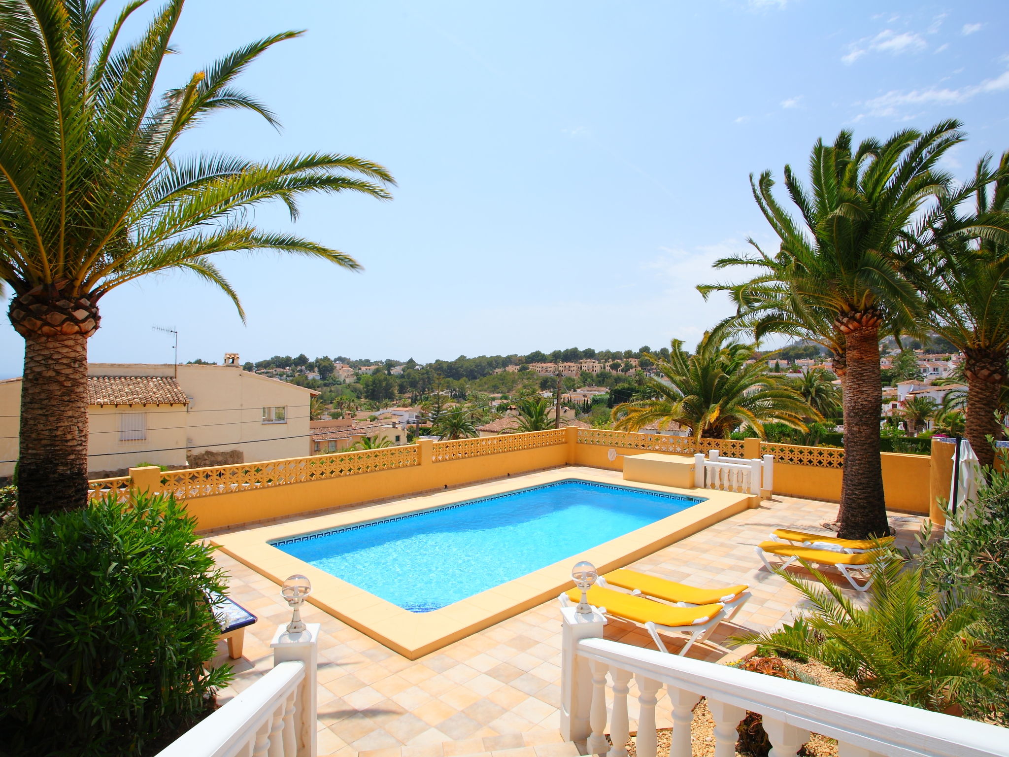 Sehr schöne, komfortable Villa "Bombilla", auf 2 Stockwerken. 3 km vom Zentrum von Moraira, ruhige, sonnige Lage, 3 km vom Meer, 3 km vom Strand. Zur Alleinbenutzung: grosser, schöner, gepflegter Garten 1'600 m2 (eingezäunt), Schwimmbad eckig (5 x 10 m, 150 - 250 cm tief, 01.01.-31.12.) mit Innentreppe. Aussendusche. Im Hause: Zentralheizung. Parkplatz auf dem Grundstück. Einkaufsgeschäft 1.5 km, Supermarkt 1.5 km, Restaurant 1 km. Bitte beachten: geeignet für Familien. Das 1. Stockwerk ist geschlossen und nicht bewohnt.