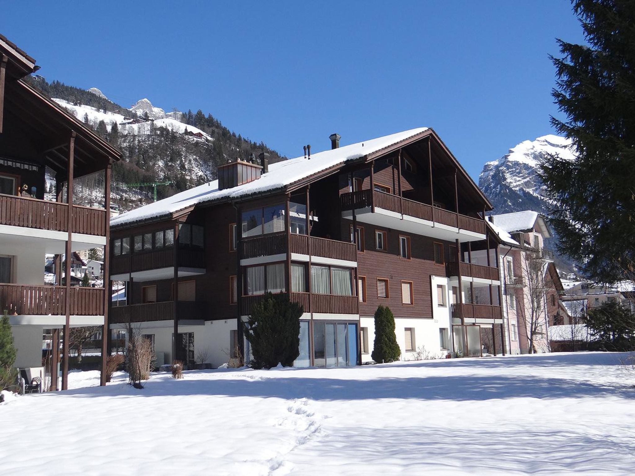 70 m2. Weitere Angaben des Anbieters: 3.5-Zimmerwohnung (70 m2) im Erdgeschoss eines Mehrfamilienhauses im Zentrum von Engelberg (nähe Bahnhof). Helles modernes Wohnzimmer mit TV/Radio, Gratis-Wlan, Bluetooth-Lautsprecher, moderne Küche mit Geschirrspüler, 1 Schlafzimmer mit 2 Einzelbetten, 1 Schlafzimmer mit 2 x 2 Kajütenbetten, Dusche, separates WC. Gartensitzplatz. Tiefgaragenplatz. Skiabstellraum. Waschmaschinenbenutzung im Haus möglich. Haustiere nicht erlaubt. NICHTRAUCHER-WOHNUNG.