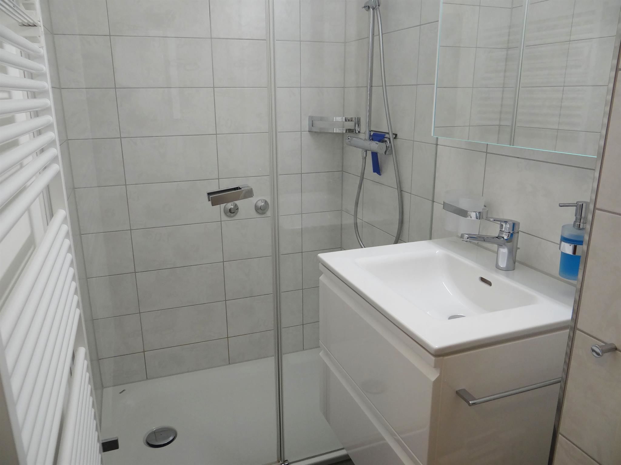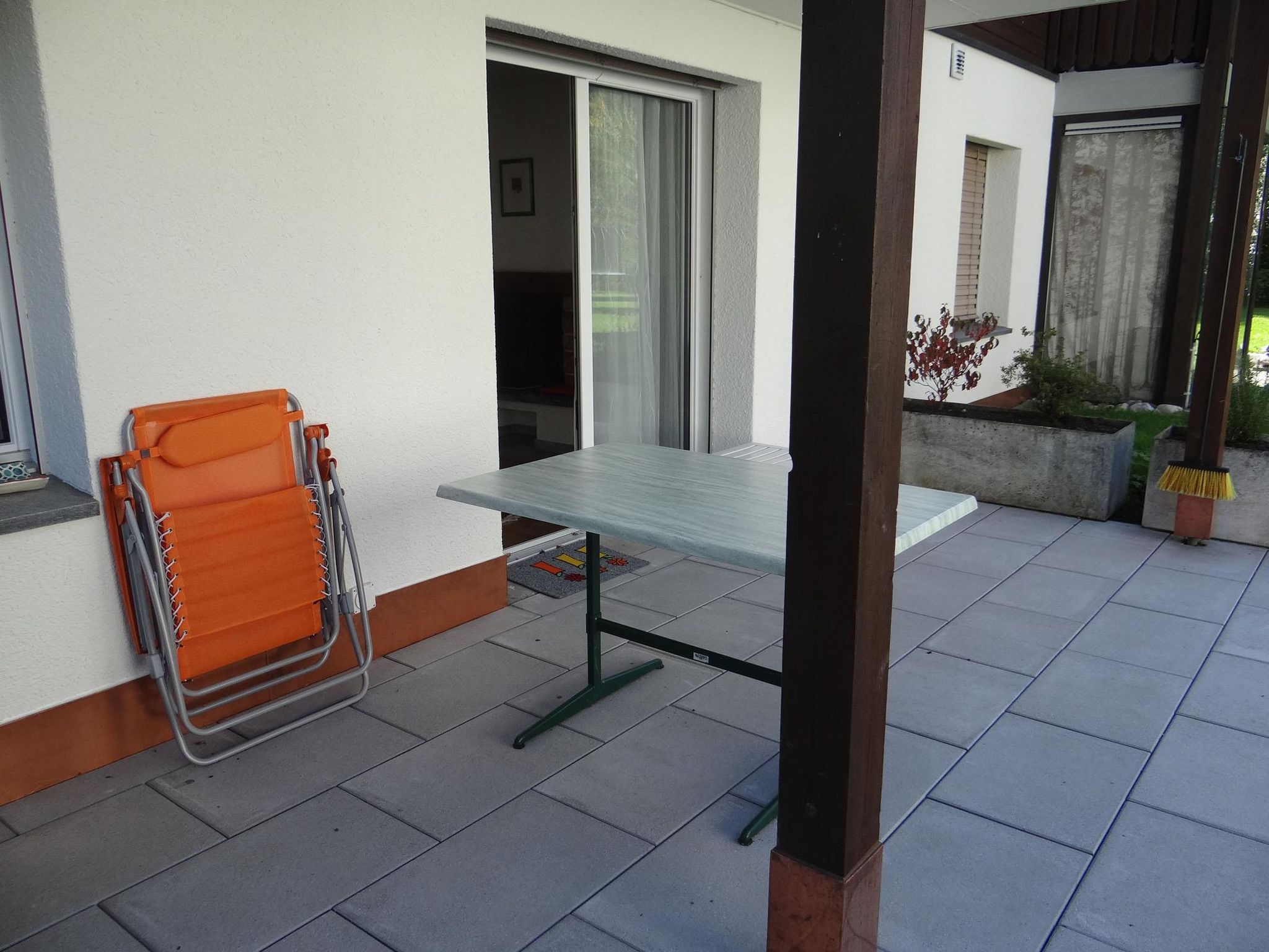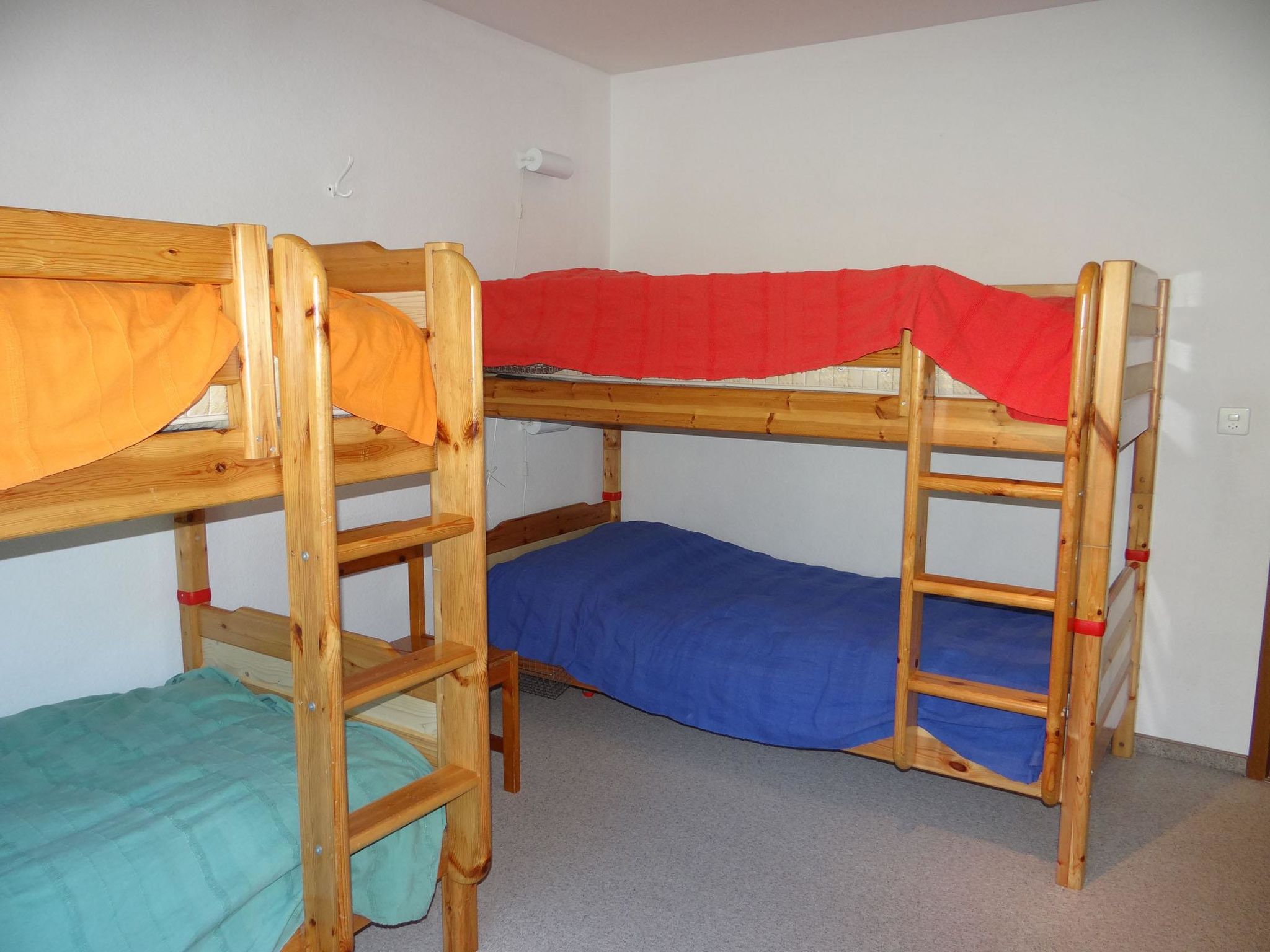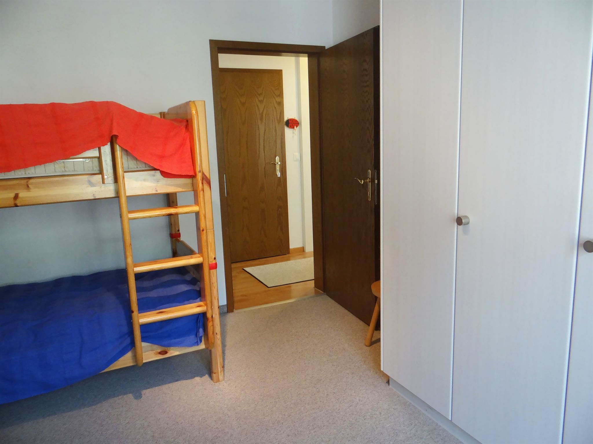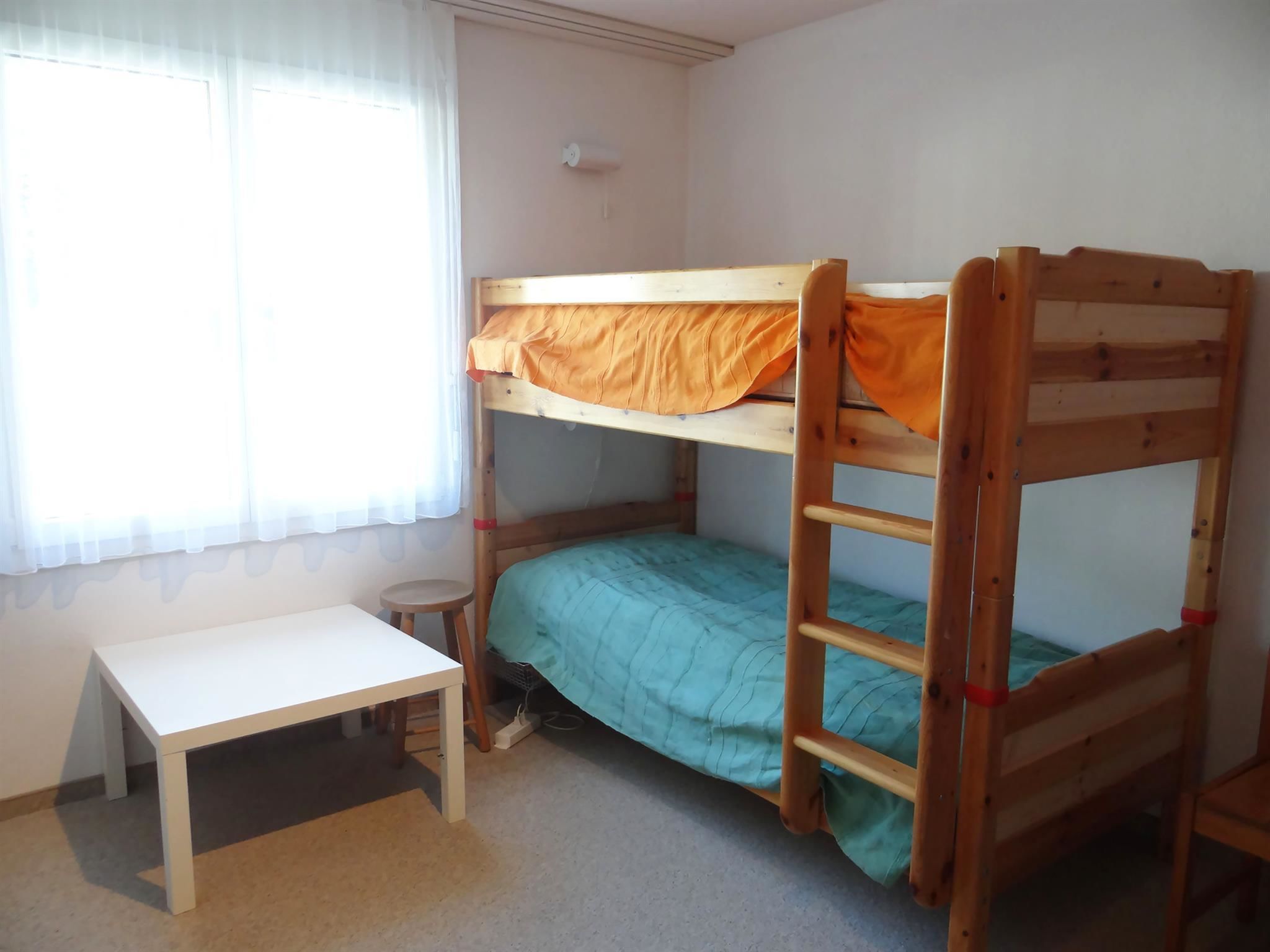3-Zimmerwohnung im Erdgeschoss: Wohnzimmer, Küche, 1 Zimmer mit 2 Einzelbetten, 1 Zimmer mit 2x2 Kajütenbetten, Dusche, separates WC, Gartensitzplatz.
