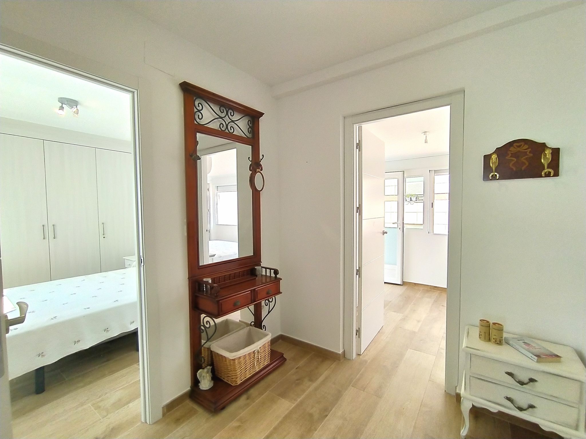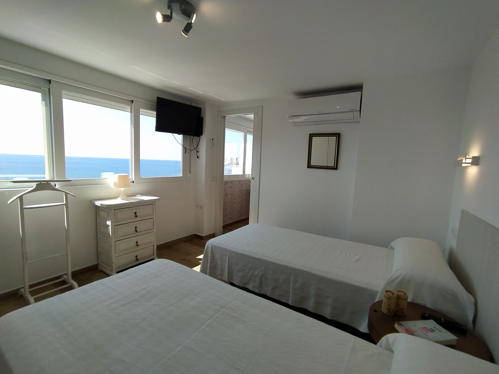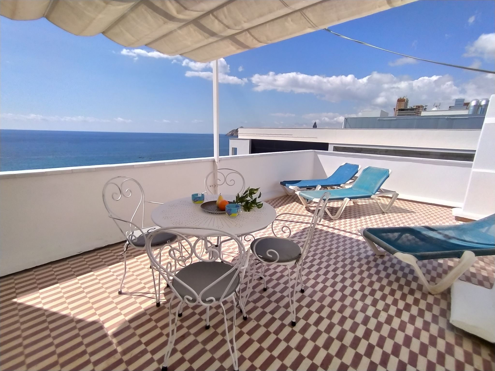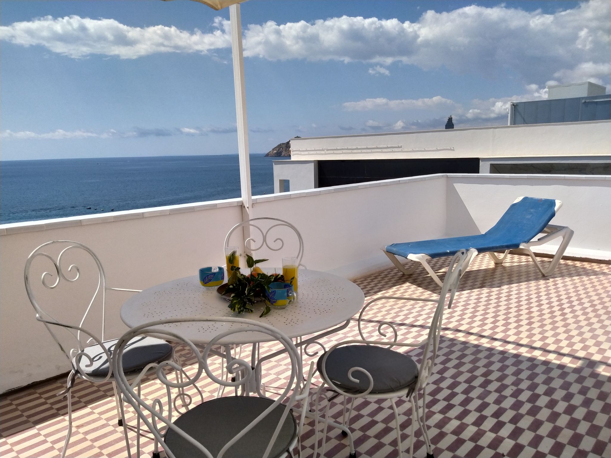 "Suecia", 4-Zimmer-Attikawohnung im 6. Stock, Ostlage. Objekt geeignet für 6 Erwachsene. Geräumig und hell, vollständig renoviert im Jahre 2020, zweckmässig und komfortabel eingerichtet: Wohn-/Esszimmer 23 m2 mit Digital-TV. Ausgang zur Terrasse. 1 Zimmer 7 m2 mit 1 franz. Bett (150 cm, Länge 190 cm), Klimaanlage. 1 Zimmer 9 m2 mit 2 Betten (90 cm, Länge 190 cm), Dusche/WC und Klimaanlage. Ausgang zur Terrasse. 1 Zimmer 9 m2 mit 2 Betten (90 cm, Länge 190 cm), Klimaanlage. Kochnische (Backofen, Geschirrspüler, 3 Induktionskochplatten, Toaster, Wasserkocher, Mikrowelle, Tiefkühler, elektrische Kaffeemaschine). Dusche/Bidet/WC. Boiler (80 Liter). Grosse Terrasse 30 m2. Terrassenmöbel, Liegestühle. Sicht auf das Meer und die Stadt. Zur Verfügung: Waschmaschine, Bügeleisen, Haartrockner. Internet (Wireless LAN, gratis). Parkplatz Nr. Calle Maravall,pk 19. AT321838BM