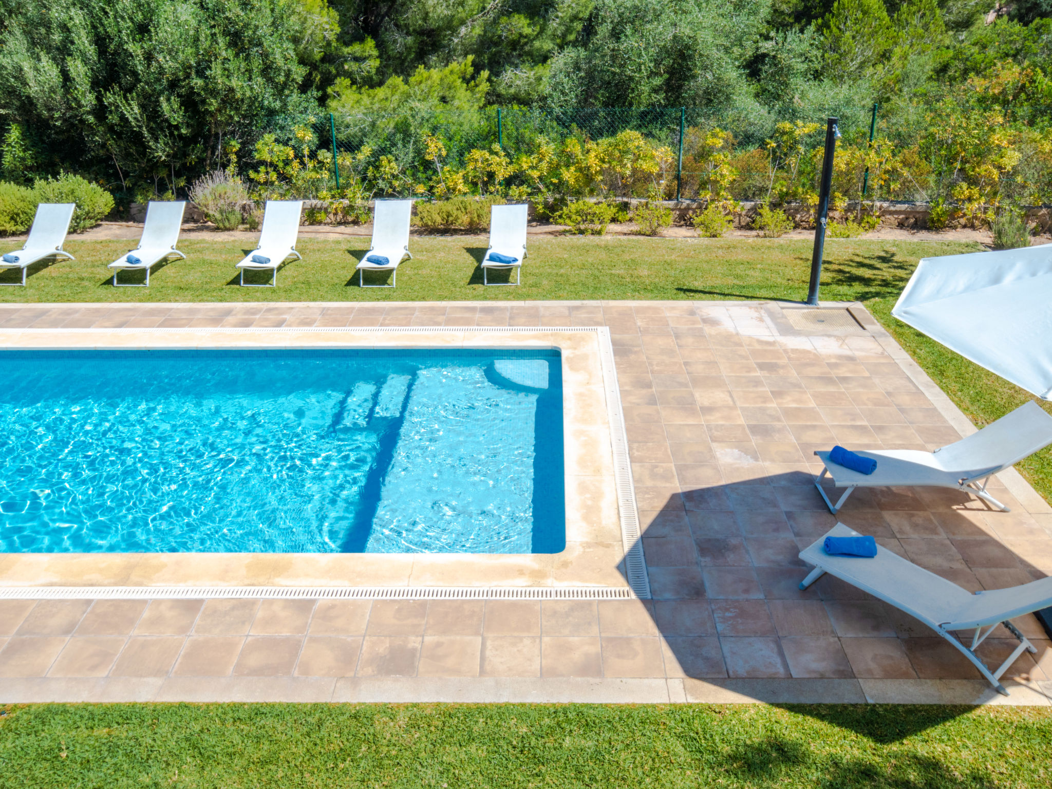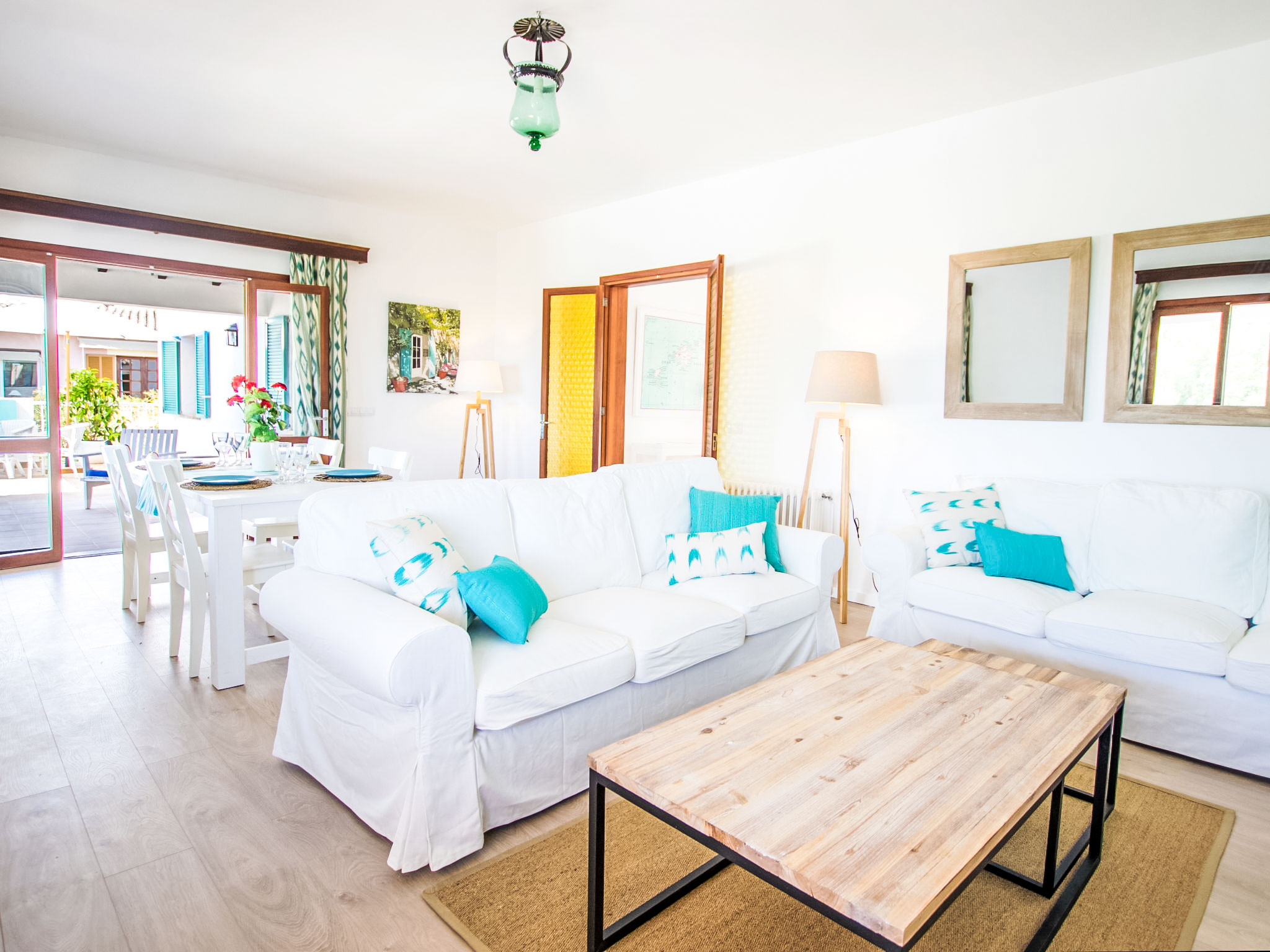 Cala Blava 18 km von Llucmajor: Sehr moderne, gemütliche, komfortable Villa "Son Granada", renoviert im Jahre 2018. Im Ortszentrum von Cala Blava, Llucmajor. Ruhige, sonnige Lage im Villenviertel, 2.5 km vom Waldrand, 400 m vom Meer, 500 m vom Strand. Zur Alleinbenutzung: naturbelassenes Grundstück, grosser Garten mit Rasen und Pflanzen, Schwimmbad eckig (9 x 4 m, 20 - 170 cm tief, 01.01.-31.12.). Aussendusche, Sitzplatz, Pergola, Gartenmöbel, Grill. Im Hause: Internetzugang, Wireless LAN, Einstellraum für Fahrräder, Klimaanlage, Waschmaschine. Einkaufsgeschäft 3 km, Supermarkt 700 m, Einkaufszentrum 15 km, Restaurant, Bar 700 m, Fahrradverleih 3.5 km, Bushaltestelle 300 m, Sandstrand "Playa Cala Blava" 1.1 km, Steinstrand 500 m, Felsstrand 400 m. Sporthafen 3.6 km, Jacht-Hafen 3.6 km, Golfplatz 6.2 km, Segelschule 3.7 km, Reitstall 3.4 km. Nahe gelegene Sehenswürdigkeiten: Cabo Enderrocat 1.5 km, Caló Fort, Cala Aro, Caló des Xorrí. 700 m, Parque acuático Aqualand. 3.5 km, Club Náutico El Arenal 3.7 km, Golf Maioris 6 km, Centro Comercial Fan Club Mallorca 13 km. Bitte beachten: Fahrzeug empfohlen. Geeignet für Familien, geeignet für Senioren. Objekt geeignet für 8 Erwachsene Jugendgruppen nur auf Anfrage. Der Besitzer akzeptiert keine Gruppen. Der Besitzer akzeptiert keine Jugendgruppen. Tiere in der Umgebung. Flugplatz 14 km vom Haus. Die Nachbarschaft ist sehr lärmempfindlich. Ruhe und gutes Benehmen wird erwartet.