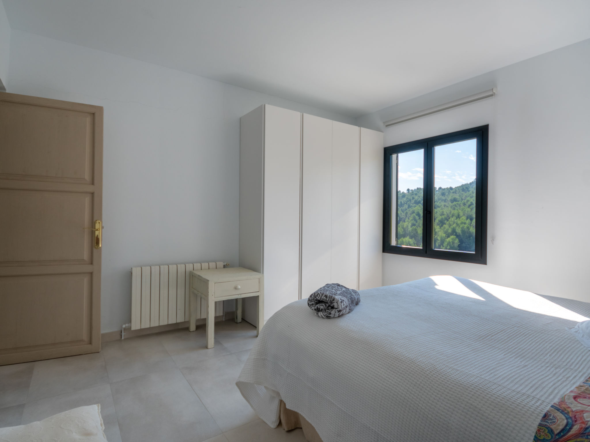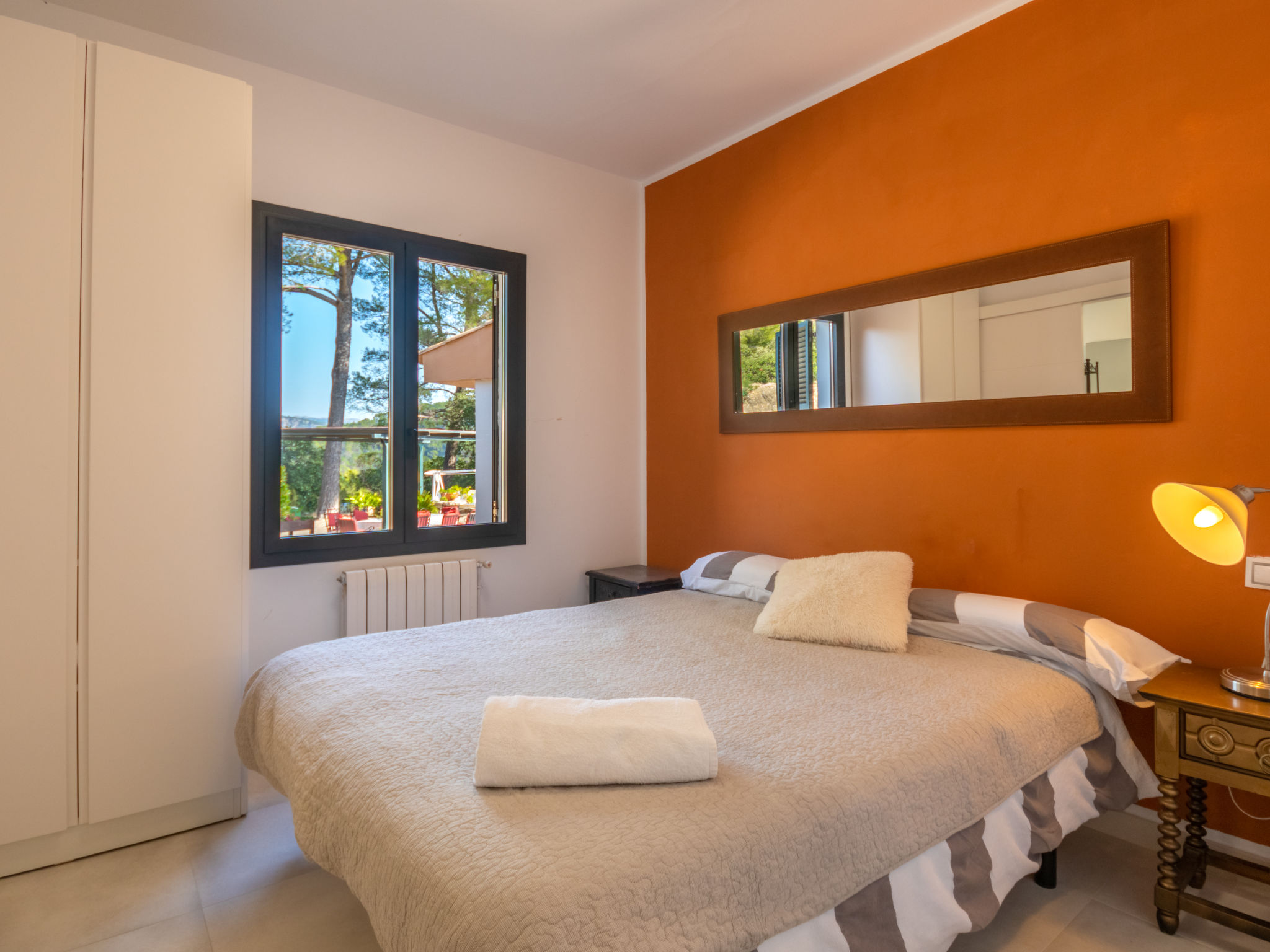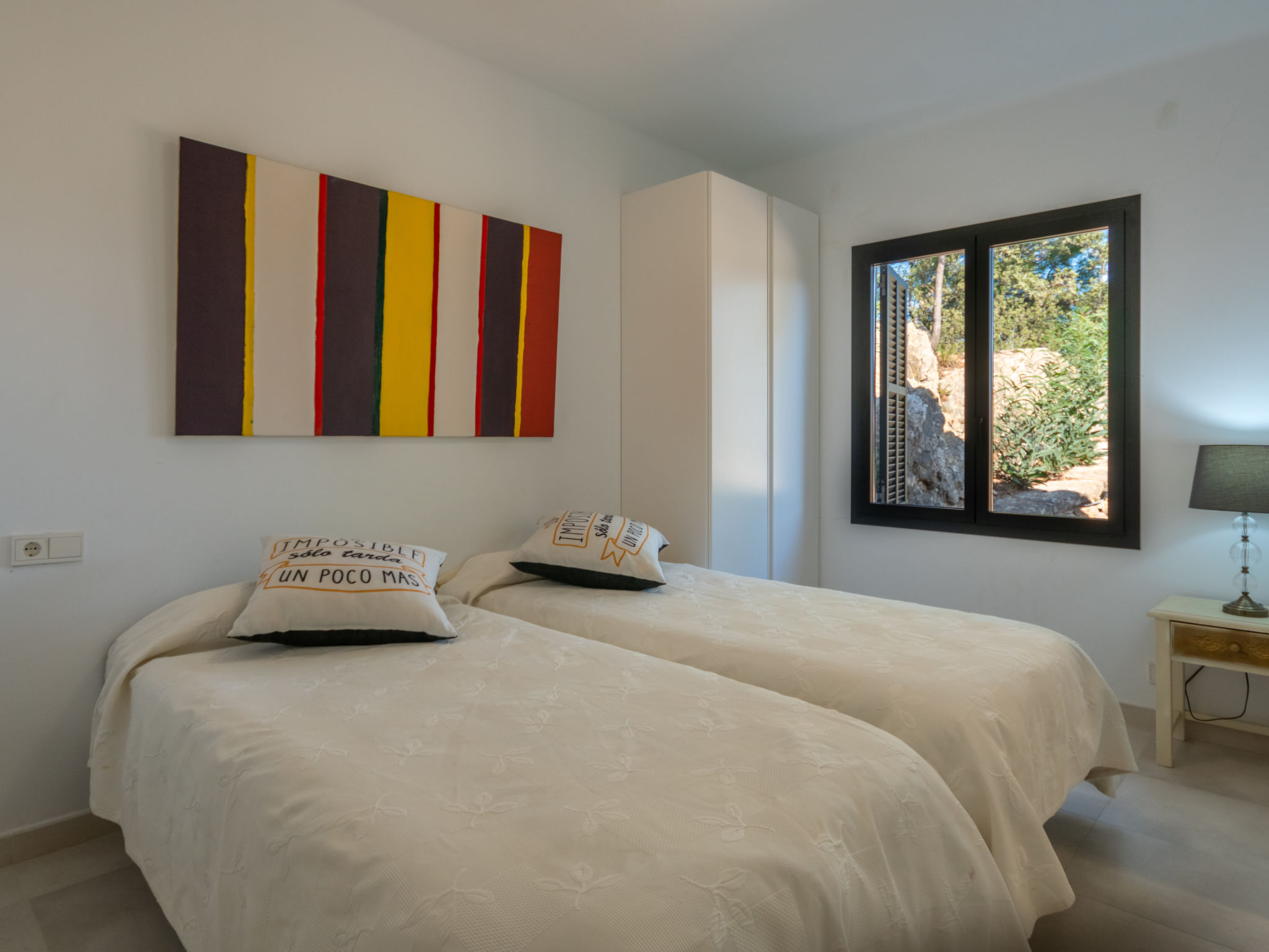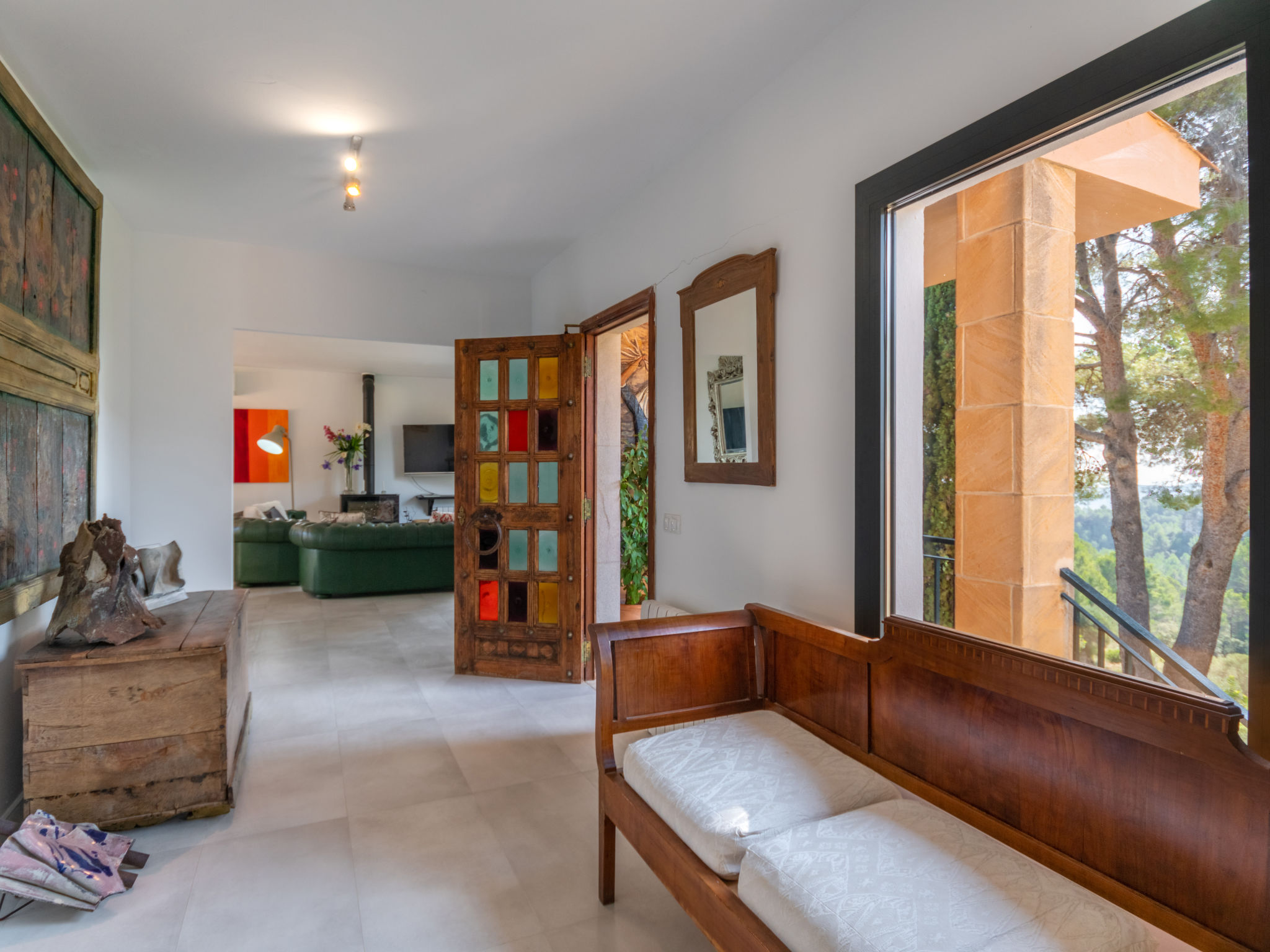 Das schön gelegene Haus steht auf einem Hanggrundstück, oberhalb von Esporles (4,5 km) in einer Naturoase mit ausgedehnten Pinienwäldern und schroff aufragenden Felsen. Wanderfreunde finden in der näheren Umgebung schöne Wanderwege. Ca. 15.000 m² großes, offenes Anwesen. Von der großzügigen Terrasse (ca. 130 m²) mit mehreren Sitzplätzen schöner Panoramablick. Hinter dem Haus liegt der Pool (10 x 4 m, gesamte Saison geöffnet, Salzelektrolyse) mit Sonnenterrasse, Sonnenschirm, Sonnenliegen, Außendusche und überdachtem Sitzplatz mit Sofa. Gasgrill. Am Haus teilüberdachter Balkon mit Mobiliar. Von hier aus gute Sicht bis hin zur Bucht von Palma. Im Untergeschoss des Hauses Tischtennisplatte. Parkmöglichkeit auf dem Grundstück. Verkauf von Wein und Öl auf dem ca. 50 m entfernten Weingut 'Es Verger', das vom Bruder der Besitzerin geführt wird. Geschmackvolle, gute Einrichtung und Dekoration mit Kunstgegenständen (eigene Werke der Hausbesitzerin). Fliesenböden. Sat-TV (deutsche Programme), DVD, Radio/CD. Internetzugang (WLAN, inklusive). Waschmaschine, Bügeleisen/-brett, 2x Fön. Safe. Klimaanlage, Öl-Zentralheizung. Hinweis: Rauchen ist im Haus nicht gestattet.