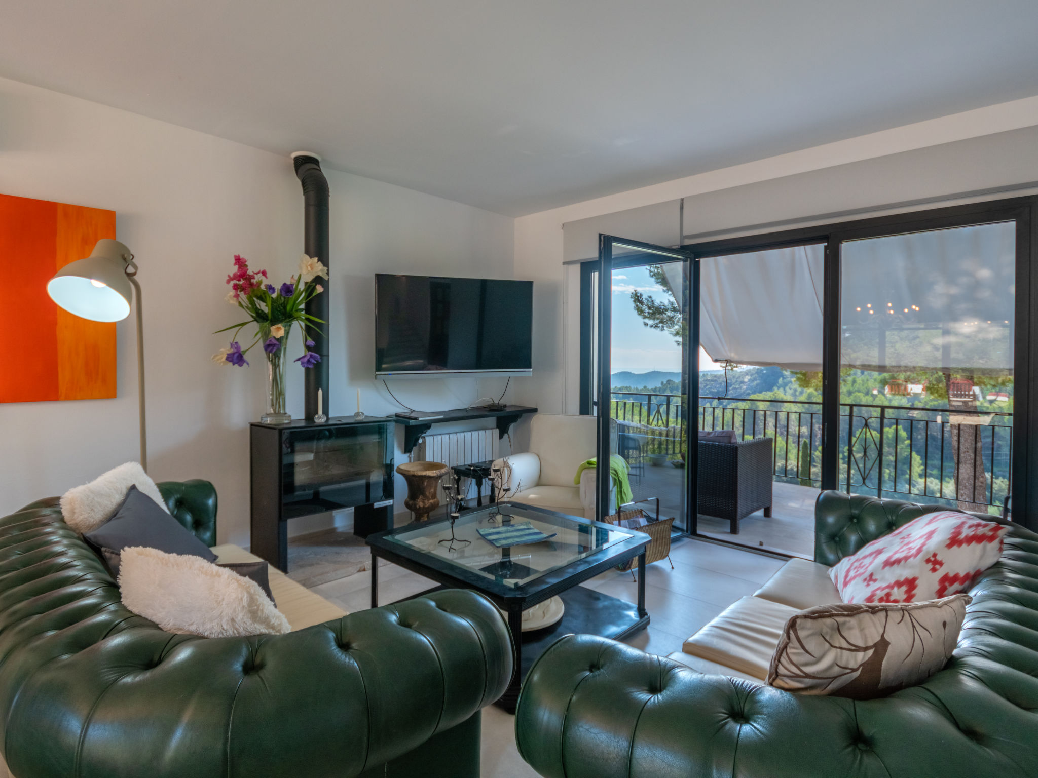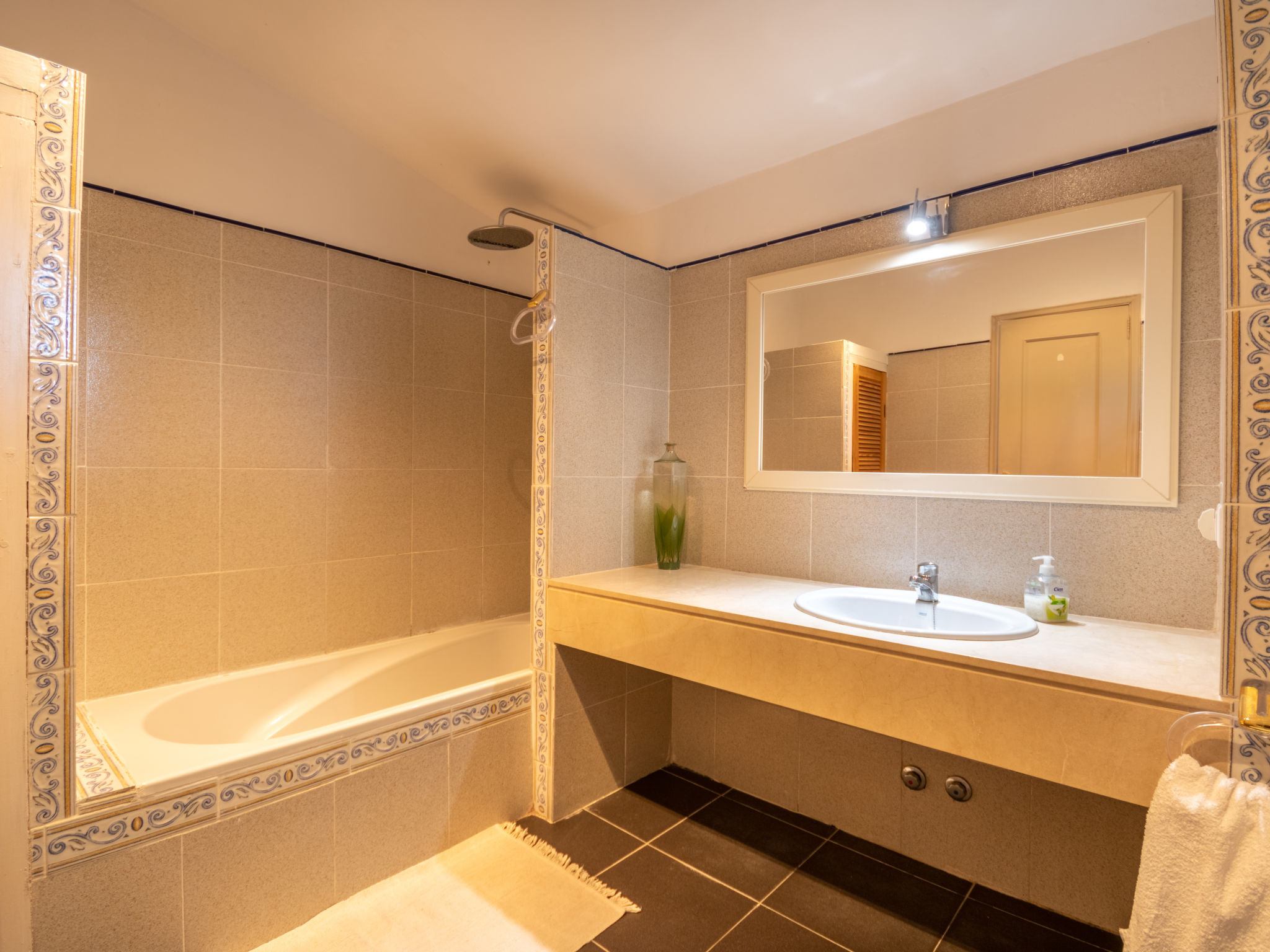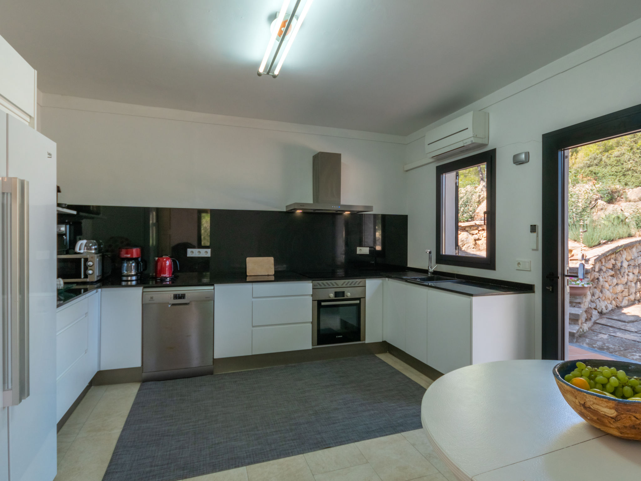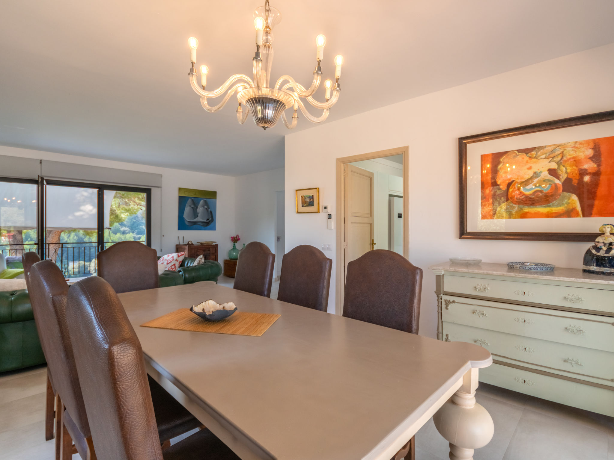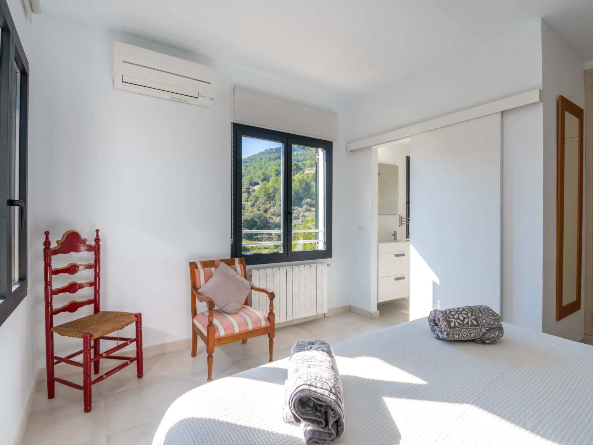 Das schön gelegene Haus steht auf einem Hanggrundstück, oberhalb von Esporles (4,5 km) in einer Naturoase mit ausgedehnten Pinienwäldern und schroff aufragenden Felsen. Wanderfreunde finden in der näheren Umgebung schöne Wanderwege. Ca. 15.000 m² großes, offenes Anwesen. Von der großzügigen Terrasse (ca. 130 m²) mit mehreren Sitzplätzen schöner Panoramablick. Hinter dem Haus liegt der Pool (10 x 4 m, gesamte Saison geöffnet, Salzelektrolyse) mit Sonnenterrasse, Sonnenschirm, Sonnenliegen, Außendusche und überdachtem Sitzplatz mit Sofa. Gasgrill. Am Haus teilüberdachter Balkon mit Mobiliar. Von hier aus gute Sicht bis hin zur Bucht von Palma. Im Untergeschoss des Hauses Tischtennisplatte. Parkmöglichkeit auf dem Grundstück. Verkauf von Wein und Öl auf dem ca. 50 m entfernten Weingut 'Es Verger', das vom Bruder der Besitzerin geführt wird. Geschmackvolle, gute Einrichtung und Dekoration mit Kunstgegenständen (eigene Werke der Hausbesitzerin). Fliesenböden. Sat-TV (deutsche Programme), DVD, Radio/CD. Internetzugang (WLAN, inklusive). Waschmaschine, Bügeleisen/-brett, 2x Fön. Safe. Klimaanlage, Öl-Zentralheizung. Hinweis: Rauchen ist im Haus nicht gestattet.