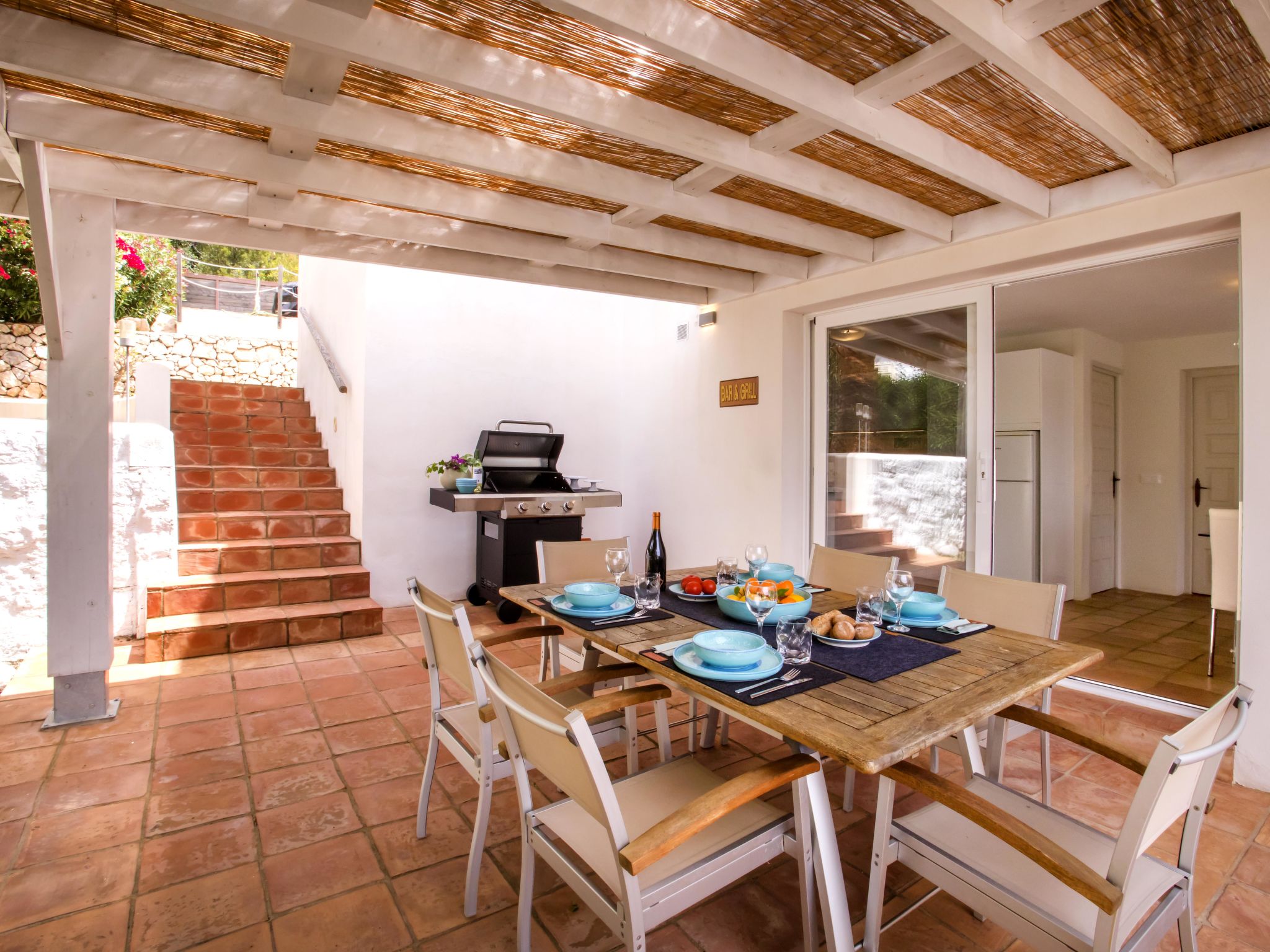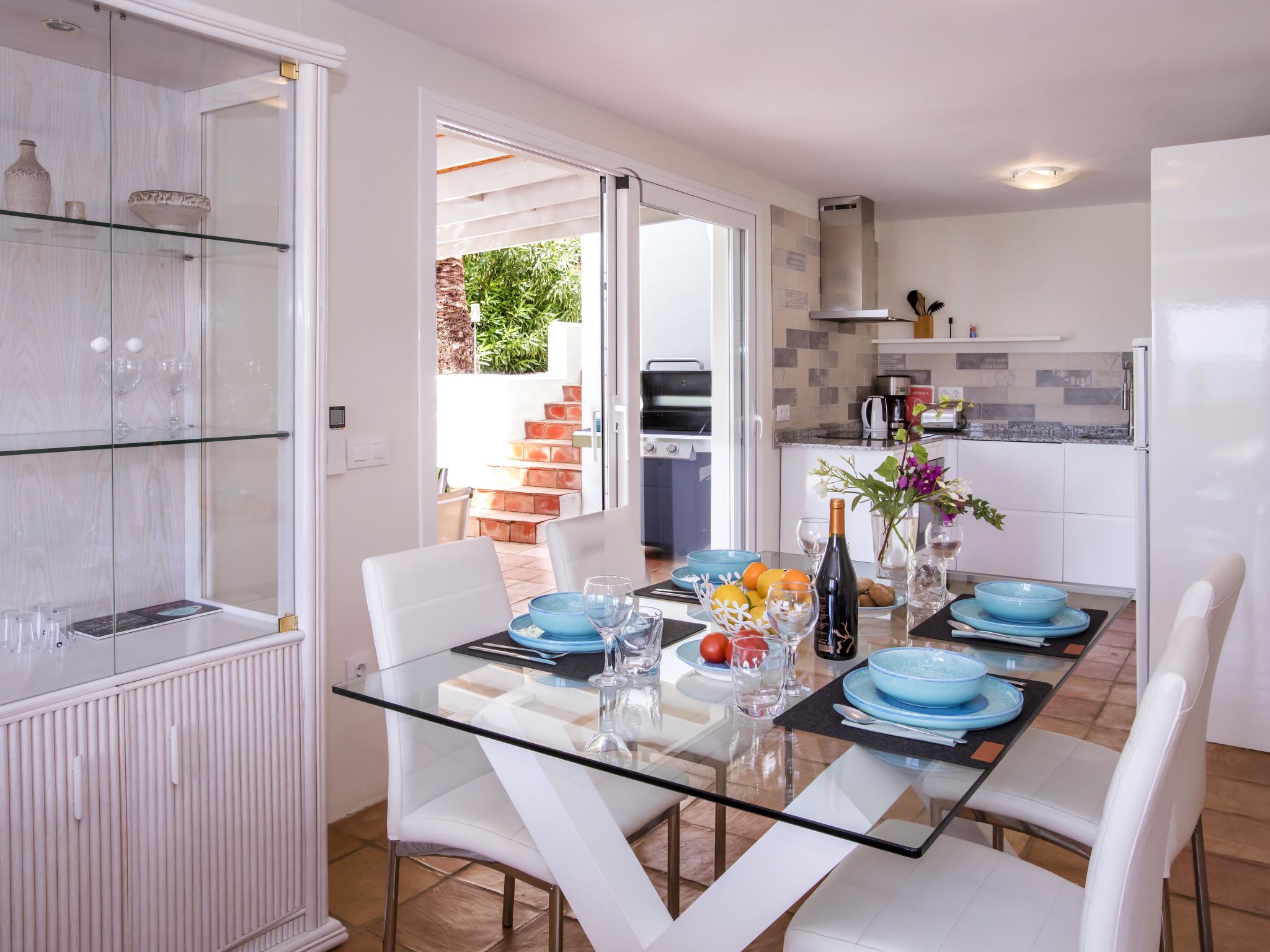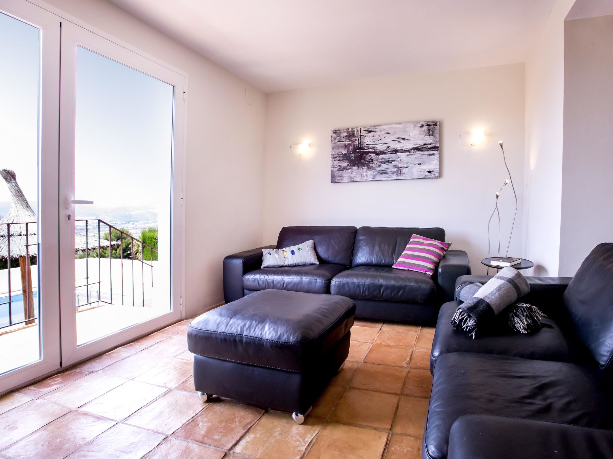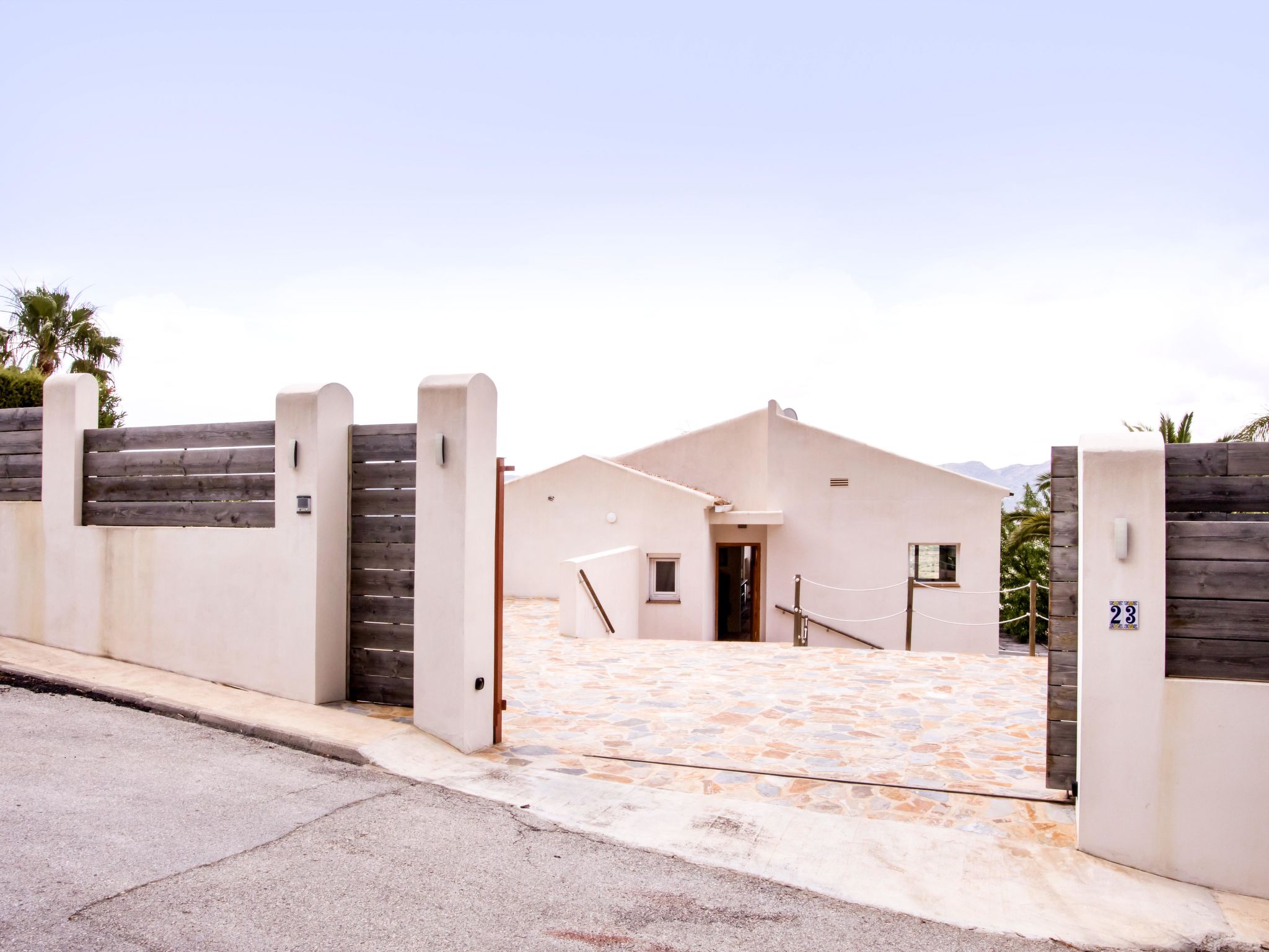 "Villa El Camino", 3-Zimmer-Haus 60 m2, im Erdgeschoss. Wohn-/Esszimmer mit Sat-TV, Digital-TV, Klimaanlage und Warmluftheizung. Ausgang zur Terrasse, zum Schwimmbad. 1 Zimmer mit 1 franz. Bett (160 cm, Länge 200 cm), Dusche/WC, Klimaanlage und Warmluftheizung. 1 Zimmer mit 2 Betten (90 cm, Länge 200 cm), Klimaanlage und Warmluftheizung. Offene Küche (Backofen, Geschirrspüler, 3 Glaskeramikherd Platten, Toaster, Wasserkocher, Mikrowelle, Tiefkühler, elektrische Kaffeemaschine). Dusche/WC. Grosse Terrasse, Südlage. Terrassenmöbel, Gartengrill (4). Herrliche Panoramasicht auf die Berge und das Tal. Zur Verfügung: Waschmaschine, Wäschetrockner, Bügeleisen, Kinderhochstuhl, Babybett, Haartrockner. Internet (Wireless LAN, gratis). Bitte beachten: TV nur DE, ES. VT-487018-A