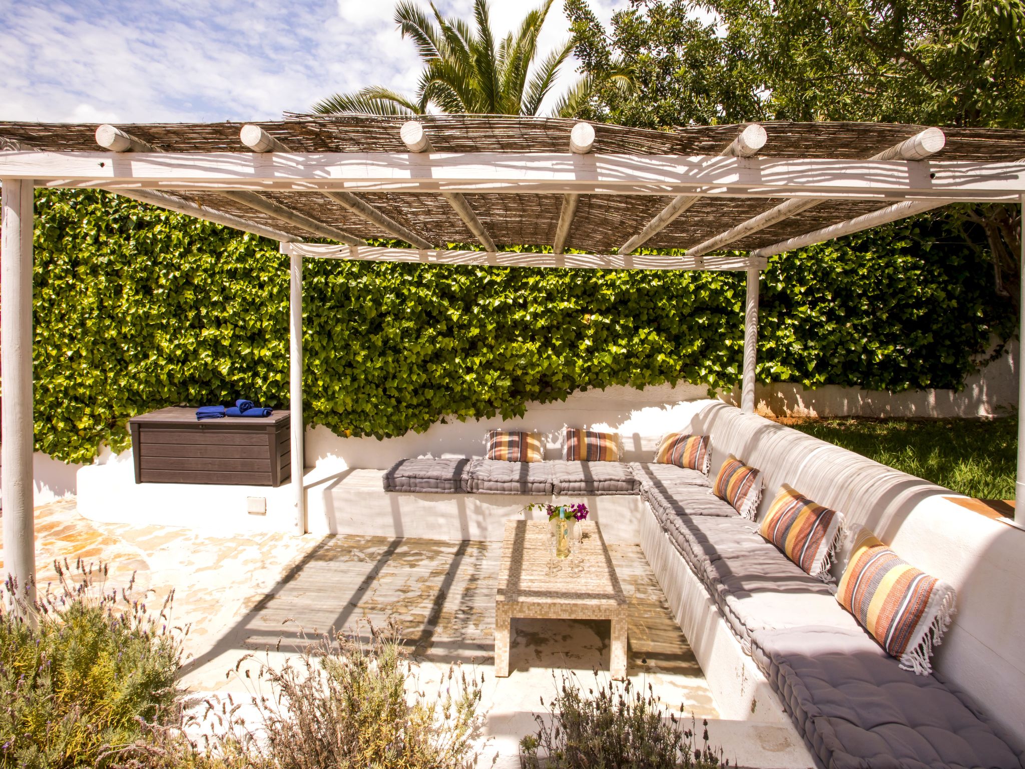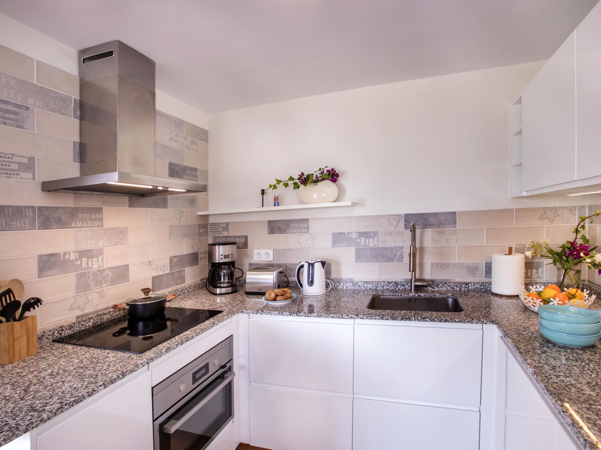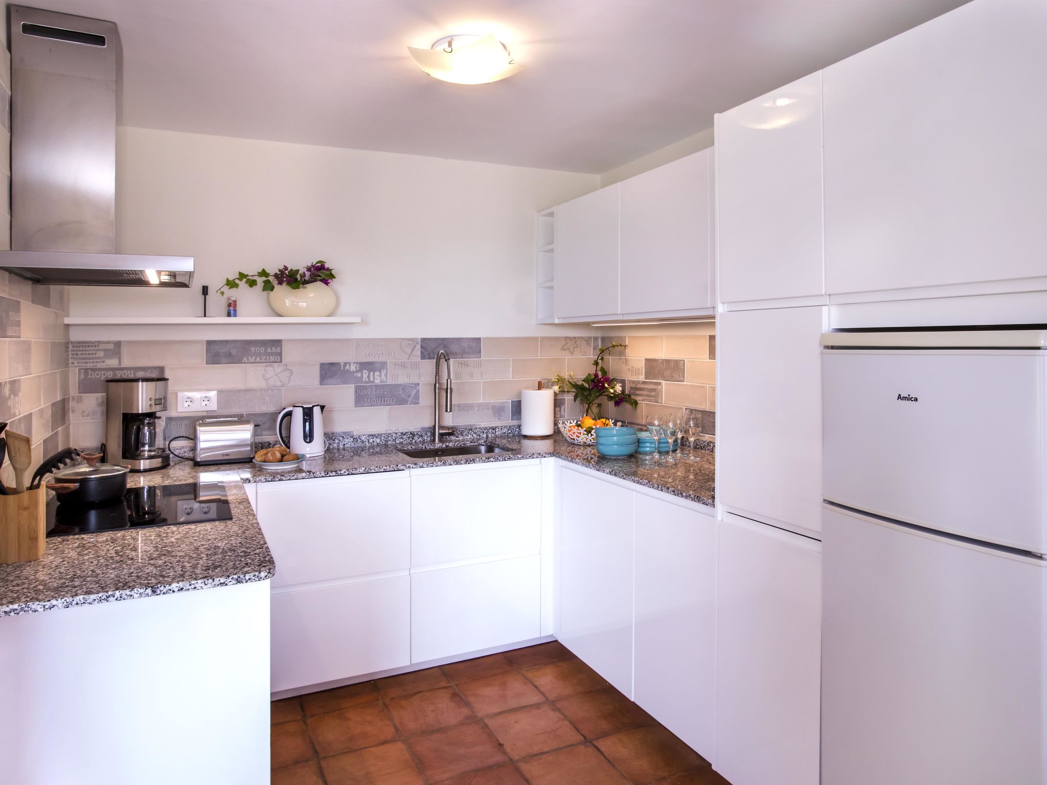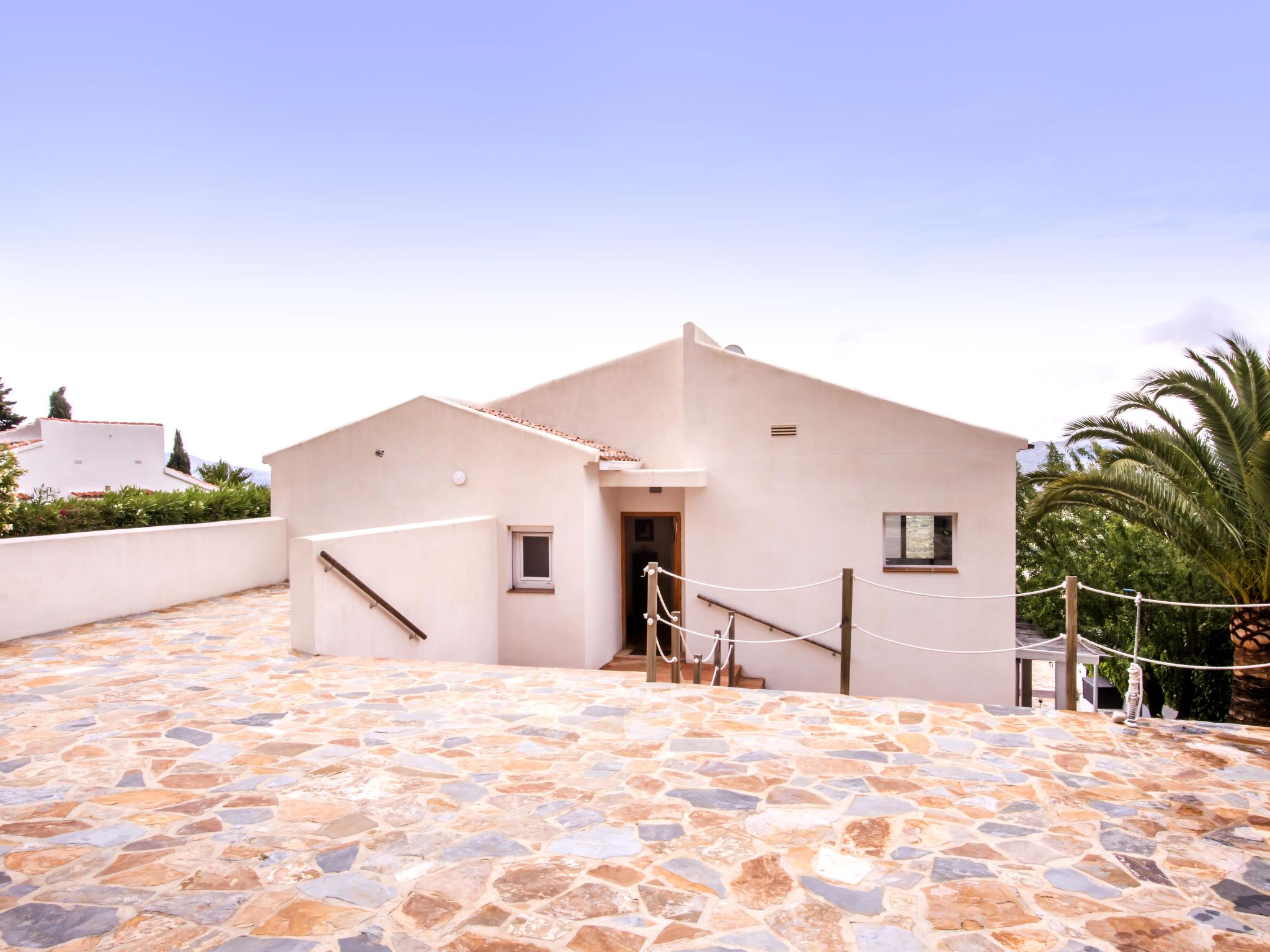 "Villa El Camino", 3-Zimmer-Haus 60 m2, im Erdgeschoss. Wohn-/Esszimmer mit Sat-TV, Digital-TV, Klimaanlage und Warmluftheizung. Ausgang zur Terrasse, zum Schwimmbad. 1 Zimmer mit 1 franz. Bett (160 cm, Länge 200 cm), Dusche/WC, Klimaanlage und Warmluftheizung. 1 Zimmer mit 2 Betten (90 cm, Länge 200 cm), Klimaanlage und Warmluftheizung. Offene Küche (Backofen, Geschirrspüler, 3 Glaskeramikherd Platten, Toaster, Wasserkocher, Mikrowelle, Tiefkühler, elektrische Kaffeemaschine). Dusche/WC. Grosse Terrasse, Südlage. Terrassenmöbel, Gartengrill (4). Herrliche Panoramasicht auf die Berge und das Tal. Zur Verfügung: Waschmaschine, Wäschetrockner, Bügeleisen, Kinderhochstuhl, Babybett, Haartrockner. Internet (Wireless LAN, gratis). Bitte beachten: TV nur DE, ES. VT-487018-A