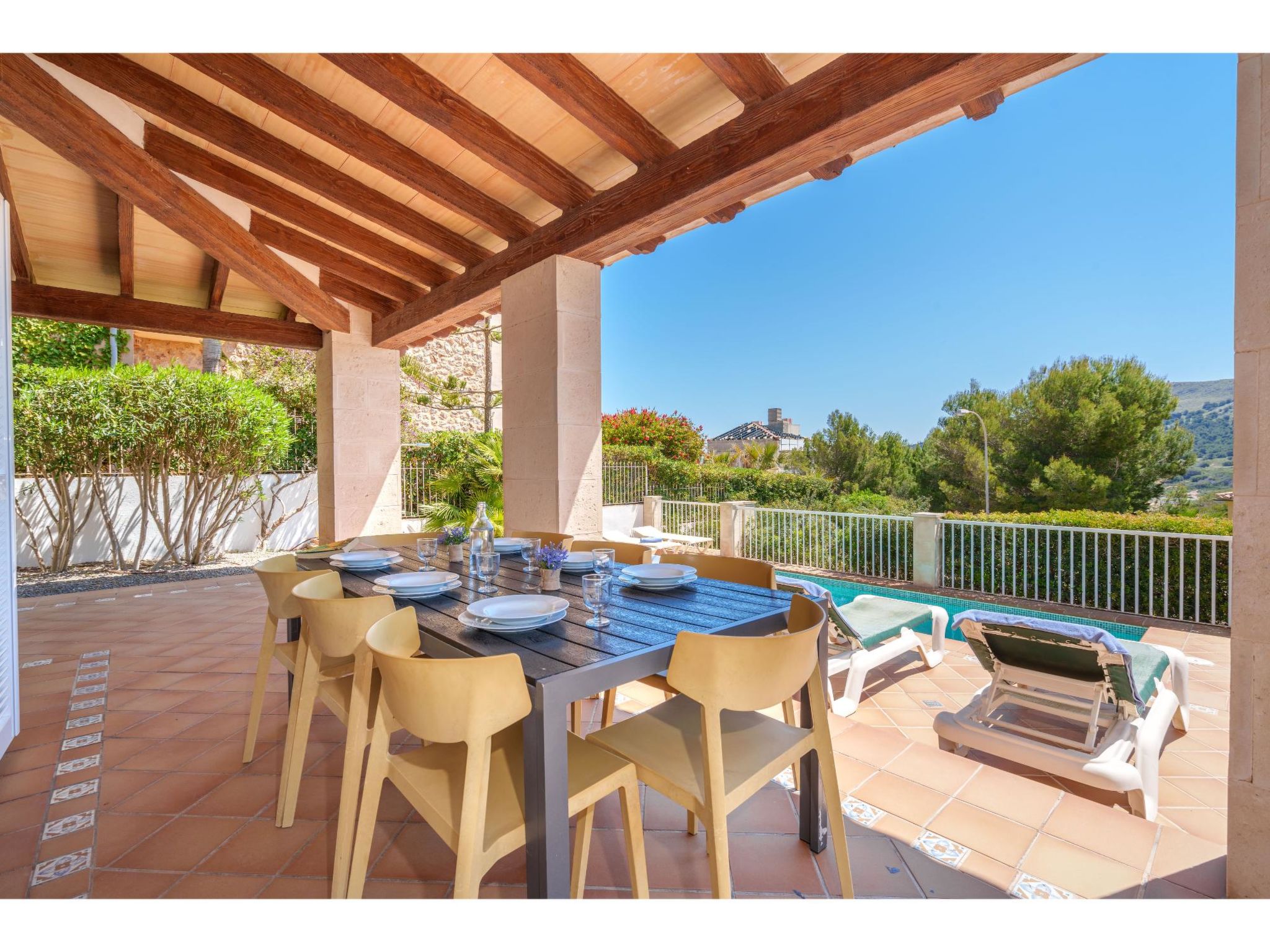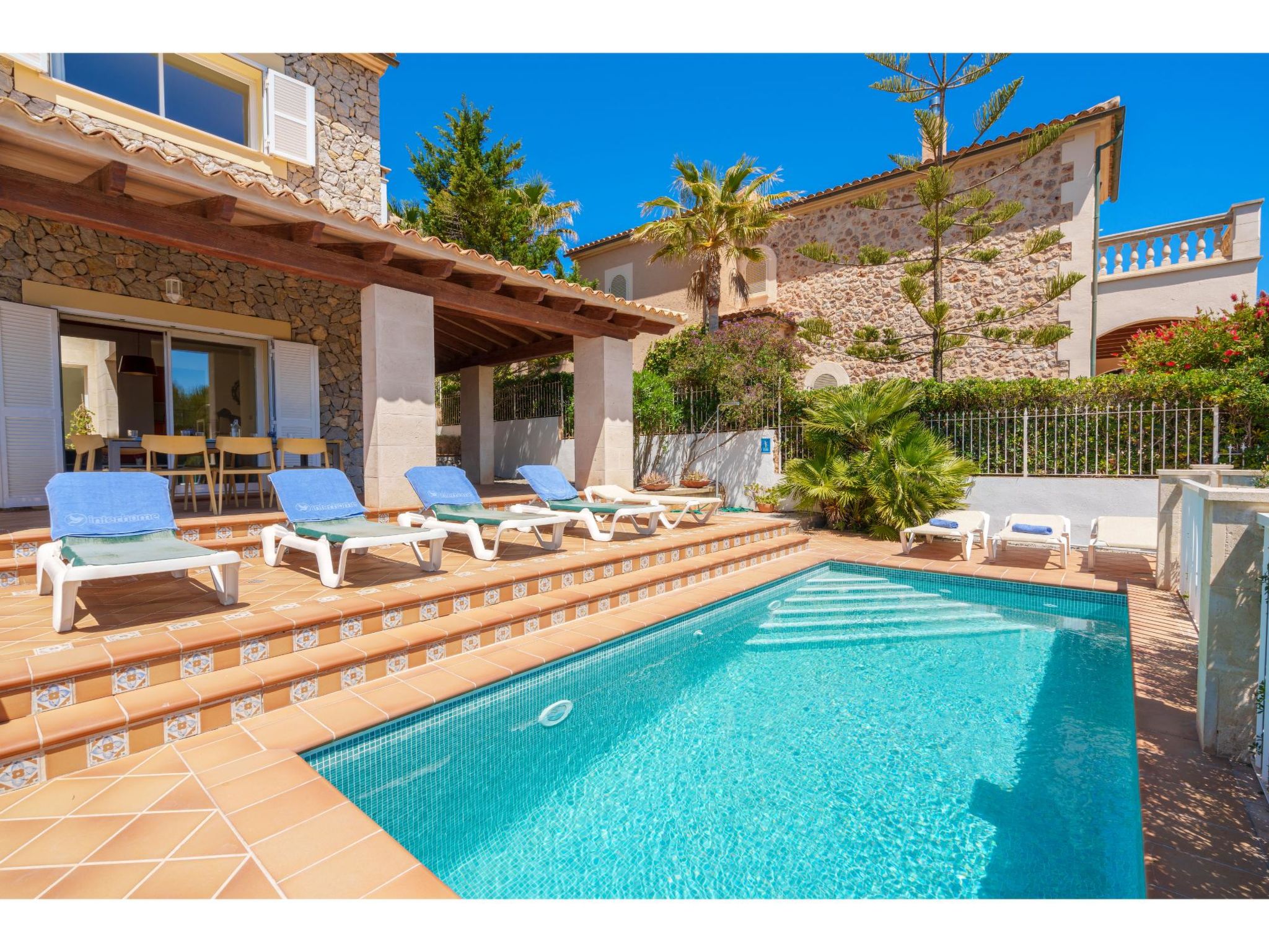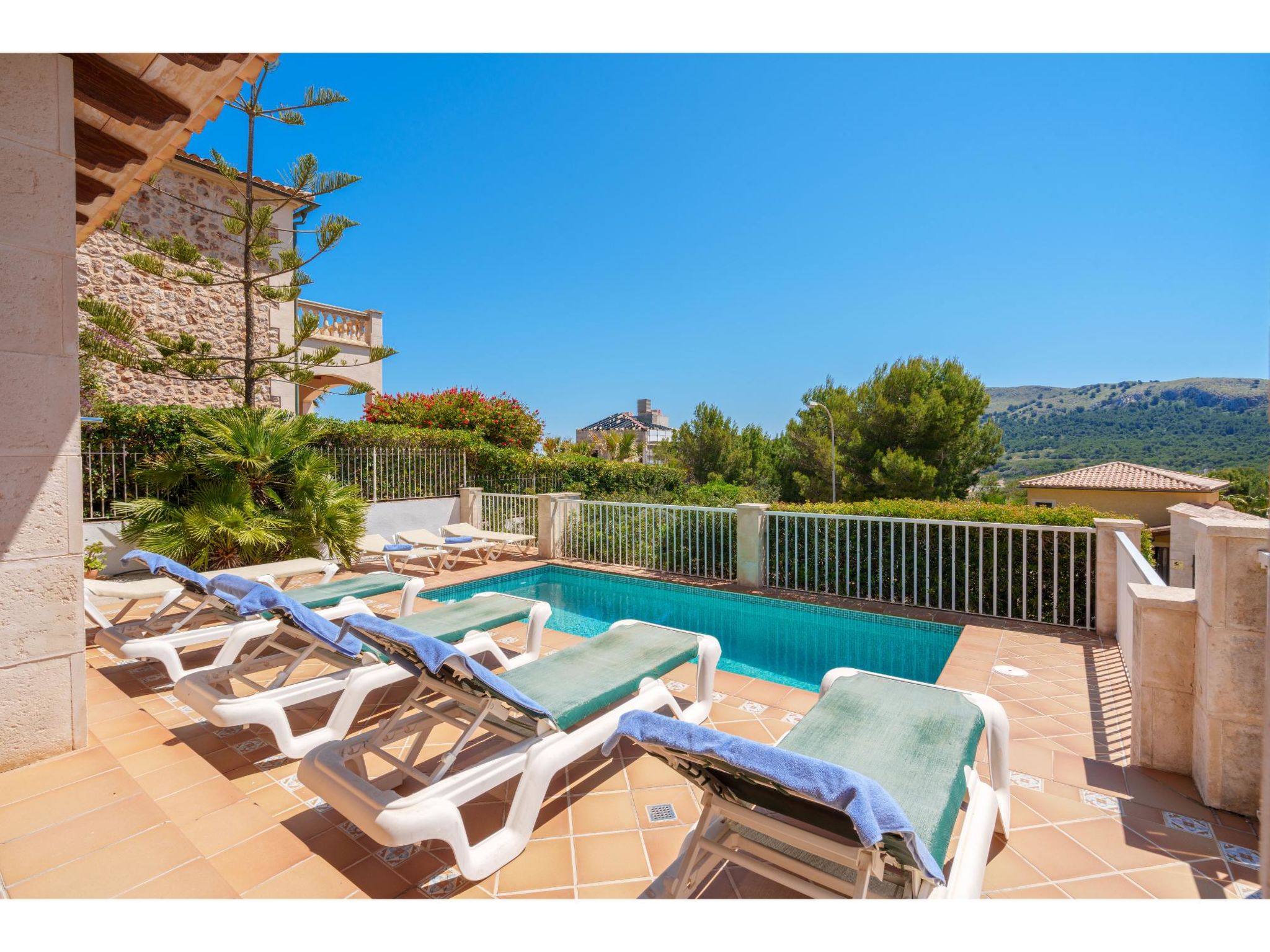 Das Ferienhaus steht oberhalb der Sandbucht Cala Mezquida (ca. 500 m, Strandtreppe) am Hang, mit Blick zum Meer. Restaurant und kleines Lebensmittelgeschäft ca. 350 m. Zum Wanderweg "Talaia de Son Jaumell" und "Cala Torta" ca. 200m. Das ca. 600 m² große, naturbelassene, umzäunte Grundstück ist auf mehreren Ebenen angelegt (Treppen). Garage. Vom Haus über 4 Stufen zum Pool (6 x 3 m, gesamte Saison geöffnet) mit Sonnenterrasse, Sonnenliegen und Außendusche. Große überdachte Terrasse (ca. 35 m²) mit Mobiliar und gemauerter Grillstelle. Gute, moderne Einrichtung. Fliesenböden, in den Schlafzimmern im Obergeschoss Parkettboden. Sat-TV (deutsche Programme). DVD. Internetzugang (WLAN, inklusive). Waschmaschine, Trockner, Bügeleisen/-brett, 2x Fön. Klimaanlage in den Schlafzimmern. Öl-Zentralheizung. Hinweis: Rauchen ist im Haus nicht gestattet.