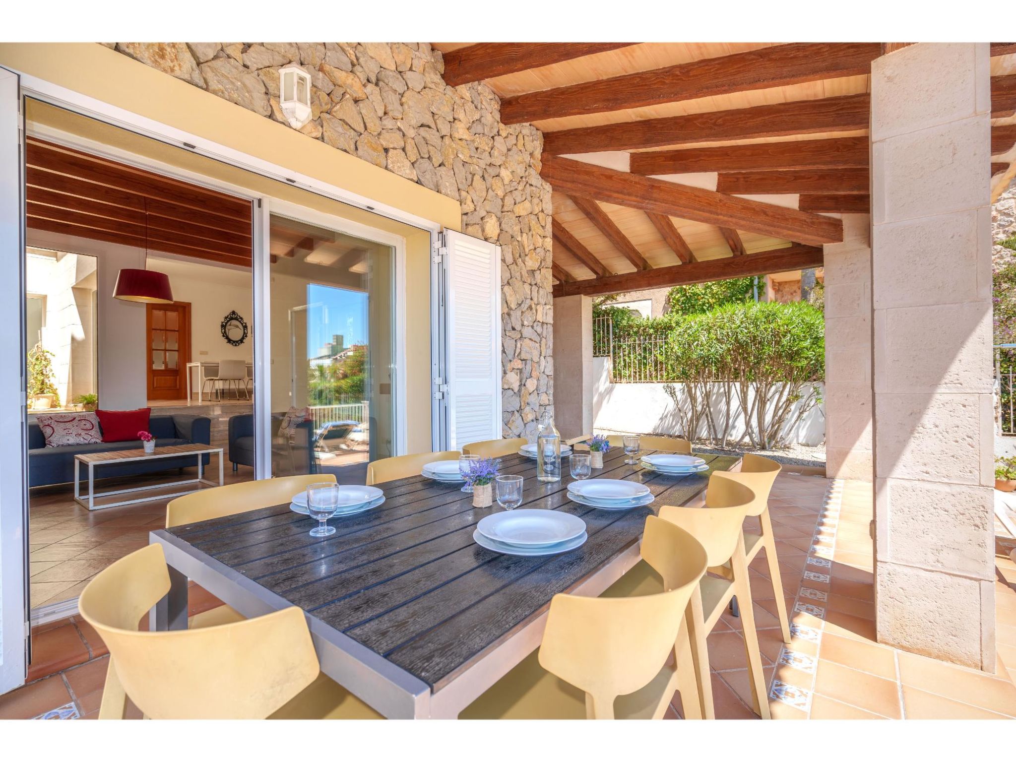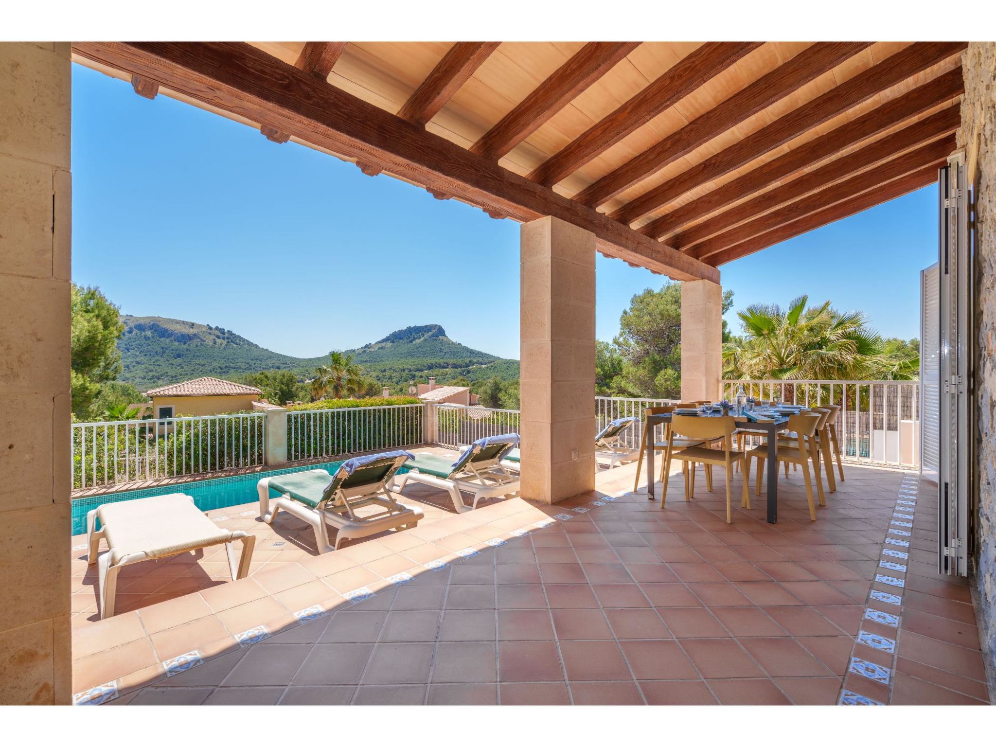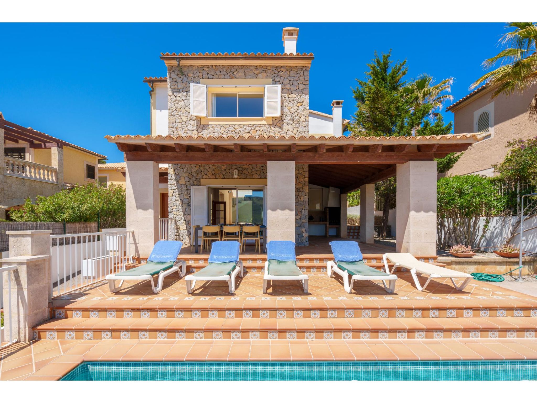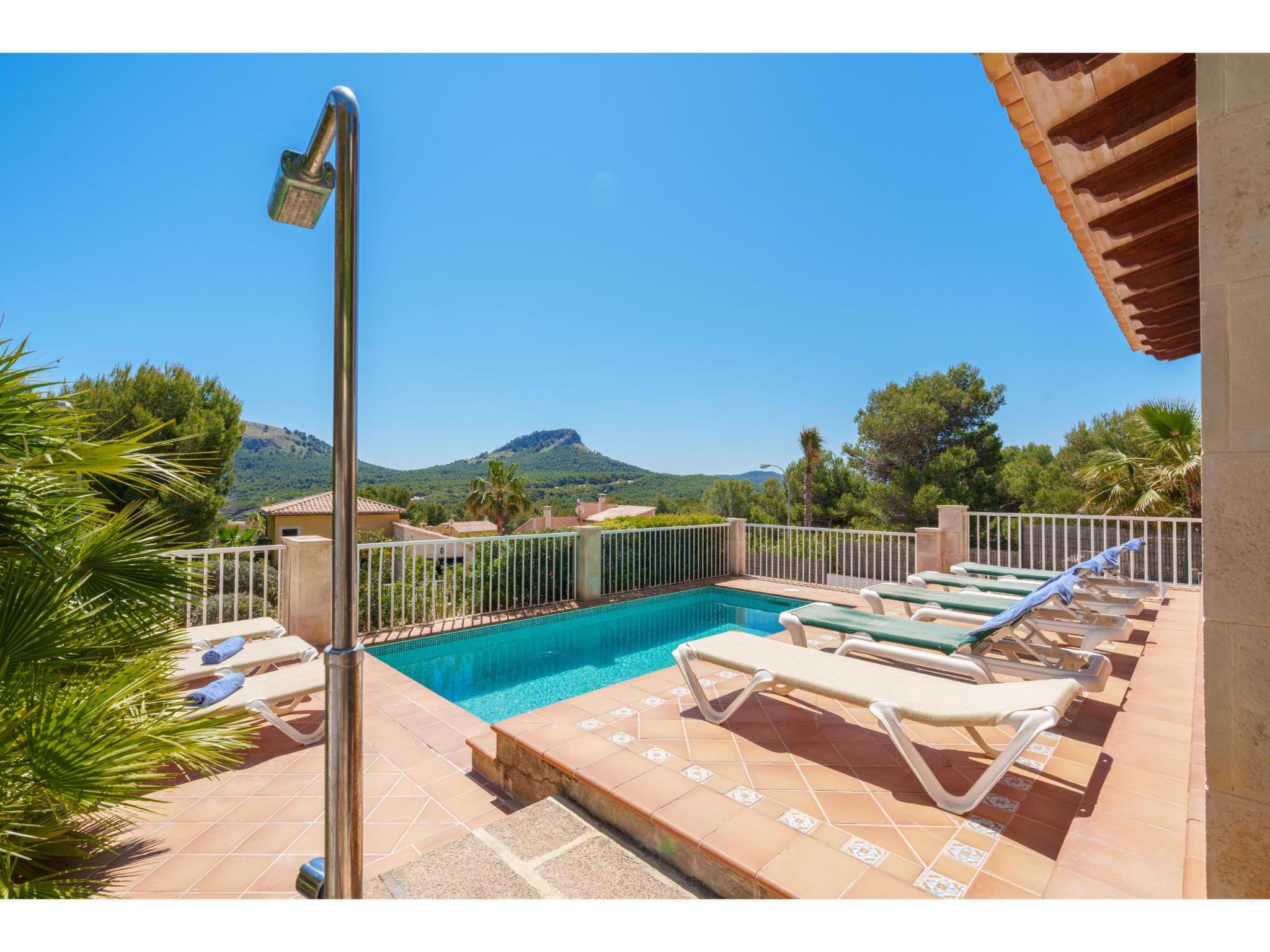 Das Ferienhaus steht oberhalb der Sandbucht Cala Mezquida (ca. 500 m, Strandtreppe) am Hang, mit Blick zum Meer. Restaurant und kleines Lebensmittelgeschäft ca. 350 m. Zum Wanderweg "Talaia de Son Jaumell" und "Cala Torta" ca. 200m. Das ca. 600 m² große, naturbelassene, umzäunte Grundstück ist auf mehreren Ebenen angelegt (Treppen). Garage. Vom Haus über 4 Stufen zum Pool (6 x 3 m, gesamte Saison geöffnet) mit Sonnenterrasse, Sonnenliegen und Außendusche. Große überdachte Terrasse (ca. 35 m²) mit Mobiliar und gemauerter Grillstelle. Gute, moderne Einrichtung. Fliesenböden, in den Schlafzimmern im Obergeschoss Parkettboden. Sat-TV (deutsche Programme). DVD. Internetzugang (WLAN, inklusive). Waschmaschine, Trockner, Bügeleisen/-brett, 2x Fön. Klimaanlage in den Schlafzimmern. Öl-Zentralheizung. Hinweis: Rauchen ist im Haus nicht gestattet.