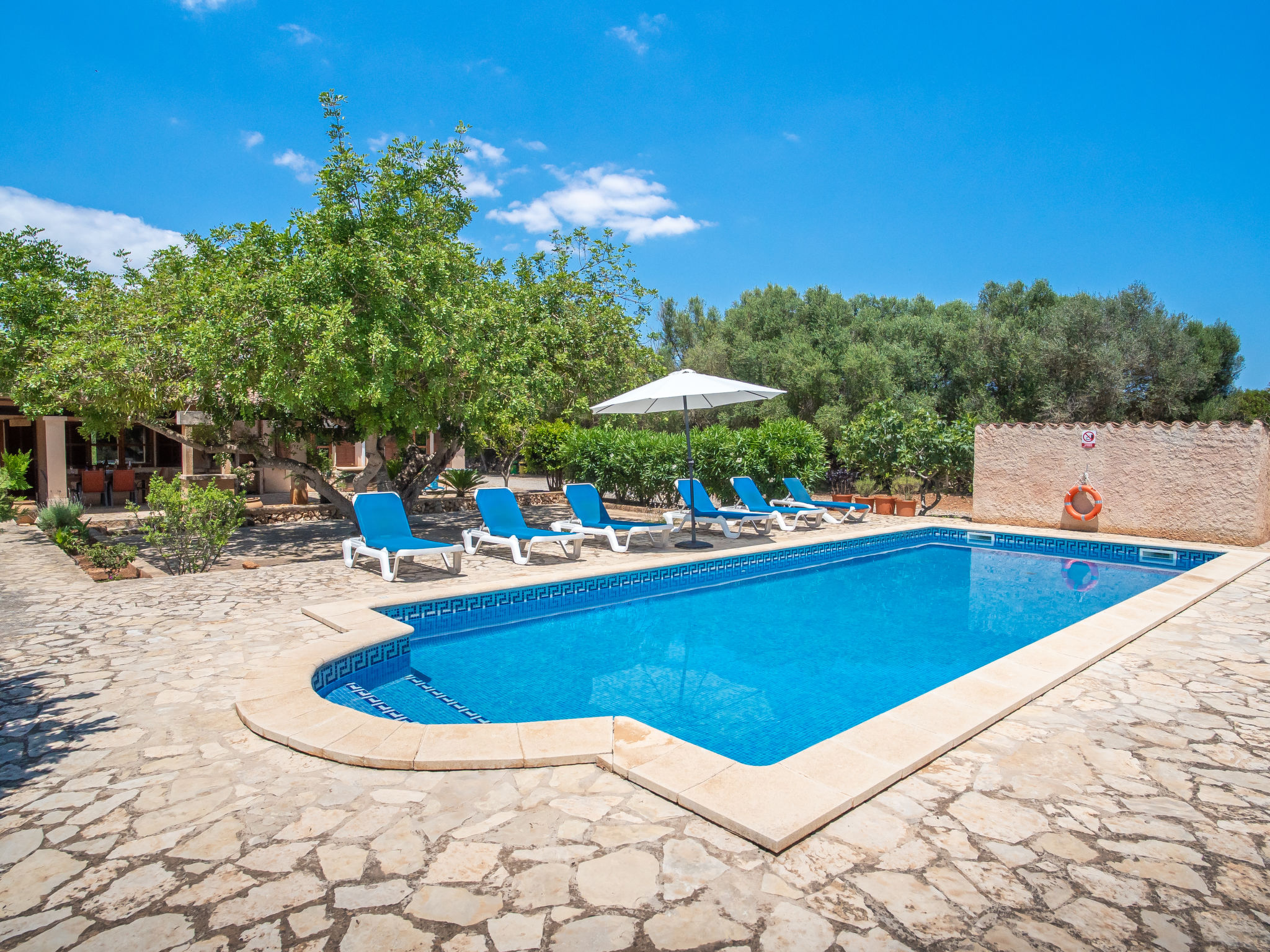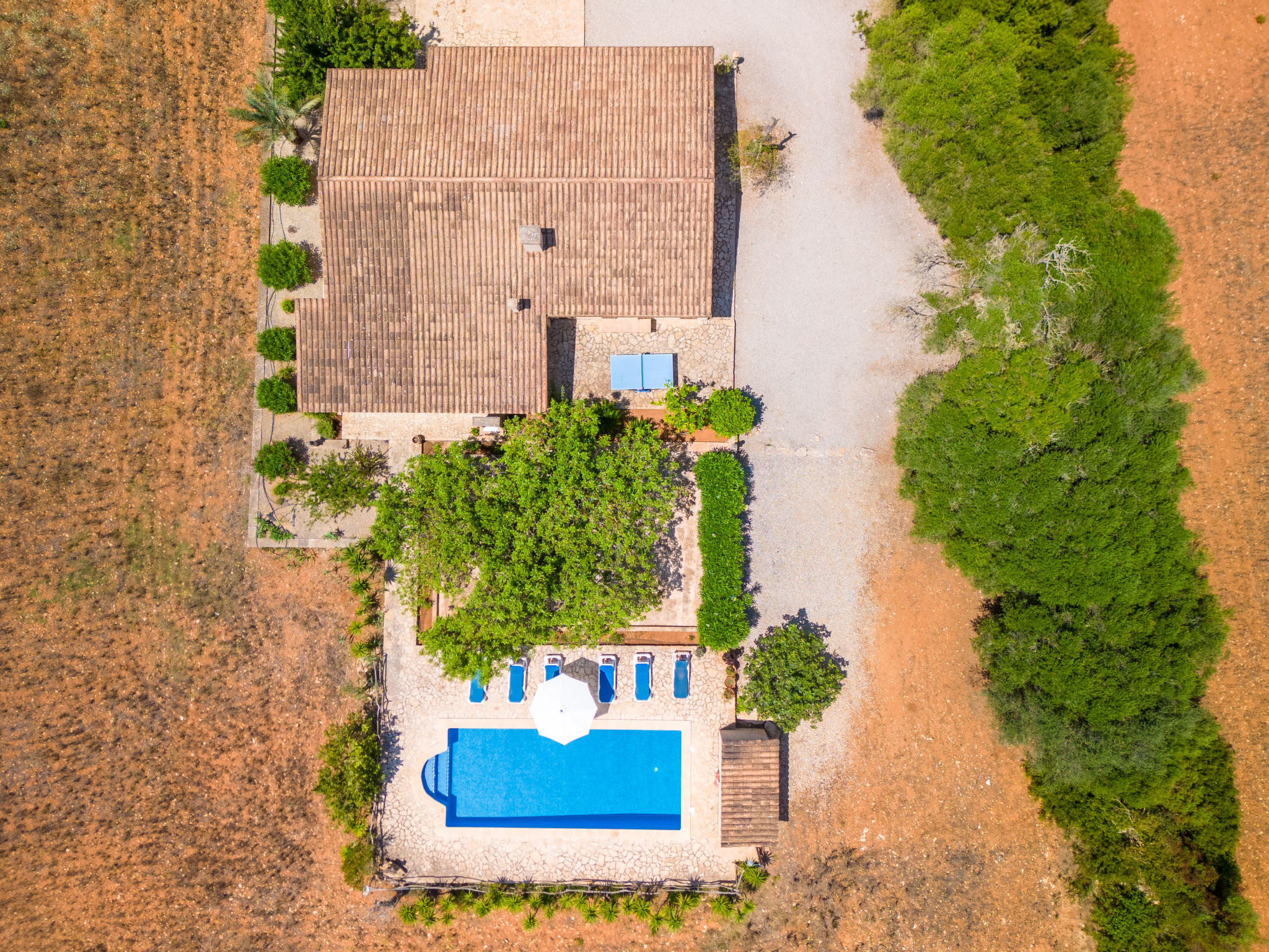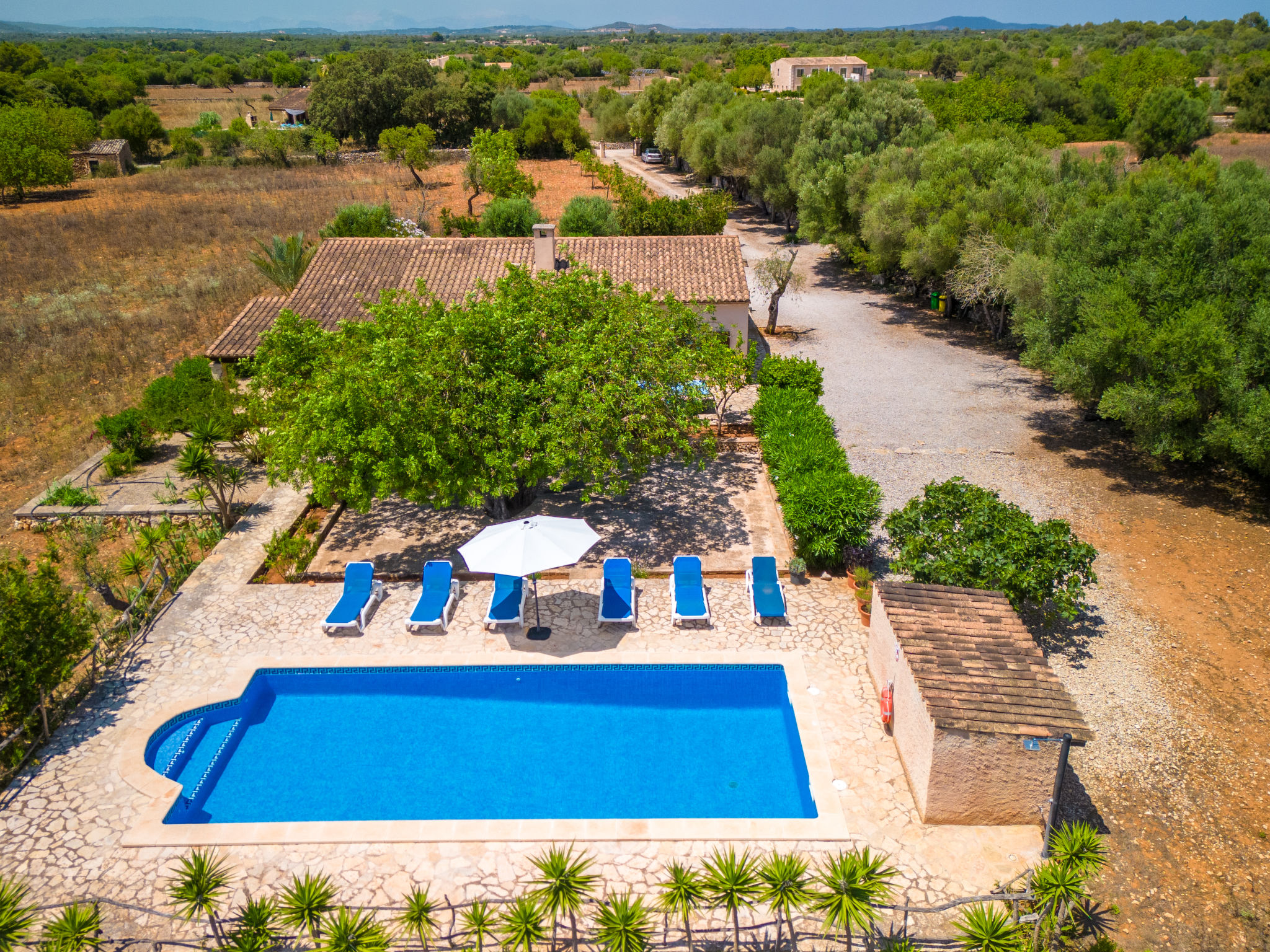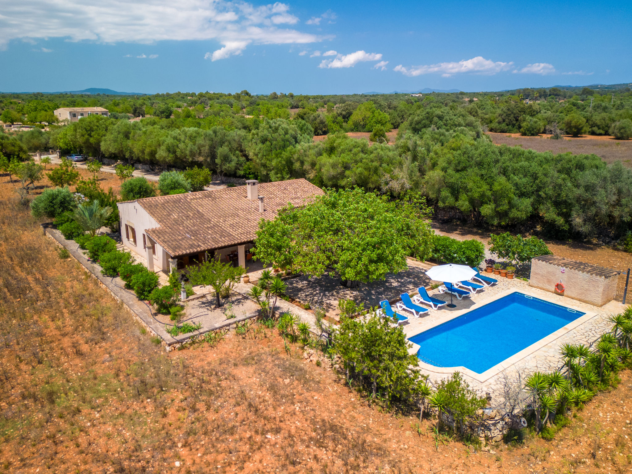 Die von Feldern umgebene Finca steht 6 km südwestlich von Felanitx in Richtung Campos (8 km) im Gebiet Son Negre. Zu den Sandstränden an der Ostküste (z.B. Cala Mondragó) 15 km. Reitschule 1 km. Das ca. 15.000 m² große, überwiegend naturbelassene Grundstück ist mit vielen Mandelbäumen bestanden und größtenteils mit einer Natursteinmauer eingefasst. Rund um das Haus gepflegte Terrassenflächen, begrenzt von Oleanderbüschen. Natürlichen Schatten spendet der Johannisbrotbaum neben dem Pool (8 x 4 m, gesamte Saison geöffnet) mit rundumlaufender Sonnenterrasse, 6 Sonnenliegen und Außendusche. Am Haus in Richtung Pool große überdachte Terrasse (ca. 25 m²) mit Mobiliar, gemauerter Grillstelle und Tischtennisplatte. Parkplatz auf dem Grundstück. Gute Einrichtung. Fliesenböden. Sat-TV (deutsche Programme), DVD, Radio/CD. Internetzugang (WLAN, € 12 pro Woche). Waschmaschine, Bügeleisen/-brett, Fön. Klimaanlage mit Kühl-/Heizfunktion. Hinweis: Rauchen ist im Haus nicht gestattet.