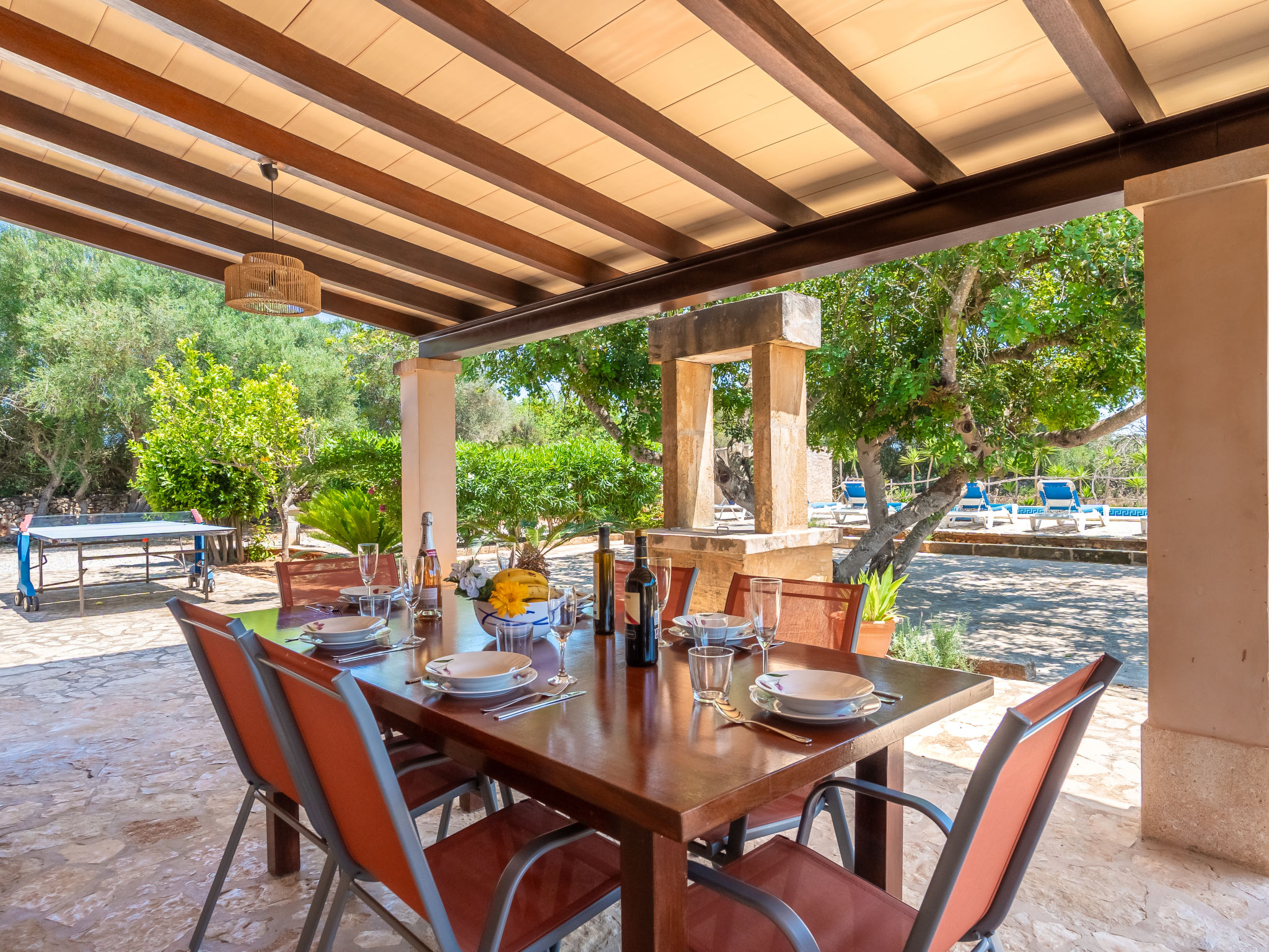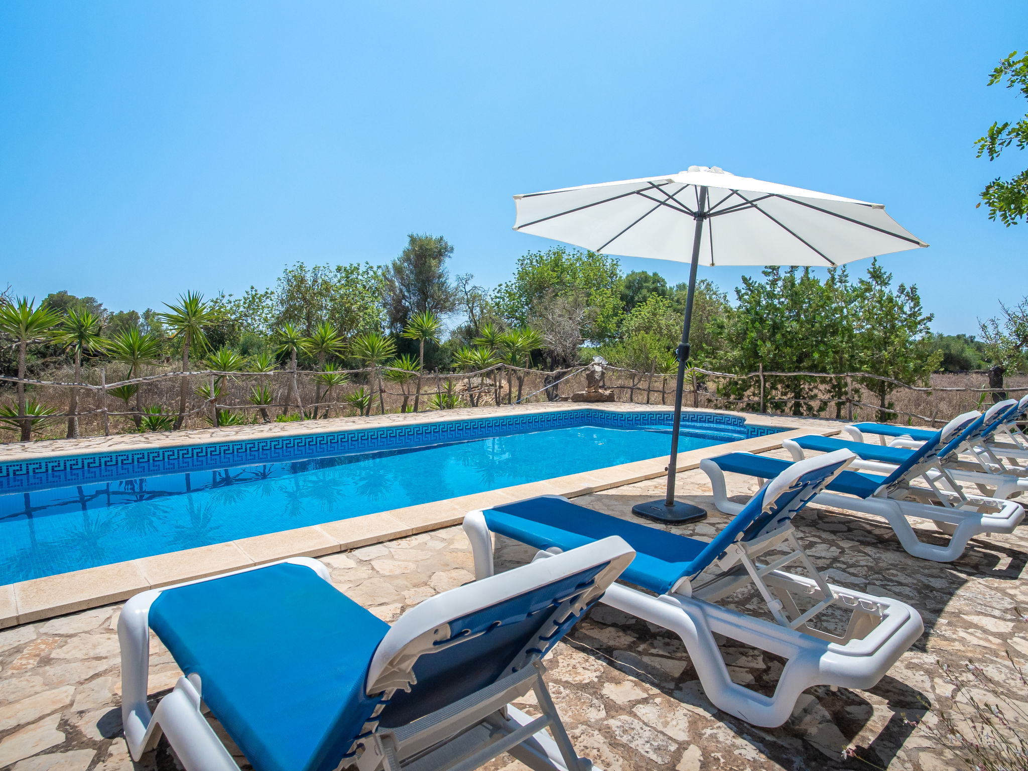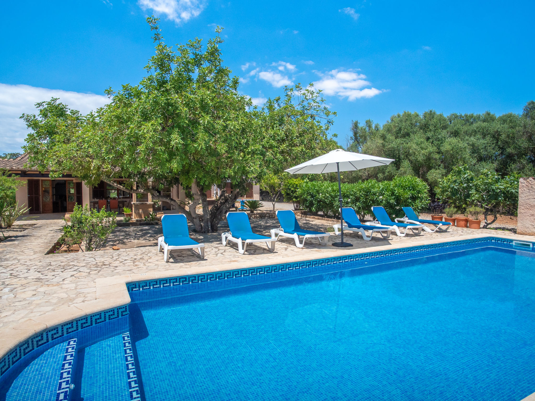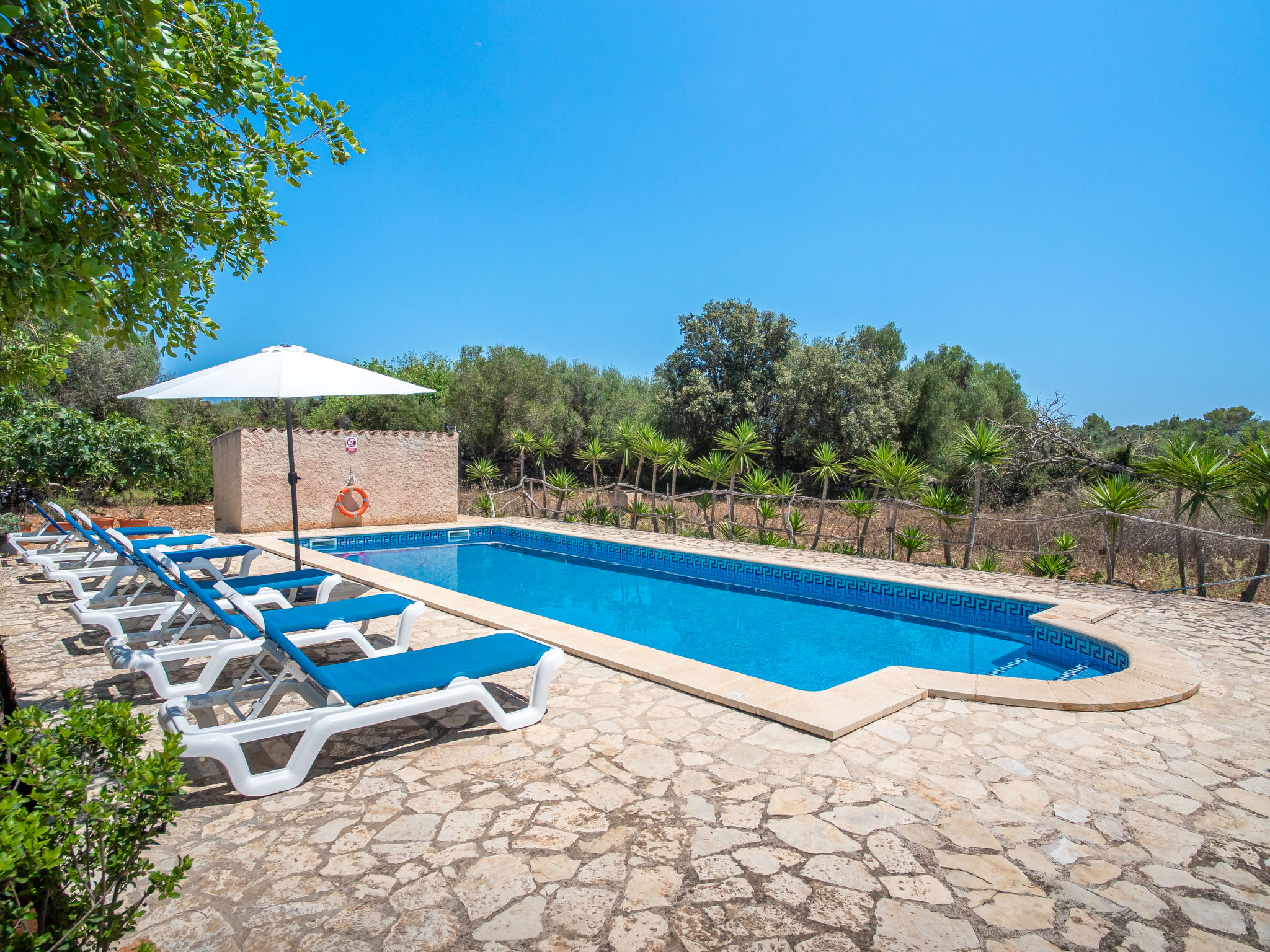 Die von Feldern umgebene Finca steht 6 km südwestlich von Felanitx in Richtung Campos (8 km) im Gebiet Son Negre. Zu den Sandstränden an der Ostküste (z.B. Cala Mondragó) 15 km. Reitschule 1 km. Das ca. 15.000 m² große, überwiegend naturbelassene Grundstück ist mit vielen Mandelbäumen bestanden und größtenteils mit einer Natursteinmauer eingefasst. Rund um das Haus gepflegte Terrassenflächen, begrenzt von Oleanderbüschen. Natürlichen Schatten spendet der Johannisbrotbaum neben dem Pool (8 x 4 m, gesamte Saison geöffnet) mit rundumlaufender Sonnenterrasse, 6 Sonnenliegen und Außendusche. Am Haus in Richtung Pool große überdachte Terrasse (ca. 25 m²) mit Mobiliar, gemauerter Grillstelle und Tischtennisplatte. Parkplatz auf dem Grundstück. Gute Einrichtung. Fliesenböden. Sat-TV (deutsche Programme), DVD, Radio/CD. Internetzugang (WLAN, € 12 pro Woche). Waschmaschine, Bügeleisen/-brett, Fön. Klimaanlage mit Kühl-/Heizfunktion. Hinweis: Rauchen ist im Haus nicht gestattet.
