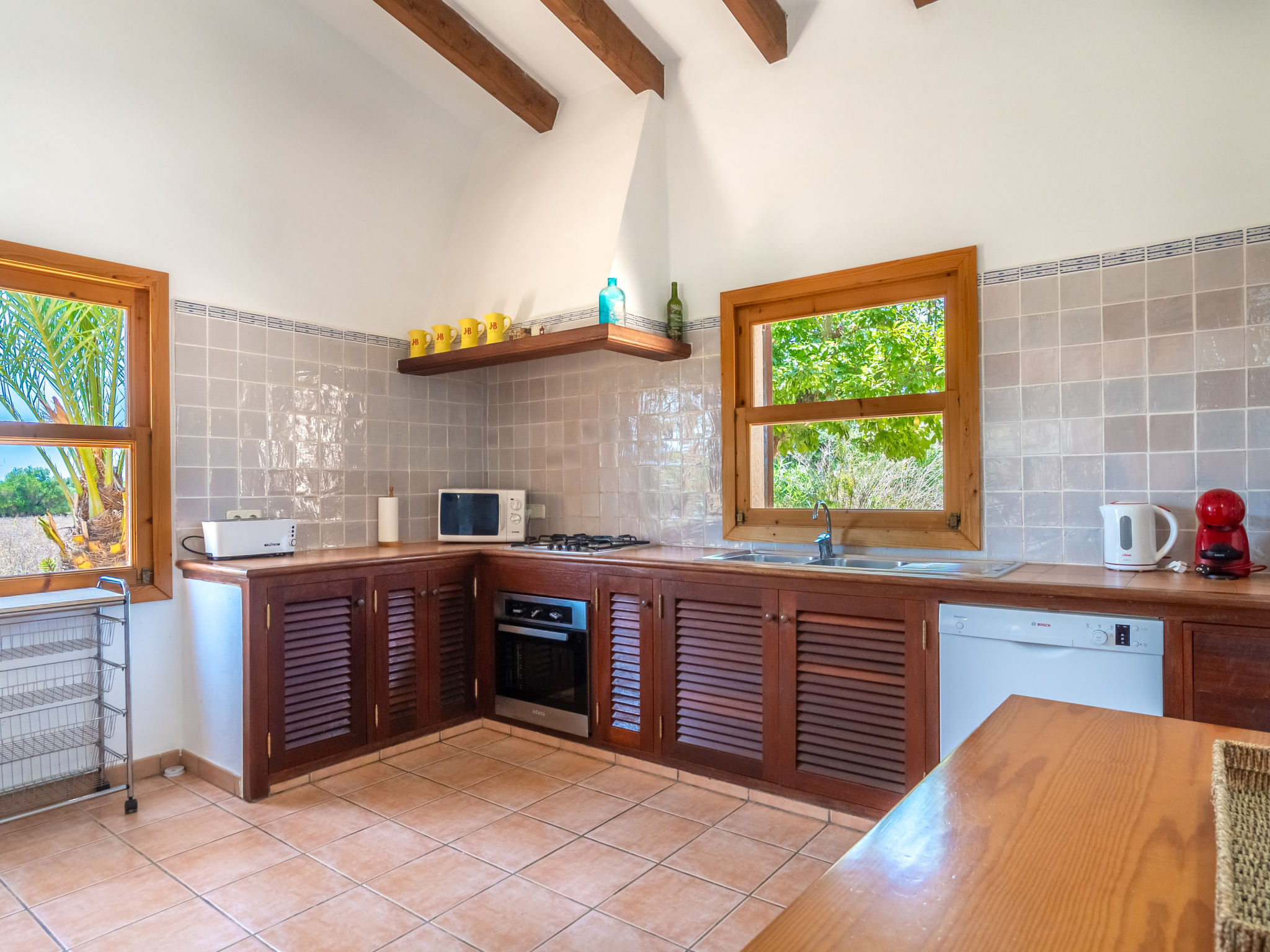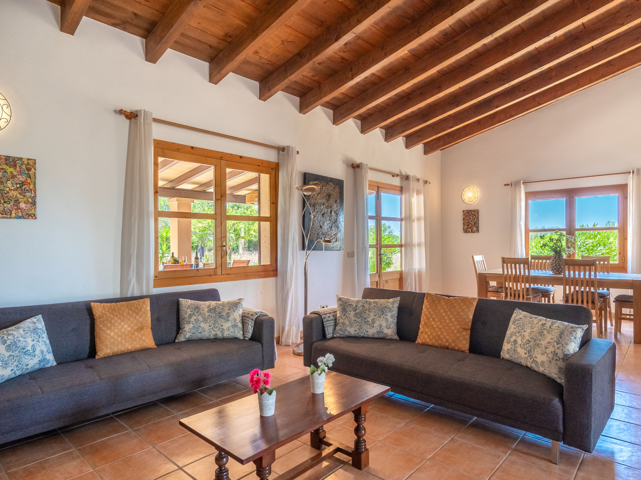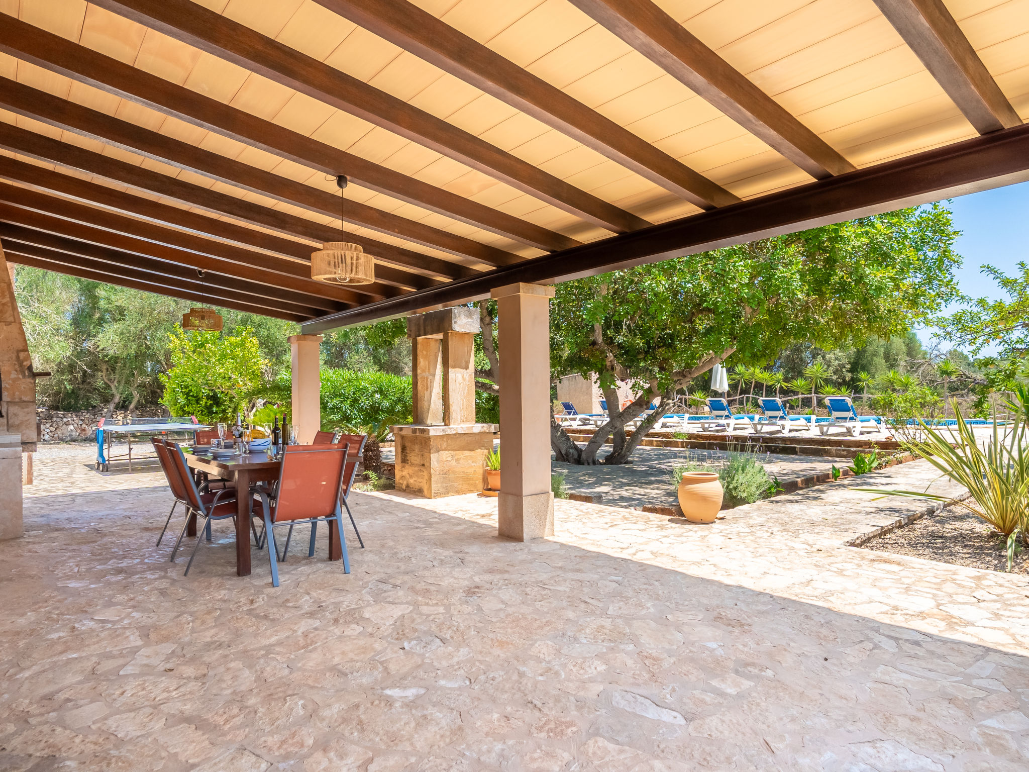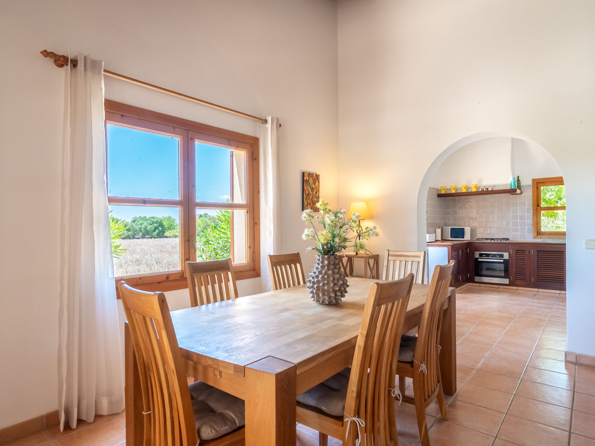 Die von Feldern umgebene Finca steht 6 km südwestlich von Felanitx in Richtung Campos (8 km) im Gebiet Son Negre. Zu den Sandstränden an der Ostküste (z.B. Cala Mondragó) 15 km. Reitschule 1 km. Das ca. 15.000 m² große, überwiegend naturbelassene Grundstück ist mit vielen Mandelbäumen bestanden und größtenteils mit einer Natursteinmauer eingefasst. Rund um das Haus gepflegte Terrassenflächen, begrenzt von Oleanderbüschen. Natürlichen Schatten spendet der Johannisbrotbaum neben dem Pool (8 x 4 m, gesamte Saison geöffnet) mit rundumlaufender Sonnenterrasse, 6 Sonnenliegen und Außendusche. Am Haus in Richtung Pool große überdachte Terrasse (ca. 25 m²) mit Mobiliar, gemauerter Grillstelle und Tischtennisplatte. Parkplatz auf dem Grundstück. Gute Einrichtung. Fliesenböden. Sat-TV (deutsche Programme), DVD, Radio/CD. Internetzugang (WLAN, € 12 pro Woche). Waschmaschine, Bügeleisen/-brett, Fön. Klimaanlage mit Kühl-/Heizfunktion. Hinweis: Rauchen ist im Haus nicht gestattet.