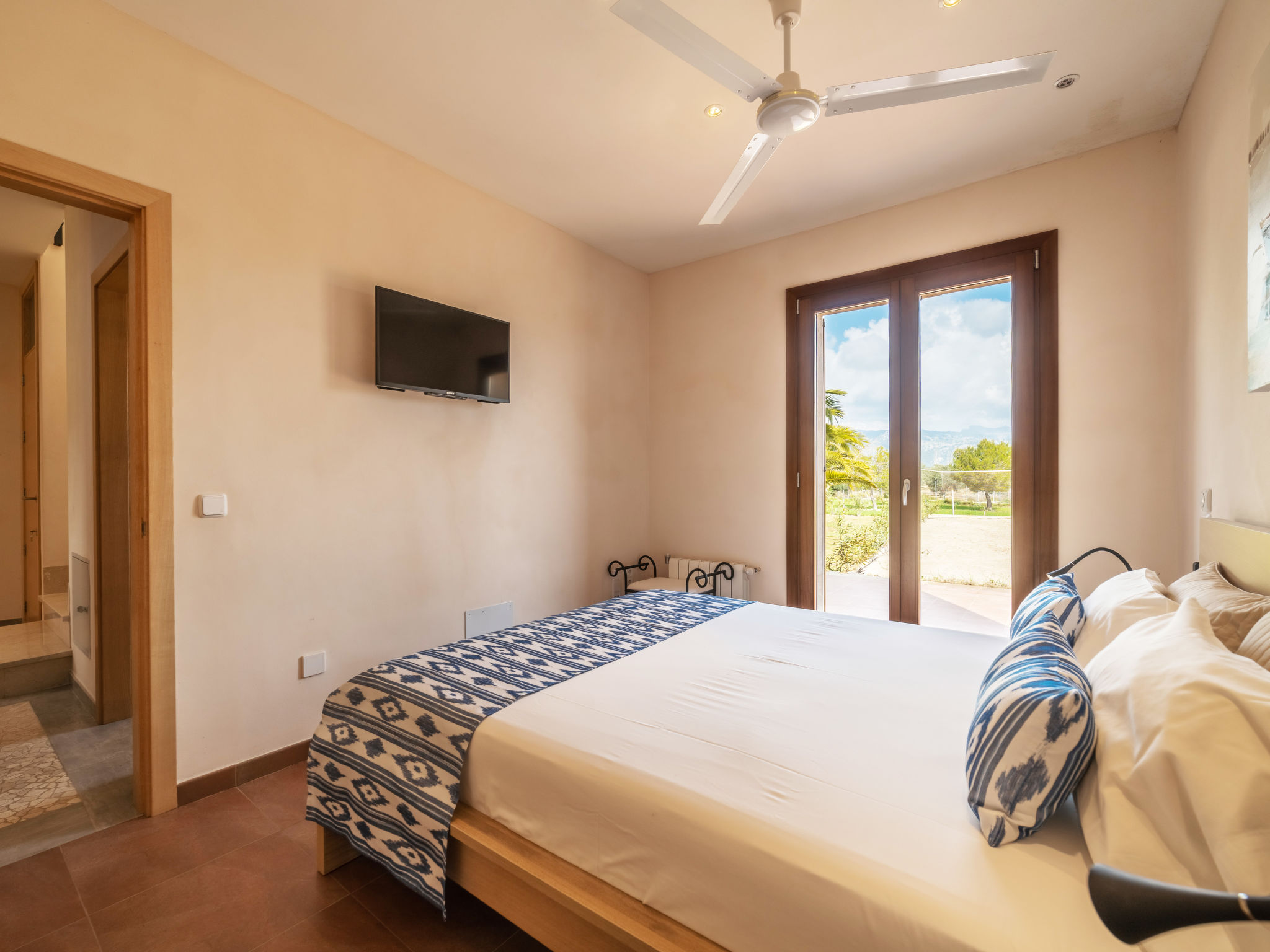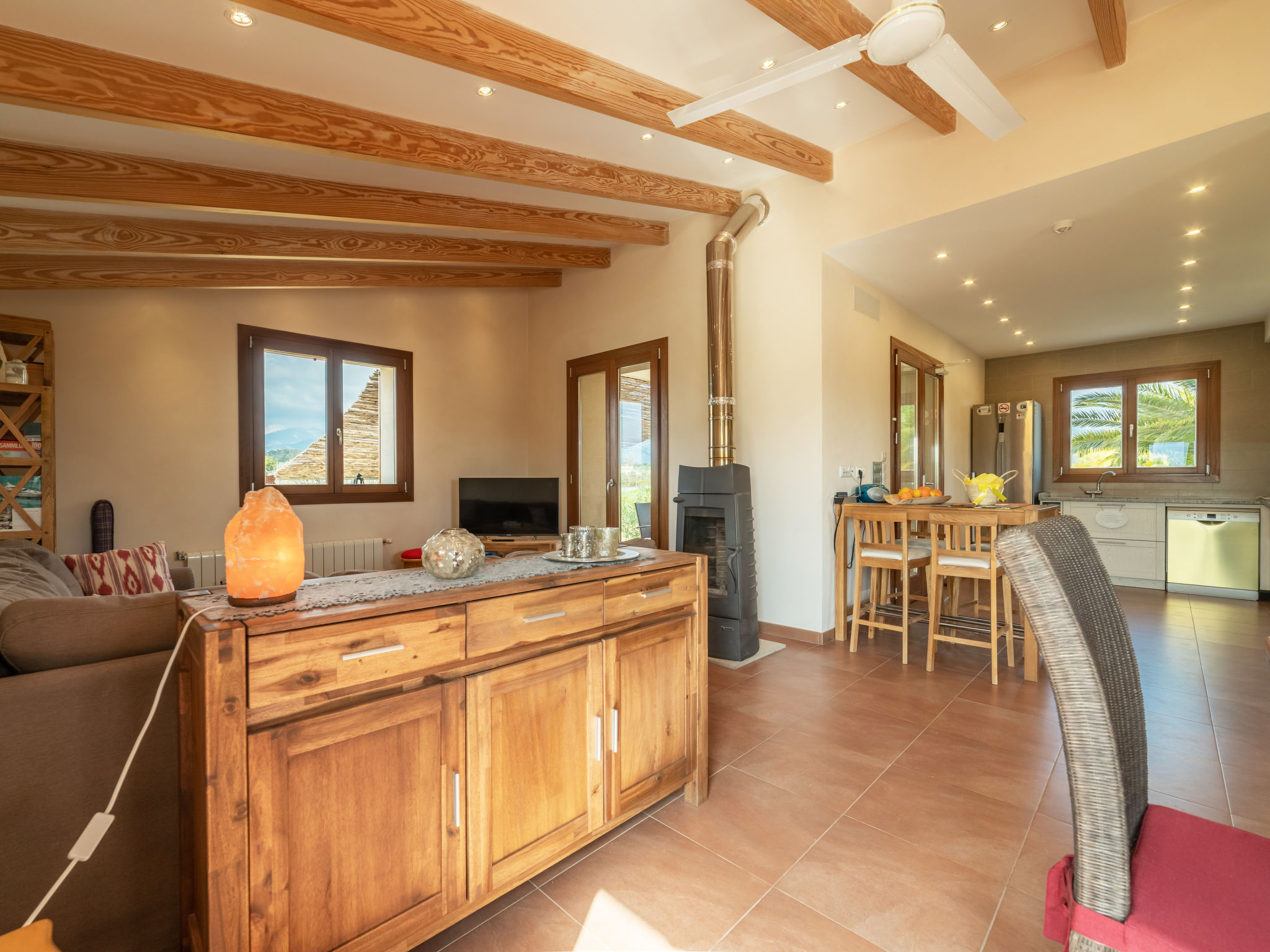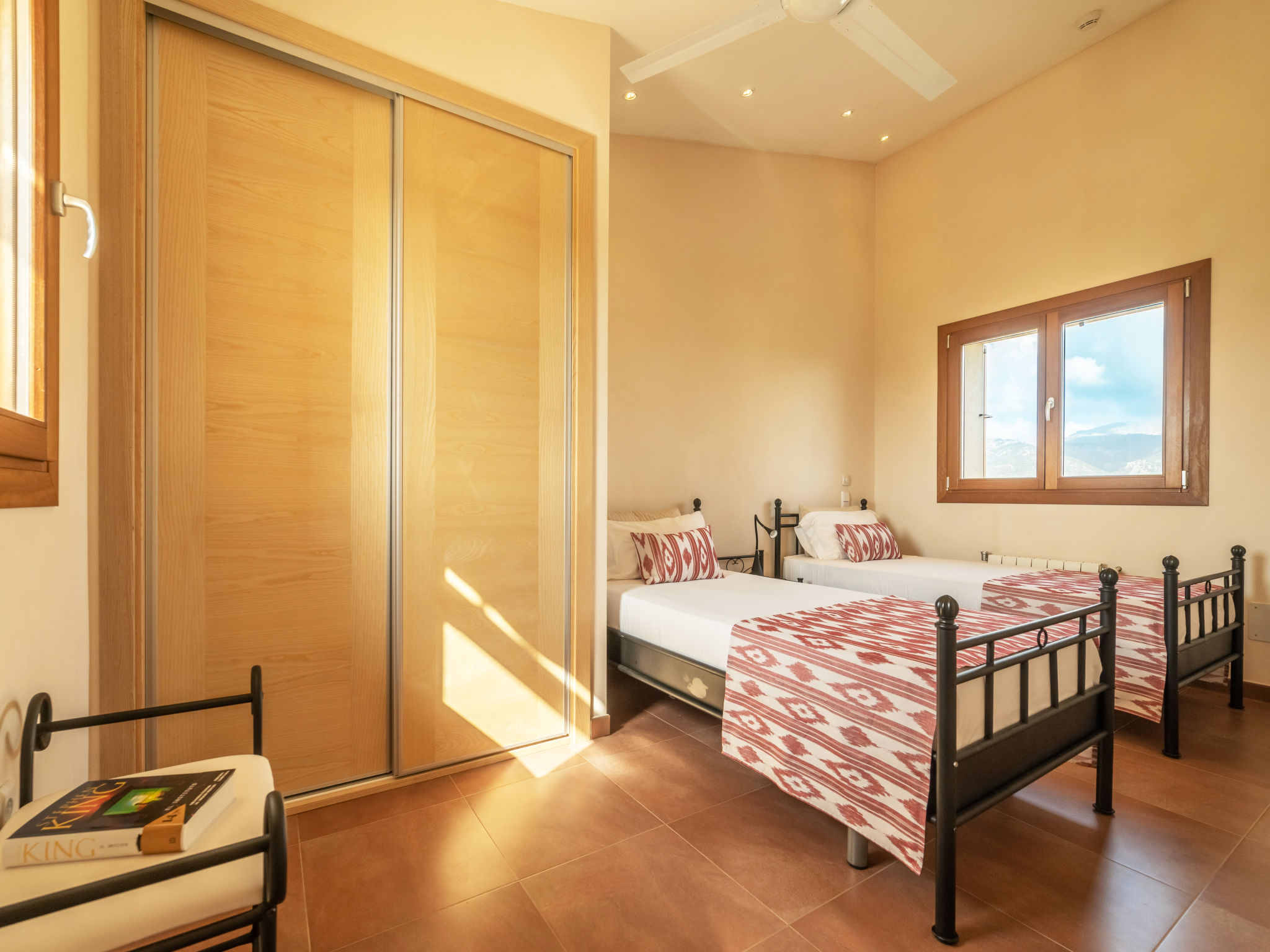 "Son Bordoi", 5-Zimmer-Haus 224 m2 auf 2 Stockwerken. Objekt geeignet für 8 Erwachsene. Geräumig, komfortabel und gemütlich eingerichtet: 1 Doppelzimmer mit 1 franz. Bett (160 cm, Länge 200 cm), Sat-TV, Flachbildschirm und Ventilator. Ausgang zum Gartensitzplatz, zum Schwimmbad. Offenes grosses Wohn-/Esszimmer mit Panoramafenster mit Esstisch, Sat-TV, Digital-TV, Flachbildschirm und Holzofen. Ausgang zum Gartensitzplatz, zum Schwimmbad. Offene Küche (4 Kochplatten, Backofen, Geschirrspüler, Toaster, Mikrowelle, Tiefkühler, elektrische Kaffeemaschine). Ausgang zum Gartensitzplatz, zum Schwimmbad. Bad oder Dusche/WC. Obergeschoss: 1 grosses Doppelzimmer mit 2 Betten (90 cm, Länge 190 cm), Sat-TV, Flachbildschirm und Ventilator. 1 grosses Doppelzimmer mit 1 Doppelbett (160 cm, Länge 200 cm), Sat-TV, Flachbildschirm und Ventilator. 1 grosses Doppelzimmer mit 2 Betten (90 cm, Länge 190 cm), Sat-TV, Flachbildschirm und Ventilator. Bad oder Dusche/WC. Grosser Gartensitzplatz, Rasen, Laube. Terrassenmöbel, Gartengrill, Liegestühle (8), Loggia, Sitzplatz. Herrliche Panoramasicht auf die Berge, das Schwimmbad, den Garten und die Landschaft. Zur Verfügung: Waschmaschine, Bügeleisen, Kinderhochstuhl, Babybett bis 2 Jahre, Haartrockner. Internet (Wireless LAN, gratis). Bitte beachten: Nichtraucher-Haus. ETV5558
