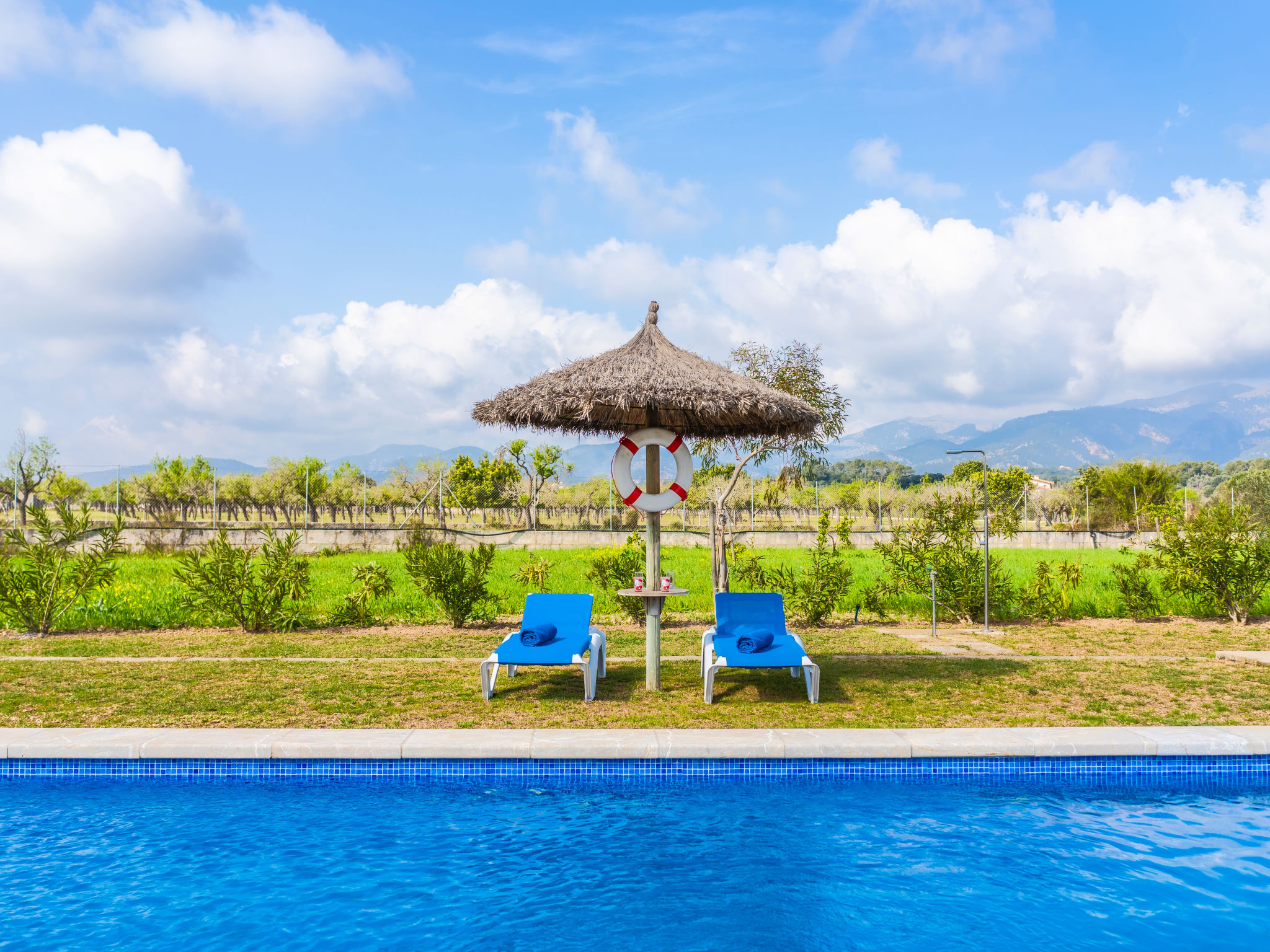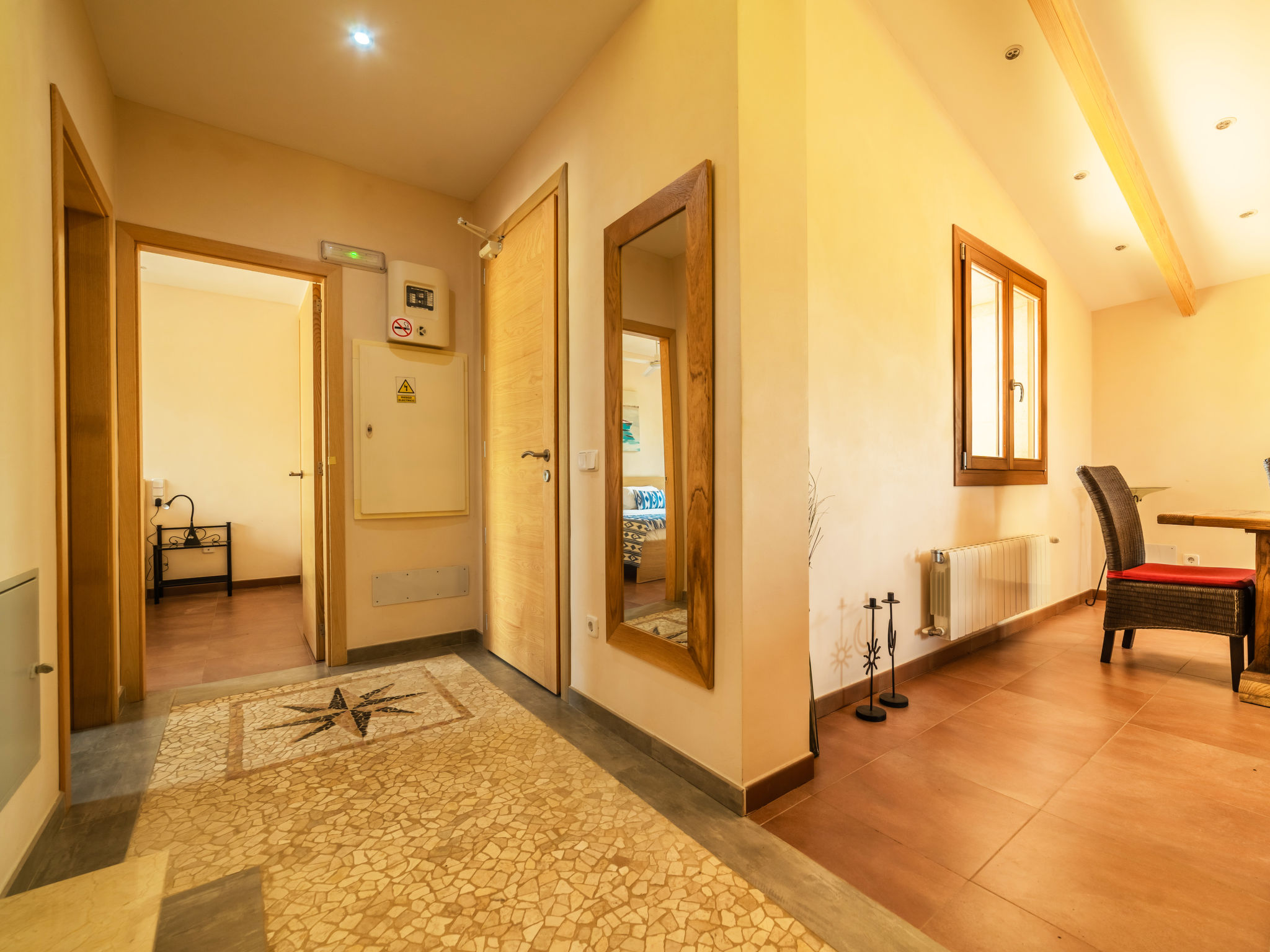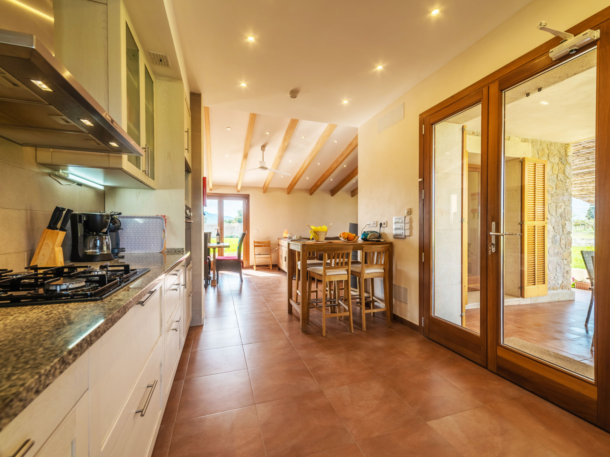 "Son Bordoi", 5-Zimmer-Haus 224 m2 auf 2 Stockwerken. Objekt geeignet für 8 Erwachsene. Geräumig, komfortabel und gemütlich eingerichtet: 1 Doppelzimmer mit 1 franz. Bett (160 cm, Länge 200 cm), Sat-TV, Flachbildschirm und Ventilator. Ausgang zum Gartensitzplatz, zum Schwimmbad. Offenes grosses Wohn-/Esszimmer mit Panoramafenster mit Esstisch, Sat-TV, Digital-TV, Flachbildschirm und Holzofen. Ausgang zum Gartensitzplatz, zum Schwimmbad. Offene Küche (4 Kochplatten, Backofen, Geschirrspüler, Toaster, Mikrowelle, Tiefkühler, elektrische Kaffeemaschine). Ausgang zum Gartensitzplatz, zum Schwimmbad. Bad oder Dusche/WC. Obergeschoss: 1 grosses Doppelzimmer mit 2 Betten (90 cm, Länge 190 cm), Sat-TV, Flachbildschirm und Ventilator. 1 grosses Doppelzimmer mit 1 Doppelbett (160 cm, Länge 200 cm), Sat-TV, Flachbildschirm und Ventilator. 1 grosses Doppelzimmer mit 2 Betten (90 cm, Länge 190 cm), Sat-TV, Flachbildschirm und Ventilator. Bad oder Dusche/WC. Grosser Gartensitzplatz, Rasen, Laube. Terrassenmöbel, Gartengrill, Liegestühle (8), Loggia, Sitzplatz. Herrliche Panoramasicht auf die Berge, das Schwimmbad, den Garten und die Landschaft. Zur Verfügung: Waschmaschine, Bügeleisen, Kinderhochstuhl, Babybett bis 2 Jahre, Haartrockner. Internet (Wireless LAN, gratis). Bitte beachten: Nichtraucher-Haus. ETV5558