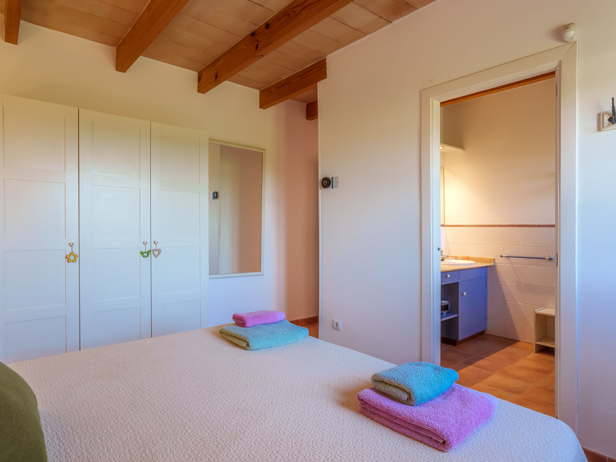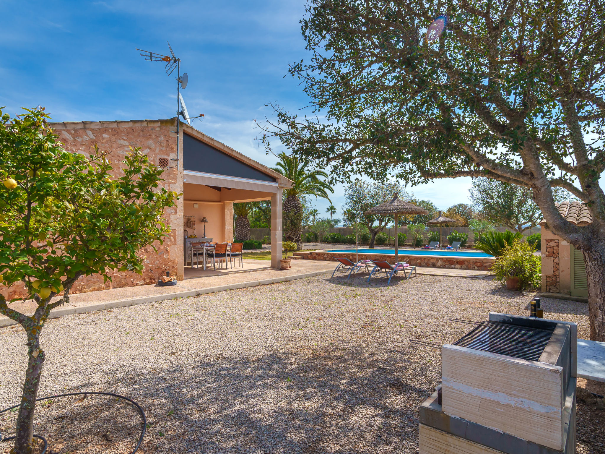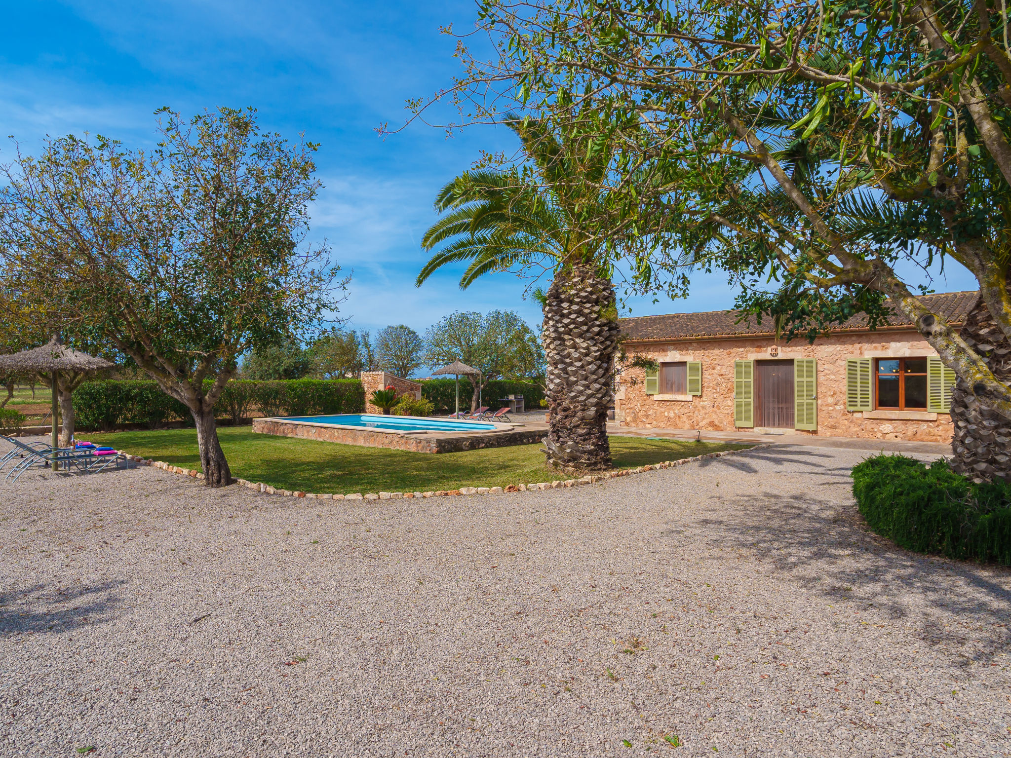 Schöner Finca "Marina", umgeben von Feldern. 5 km vom Zentrum von Sa Rápita, 9 km vom Zentrum von Campos, 46 km vom Zentrum von Palma, 3 km vom Meer. Zur Alleinbenutzung: Grundstück 18'000 m2, Garten 1'000 m2 (eingezäunt) mit Rasen und Pflanzen, Schwimmbad (7 x 3 m, 01.01.-31.12.). Aussendusche, Parkplatz (überdacht) auf dem Grundstück. Einkaufsgeschäft 5 km, Supermarkt 9 km, Sandstrand "Es Trenc" 3 km. Bitte beachten: Fahrzeug empfohlen.
