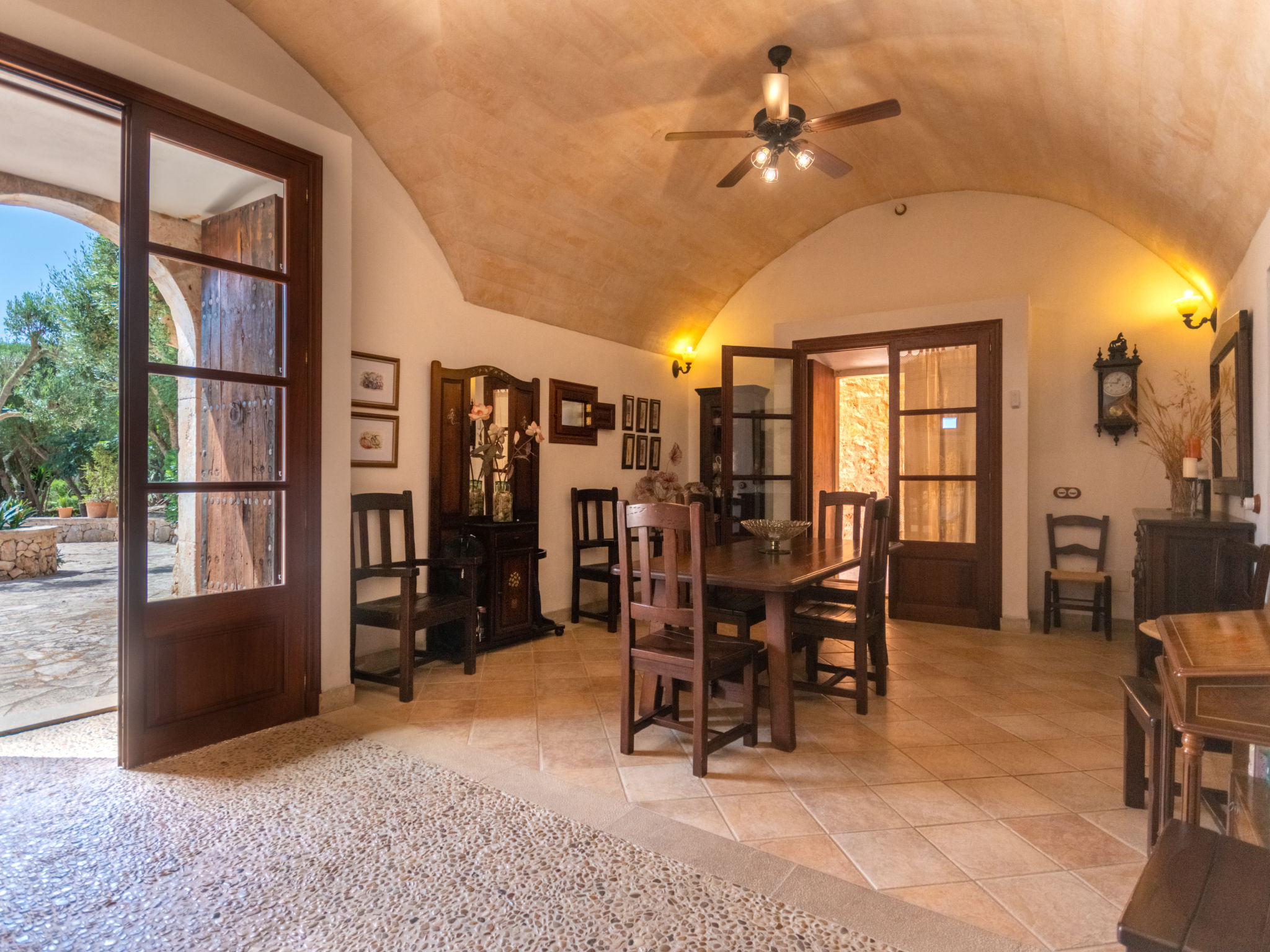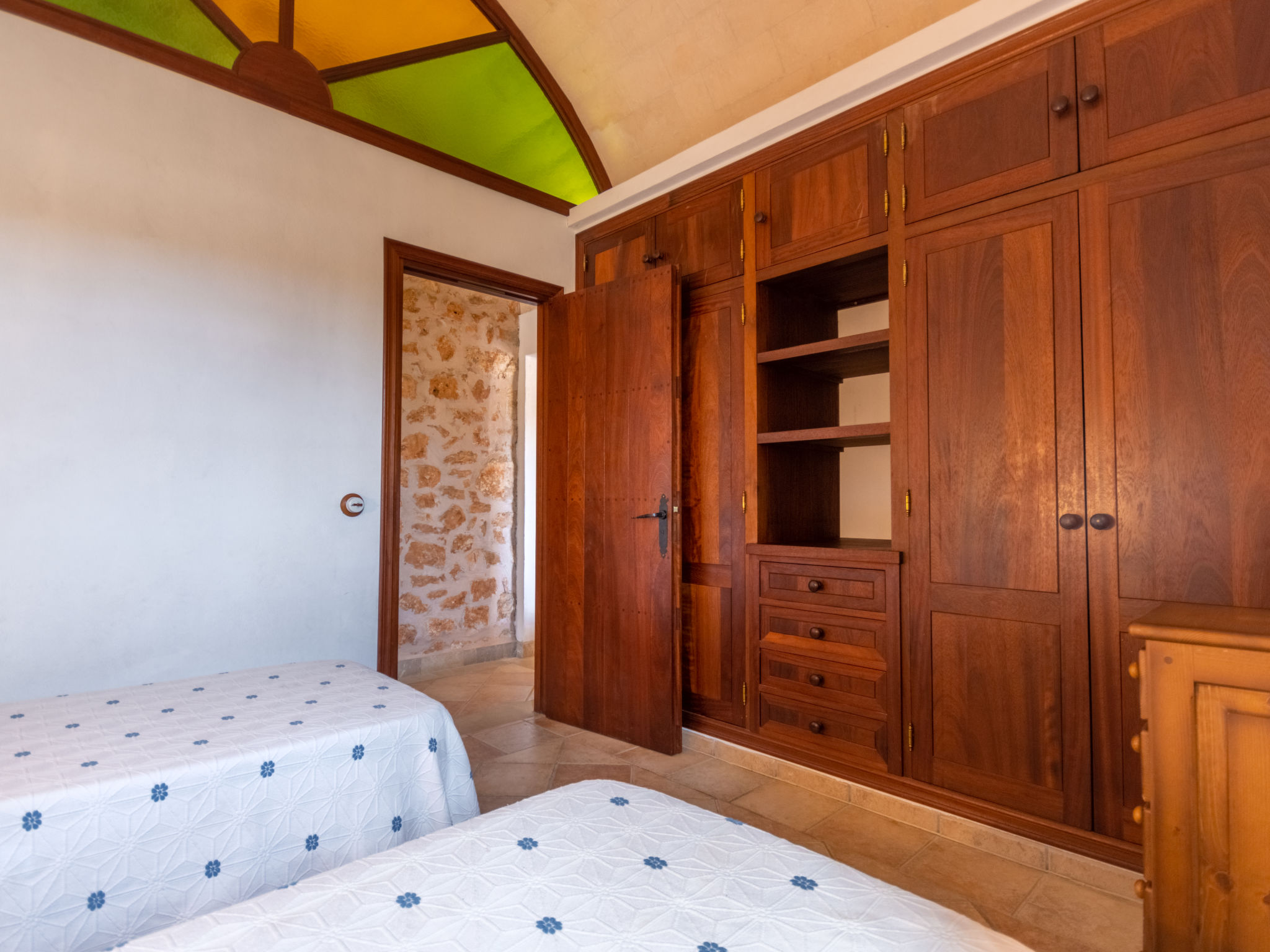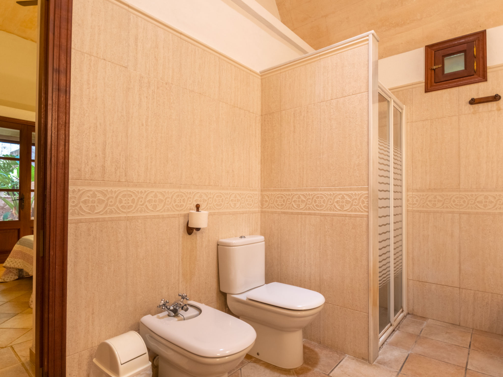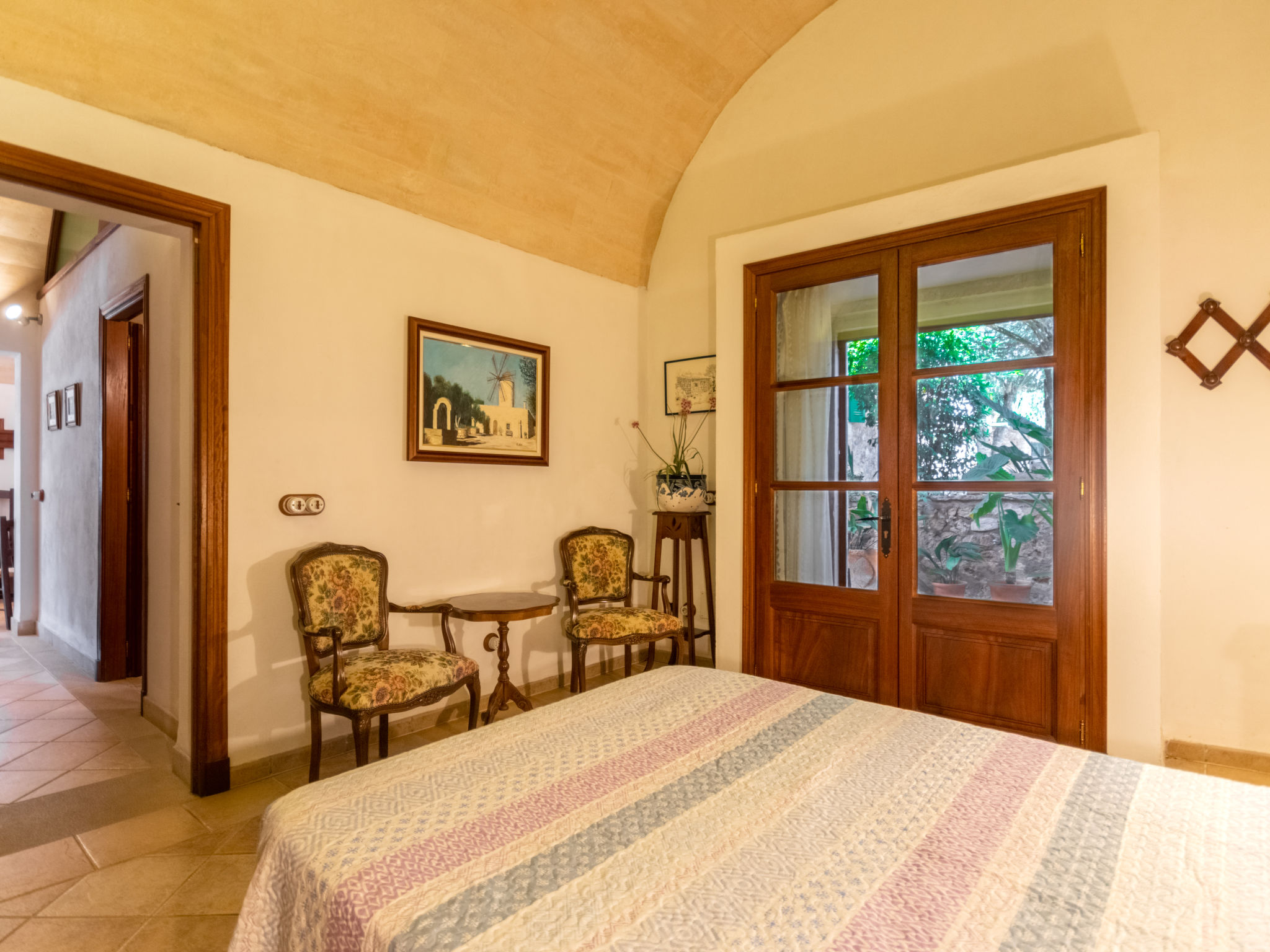 "Moli de Son Vidal (SNY100)", 5-Zimmer-Haus 160 m2. Schön und geschmackvoll eingerichtet: Wohn-/Esszimmer mit offenem Kamin, Esstisch, Sat-TV, Digital-TV, Radio, CD, DVD und Ventilator. 1 Zimmer mit 1 franz. Bett (140 cm), Bad/Dusche/WC und Ventilator. Ausgang zum Garten. 2 Zimmer, jedes Zimmer mit 2 Betten und Ventilator. 1 Zimmer mit 2 Betten und Ventilator. Ausgang zum Garten. Küche (Backofen, Geschirrspüler, 3 Flammen, Toaster, Wasserkocher, Mikrowelle, Tiefkühler, elektrische Kaffeemaschine) mit Esstisch. Ausgang zum Garten. Dusche/WC, Bad/Dusche/WC. Bodenheizung. Terrasse überdacht Terrasse, Gartensitzplatz. Terrassenmöbel, Gartengrill, Liegestühle. Zur Verfügung: Waschmaschine, Safe, Bügeleisen, Fliegengitter, Kinderhochstuhl, Babybett, Haartrockner. Internet (Wireless LAN, gratis). Bitte beachten: Nichtraucher-Haus. Keine interne Verbindung zwischen den separaten Wohneinheiten. ETV0011