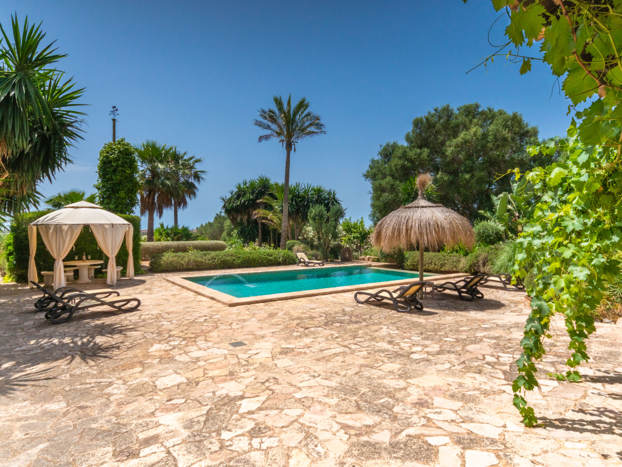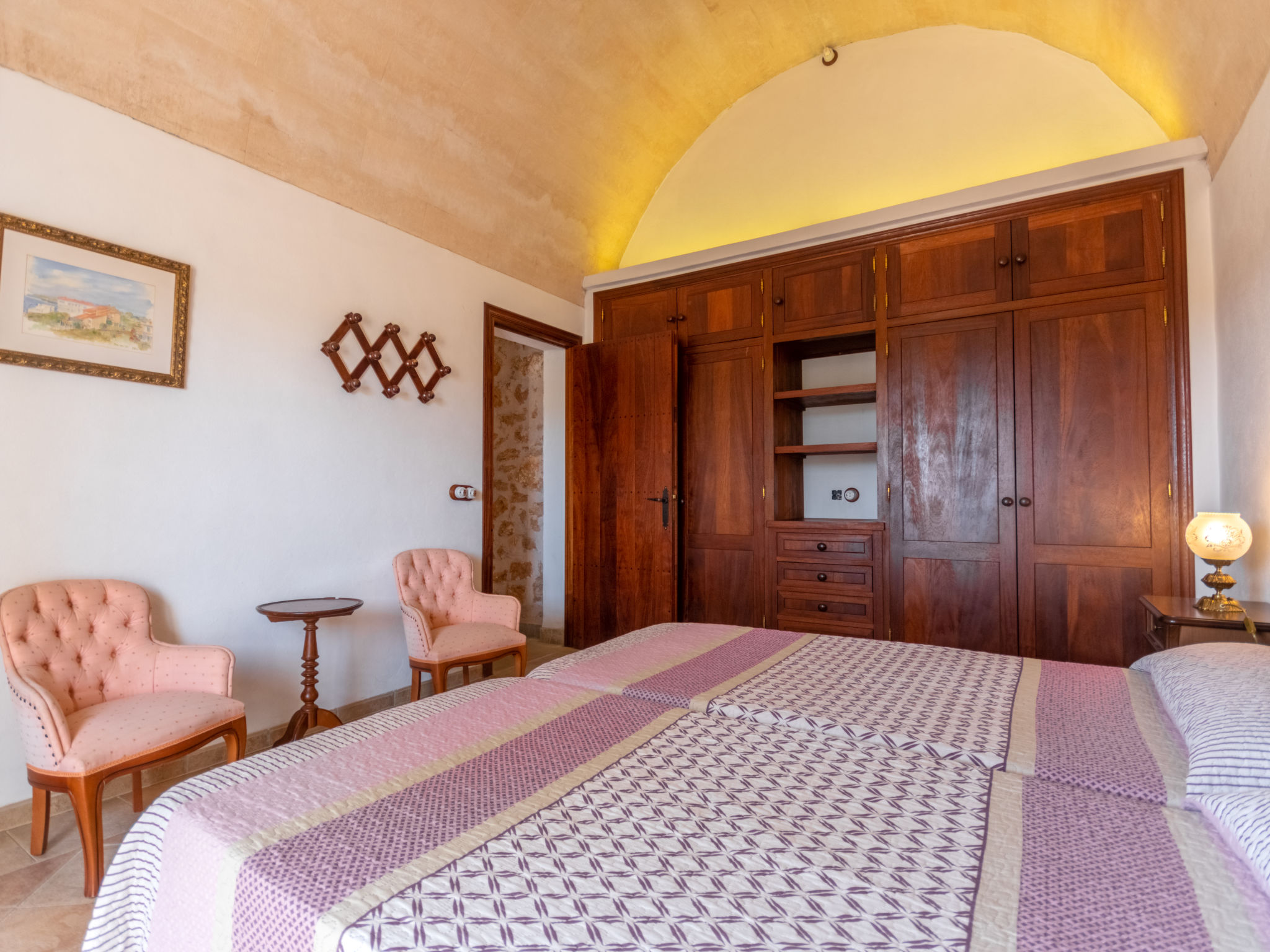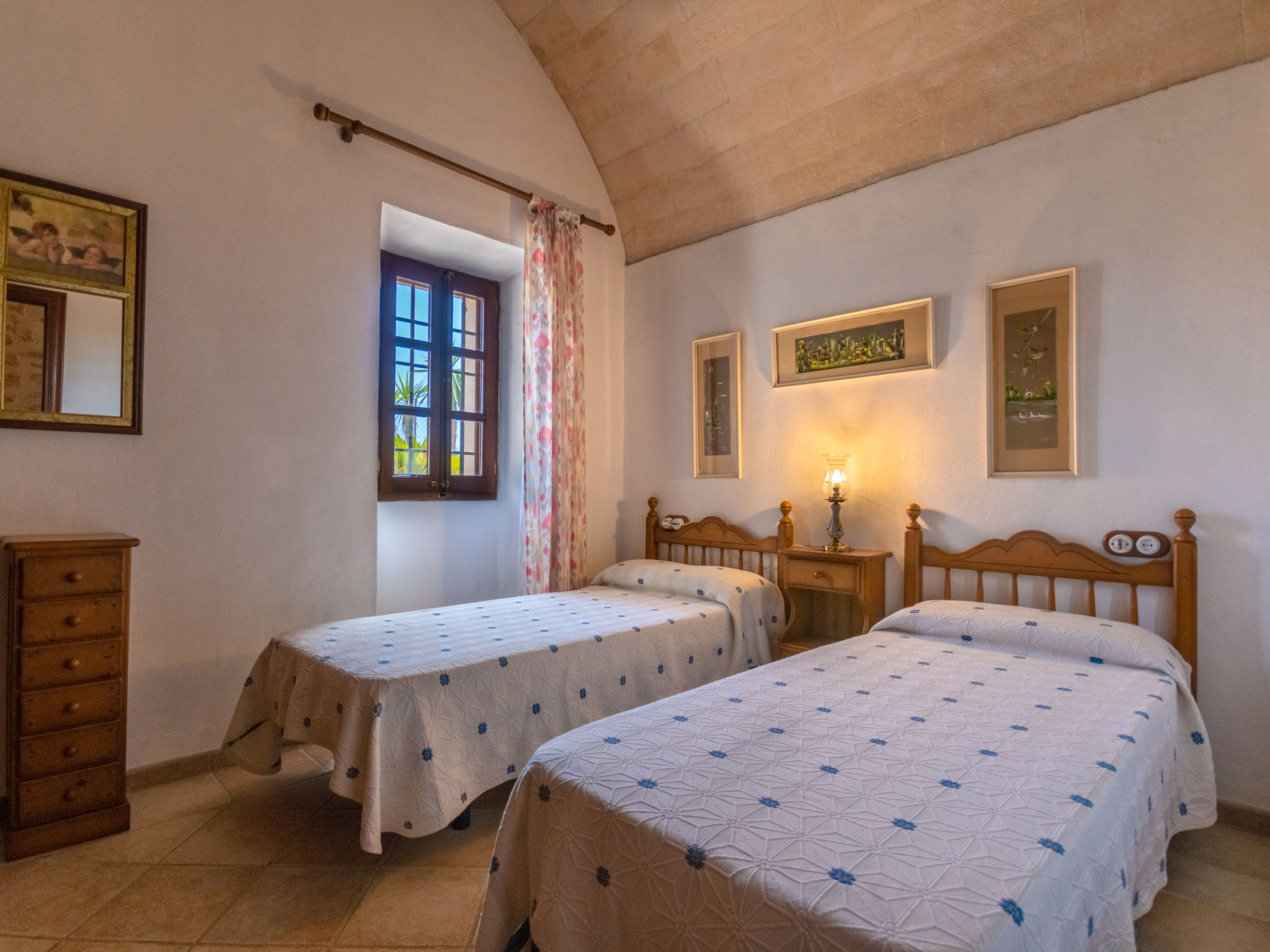 "Moli de Son Vidal (SNY100)", 5-Zimmer-Haus 160 m2. Schön und geschmackvoll eingerichtet: Wohn-/Esszimmer mit offenem Kamin, Esstisch, Sat-TV, Digital-TV, Radio, CD, DVD und Ventilator. 1 Zimmer mit 1 franz. Bett (140 cm), Bad/Dusche/WC und Ventilator. Ausgang zum Garten. 2 Zimmer, jedes Zimmer mit 2 Betten und Ventilator. 1 Zimmer mit 2 Betten und Ventilator. Ausgang zum Garten. Küche (Backofen, Geschirrspüler, 3 Flammen, Toaster, Wasserkocher, Mikrowelle, Tiefkühler, elektrische Kaffeemaschine) mit Esstisch. Ausgang zum Garten. Dusche/WC, Bad/Dusche/WC. Bodenheizung. Terrasse überdacht Terrasse, Gartensitzplatz. Terrassenmöbel, Gartengrill, Liegestühle. Zur Verfügung: Waschmaschine, Safe, Bügeleisen, Fliegengitter, Kinderhochstuhl, Babybett, Haartrockner. Internet (Wireless LAN, gratis). Bitte beachten: Nichtraucher-Haus. Keine interne Verbindung zwischen den separaten Wohneinheiten. ETV0011