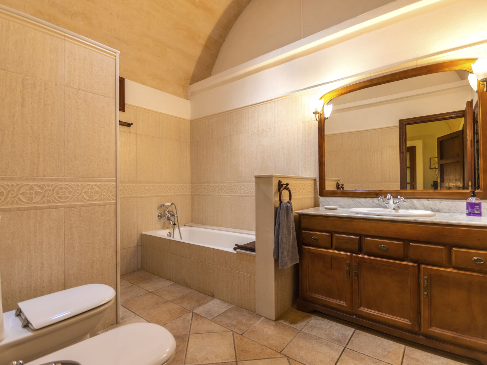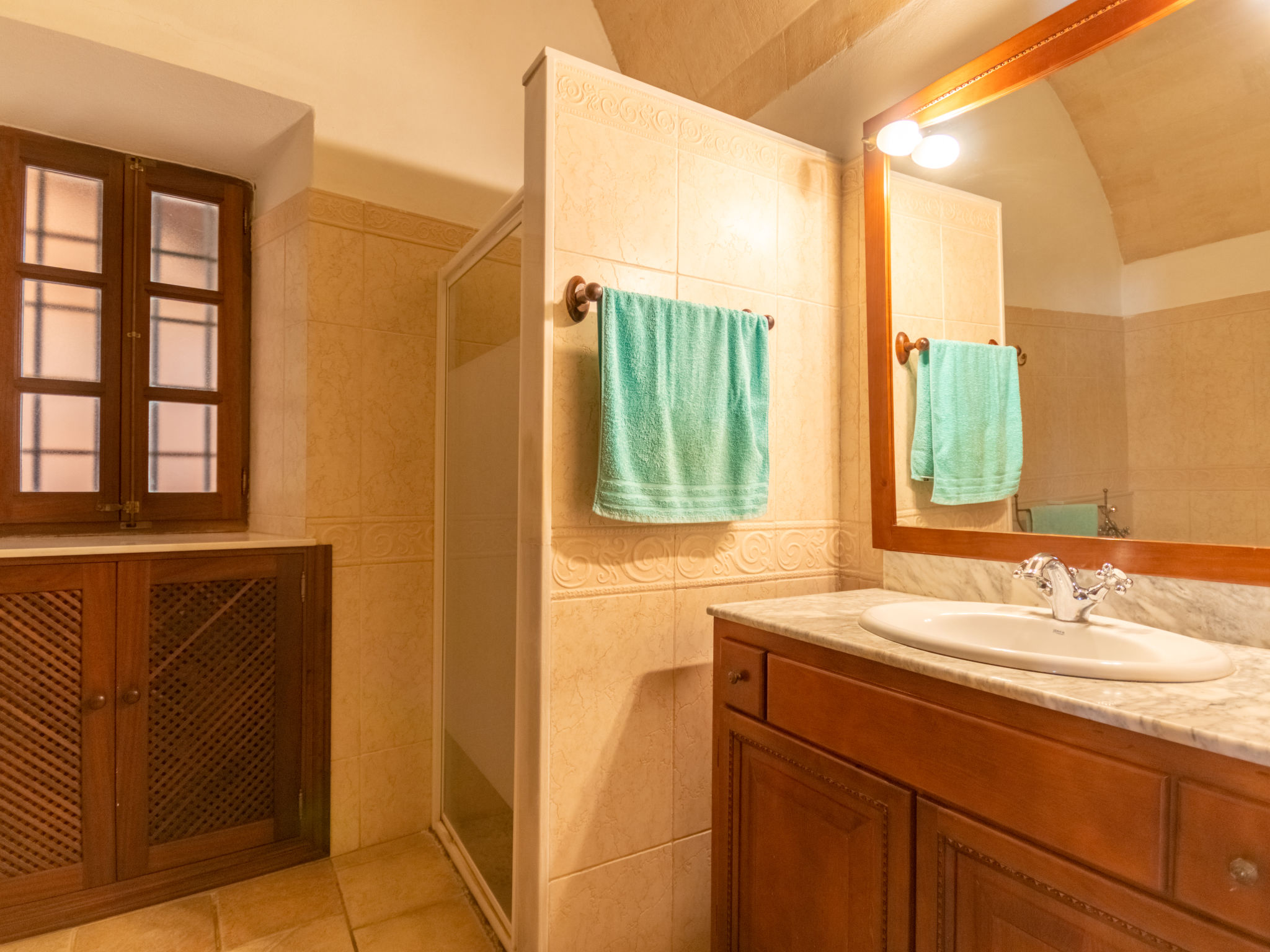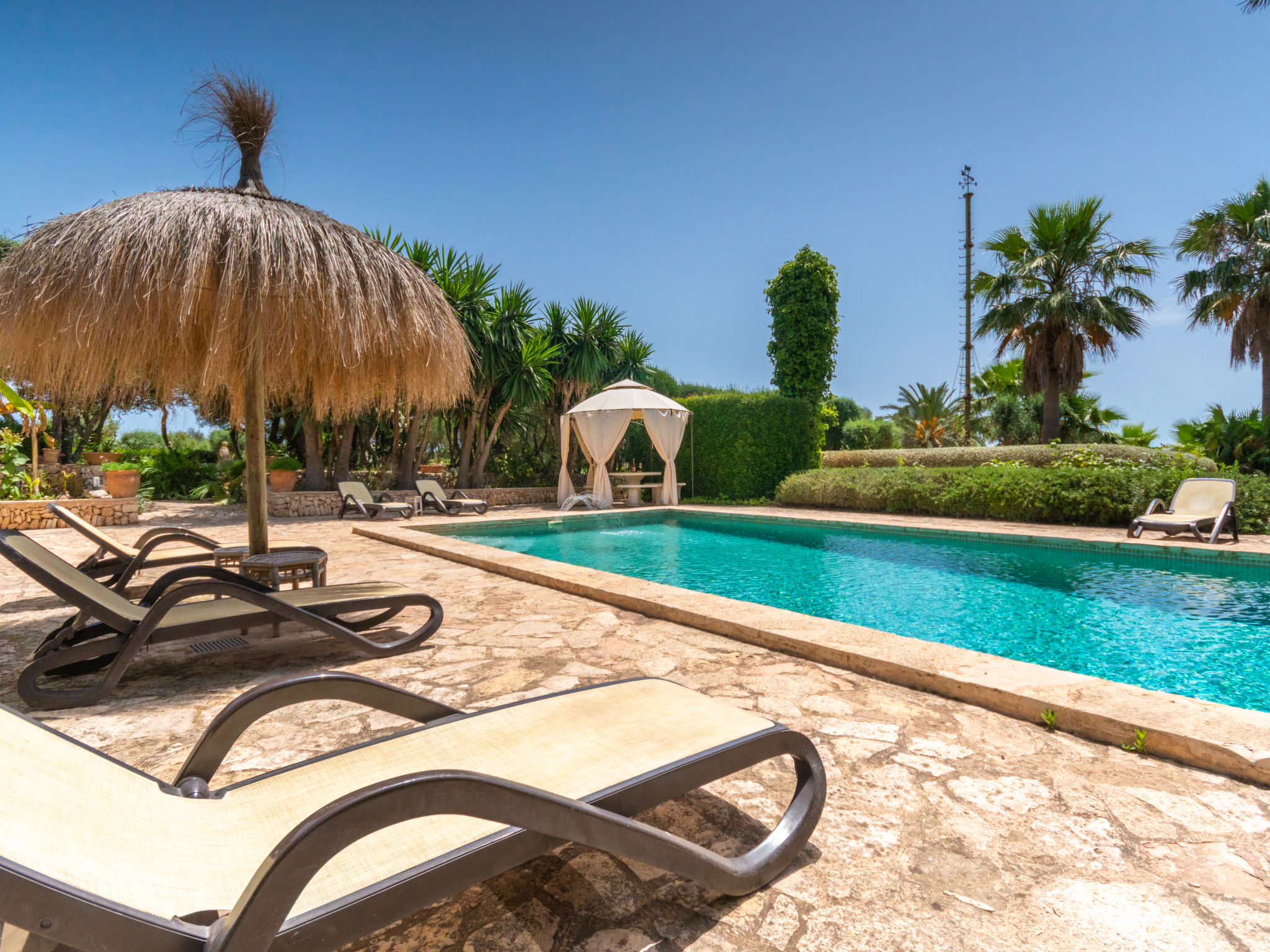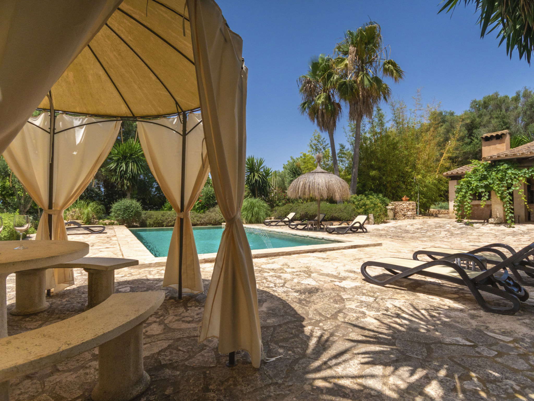 "Moli de Son Vidal (SNY100)", 5-Zimmer-Haus 160 m2. Schön und geschmackvoll eingerichtet: Wohn-/Esszimmer mit offenem Kamin, Esstisch, Sat-TV, Digital-TV, Radio, CD, DVD und Ventilator. 1 Zimmer mit 1 franz. Bett (140 cm), Bad/Dusche/WC und Ventilator. Ausgang zum Garten. 2 Zimmer, jedes Zimmer mit 2 Betten und Ventilator. 1 Zimmer mit 2 Betten und Ventilator. Ausgang zum Garten. Küche (Backofen, Geschirrspüler, 3 Flammen, Toaster, Wasserkocher, Mikrowelle, Tiefkühler, elektrische Kaffeemaschine) mit Esstisch. Ausgang zum Garten. Dusche/WC, Bad/Dusche/WC. Bodenheizung. Terrasse überdacht Terrasse, Gartensitzplatz. Terrassenmöbel, Gartengrill, Liegestühle. Zur Verfügung: Waschmaschine, Safe, Bügeleisen, Fliegengitter, Kinderhochstuhl, Babybett, Haartrockner. Internet (Wireless LAN, gratis). Bitte beachten: Nichtraucher-Haus. Keine interne Verbindung zwischen den separaten Wohneinheiten. ETV0011