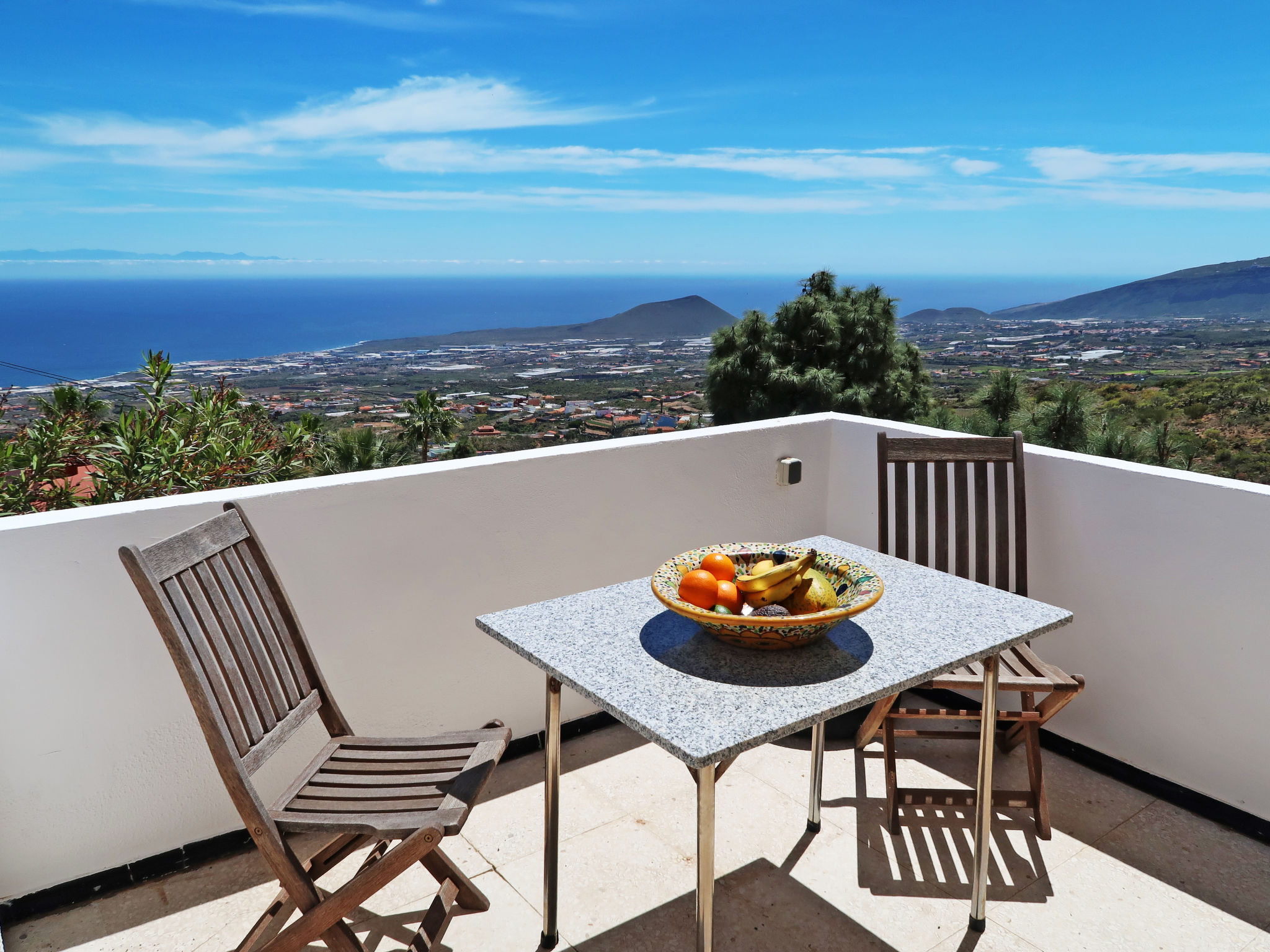 Mehrfamilienhaus "Cuevecitas", 500 m.ü.M.. 5 Wohnungen im Ferienhaus. Im Ortsteil Cuevecitas, 6 km vom Zentrum von Candelaria, 30 km vom Zentrum von Santa Cruz, 51 km vom Zentrum von Puerto de la Cruz, am Hang, 6 km vom Meer. Zur Mitbenutzung: naturbelassenes Grundstück 5'000 m2 mit Rasen und Bäumen, Aufstellpool rund (4.50 m Durchmesser, 140 - 140 cm tief, saisonale Verfügbarkeit: 01.Jan.-31.Dez.). Aussendusche, Grill. Im Hause: Waschmaschine (zur Mitbenutzung). Parkplatz auf dem Grundstück. Einkaufsgeschäft 6 km, Restaurant 1 km, Sandstrand 6 km. Bitte beachten: Fahrzeug empfohlen. Der Besitzer wohnt im selben Haus.