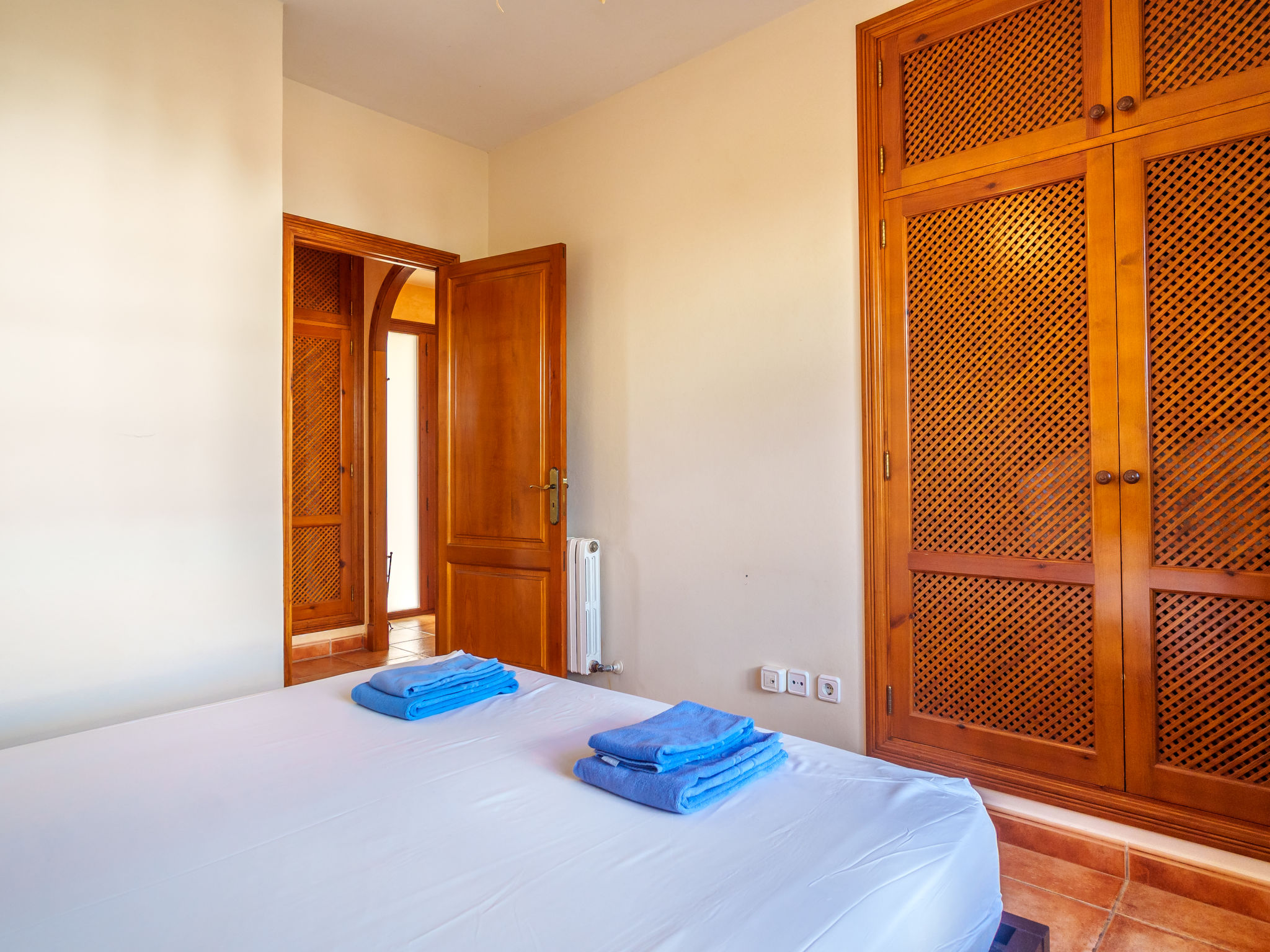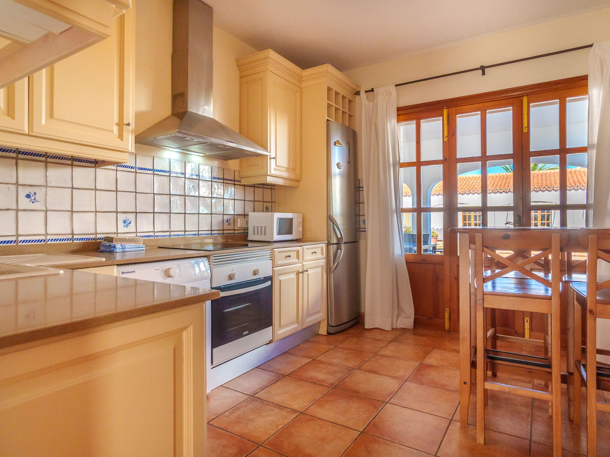 3-Zimmer-Haus, 2 Etagen, ca. 100 m². Erdgeschoss: Wohn-/Schlafraum mit Doppelbettcouch, Sessel, Essplatz und Terrassenausgang. Küche (3 Ceranfelder, Backofen, Mikrowelle, Kühl-/Gefrierkombination, Kaffeemaschine) mit Essplatz (Barhocker) und Terrassenausgang. Schlafzimmer mit franz. Bett (1,60 m breit), Terrassenausgang. Dusche/WC. Obergeschoss: Schlafzimmer mit franz. Bett (1,60 m breit), Terrassenausgang. Bad/WC. L12E7172/2016