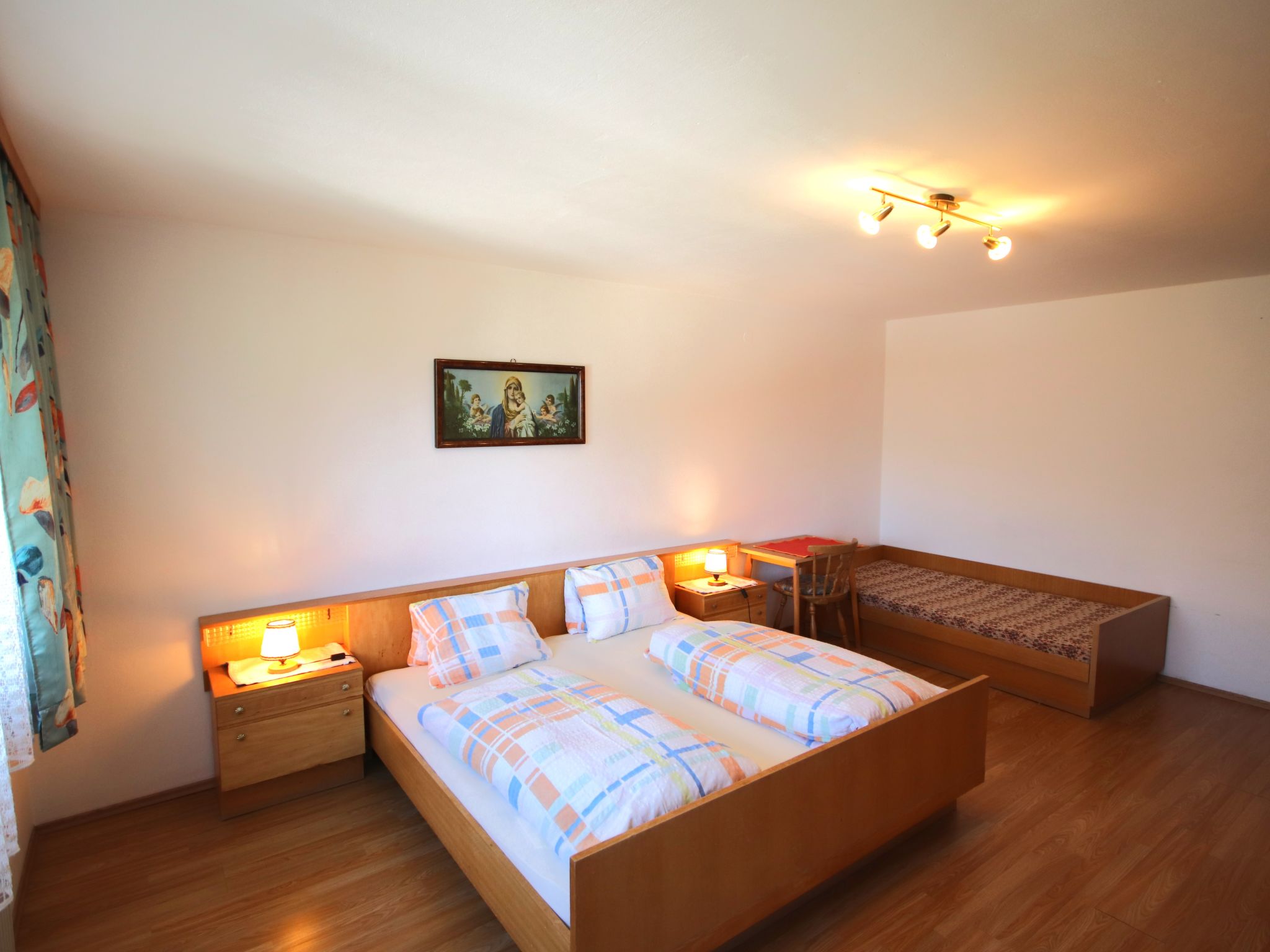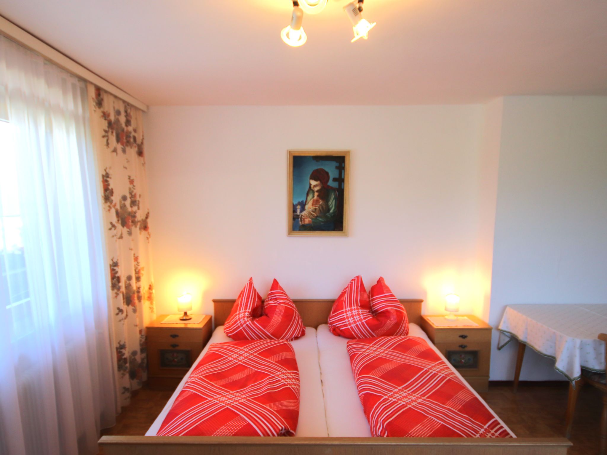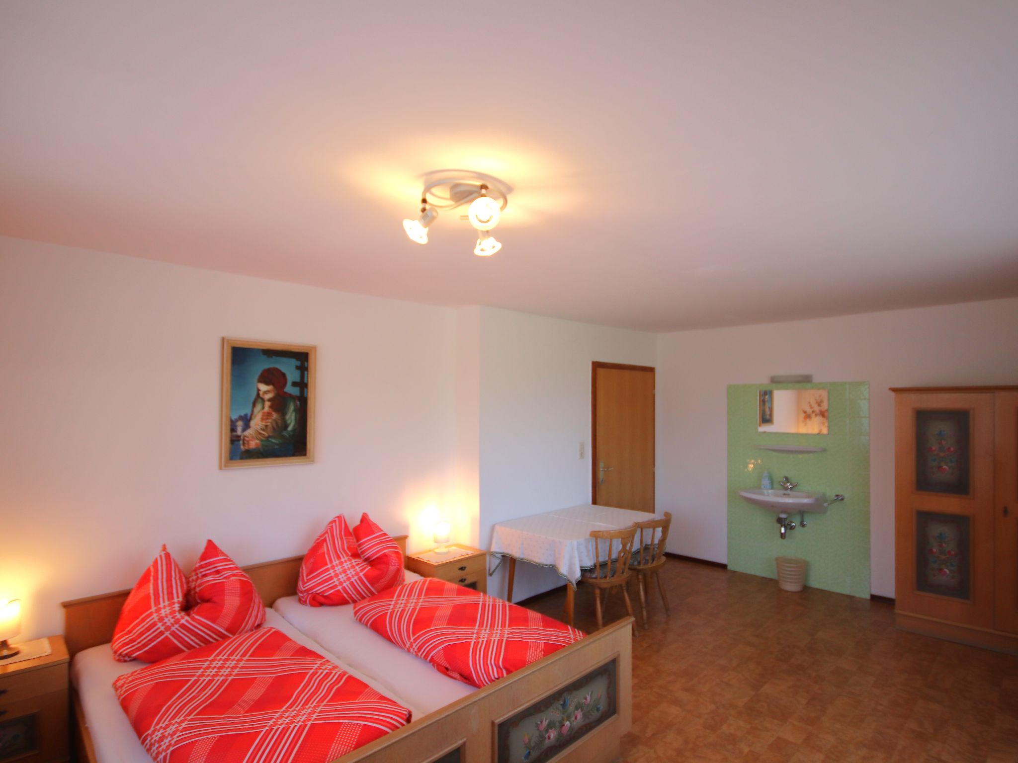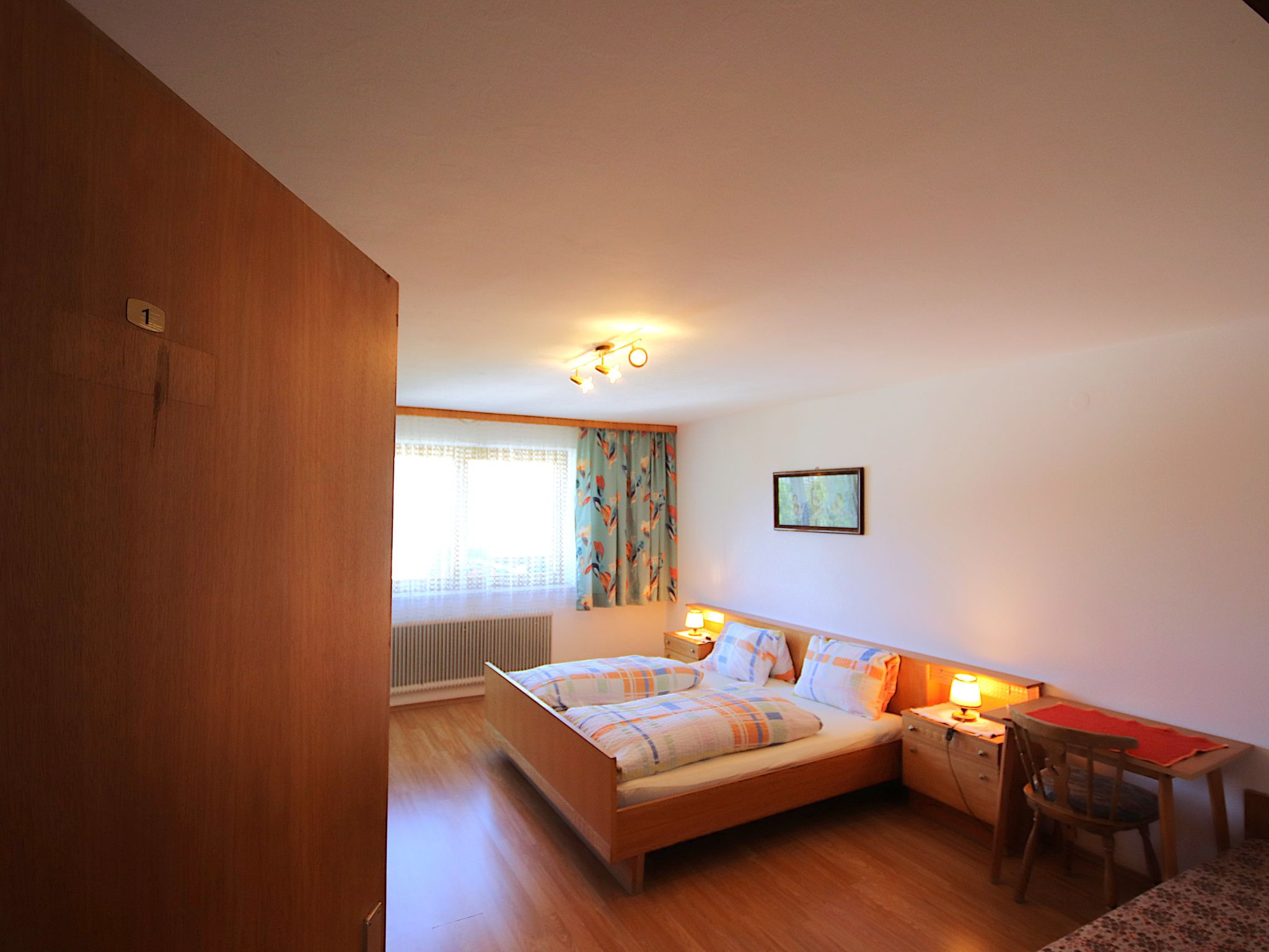 3-Zimmer-Wohnung 80 m2 im 1. Stock. Eingang. 1 Zimmer mit 1 Bett, 1 Doppelbett und Waschbecken. Ausgang zum Balkon. 1 Zimmer mit 1 Diwanbett, 1 Doppelbett und Waschbecken. Ausgang zum Balkon. Wohnküche (4 Kochplatten, Backofen, Toaster, Wasserkocher, elektrische Kaffeemaschine) mit Esstisch, TV. Bad/Dusche, sep. WC. Balkon. Terrassenmöbel. Sehr schöne Sicht auf die Landschaft. Zur Verfügung: Waschmaschine. Internet (Wireless LAN, gratis). Die Eingangstüre zum Appartement ist eine Falttüre, die sich nicht versperren läßt.
