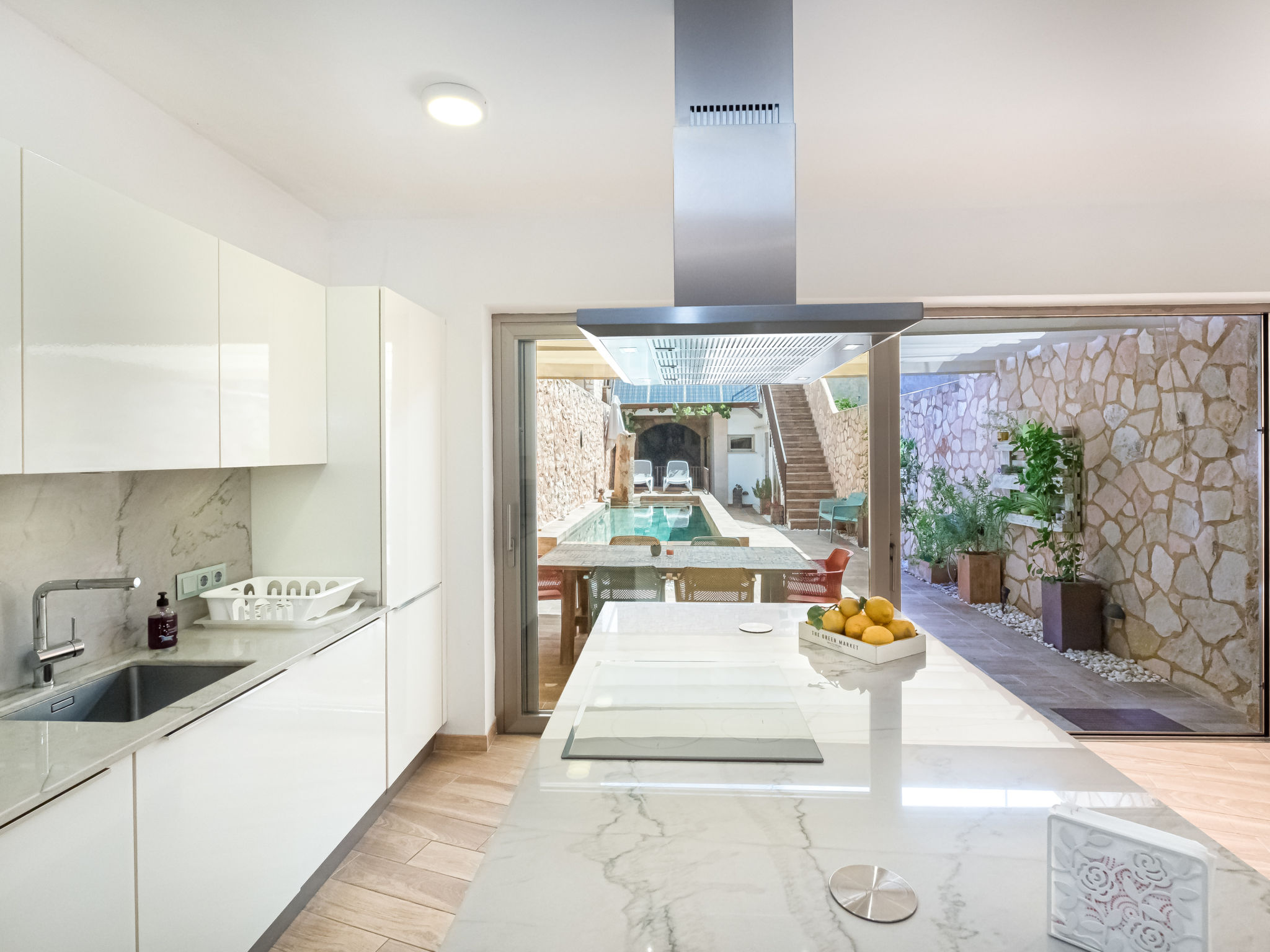 "Cordella (SNY101)", 4-Zimmer-Haus 125 m2 auf 2 Stockwerken. Renoviert im Jahre 2016, modern und geschmackvoll eingerichtet: Wohnzimmer mit Sat-TV, Digital-TV und Stereoanlage. 1 Zimmer mit 1 franz. Bett (135 cm). Offene Küche (Backofen, Geschirrspüler, 3 Induktionskochplatten, Wasserkocher, Mikrowelle, Tiefkühler, elektrische Kaffeemaschine) mit Esstisch. Ausgang zur Terrasse. Dusche/WC. Obergeschoss: 2 Zimmer, jedes Zimmer mit 2 Betten. Dusche/WC, Doppelwaschbecken. Holzböden. Terrasse 25 m2, Terrasse. Terrassenmöbel, Gartengrill (mobil), Liegestühle (4). Zur Verfügung: Waschmaschine, Bügeleisen, Kinderhochstuhl, Babybett, Haartrockner. Internet (Wireless LAN, gratis). Bitte beachten: Nichtraucher-Haus. 4-Zimmer-Haus, 2 Etagen, ca. 125 m². Erdgeschoss: Wohnraum mit Sitzgruppe, durch offenen Bogen zu Flur mit Sitzbank, von hier in offene Küche (3 Induktionsfelder, Backofen, Mikrowelle, Geschirrspüler, Kühl-/Gefrierkombination, Kaffeemaschine, Wasserkocher) mit Essplatz, Terrassenausgang. Schlafzimmer mit franz. Bett (1,35 m breit). Dusche/WC. Obergeschoss: Flur mit Sofa und Terrassenausgang. Über 2 Stufen zu 2 Zweibettzimmern. Dusche/Doppelwaschbecken/WC. ETV/9476