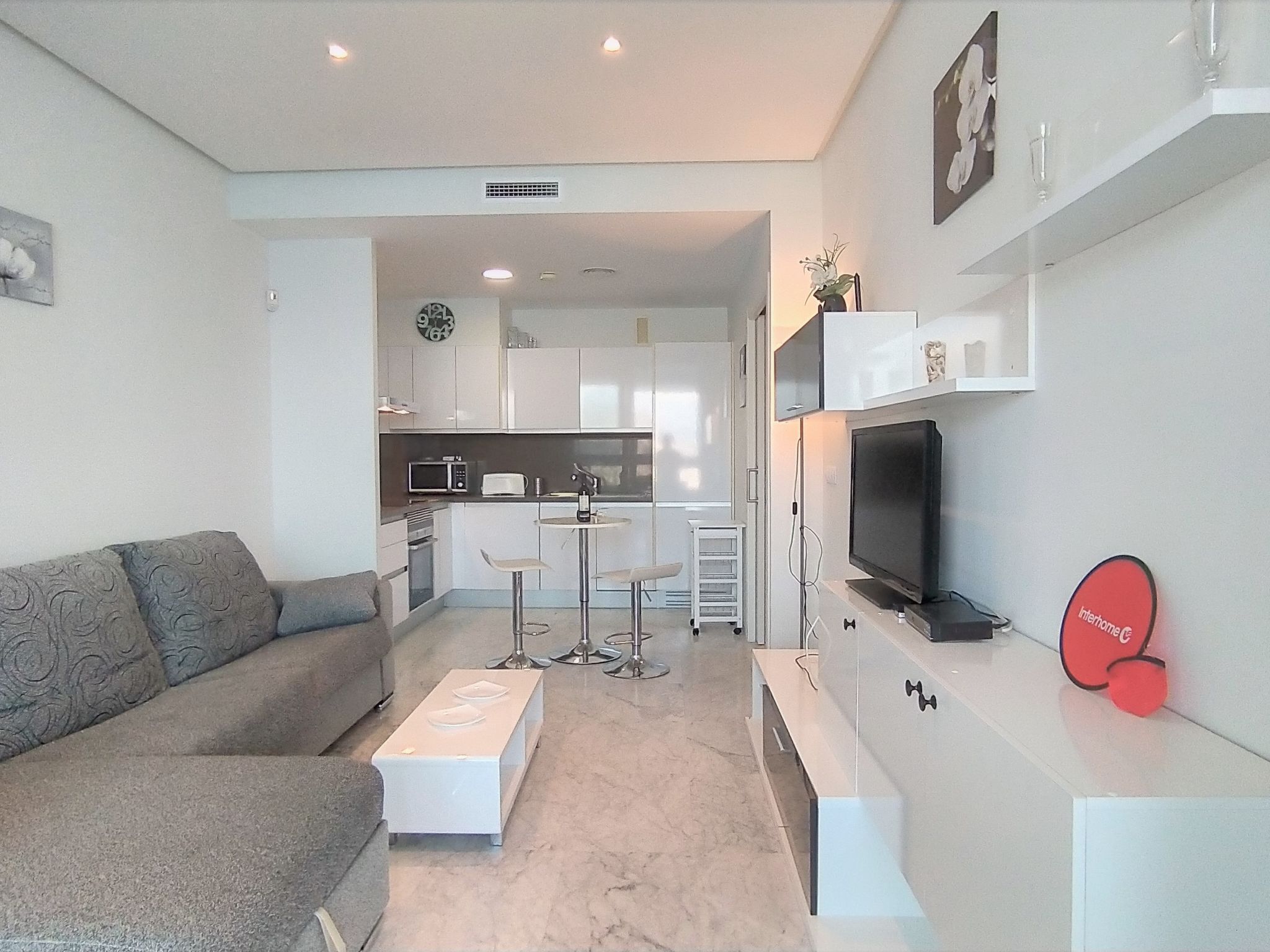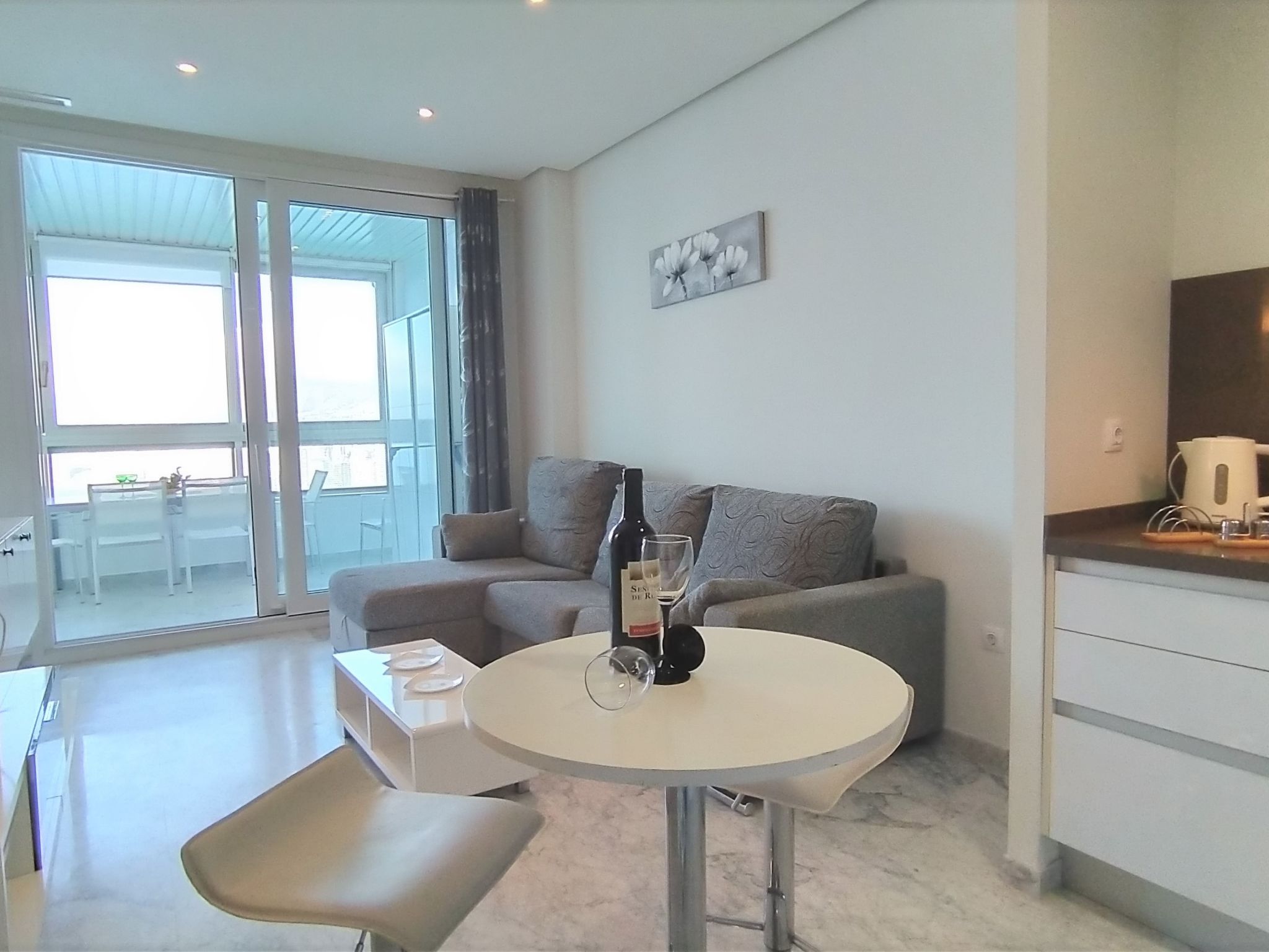 "Gemelos", 2-Zimmer-Wohnung 40 m2. Objekt geeignet für 2 Erwachsene + 2 Kinder. Geräumig und hell, komfortabel und geschmackvoll eingerichtet: Wohn-/Esszimmer mit 2 Diwanbetten, Digital-TV, Flachbildschirm und Klimaanlage. 1 Zimmer mit 1 franz. Bett. Kochnische (Backofen, 3 Glaskeramikherd Platten, Toaster, Wasserkocher, Mikrowelle, Tiefkühler, elektrische Kaffeemaschine). Bad/Bidet/WC. Grosse Terrasse. Terrassenmöbel. Panoramasicht auf das Meer und die Ortschaft. Zur Verfügung: Waschmaschine, Bügeleisen, Haartrockner. Internet (Wireless LAN, gratis). Parkplatz Nr. 144. AT322241BM