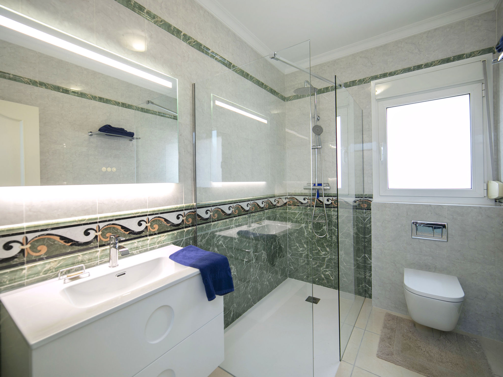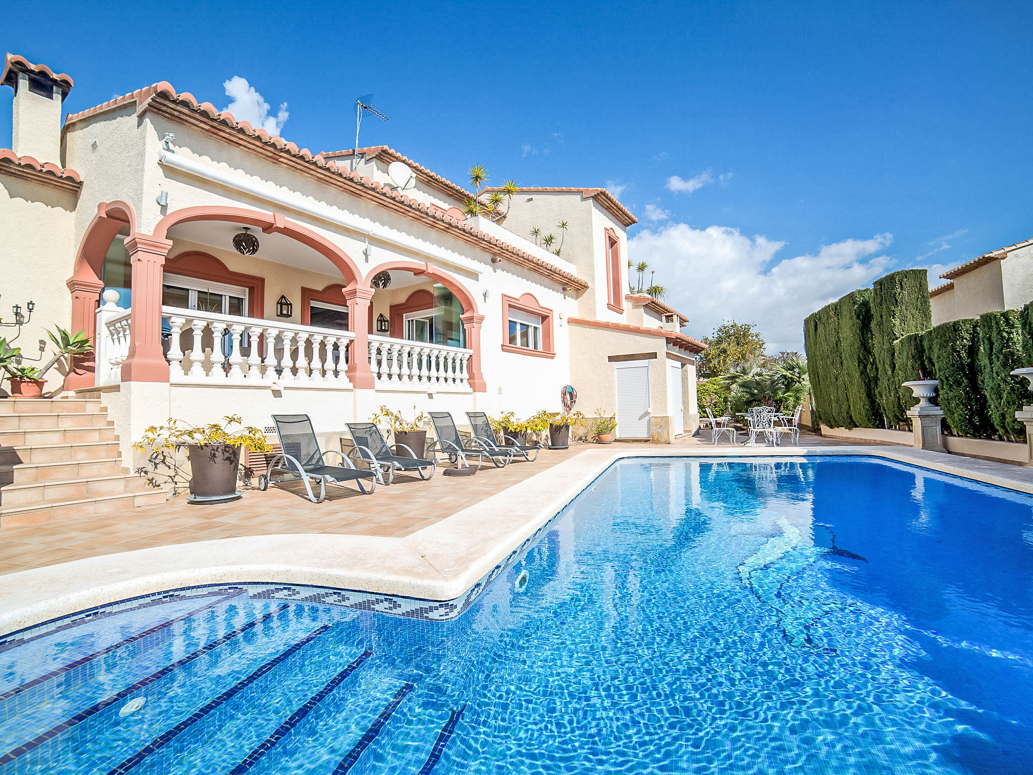 "Villa Albert", 5-Zimmer-Villa 425 m2 auf 2 Stockwerken. Geräumig und hell, schön und geschmackvoll eingerichtet: offenes grosses Wohn-/Esszimmer mit Sat-TV, Digital-TV, Klimaanlage und Warmluftheizung. Ausgang zur Terrasse. 1 Zimmer mit 1 Doppelbett, Dusche/WC, Klimaanlage und Warmluftheizung. 1 Zimmer mit 1 Doppelbett, Klimaanlage und Warmluftheizung. Offene Küche (Backofen, Geschirrspüler, 4 Glaskeramikherd Platten, Mikrowelle, elektrische Kaffeemaschine) mit Klimaanlage und Warmluftheizung. Ausgang zur Terrasse. Dusche/WC. Obergeschoss: 1 Zimmer mit 1 Doppelbett, Bad/Dusche/WC, Klimaanlage und Warmluftheizung. Ausgang zur Terrasse. 1 Zimmer mit 1 Doppelbett, Dusche/WC, Klimaanlage und Warmluftheizung. Ausgang zur Terrasse. Dusche/WC. Terrassenmöbel, Gartengrill, Liegestühle. Sicht auf den See und die Ortschaft. Zur Verfügung: Waschmaschine, Kinderhochstuhl, Babybett bis 2 Jahre. Internet (Wireless LAN, gratis). Parkplatz beim Haus. Geeignet für Familien. AT-463848-A