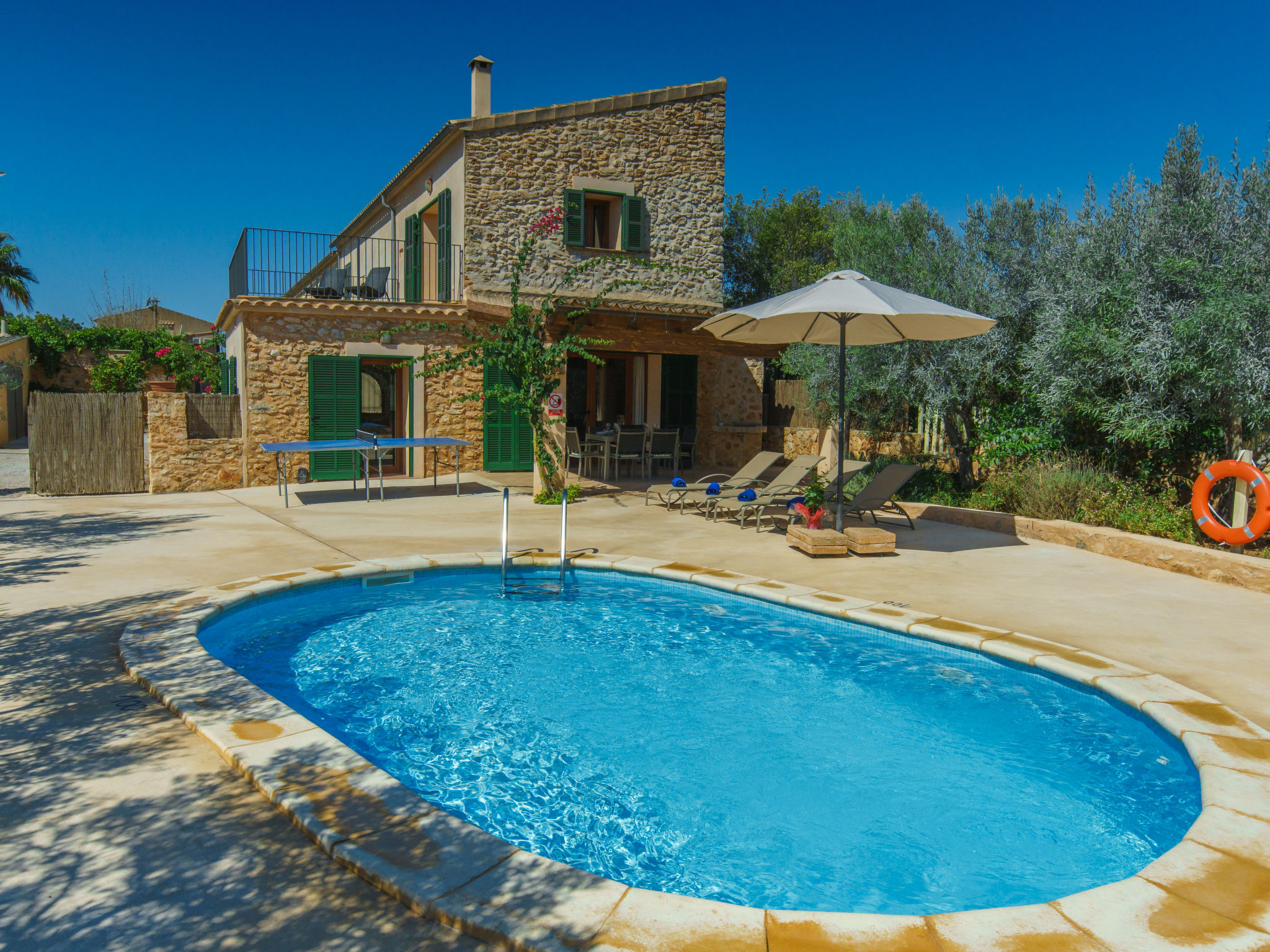 S'Horta 5 km von Cala d'Or: Schöne, alleinstehende Finca "Juan", umgeben von Wiesen und Feldern. Unterhalb von S'Horta, 1 km vom Zentrum von S'Horta, 5 km vom Zentrum von Cala d'Or, 15 km vom Zentrum von Felanitx, 3 km vom Meer. Zur Alleinbenutzung: naturbelassenes Grundstück 6'500 m2, Garten 300 m2 (eingezäunt), Schwimmbad (6 x 3 m, 90 - 150 cm tief, 01.01.-31.12.) mit Salzelektrolyse-Reinigungssystem. Aussendusche, Terrasse, Gartenmöbel. Im Hause: Zentralheizung. Parkplatz auf dem Grundstück. Einkaufsgeschäft 1 km, Restaurant 1 km, Bar 1 km, Sandstrand "Cala Sanau" 3 km. Golfplatz 4.5 km. Bitte beachten: Fahrzeug empfohlen. Auf dem Grundstück Tierhaltung. Besitzer wohnt in separatem Hausteil.