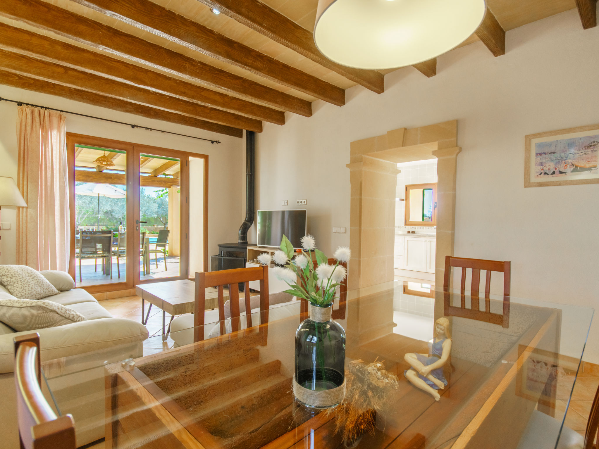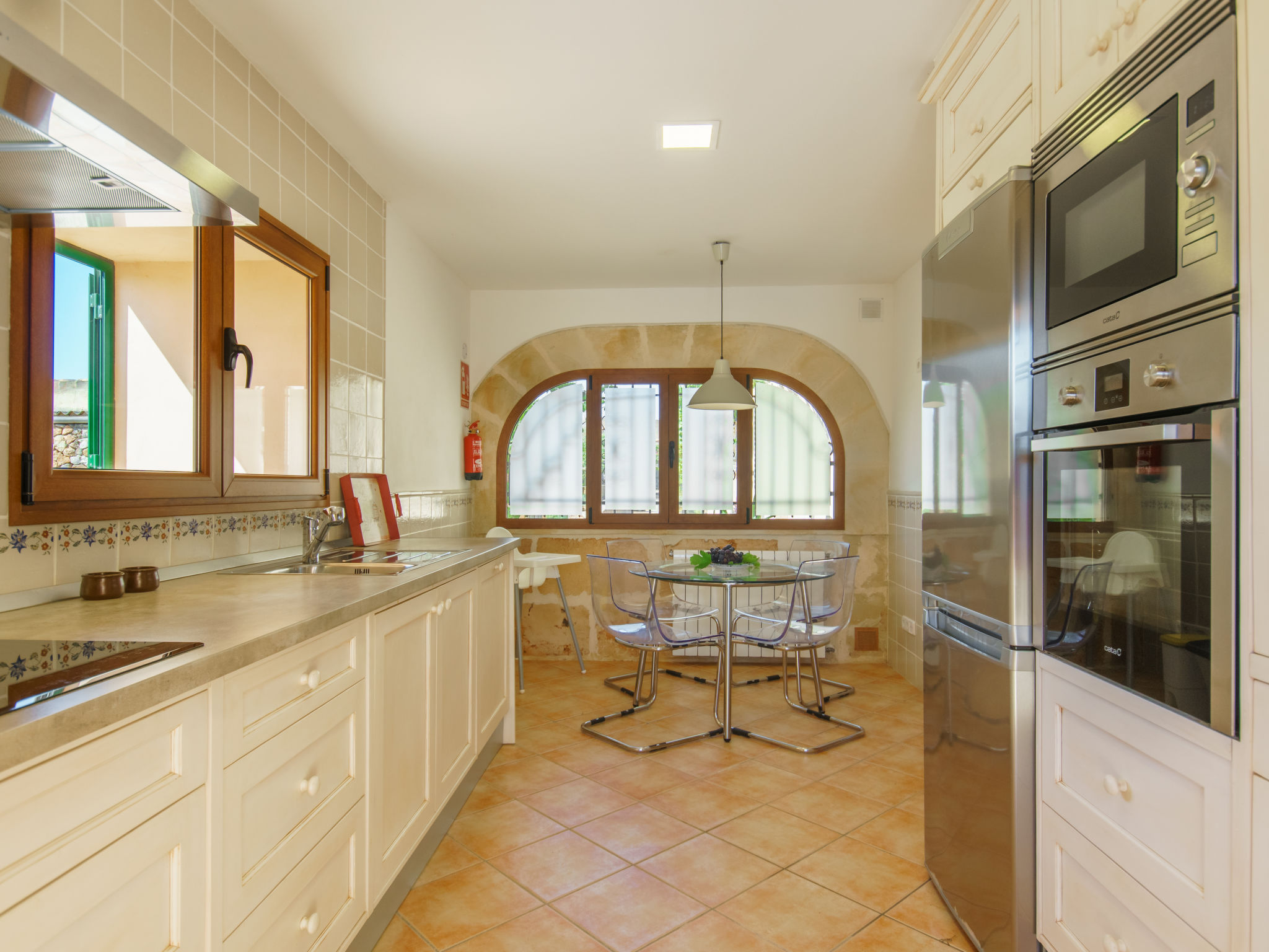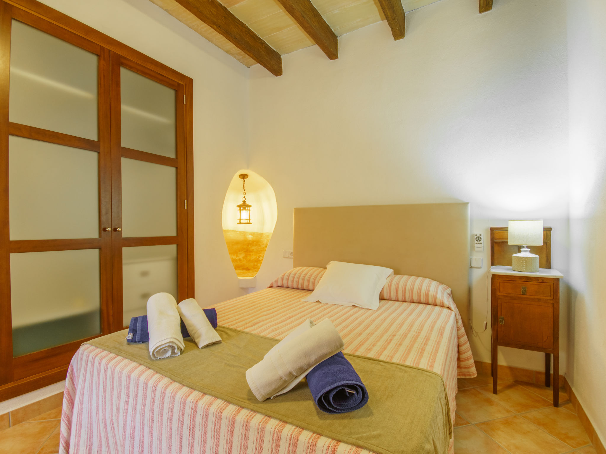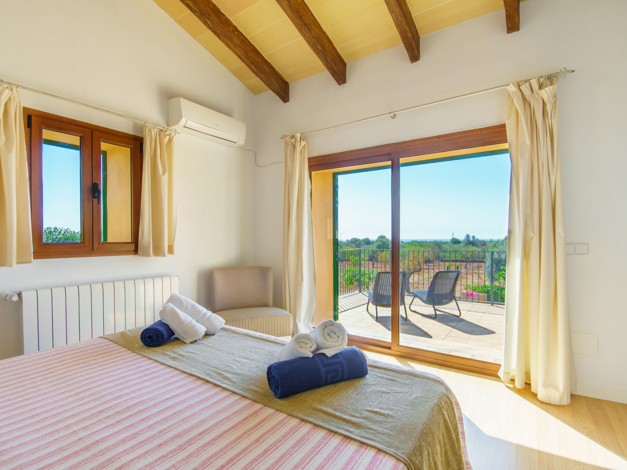 "Juan (CDO270)", 4-Zimmer-Haus 125 m2 auf 2 Stockwerken. Modern und geschmackvoll eingerichtet: Wohn-/Esszimmer mit Esstisch, Sat-TV, Digital-TV und Holzofen. Ausgang zur Terrasse. 1 Zimmer mit 1 franz. Bett (150 cm). Offene Küche (Backofen, Geschirrspüler, 3 Glaskeramikherd Platten, Mikrowelle, Tiefkühler, elektrische Kaffeemaschine) mit Esstisch. Ausgang zur Terrasse. Dusche/WC. Klimaanlage. Obergeschoss: 1 Zimmer mit 2 Betten und Dusche/WC. 1 Zimmer mit 1 franz. Bett (180 cm), Dusche/WC. Ausgang zur Terrasse. Terrasse überdacht Terrasse 20 m2. Terrassenmöbel, Gartengrill, Liegestühle. Schöne Sicht auf das Meer. Zur Verfügung: Waschmaschine, Bügeleisen, Kinderhochstuhl, Babybett, Haartrockner. Internet (Wireless LAN, gratis). Bitte beachten: Nichtraucher-Haus. 1905/2016/ET