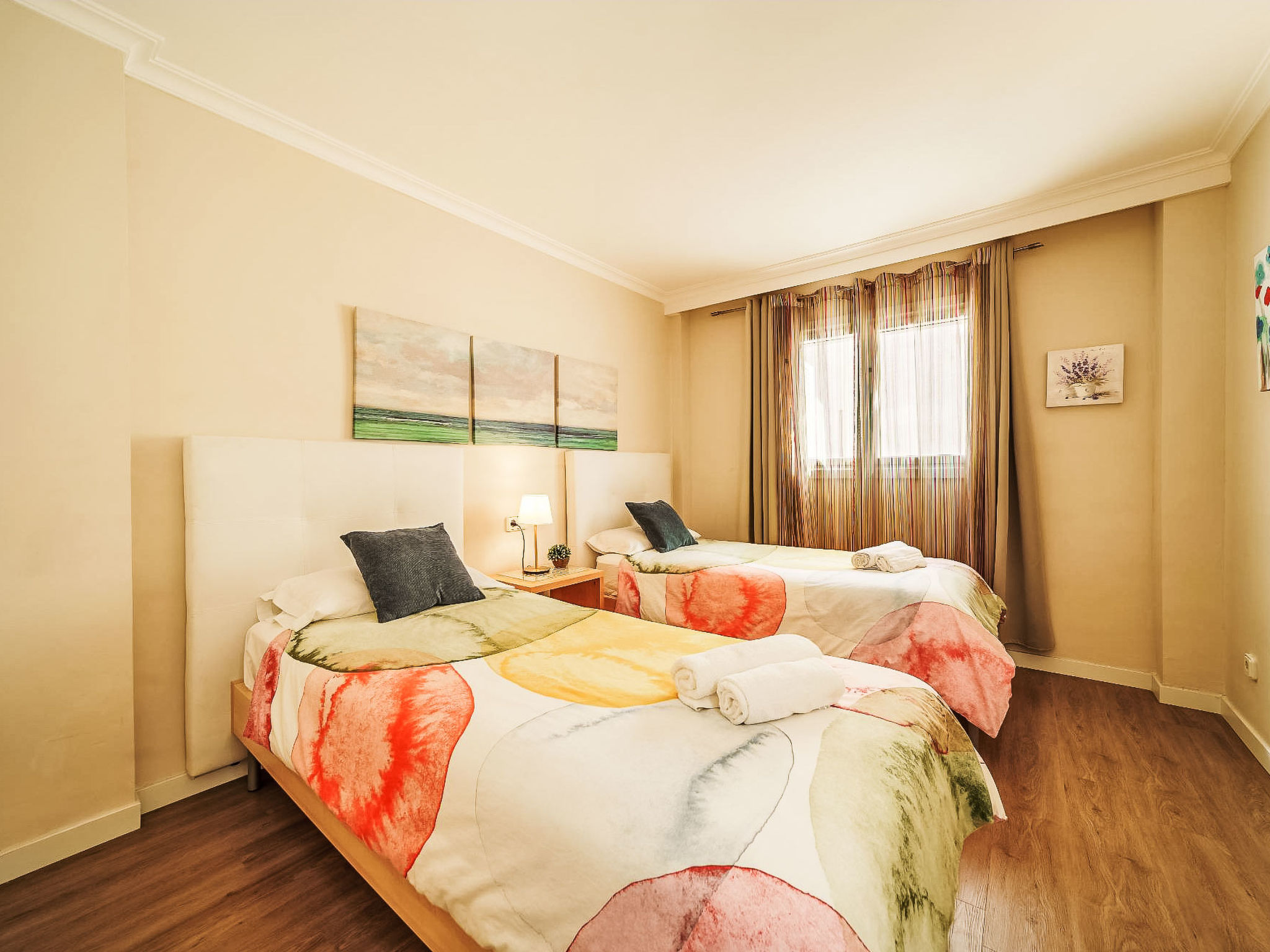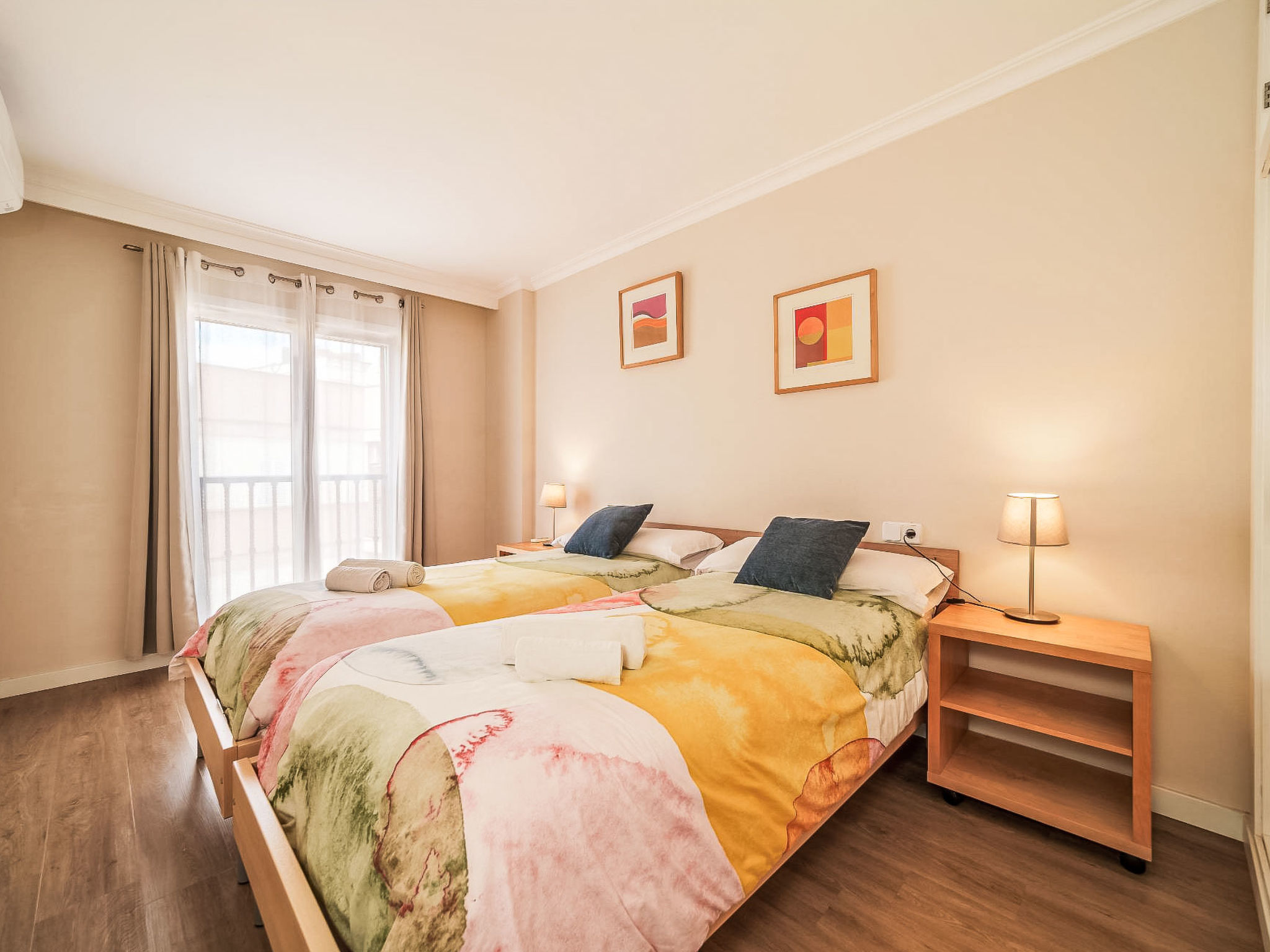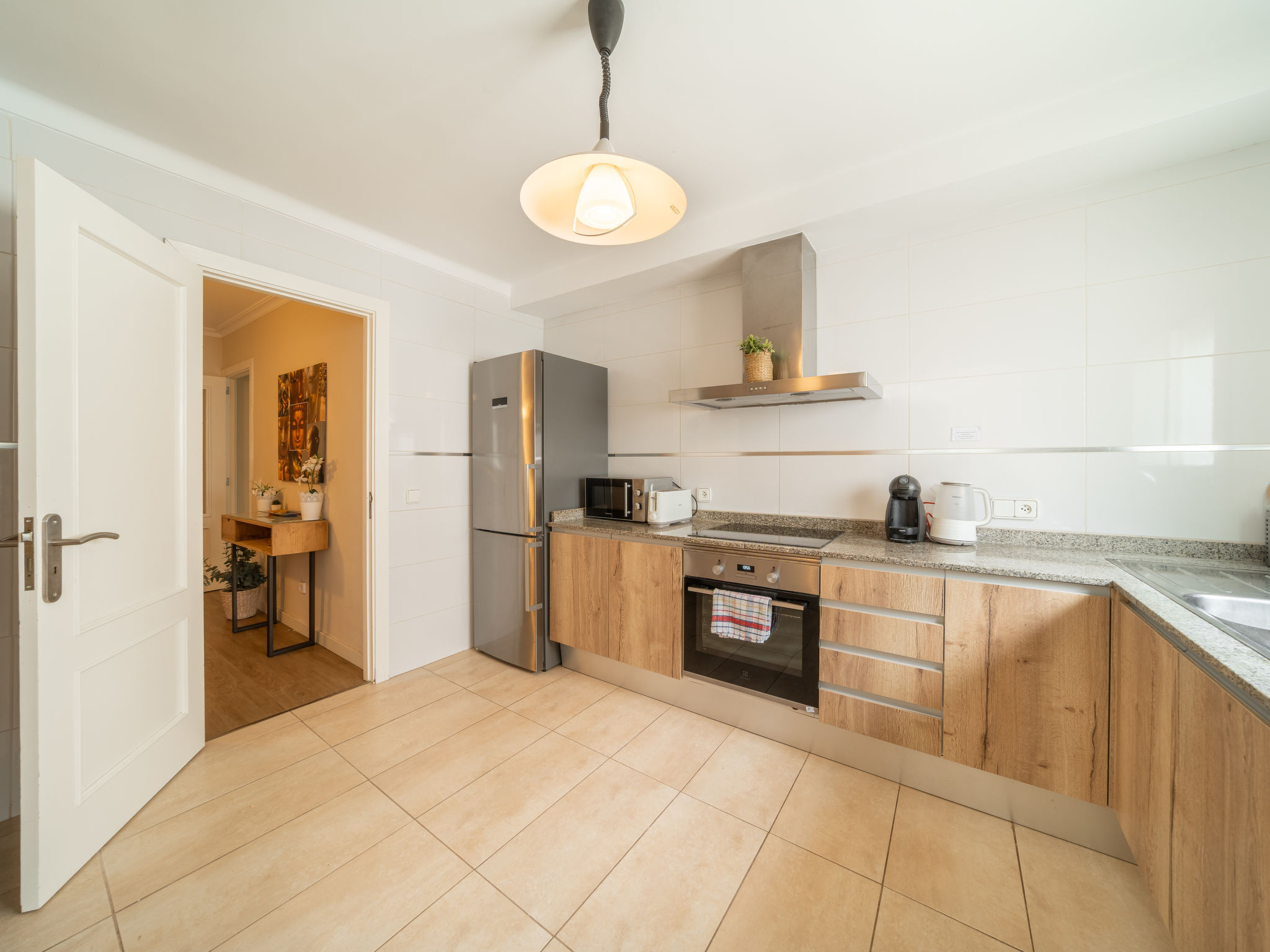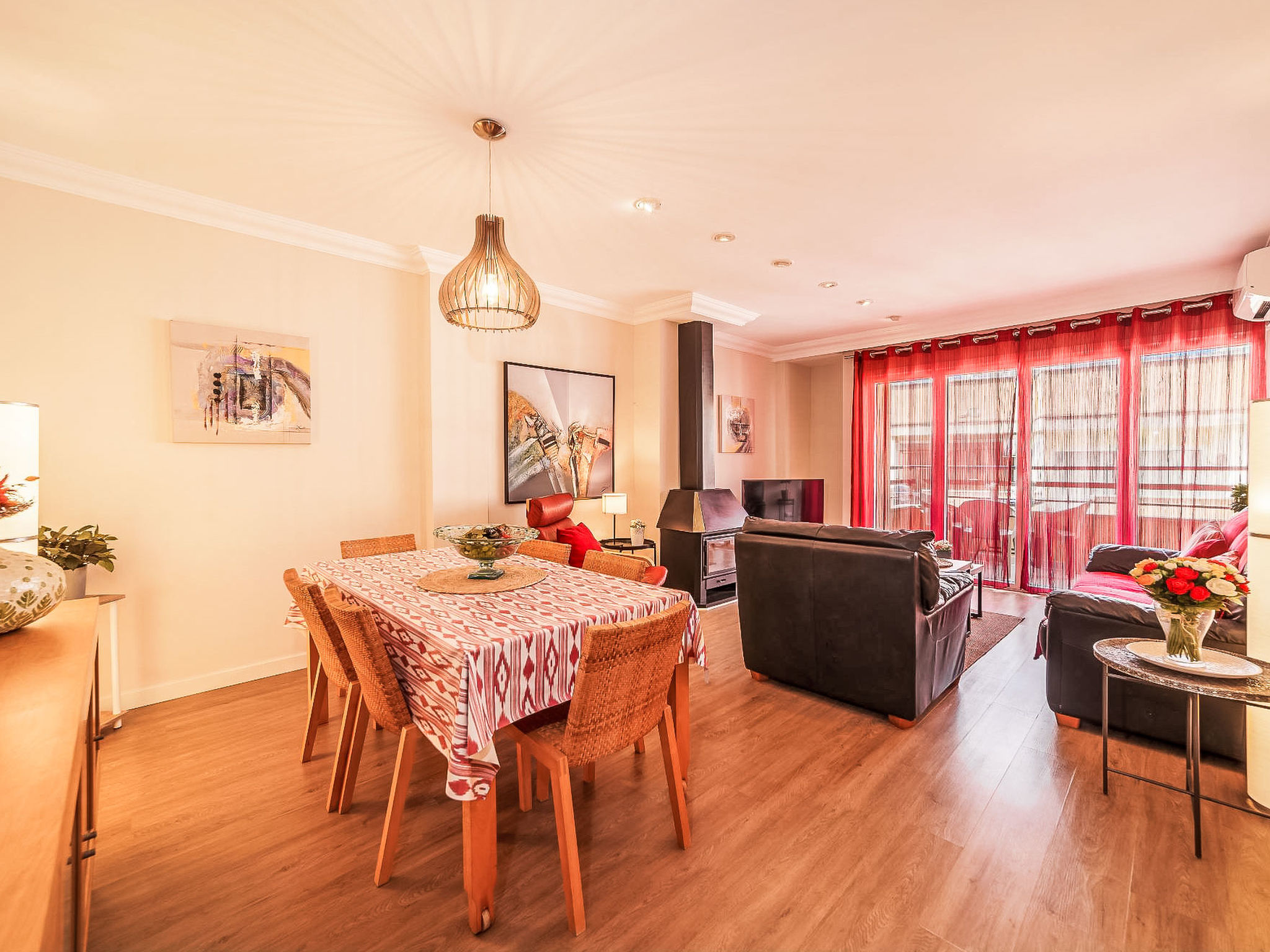"Mariners 4", 4-Zimmer-Wohnung 110 m2 im 4. Stock. Objekt geeignet für 6 Erwachsene. Geräumig und hell, vollständig renoviert, sehr komfortabel und gemütlich eingerichtet: Wohn-/Esszimmer mit Panoramafenster mit offenem Kamin, Esstisch, Digital-TV, Internationale TV-Sender, Flachbildschirm, E-Heizofen, Klimaanlage, Ventilator und Warmluftheizung. Ausgang zur Loggia. 1 grosses Doppelzimmer mit Panoramafenster mit 1 franz. Bett (150 cm, Länge 200 cm), Klimaanlage und Warmluftheizung. Ausgang zum Balkon. 2 grosse Doppelzimmer mit Panoramafenster, jedes Zimmer mit 2 Betten (90 cm), E-Heizofen, Klimaanlage, Ventilator und Warmluftheizung. Küche (Backofen, Geschirrspüler, 3 Glaskeramikherd Platten, Mikrowelle, Tiefkühler, elektrische Kaffeemaschine). 2 Bäder/Duschen/WC. Balkon 10 m2. Balkonmöbel. Eingeschränkte Sicht auf das Meer und die Berge. Zur Verfügung: Waschmaschine, Bügeleisen, Kinderhochstuhl, Babybett bis 2 Jahre, Haartrockner. Internet (Wireless LAN, gratis). Geeignet für Familien. ETVPL12598