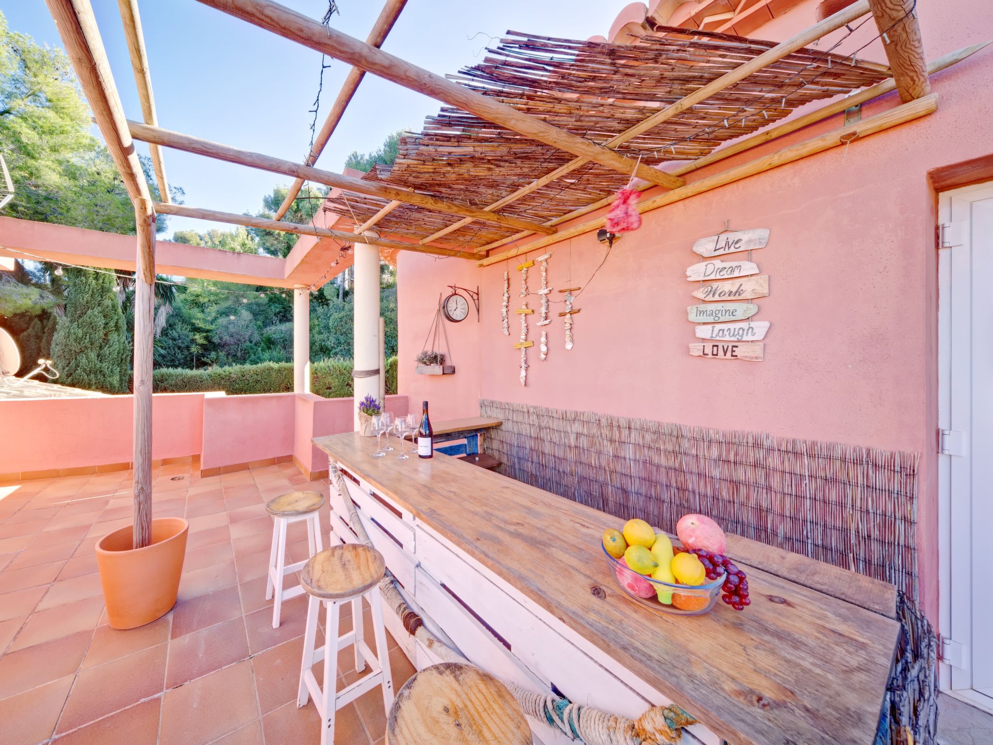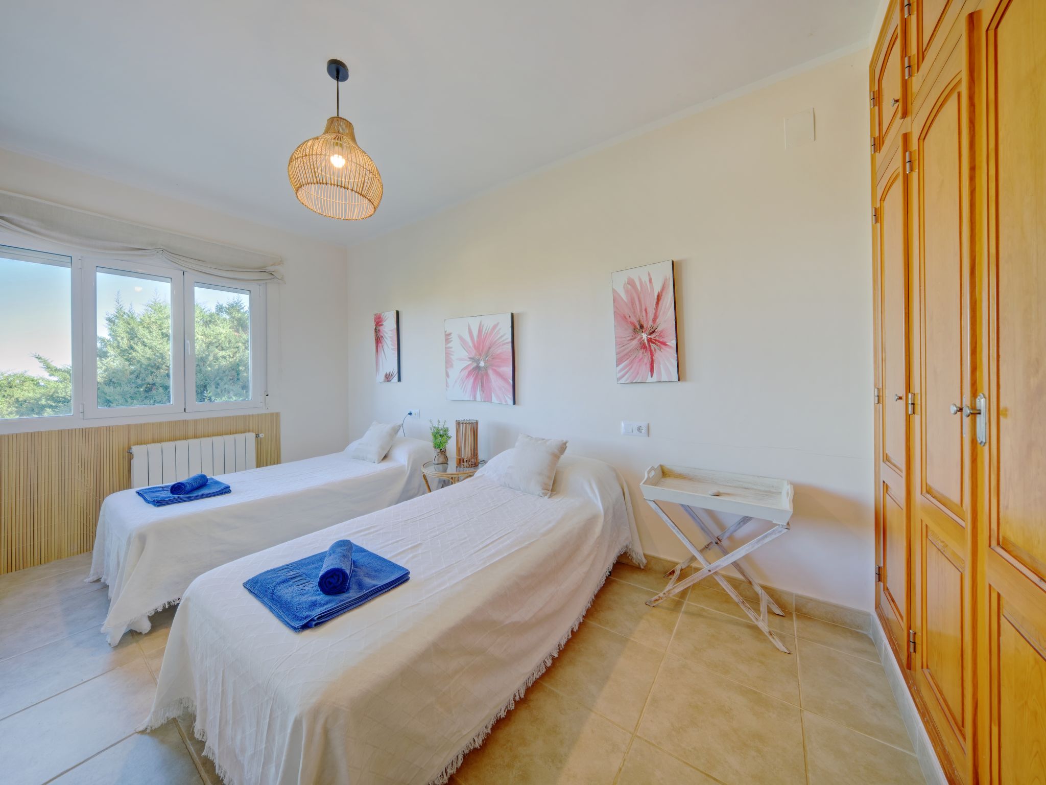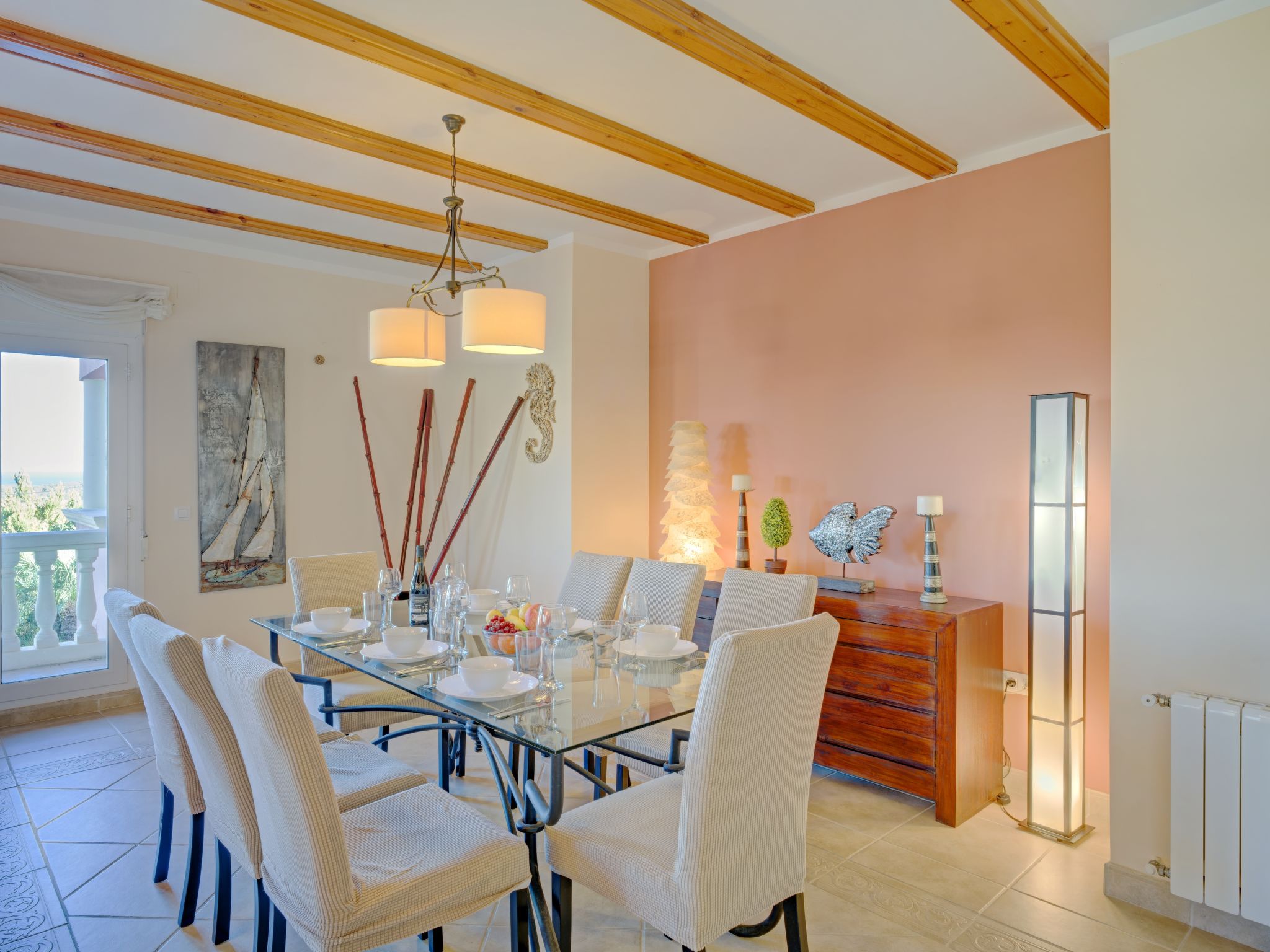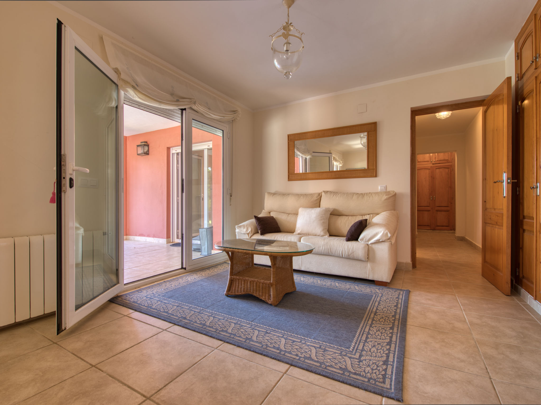 Grosses, sehr schönes Haus "Mirlos". Im Ortsteil Cap Marti, im Ort Jéavea, ruhige, sonnige Lage, 2 km vom Meer, 4.2 km vom Strand. Zur Alleinbenutzung: Garten 1'000 m2 (eingezäunt) mit Rasen und Bäumen, Schwimmbad (11 x 5 m, 120 - 180 cm tief, 01.01.-31.12.). Aussendusche, Gartenmöbel. Im Hause: Waschmaschine. Parkplatz (für 2 Autos) auf dem Grundstück. Supermarkt 1800 km, Restaurant 1.5 km, Bäckerei 1.5 km, Café 1.4 km, Sandstrand "El Arenal" 2 km. Sporthafen 3.5 km, Jacht-Hafen 2 km, Golfplatz 5 km, Segelschule 2 km, Tennis 2.1 km. Bitte beachten: Fahrzeug empfohlen. Jugendgruppen nur auf Anfrage.
