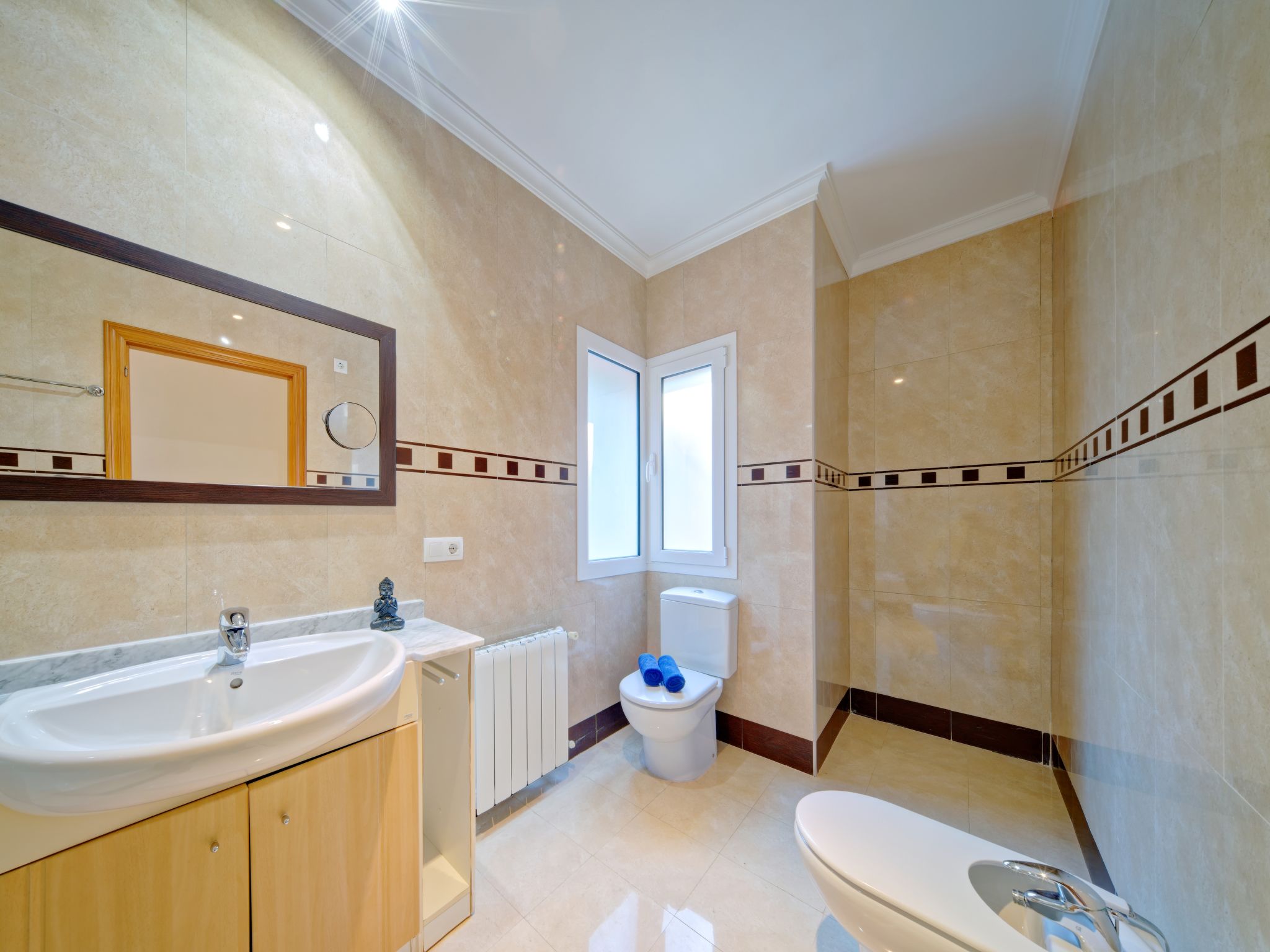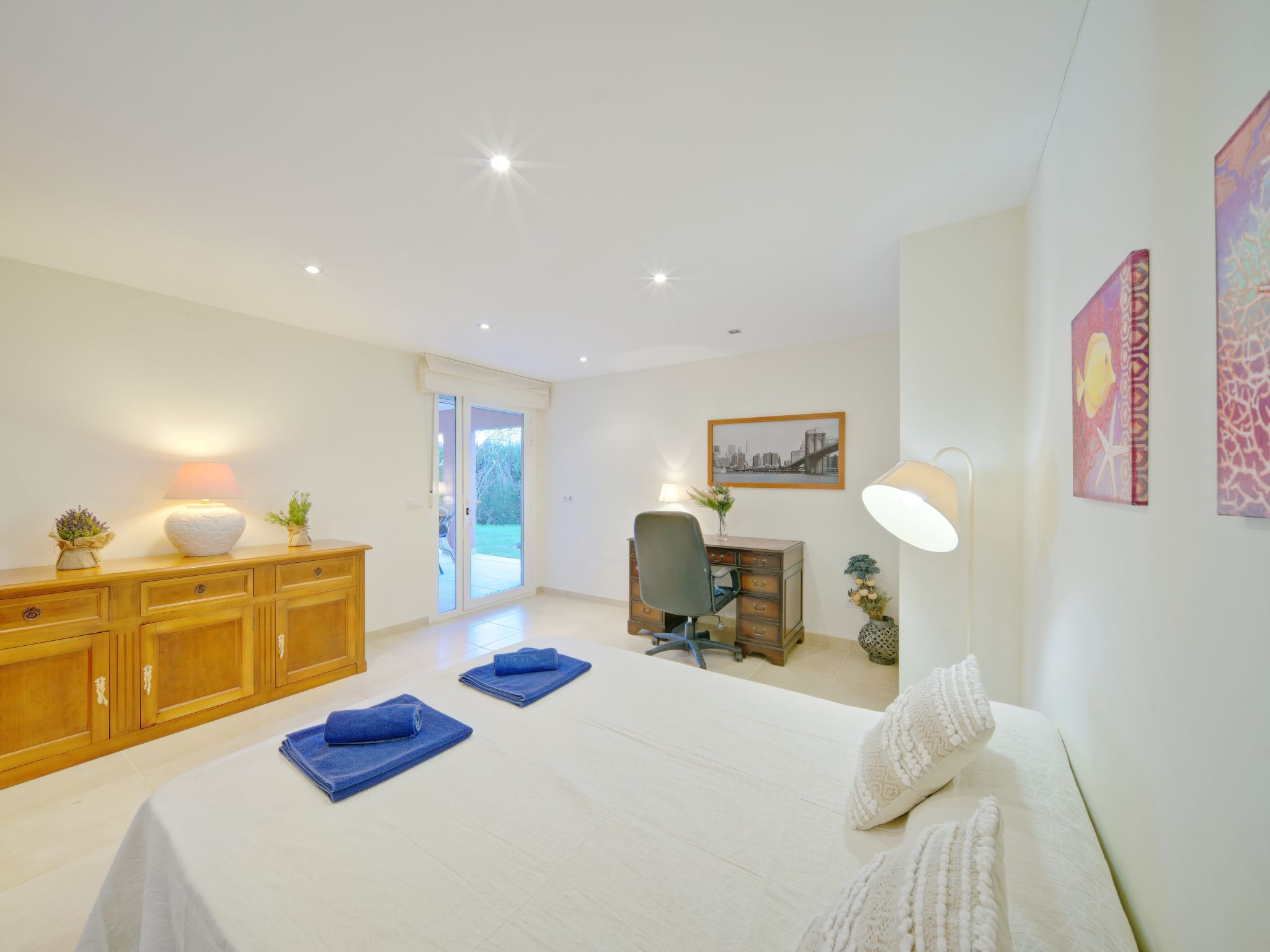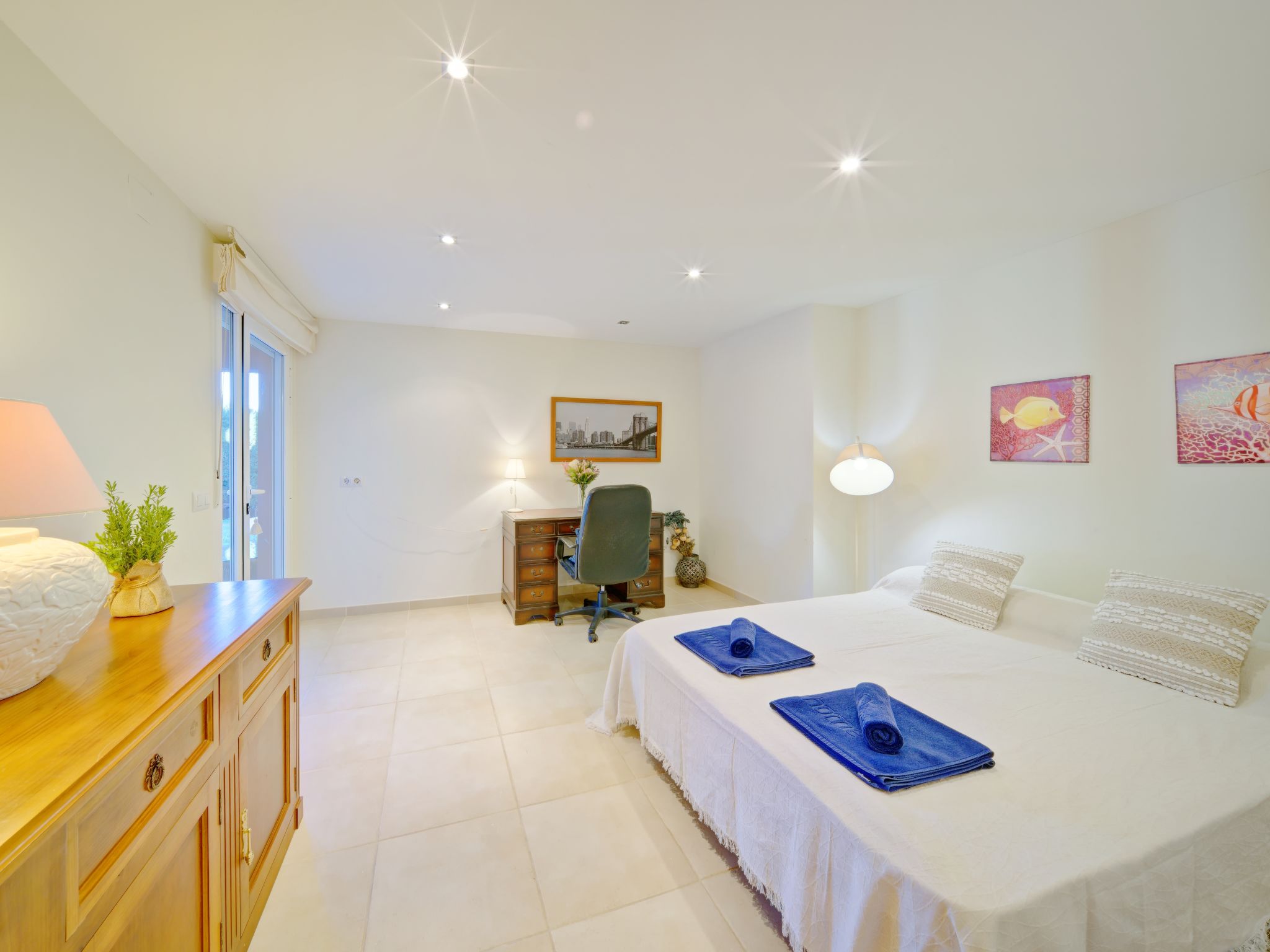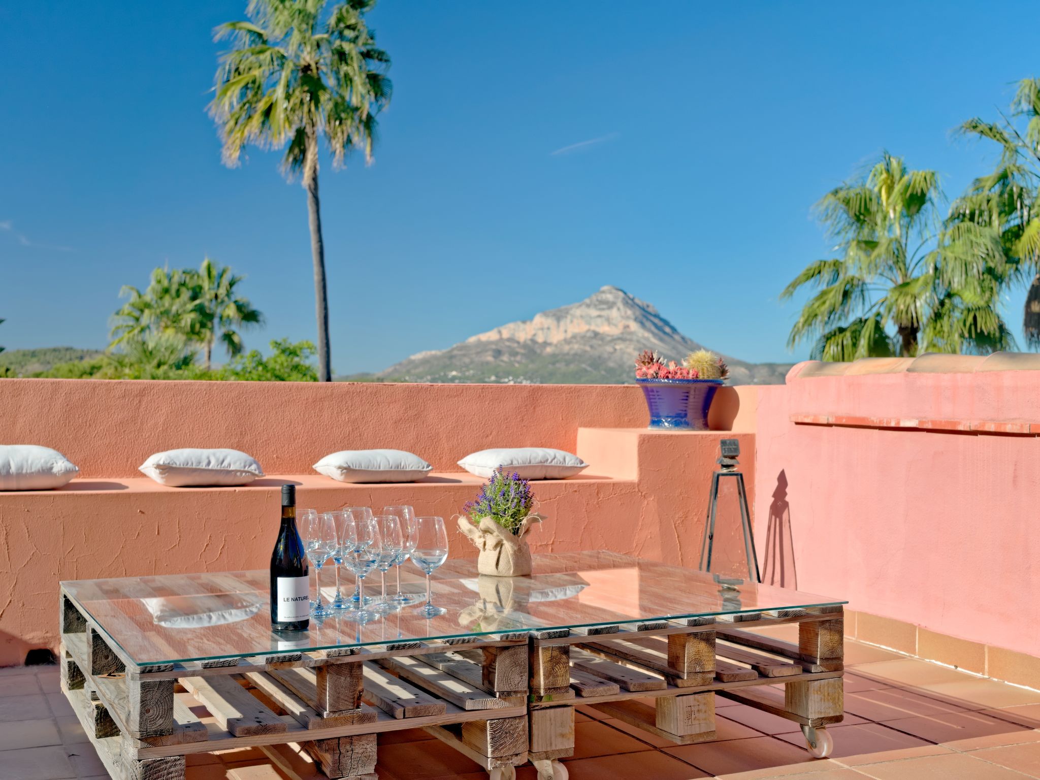 Grosses, sehr schönes Haus "Mirlos". Im Ortsteil Cap Marti, im Ort Jéavea, ruhige, sonnige Lage, 2 km vom Meer, 4.2 km vom Strand. Zur Alleinbenutzung: Garten 1'000 m2 (eingezäunt) mit Rasen und Bäumen, Schwimmbad (11 x 5 m, 120 - 180 cm tief, 01.01.-31.12.). Aussendusche, Gartenmöbel. Im Hause: Waschmaschine. Parkplatz (für 2 Autos) auf dem Grundstück. Supermarkt 1800 km, Restaurant 1.5 km, Bäckerei 1.5 km, Café 1.4 km, Sandstrand "El Arenal" 2 km. Sporthafen 3.5 km, Jacht-Hafen 2 km, Golfplatz 5 km, Segelschule 2 km, Tennis 2.1 km. Bitte beachten: Fahrzeug empfohlen. Jugendgruppen nur auf Anfrage.