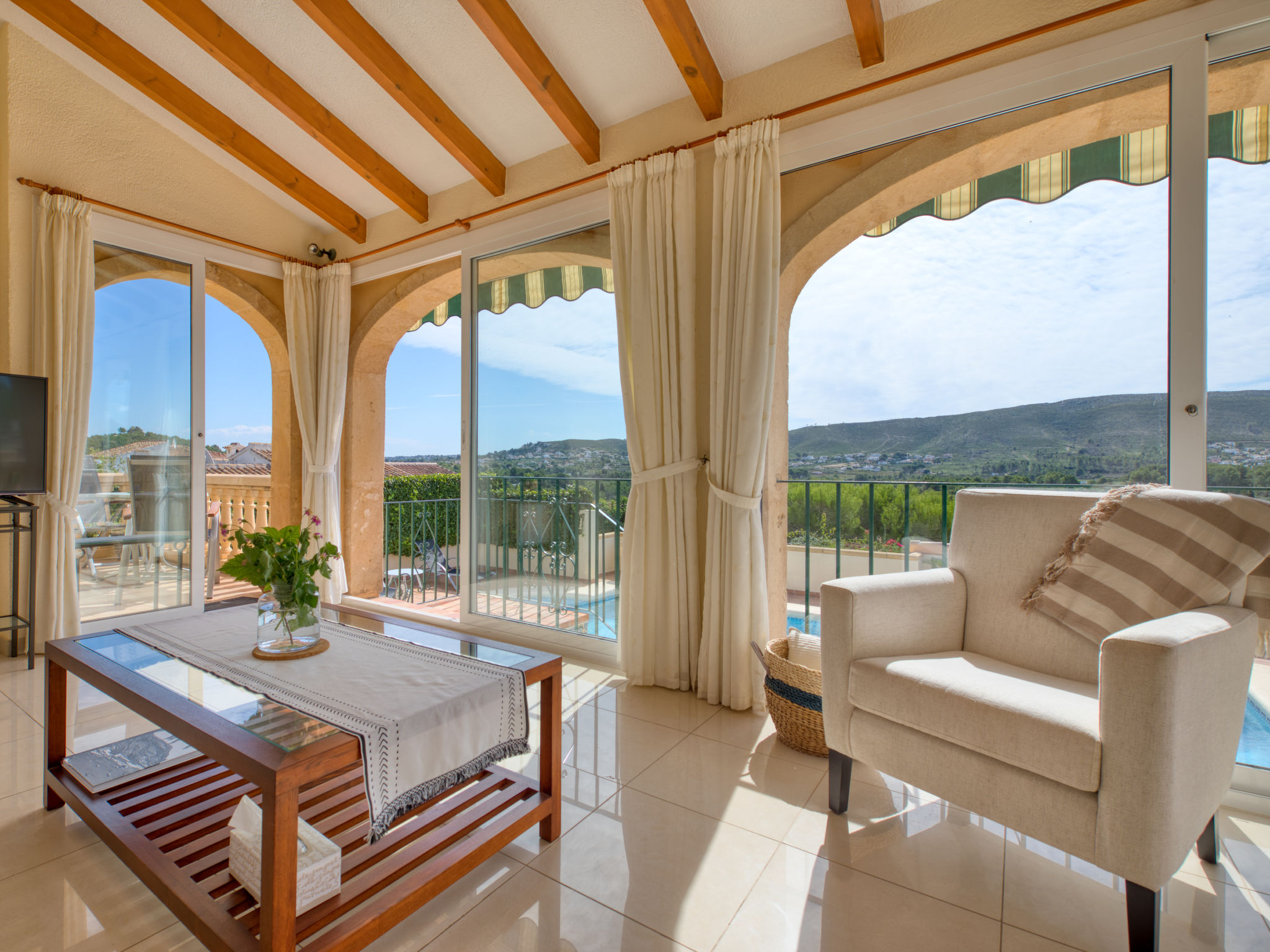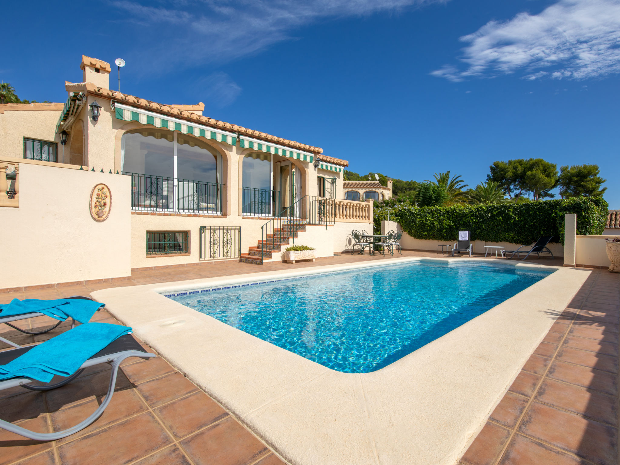 "Casa Isabelle", 4-Zimmer-Haus 200 m2 auf 2 Stockwerken. Geräumig und hell, schön und gemütlich eingerichtet: Wohn-/Esszimmer mit Sat-TV und Digital-TV. Ausgang zur Terrasse, zum Schwimmbad. 1 Zimmer mit 2 Betten (90 cm, Länge 190 cm), Bad/WC, Doppelwaschbecken und Ventilator. 1 Zimmer mit 2 Betten (90 cm, Länge 190 cm), Ventilator. Grosse Küche (Backofen, Geschirrspüler, 5 Induktionskochplatten, Mikrowelle, Tiefkühler, elektrische Kaffeemaschine). Ausgang zum Gartensitzplatz. Dusche/WC. Unteres Geschoss: 1 Zimmer mit 1 franz. Bett (150 cm, Länge 190 cm), Klimaanlage und Warmluftheizung. Bad/WC, Doppelwaschbecken. Terrassenmöbel, Gartengrill, Liegestühle (6). Herrliche Panoramasicht auf die Berge und das Tal. Zur Verfügung: Waschmaschine, Bügeleisen, Kinderhochstuhl, Babybett, Haartrockner. Internet (Wireless LAN, gratis). Parkplatz beim Haus. Bitte beachten: TV nur FR, ES. AT-479258-A